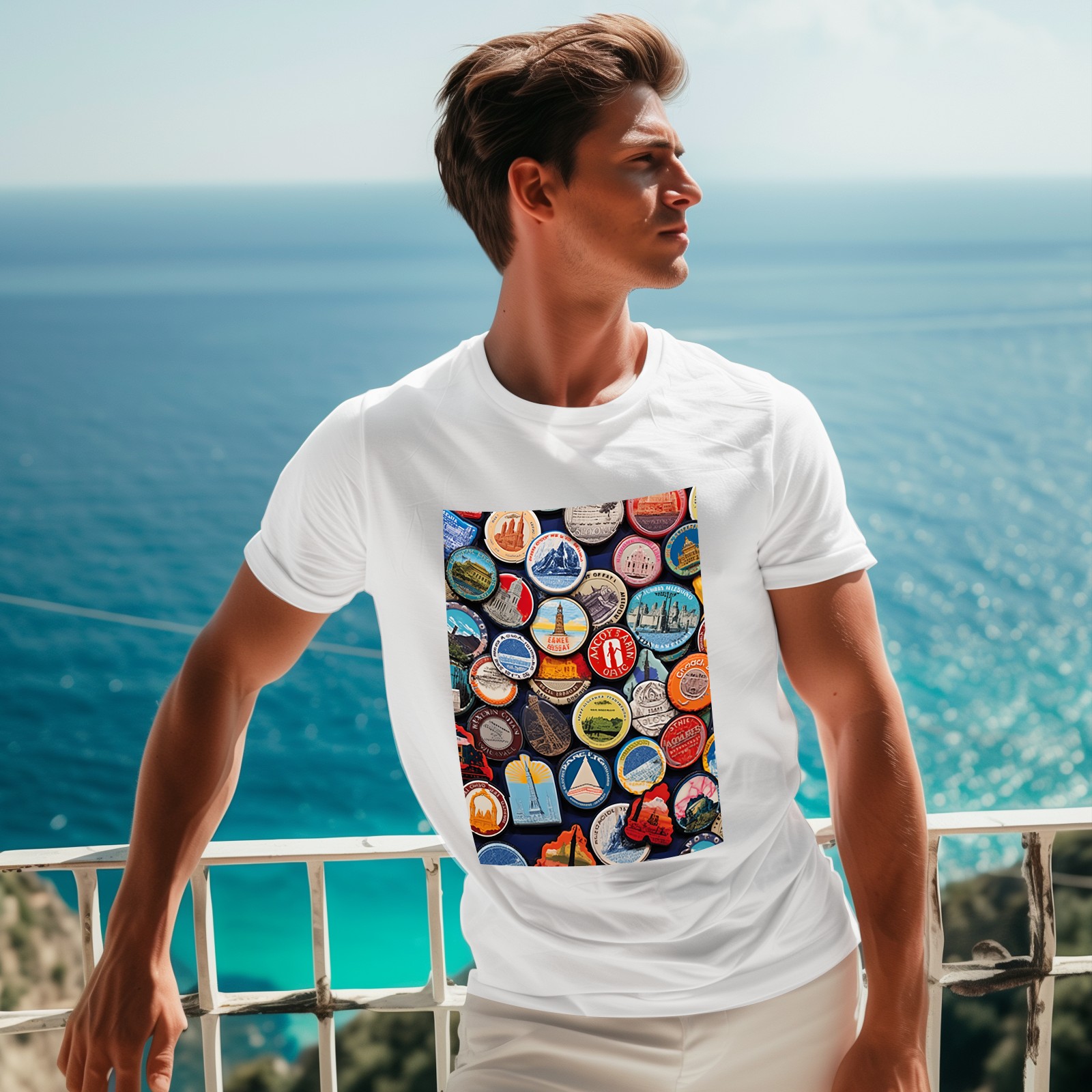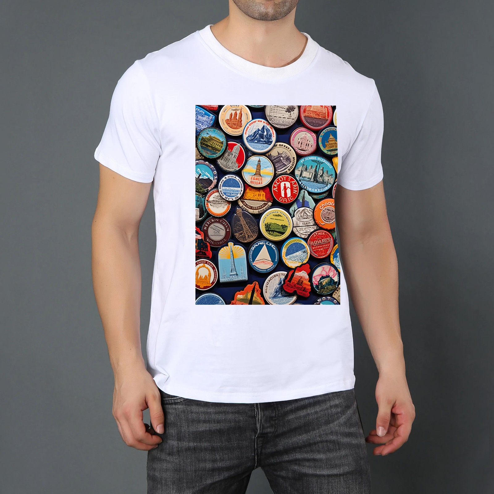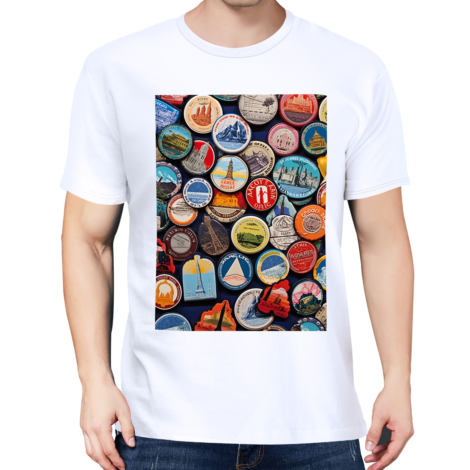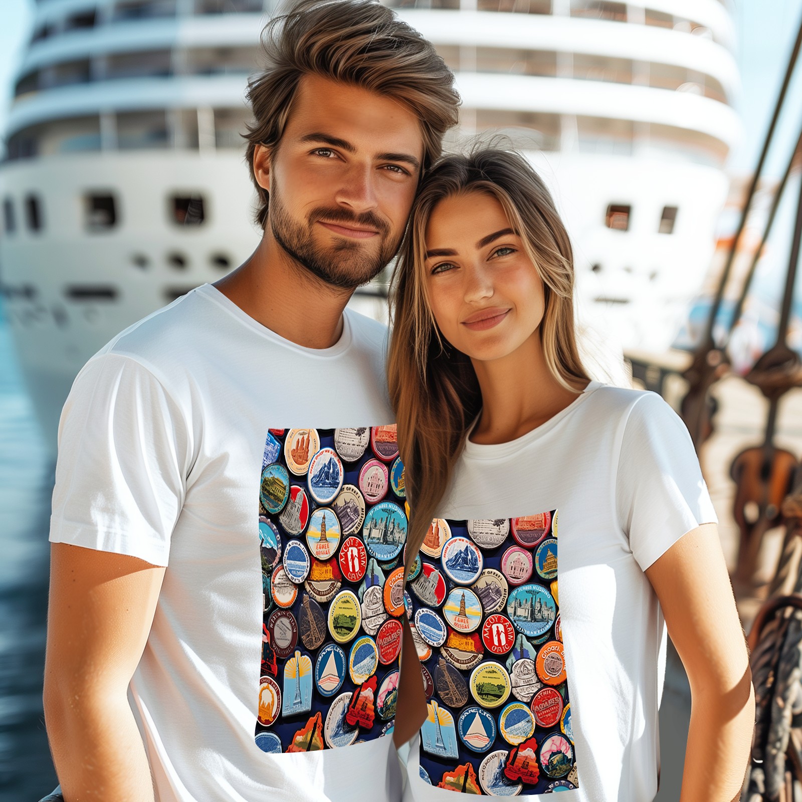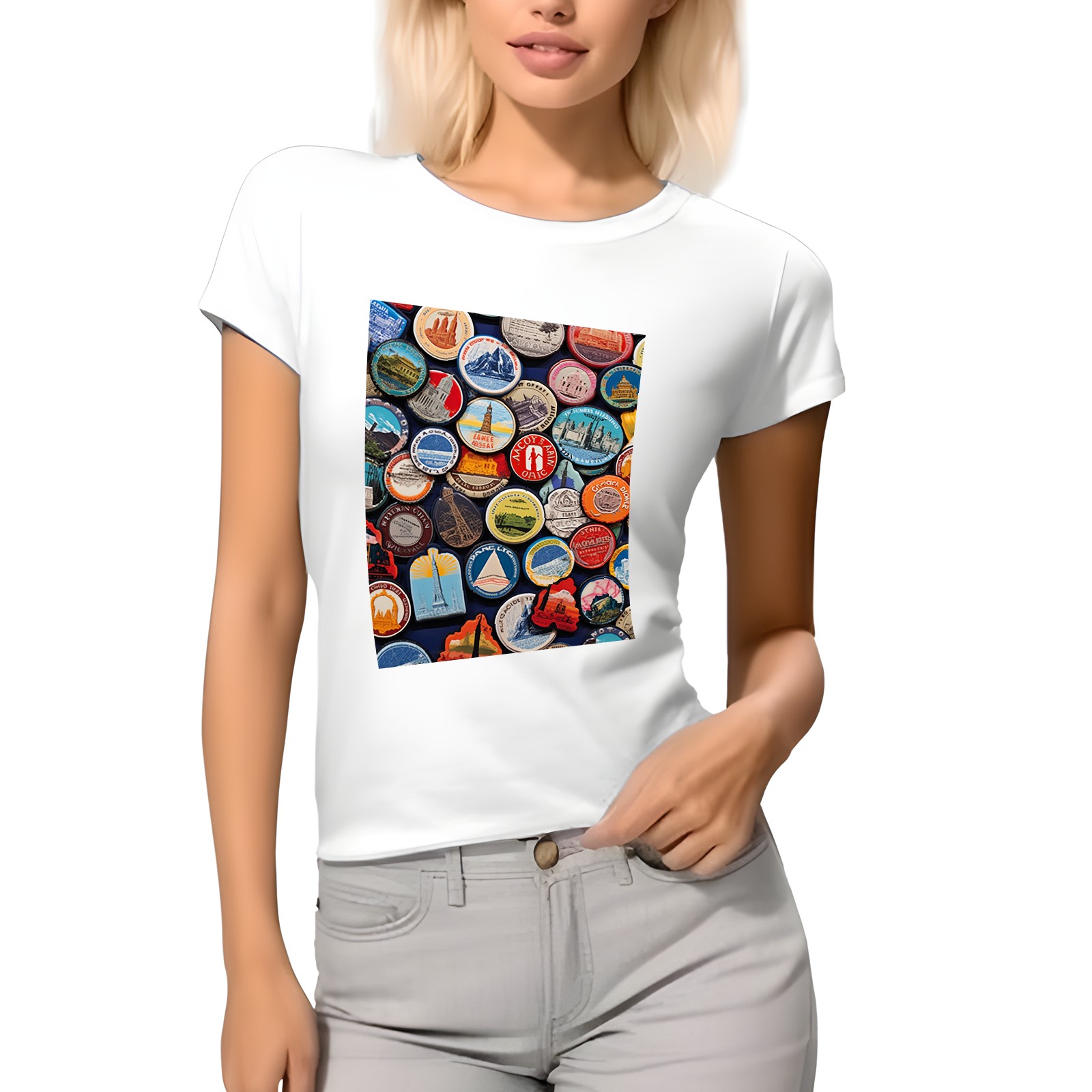 Basic Oversize Tees For WomenColorful Travel Sticker (1) Loose Boyfriend Shirts Casual Blouse round neck