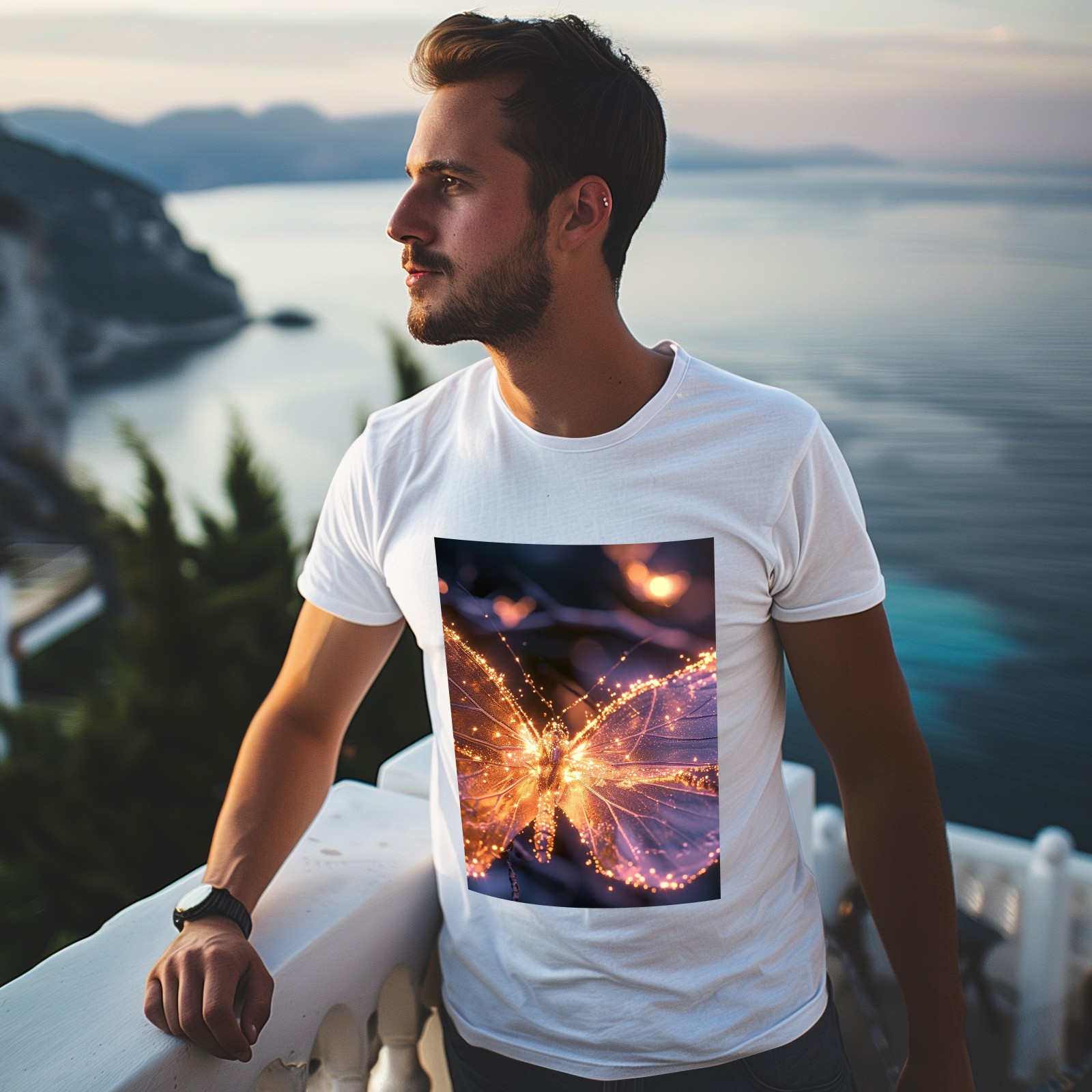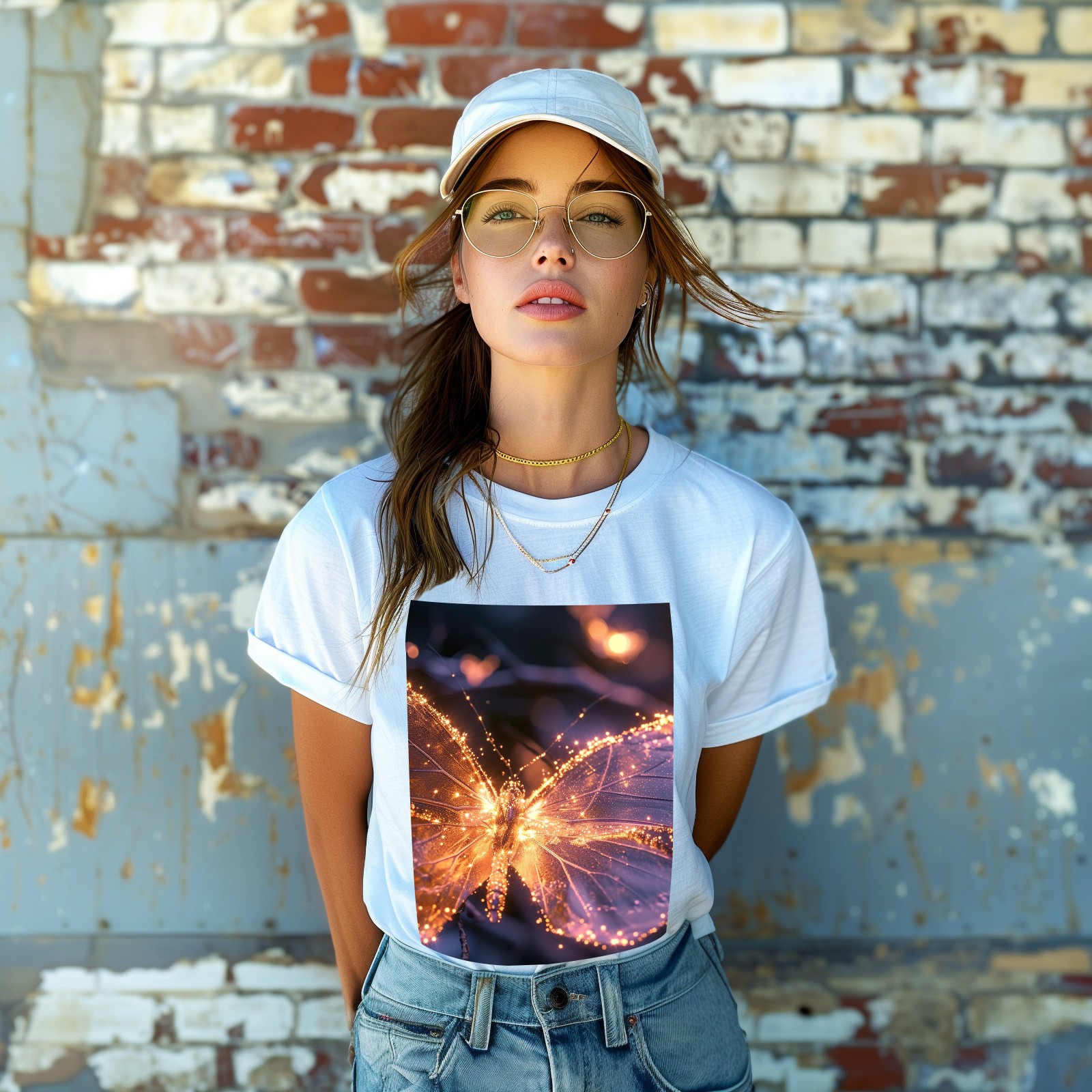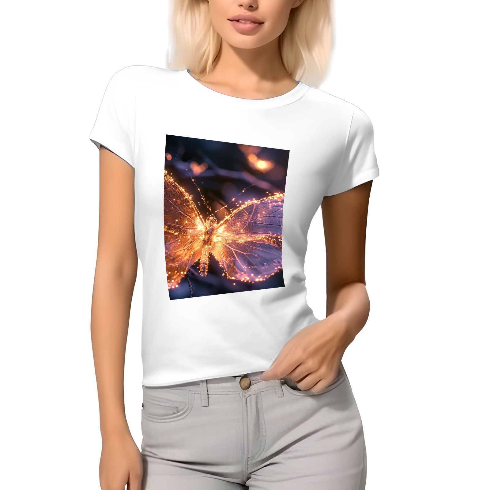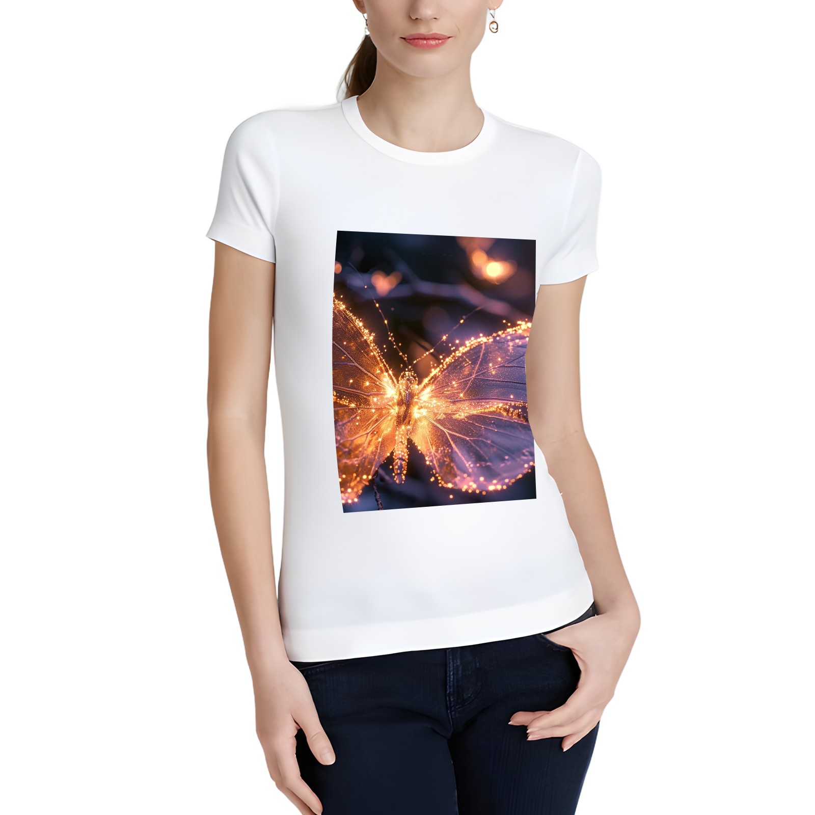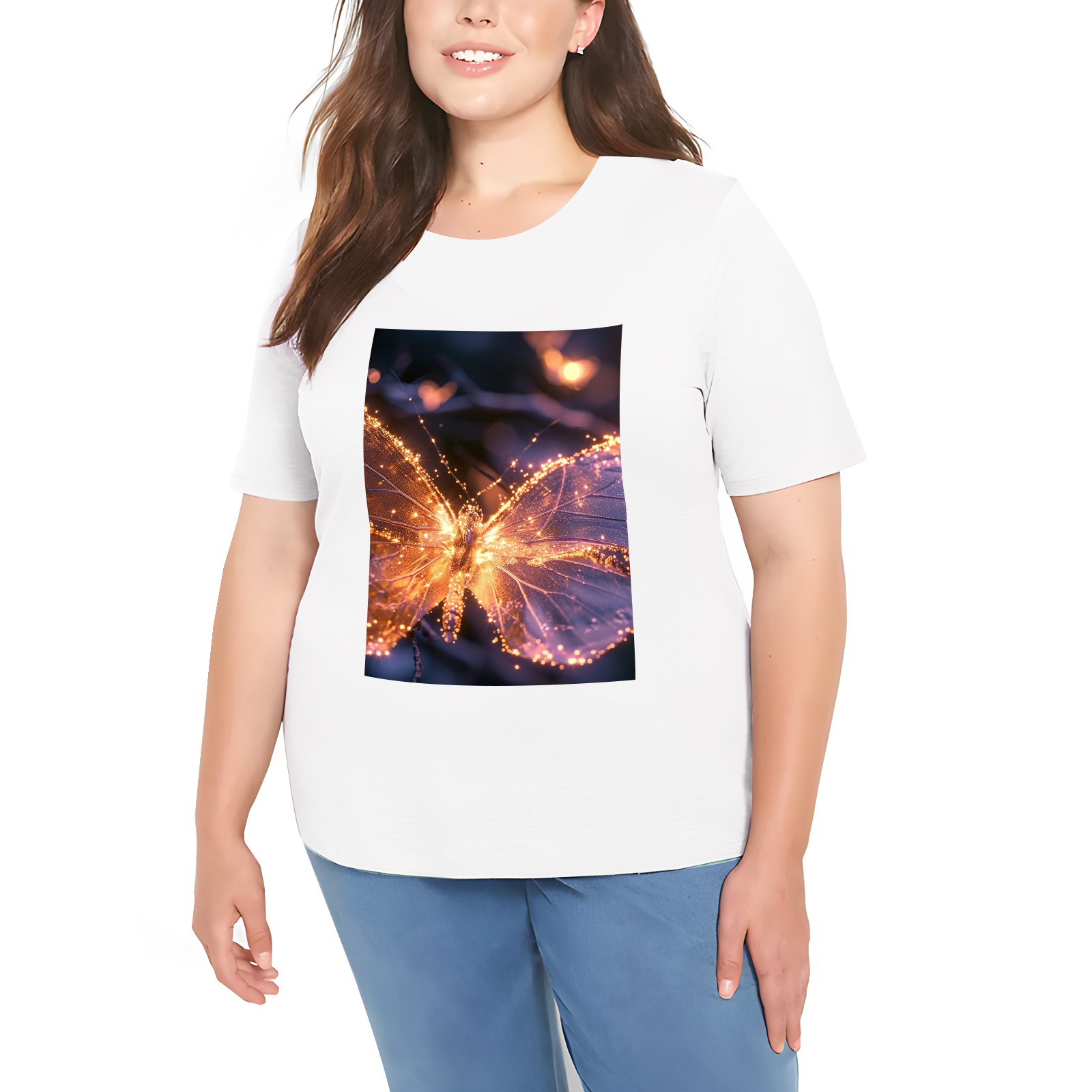 Basic Oversize Tees For WomenButterfly (4) Loose Boyfriend Shirts Casual Blouse round neck