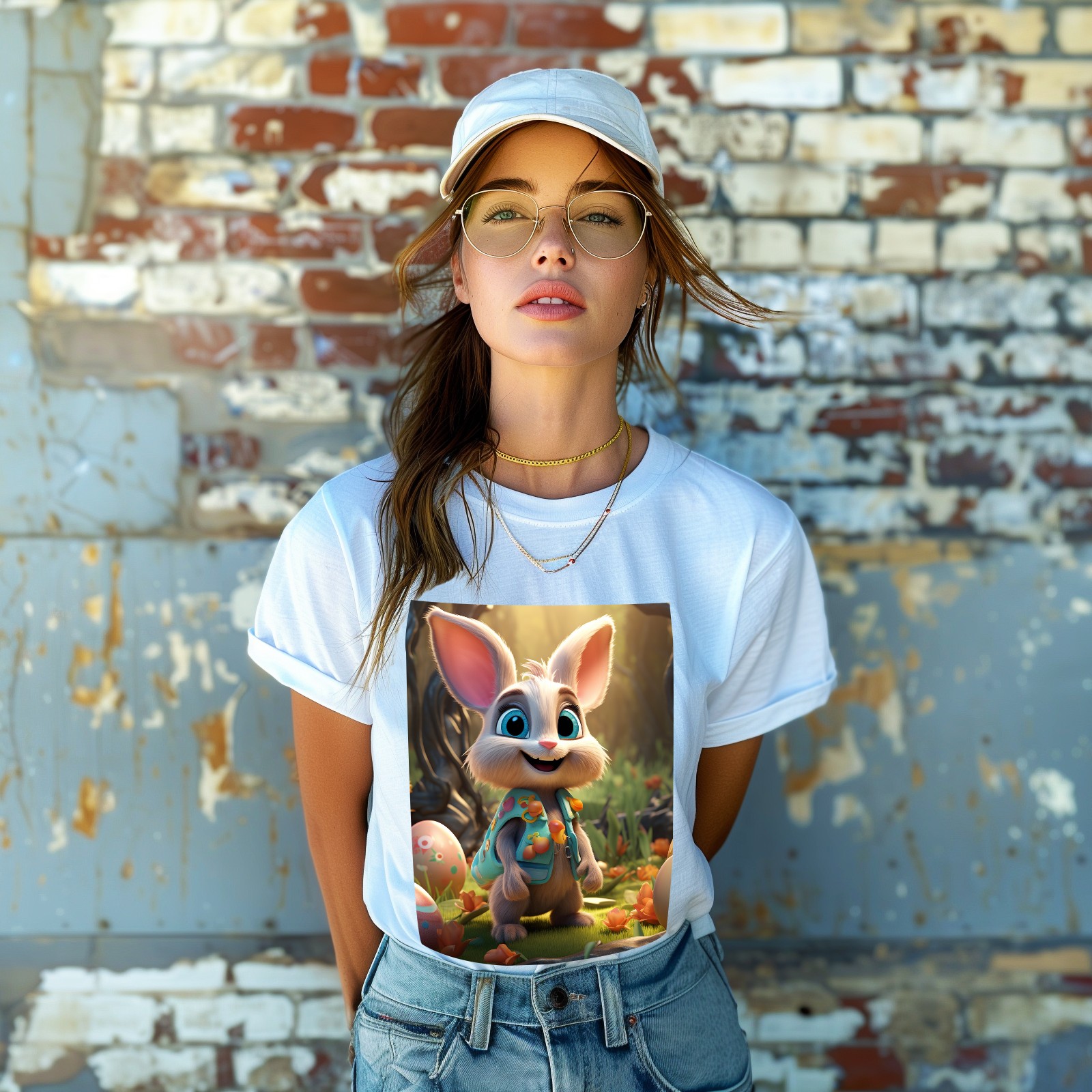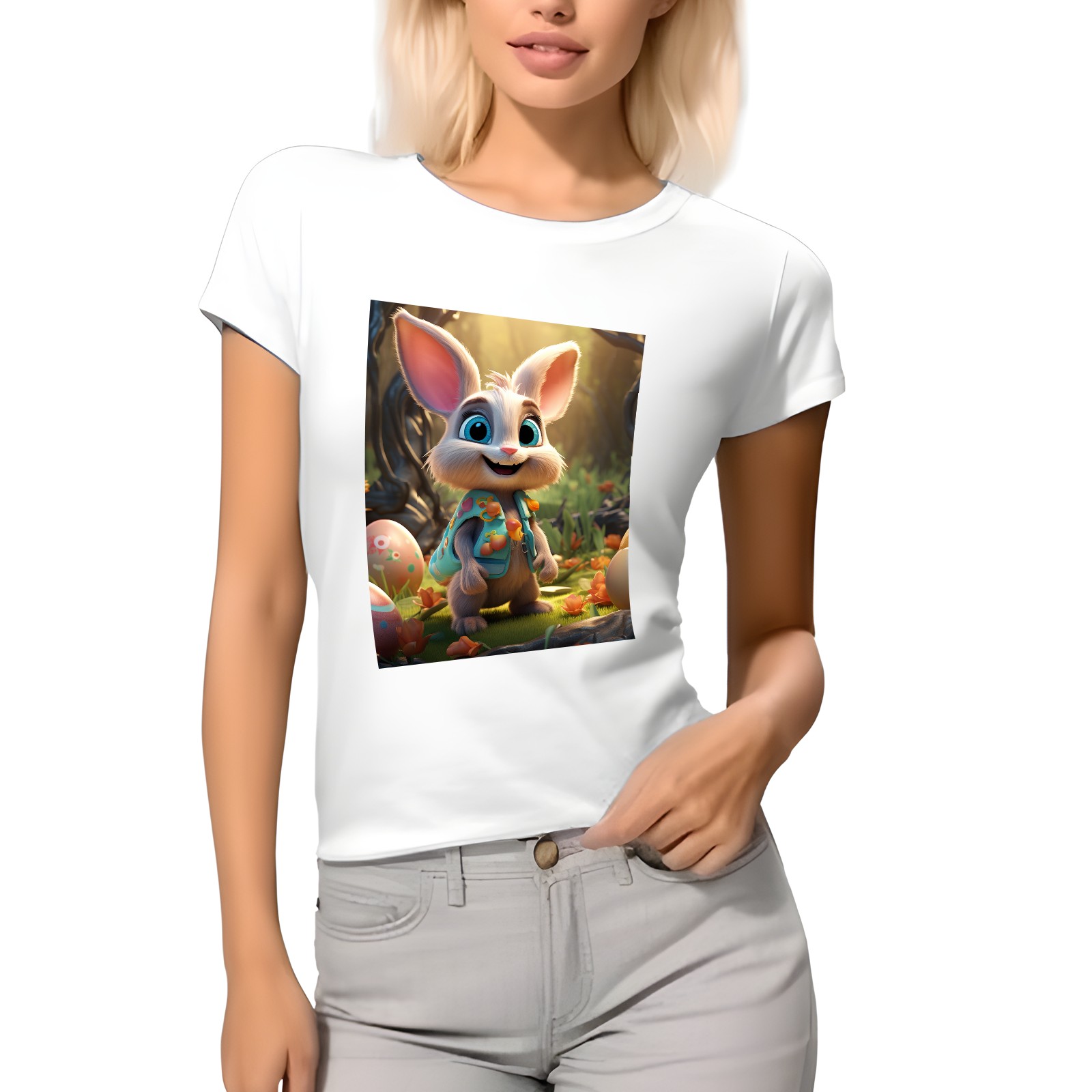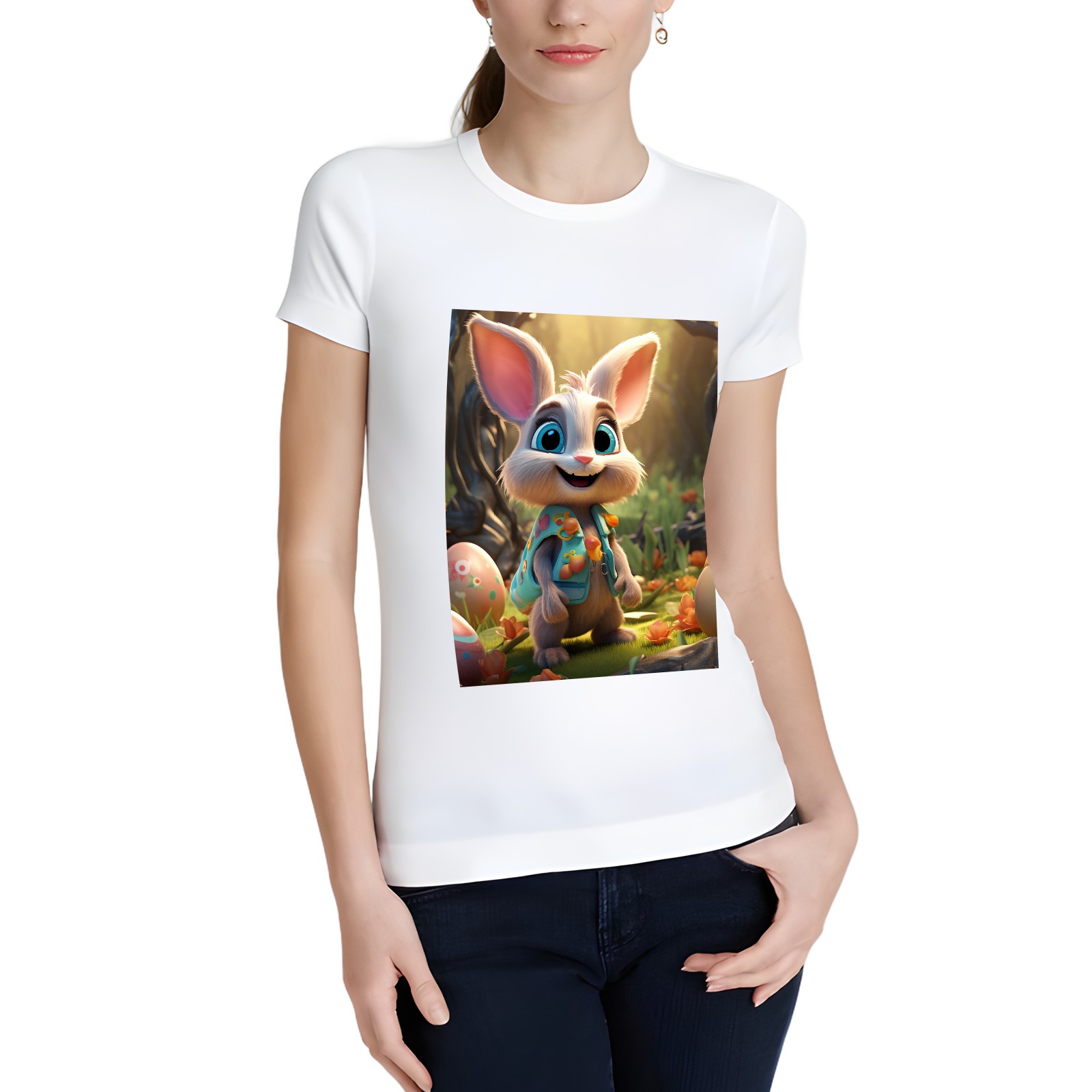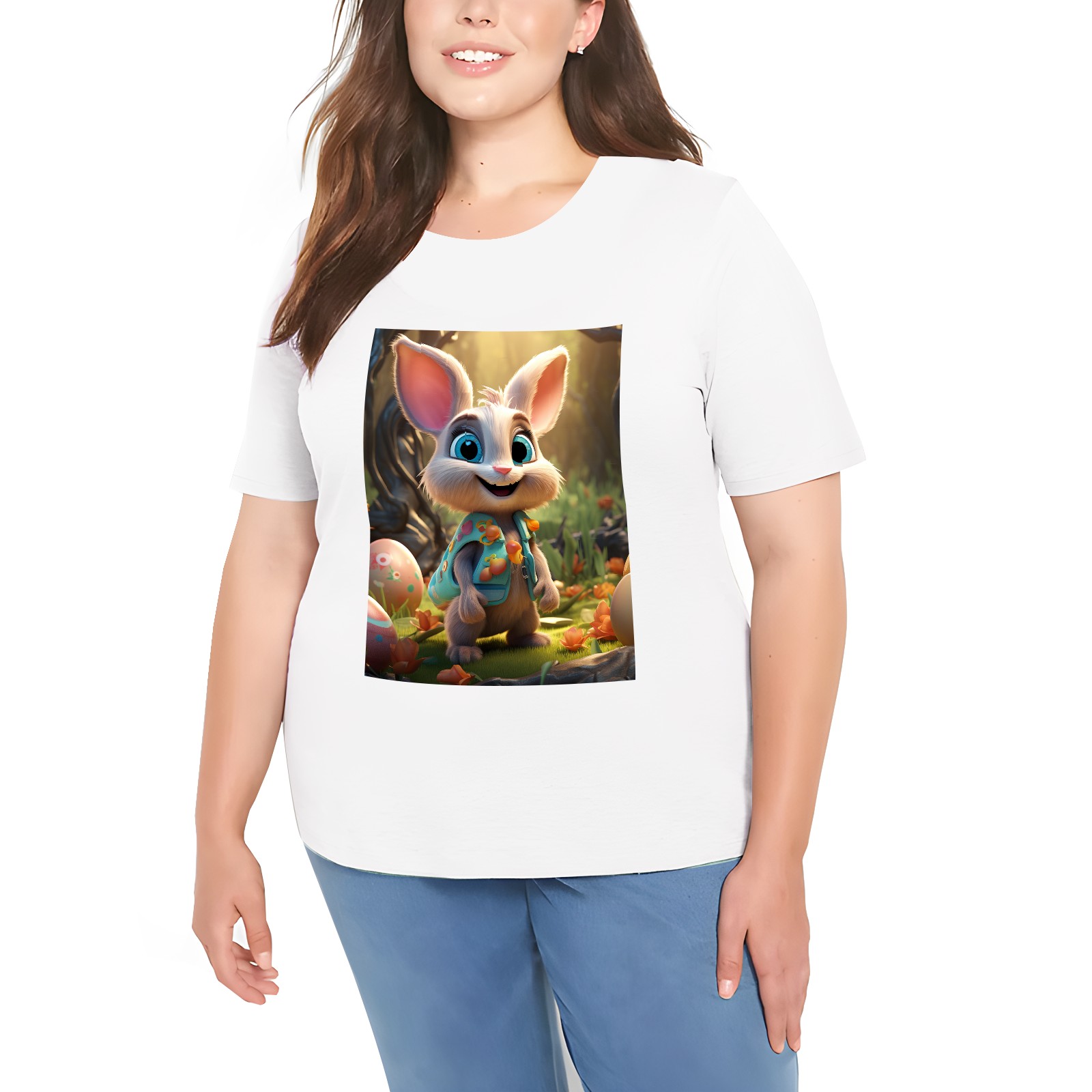 Basic Oversize Tees For WomenBunny Rabbit (23) Loose Boyfriend Shirts Casual Blouse round neck