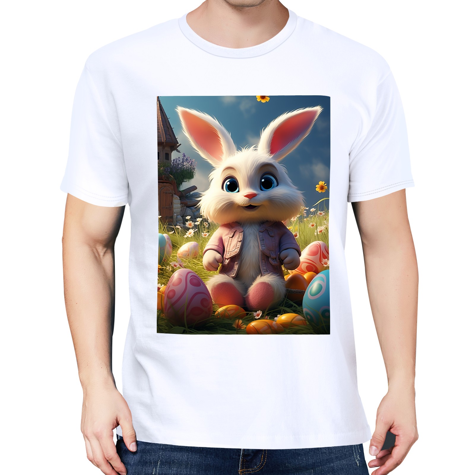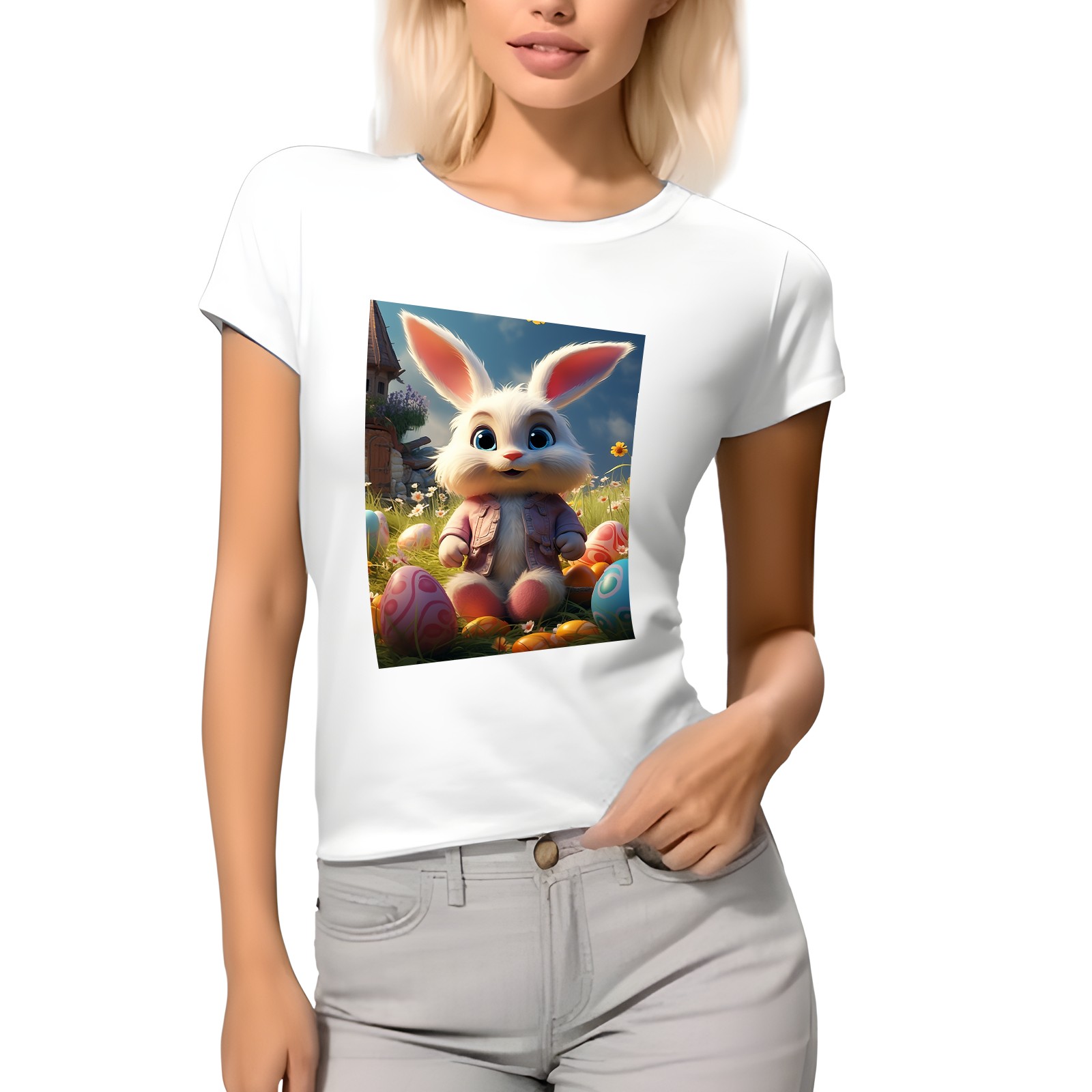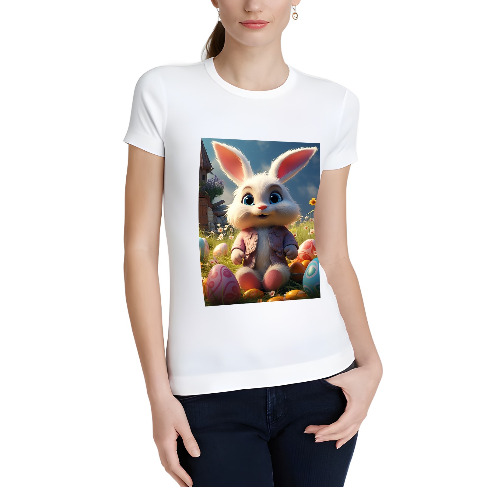 Basic Oversize Tees For WomenBunny Rabbit (20) Loose Boyfriend Shirts Casual Blouse round neck