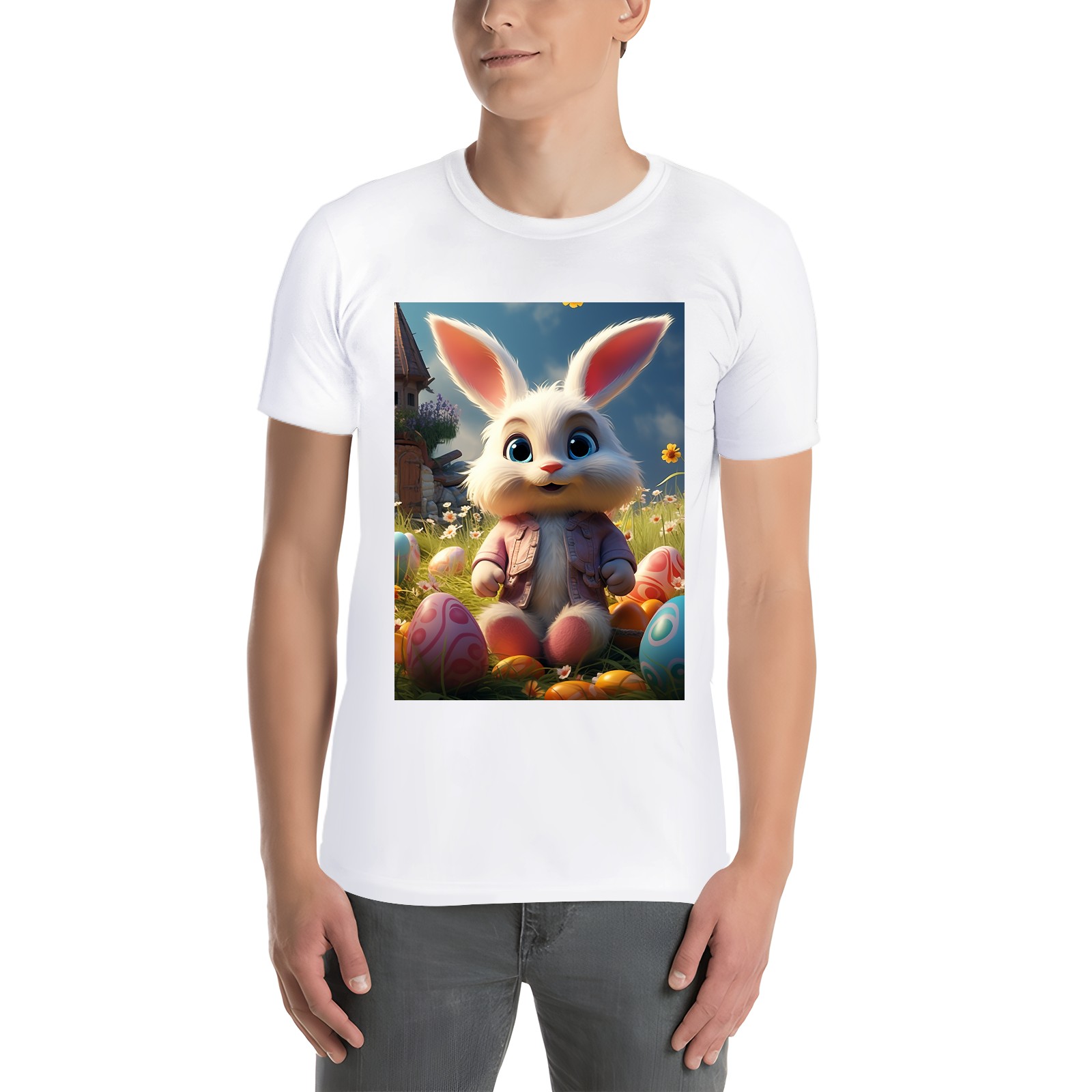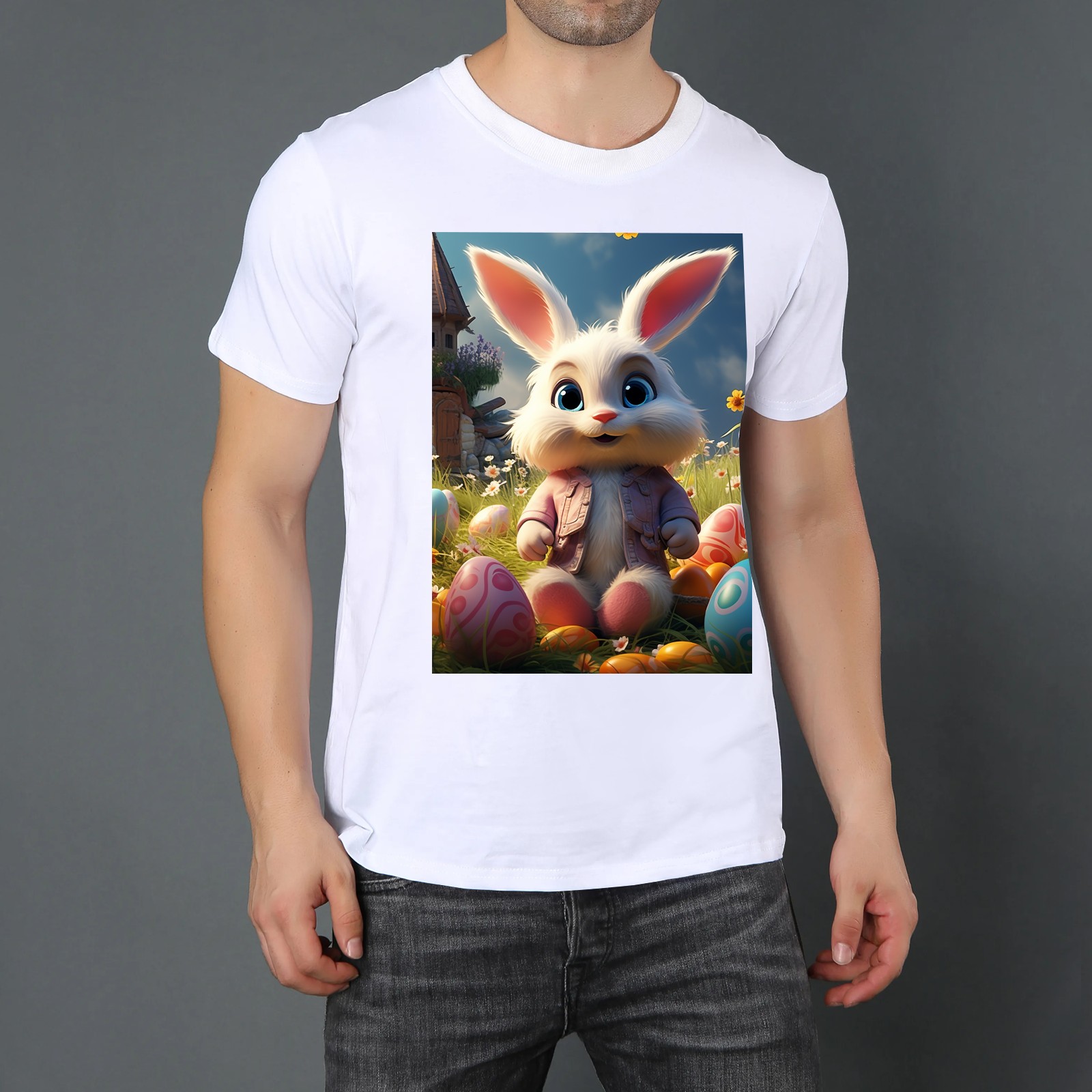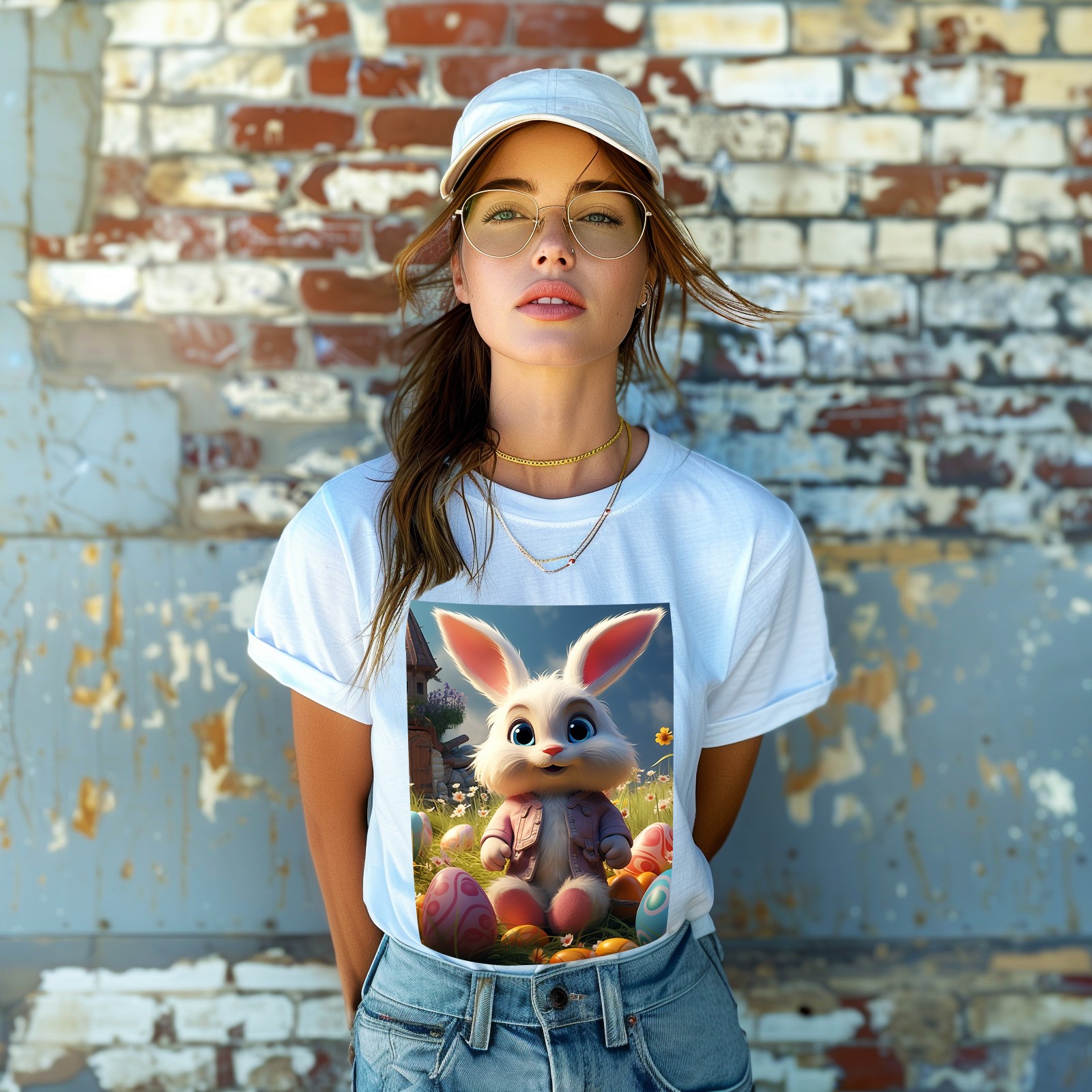 Basic Oversize Tees For WomenBunny Rabbit (20) Loose Boyfriend Shirts Casual Blouse round neck