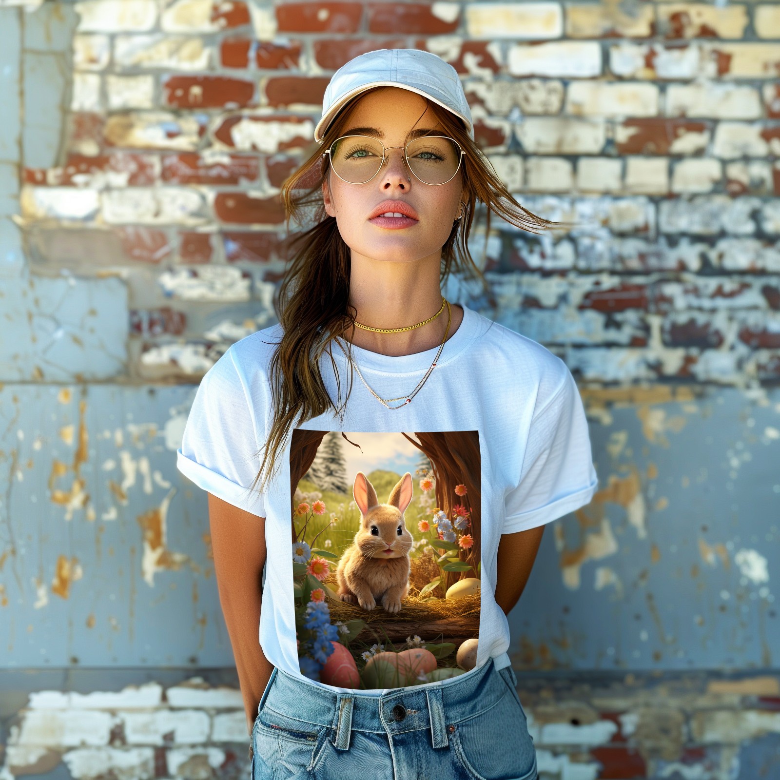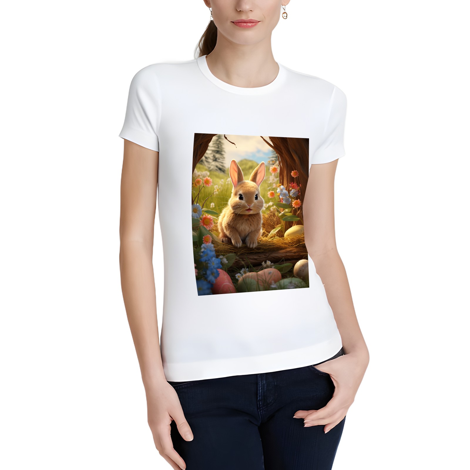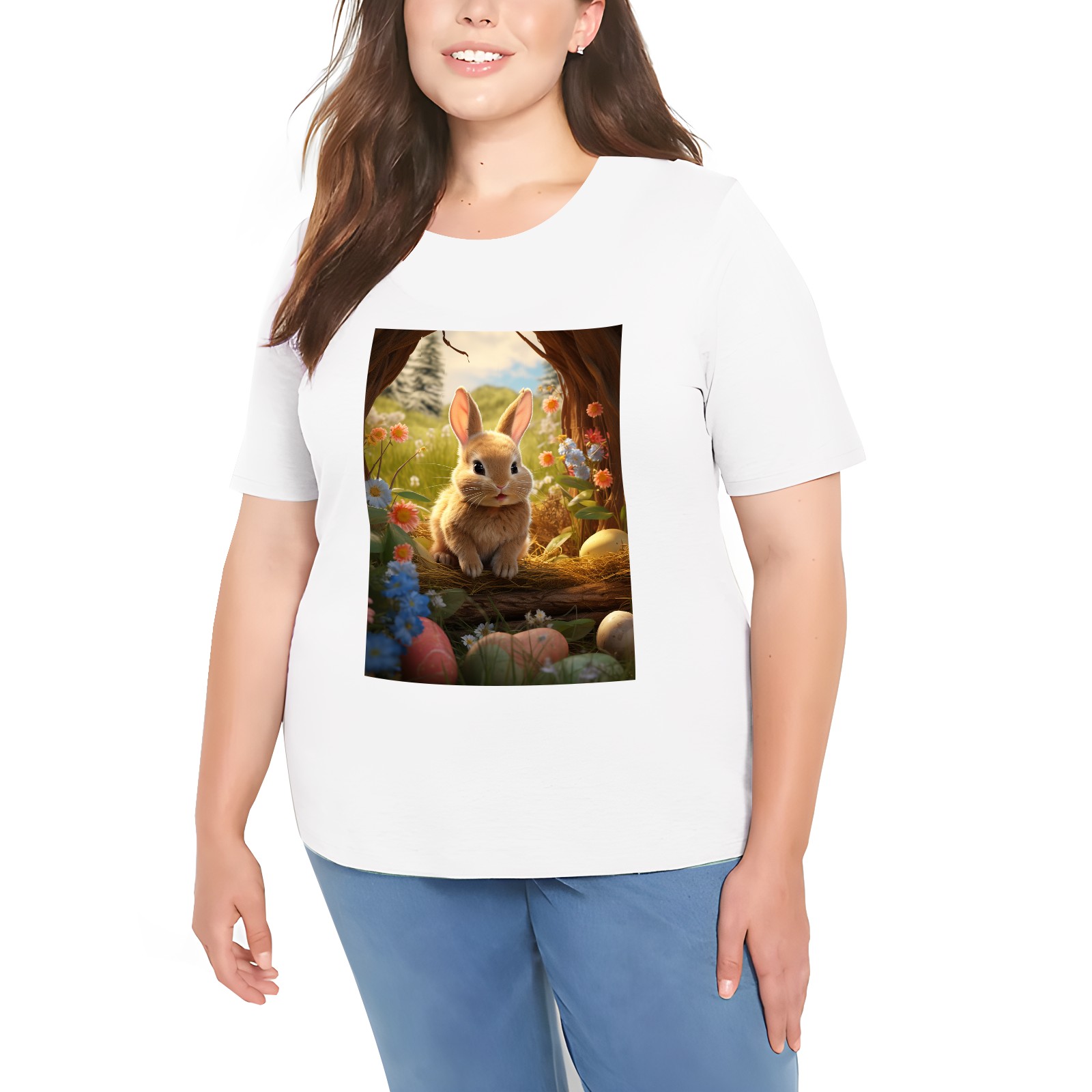 Basic Oversize Tees For WomenBunny Rabbit (16) Loose Boyfriend Shirts Casual Blouse round neck