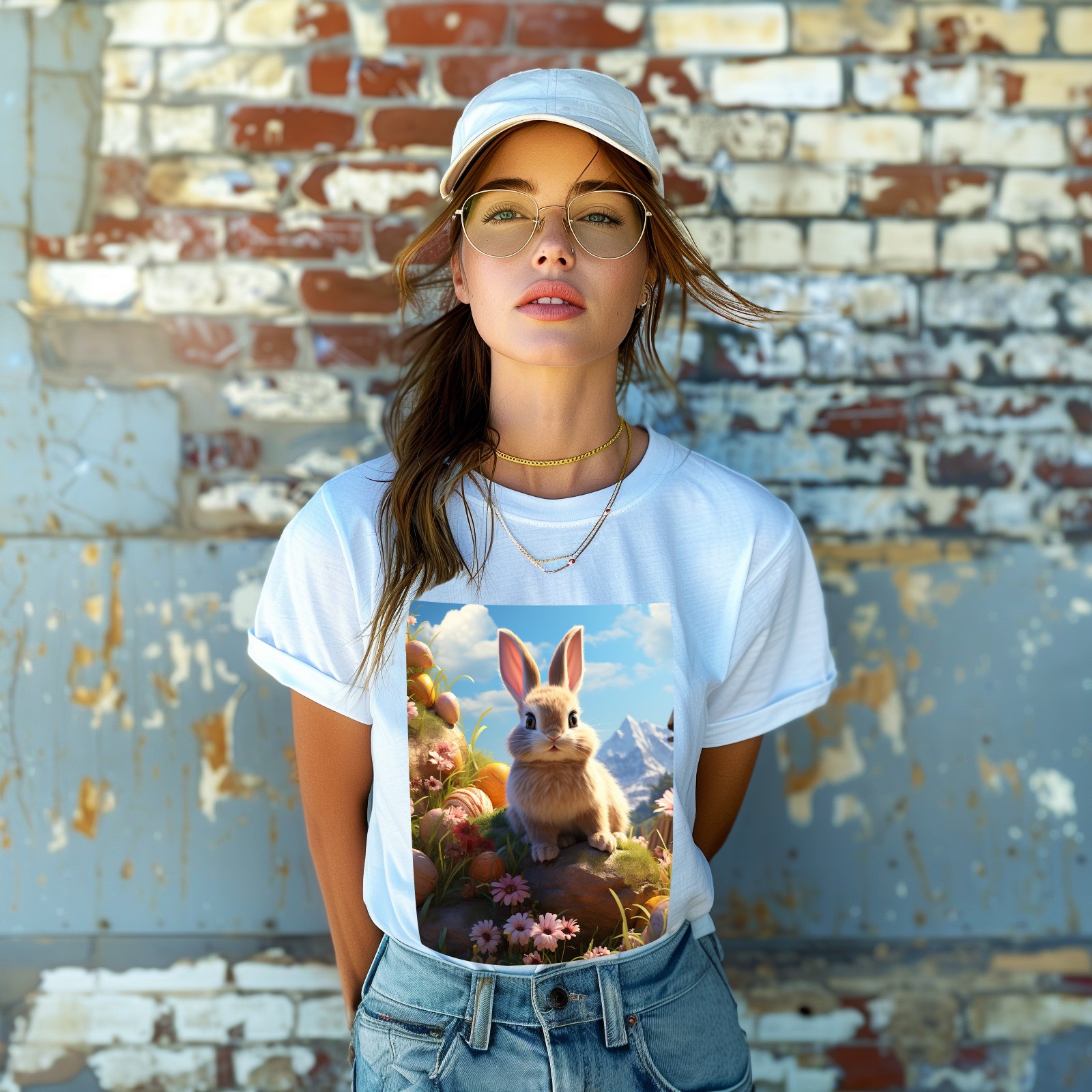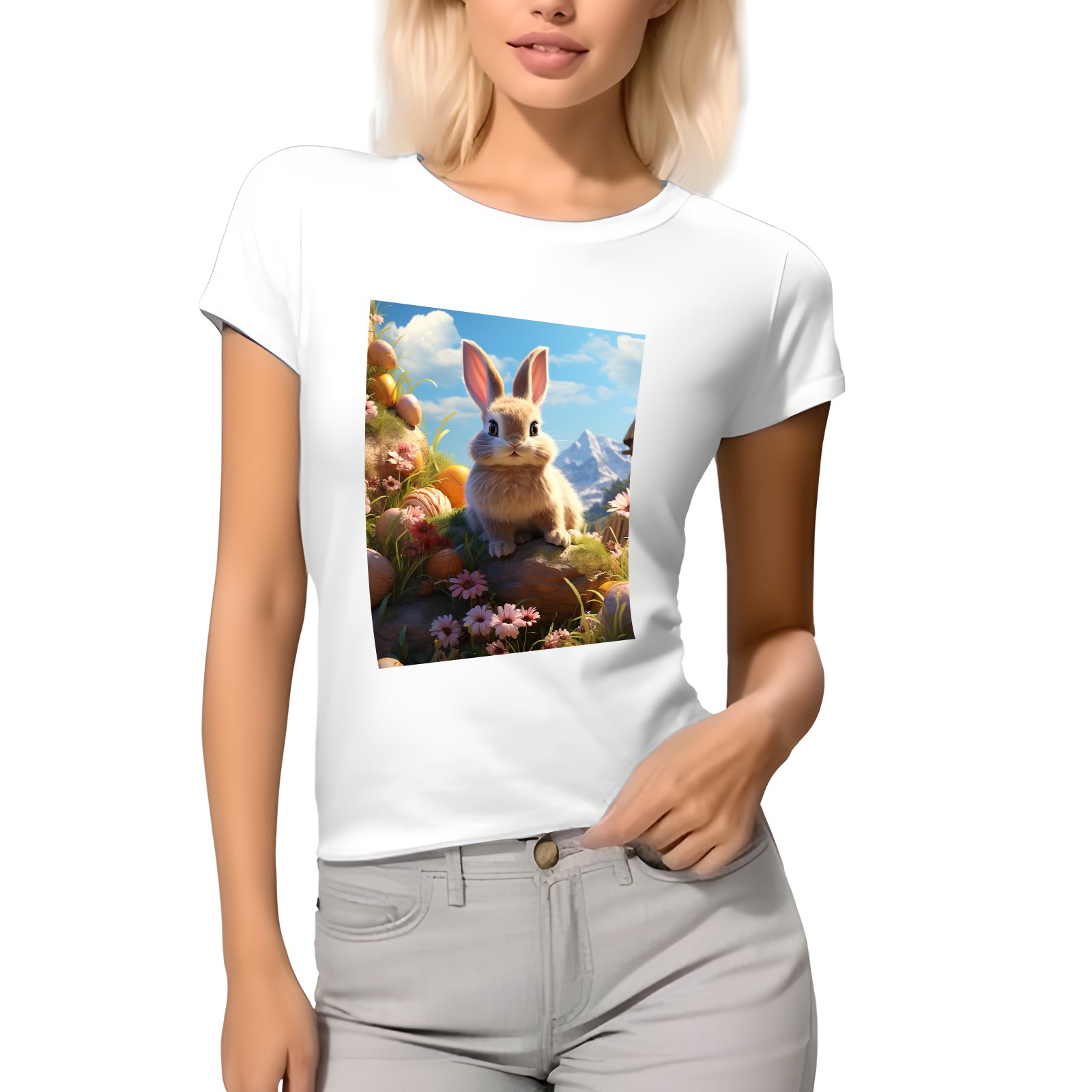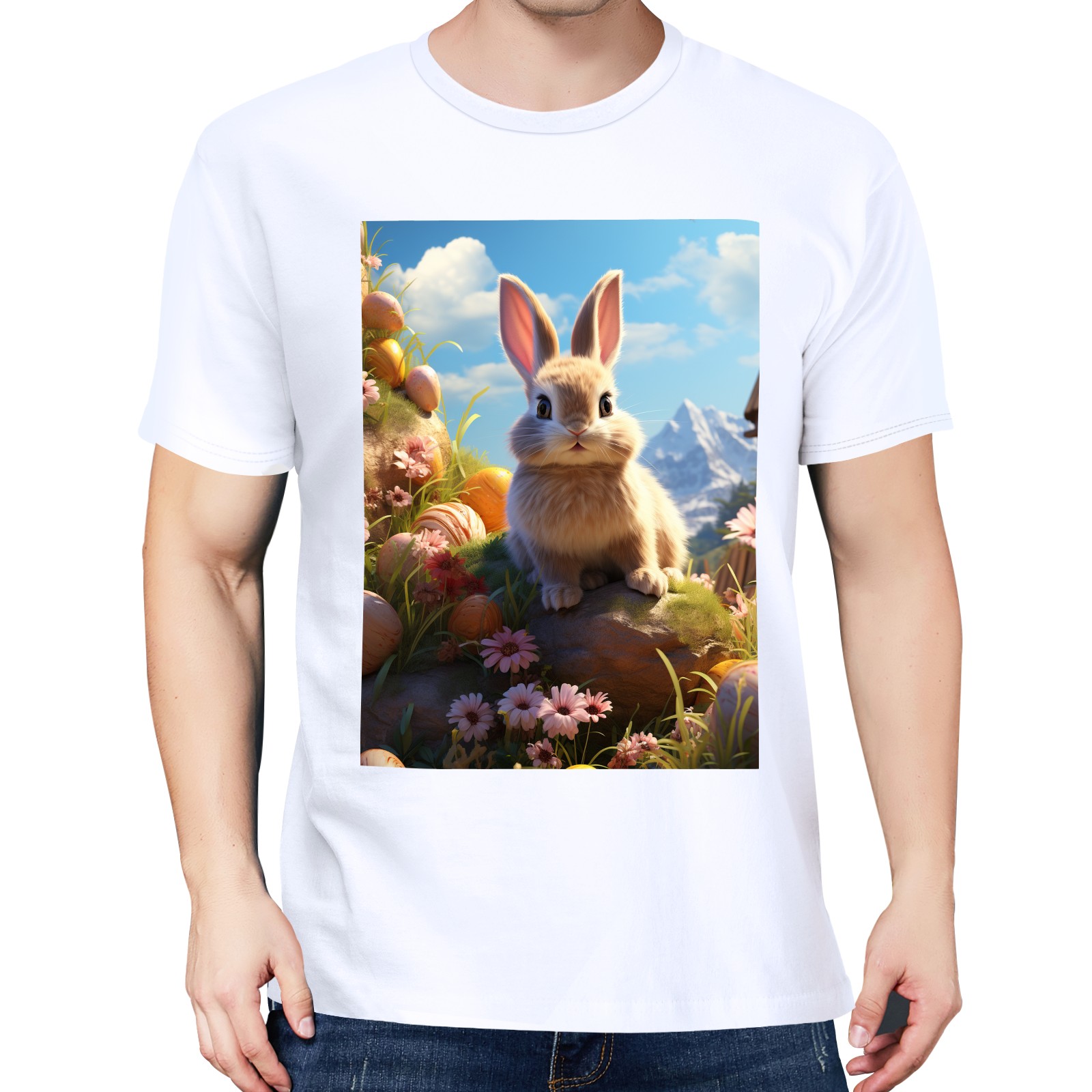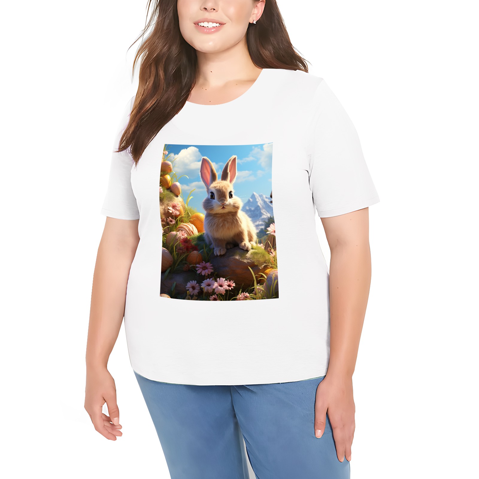 Basic Oversize Tees For WomenBunny Rabbit (15) Loose Boyfriend Shirts Casual Blouse round neck