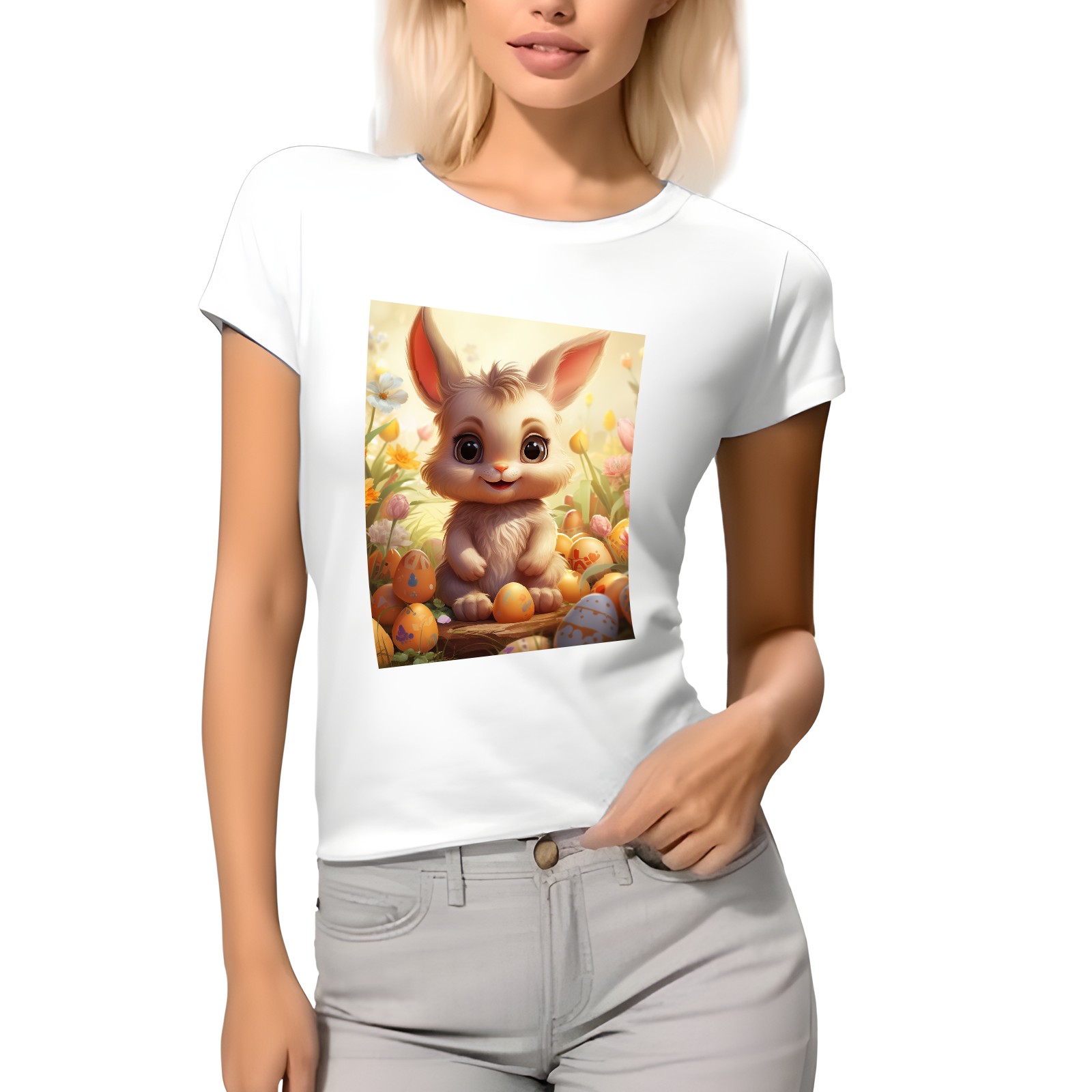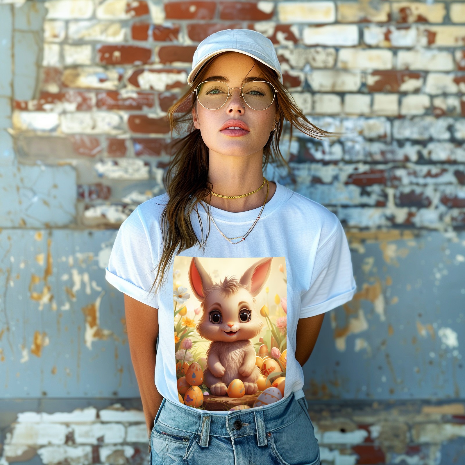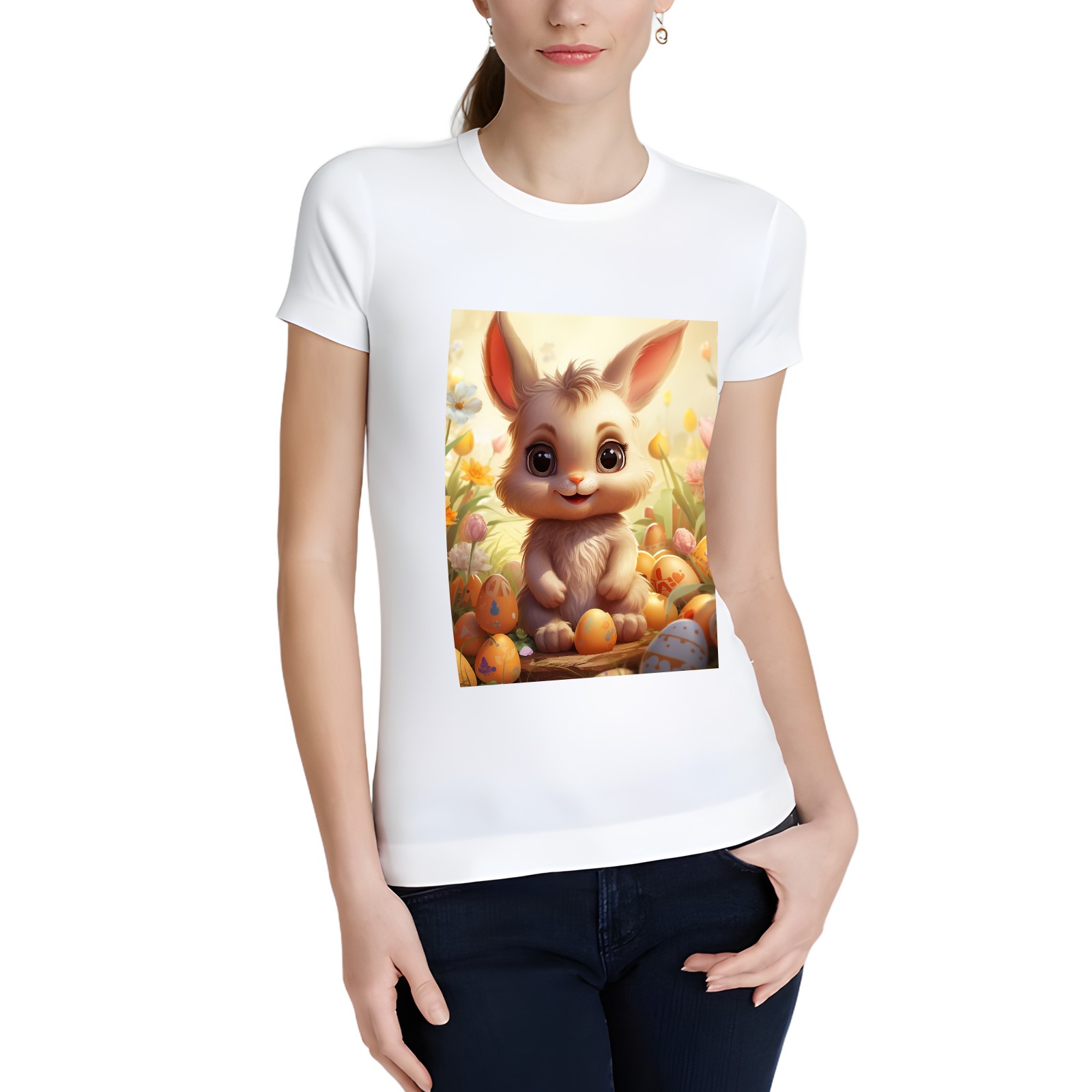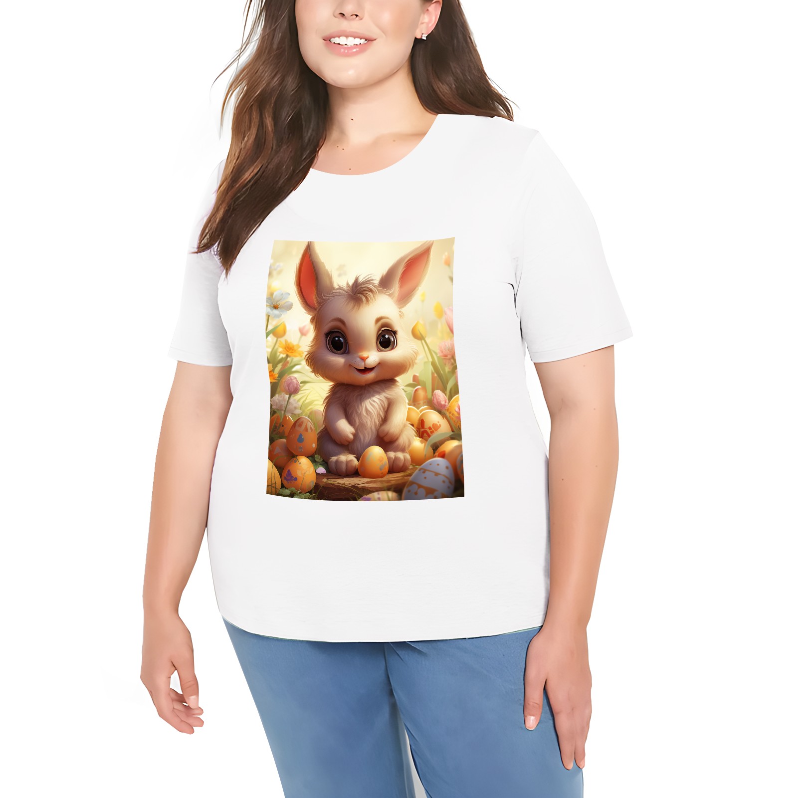Basic Oversize Tees For WomenBunny Rabbit (12) Loose Boyfriend Shirts Casual Blouse round neck