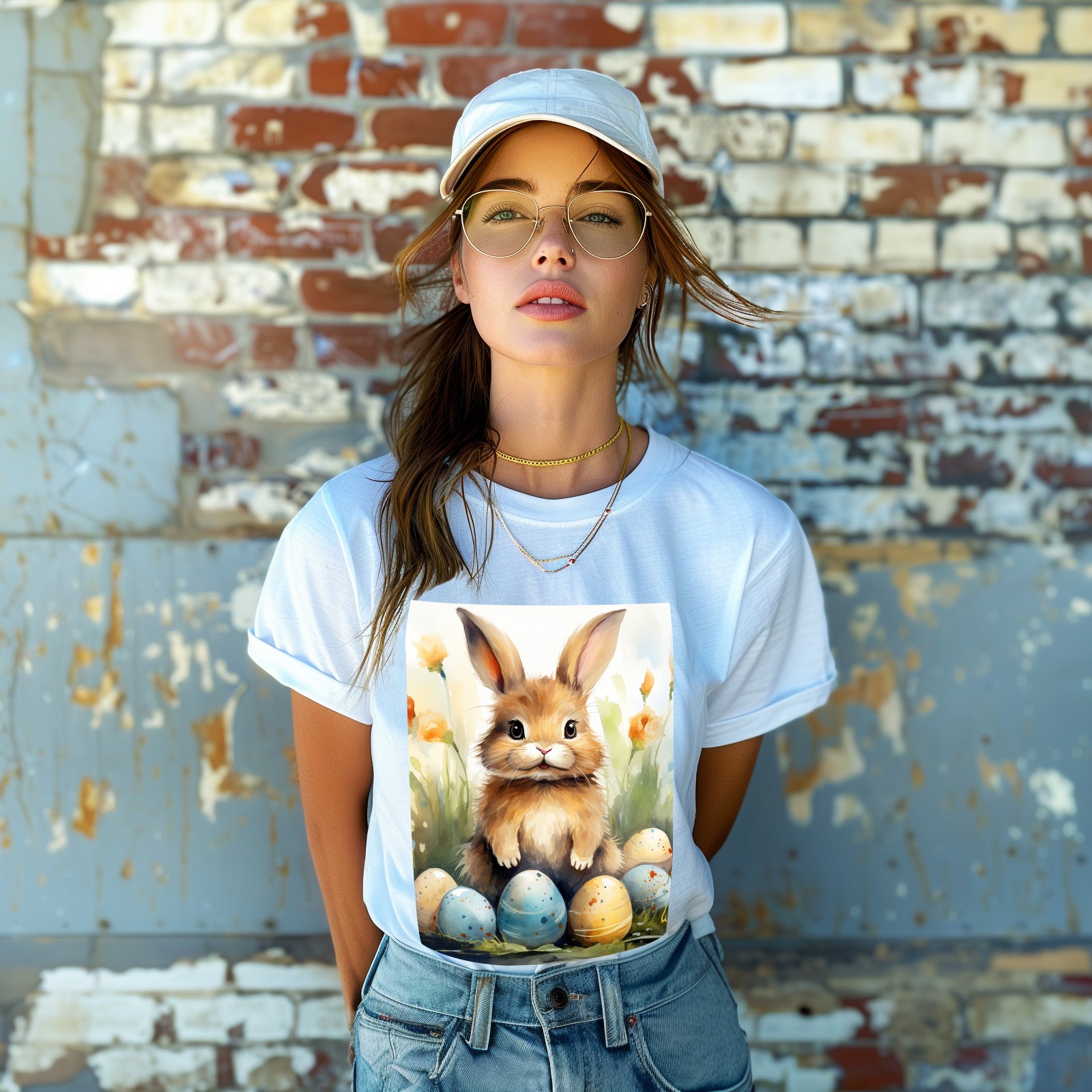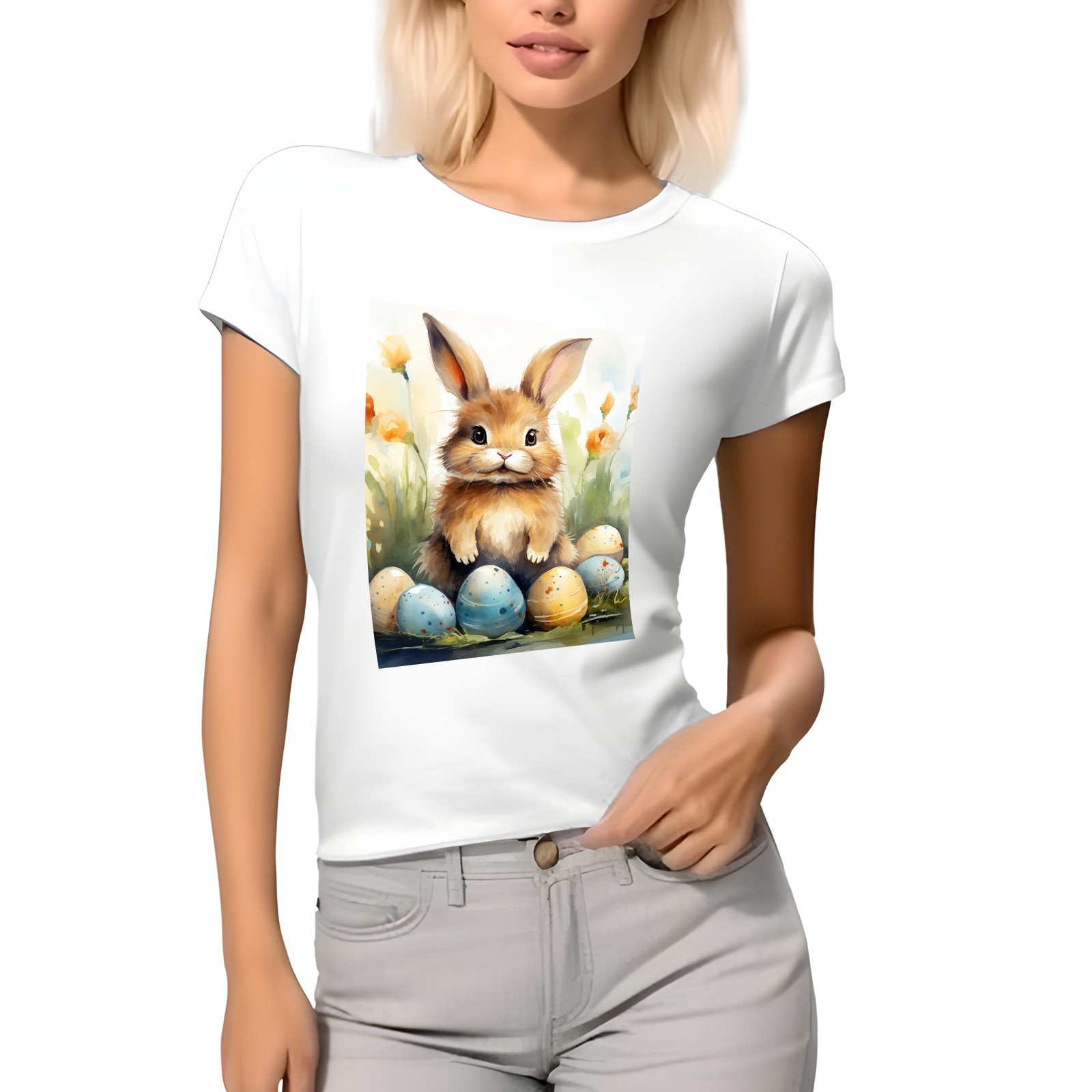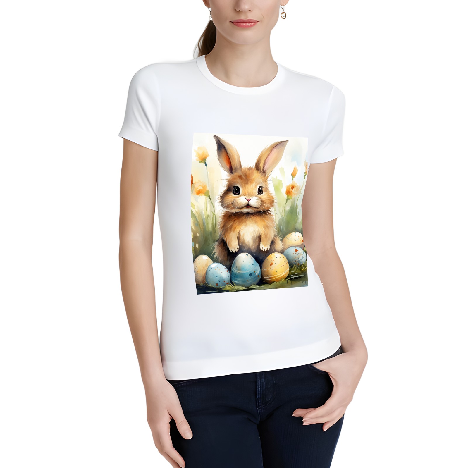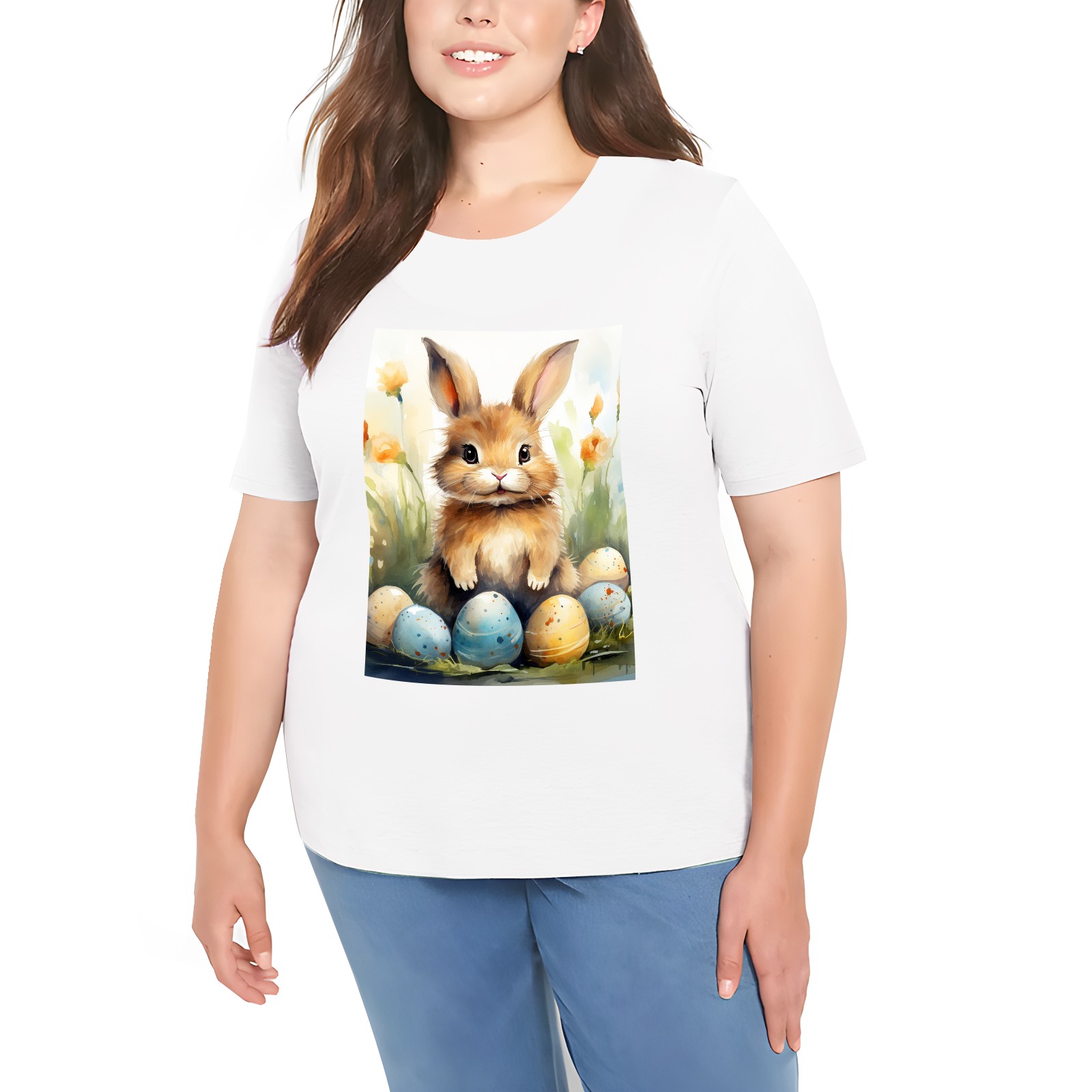 Basic Oversize Tees For WomenBunny Rabbit (8) Loose Boyfriend Shirts Casual Blouse round neck