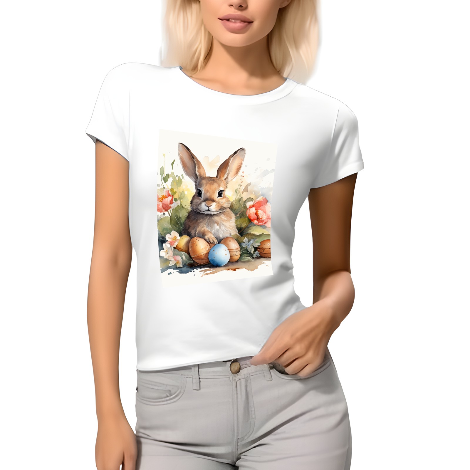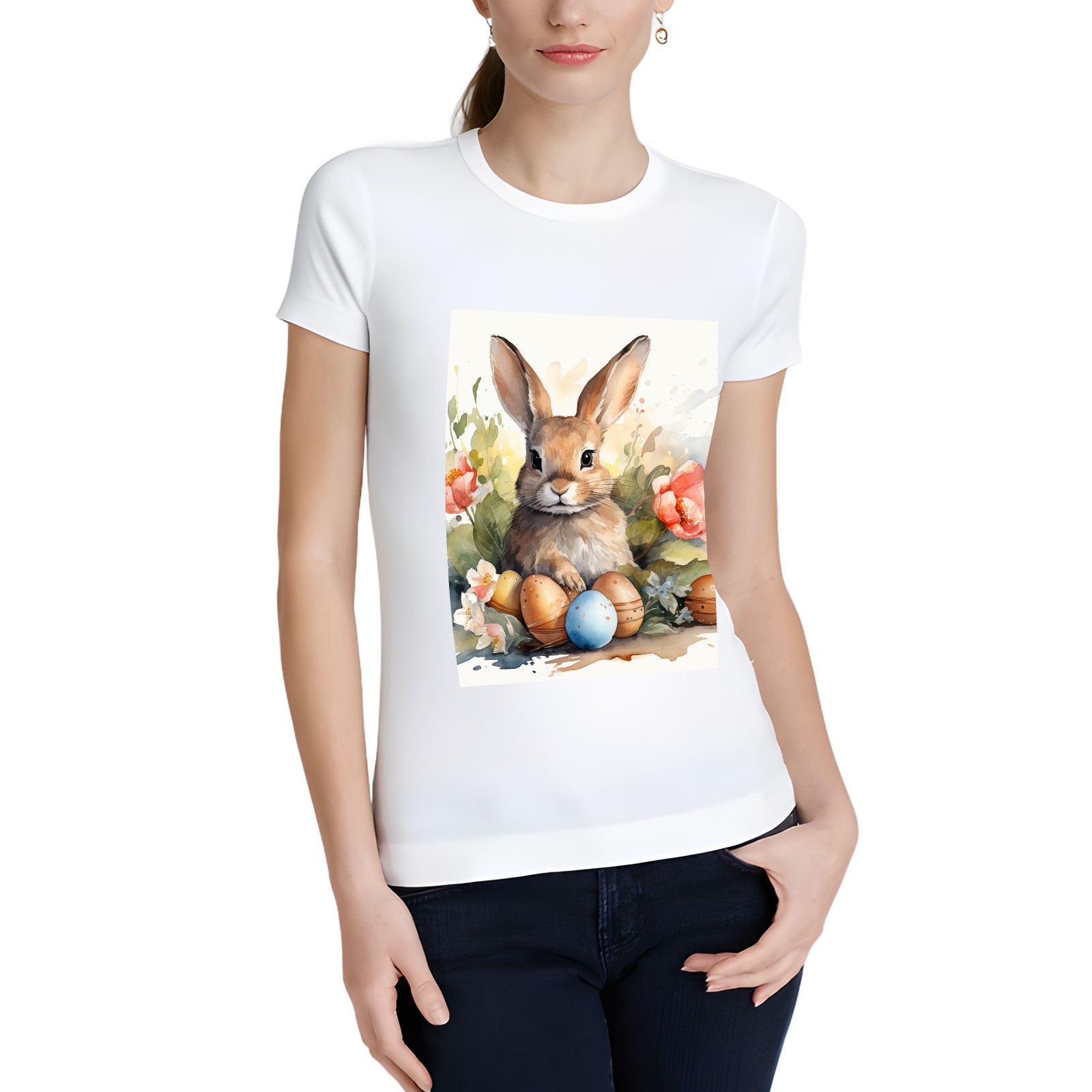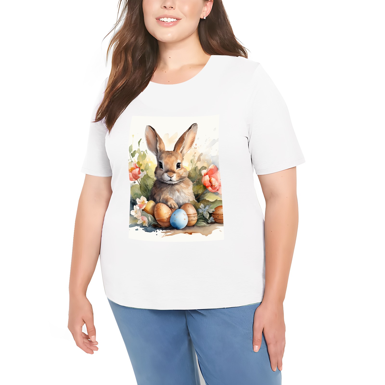 Basic Oversize Tees For WomenBunny Rabbit (10) Loose Boyfriend Shirts Casual Blouse round neck