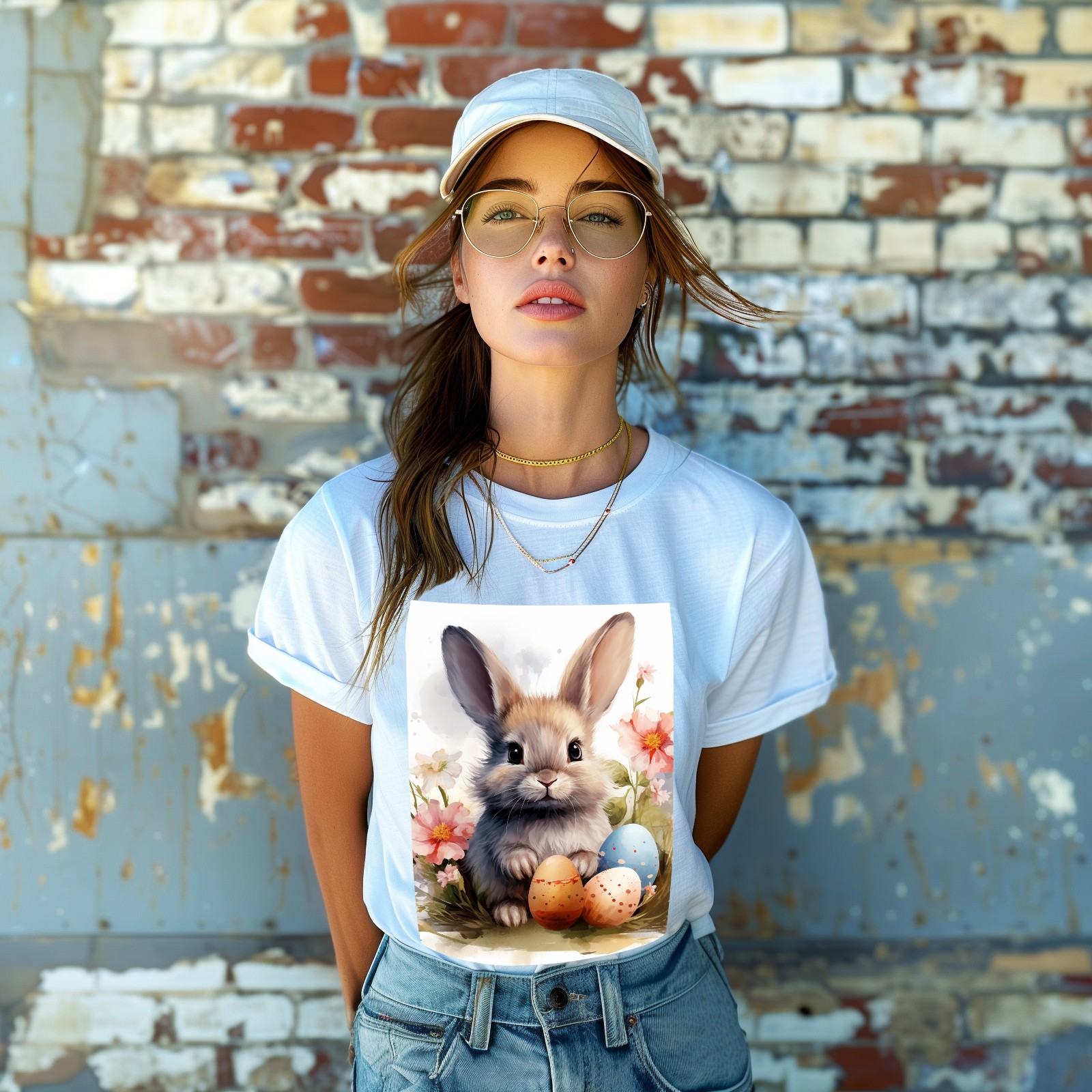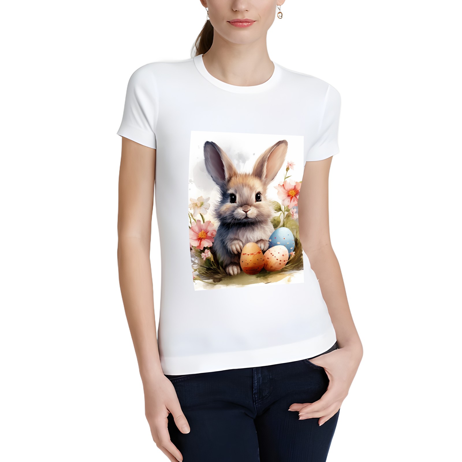 Basic Oversize Tees For WomenBunny Rabbit (9) Loose Boyfriend Shirts Casual Blouse round neck