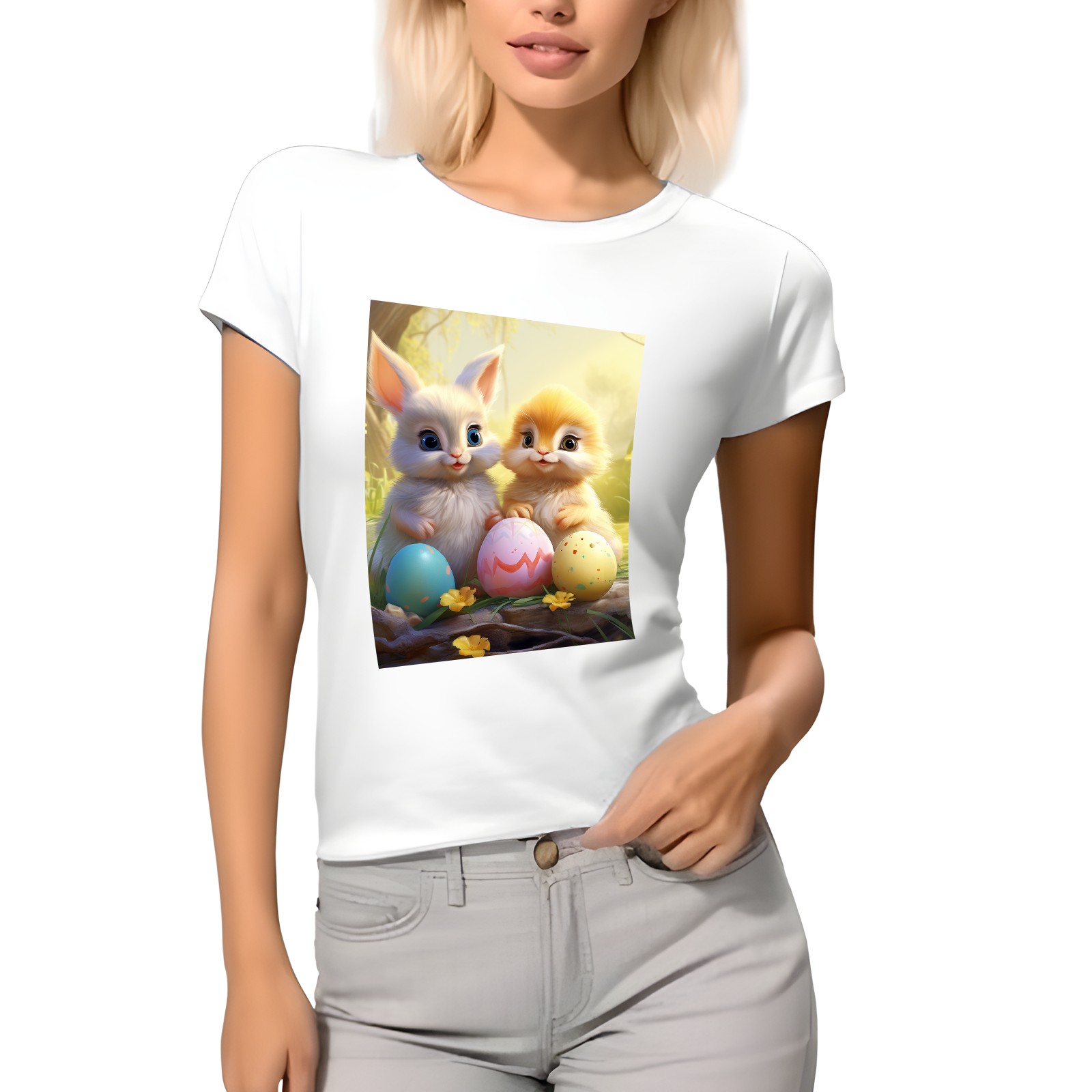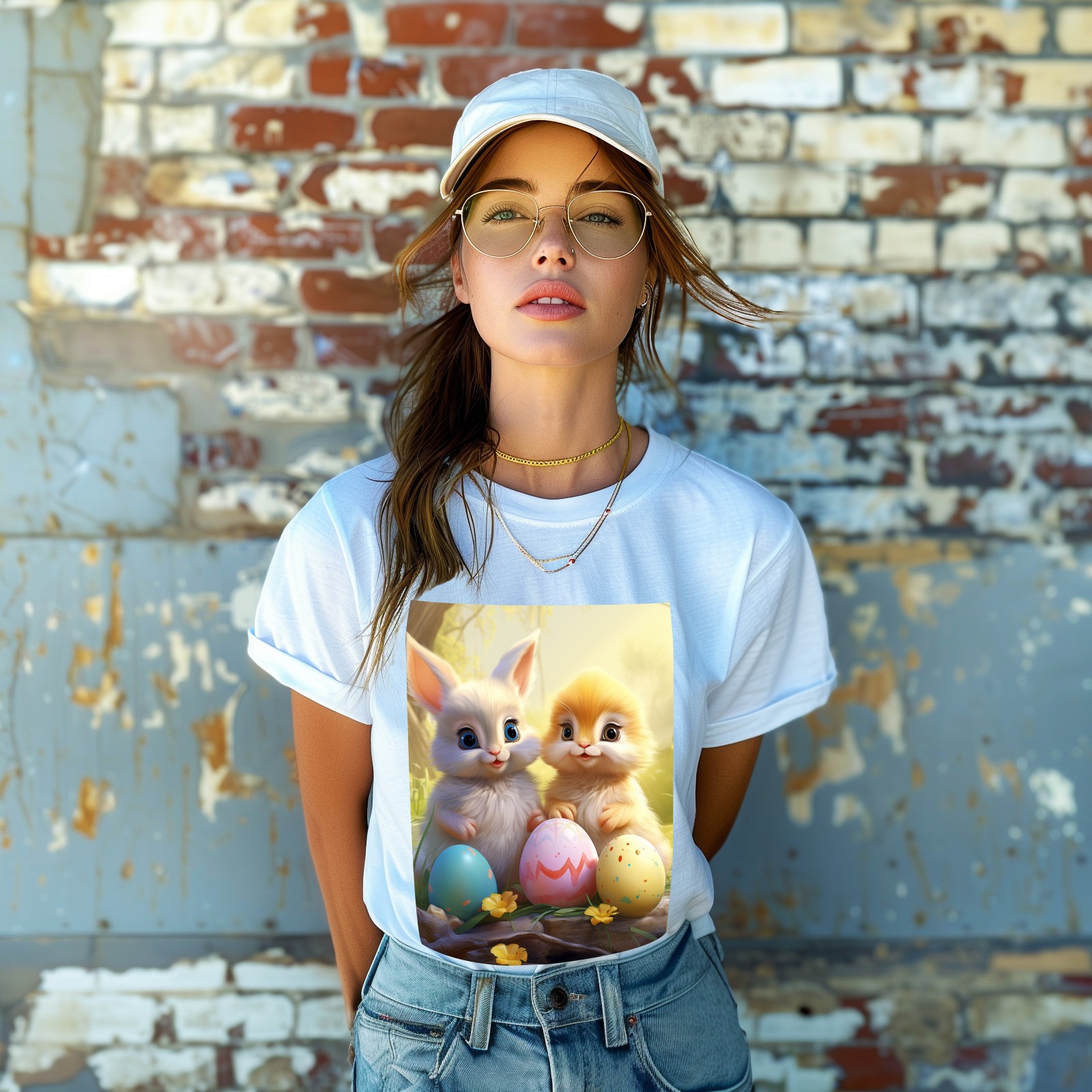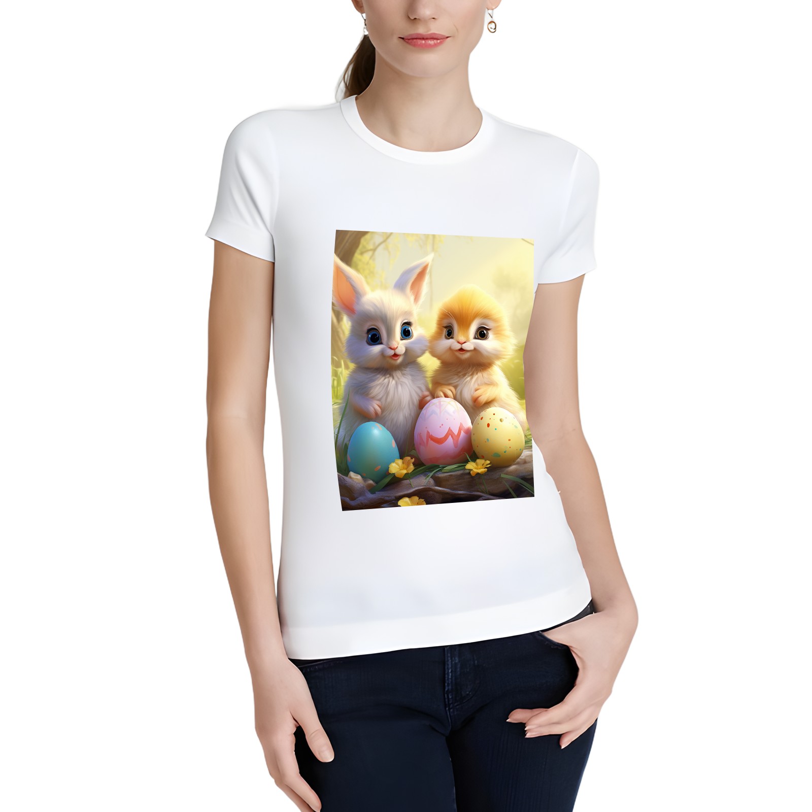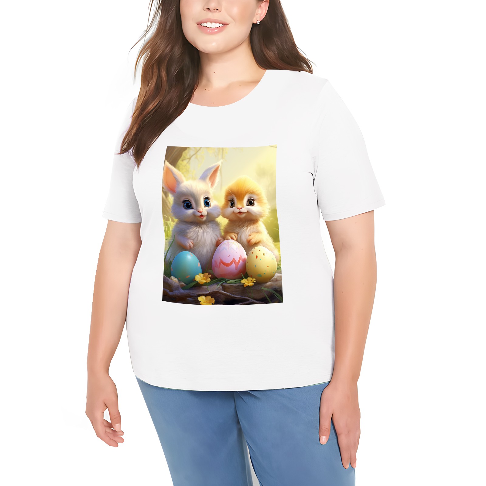 Basic Oversize Tees For WomenBunny Rabbit (6) Loose Boyfriend Shirts Casual Blouse round neck