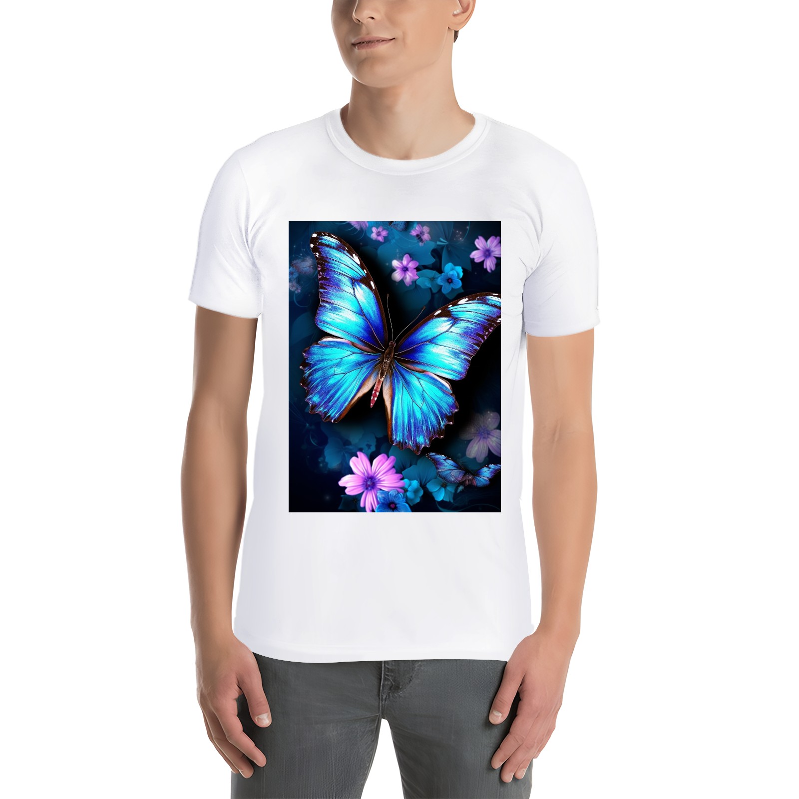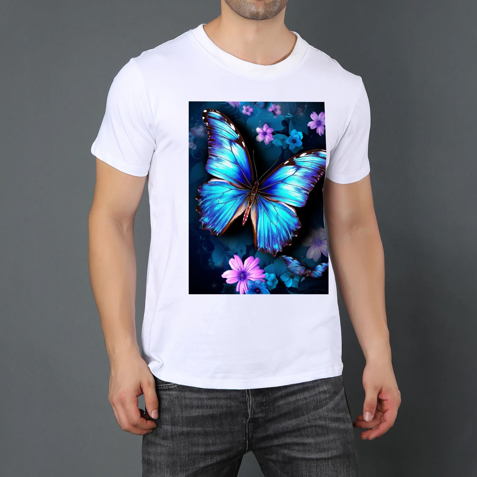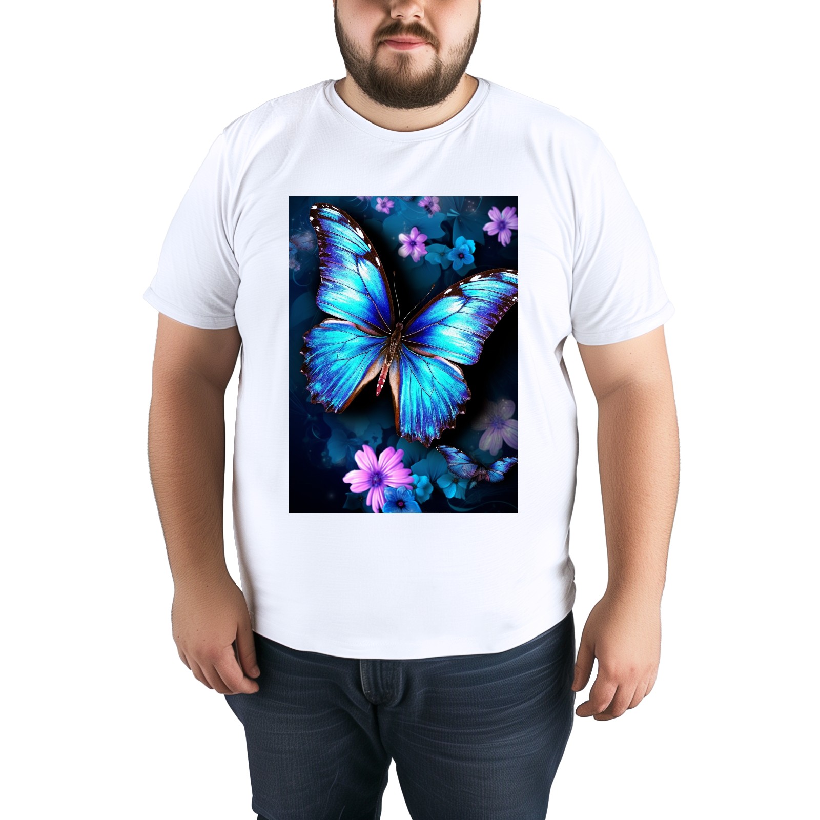 Basic Oversize Tees For WomenBlue Butterflies And Flower (2) Loose Boyfriend Shirts Casual Blouse round neck