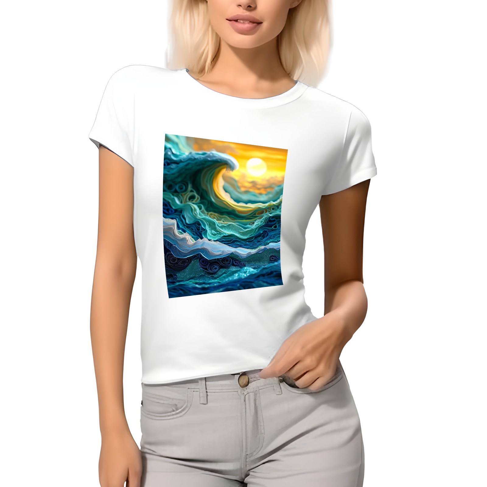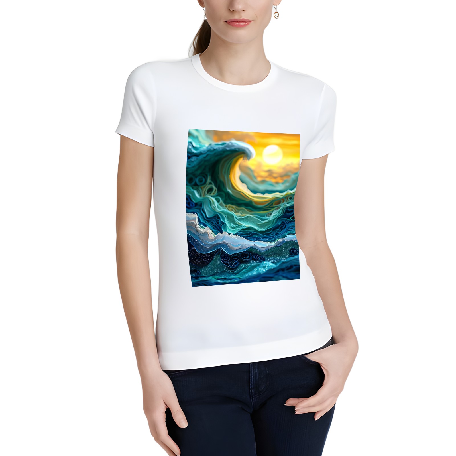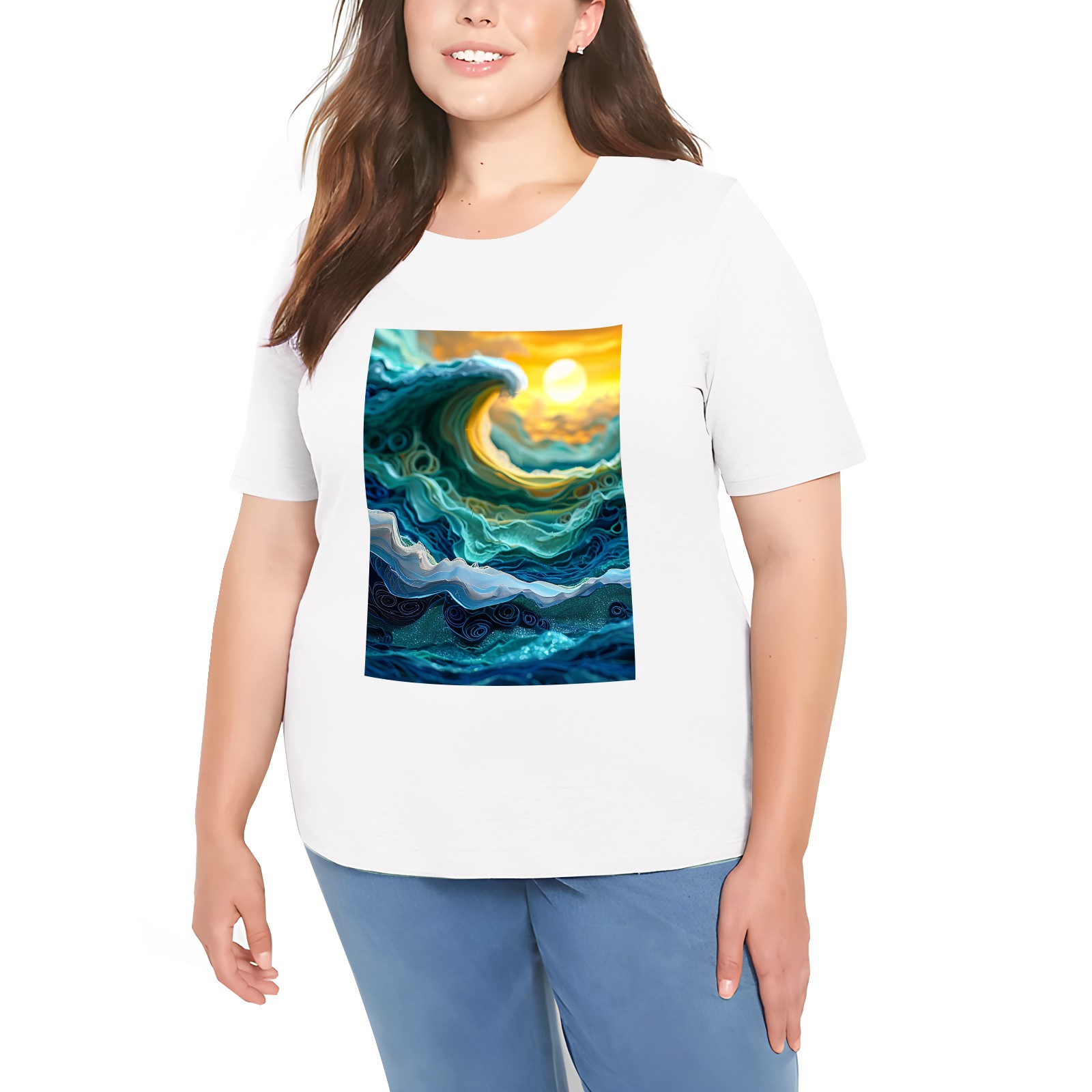 Basic Oversize Tees For WomenBlue Green Sea (4) Loose Boyfriend Shirts Casual Blouse round neck