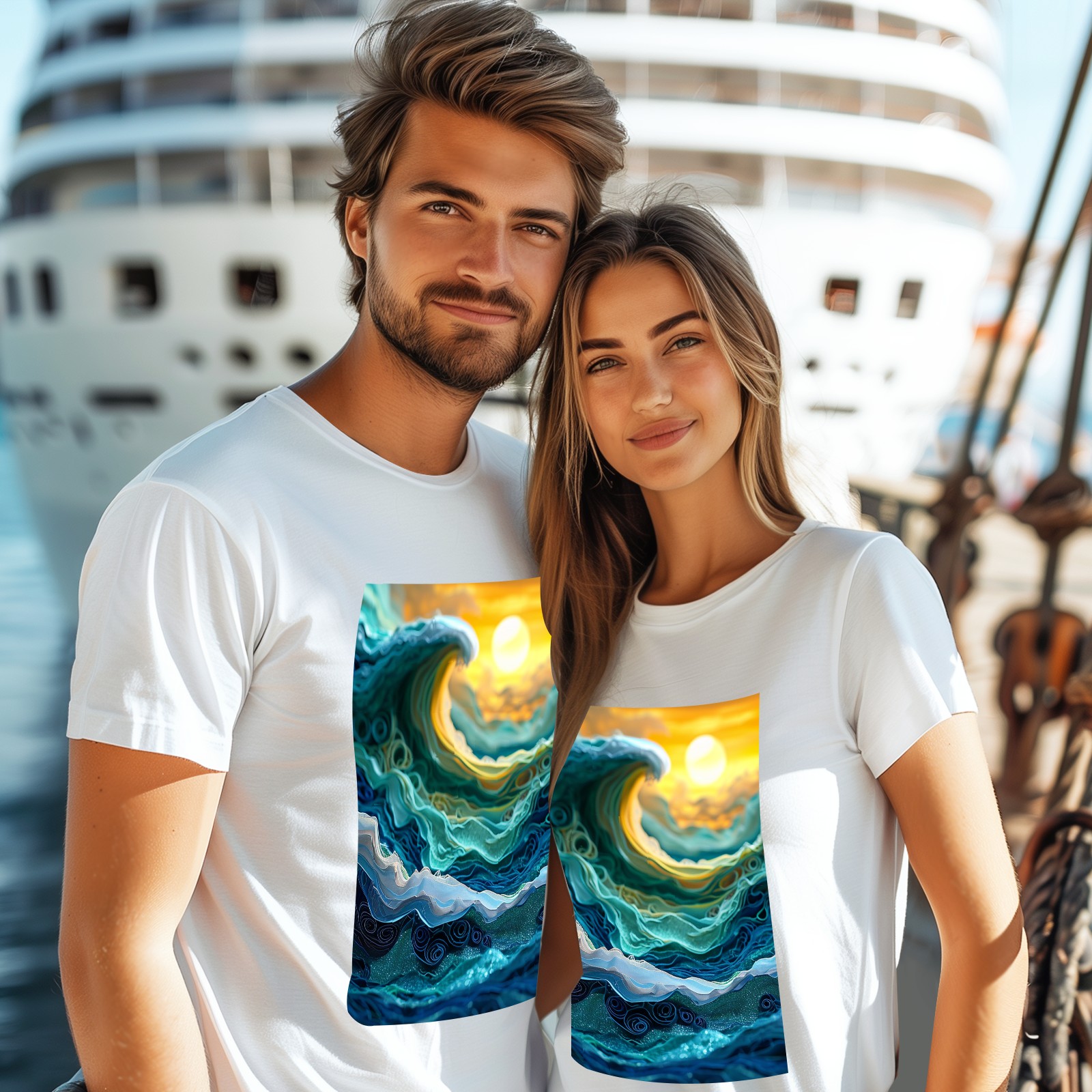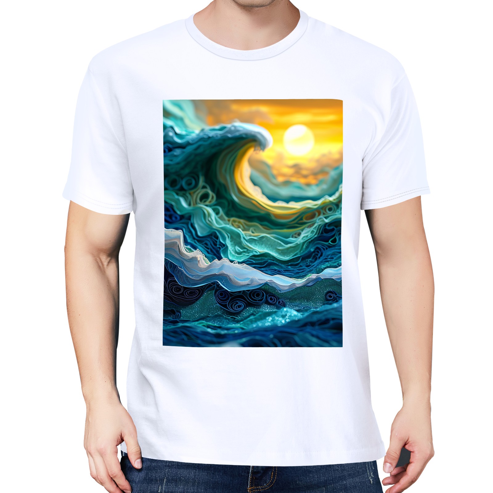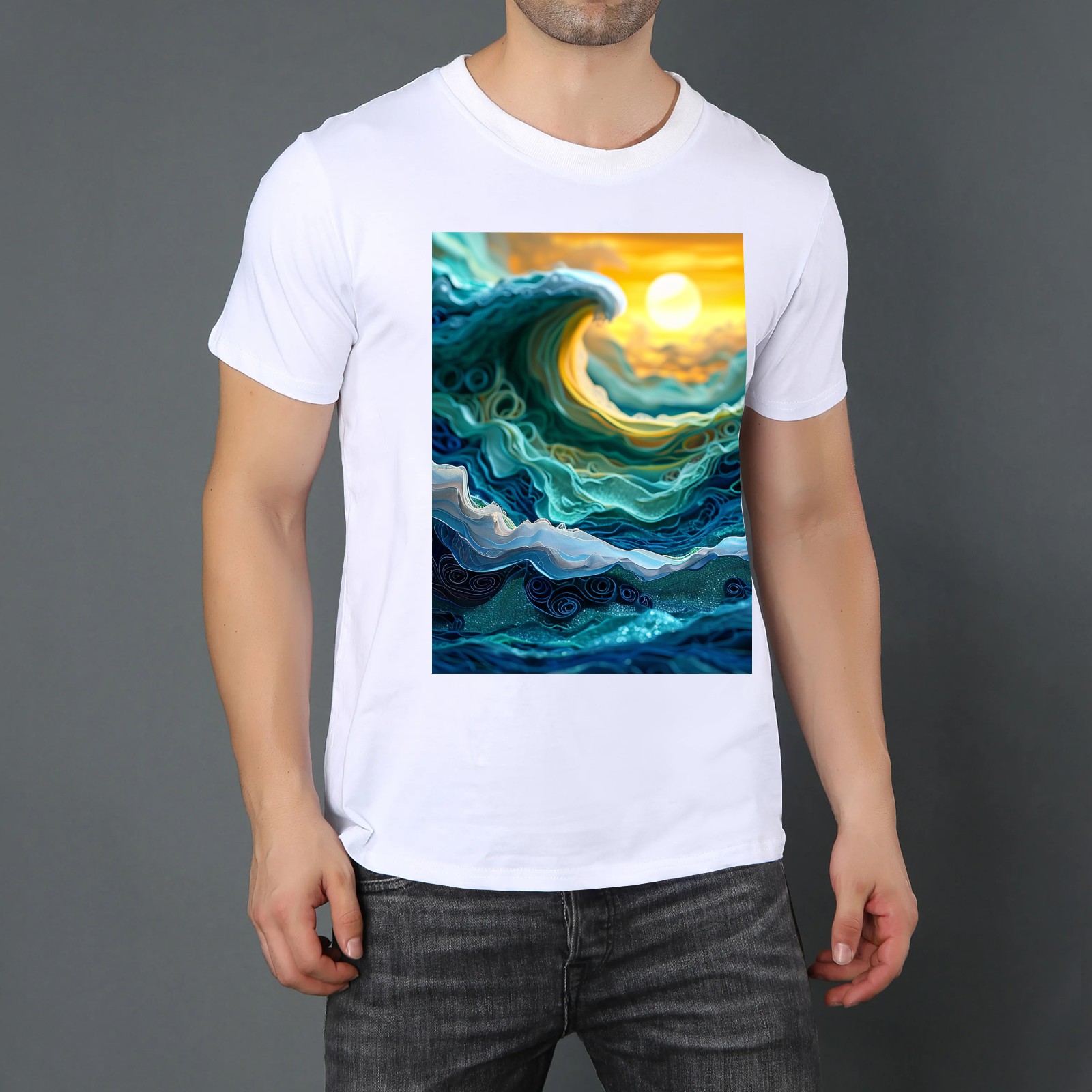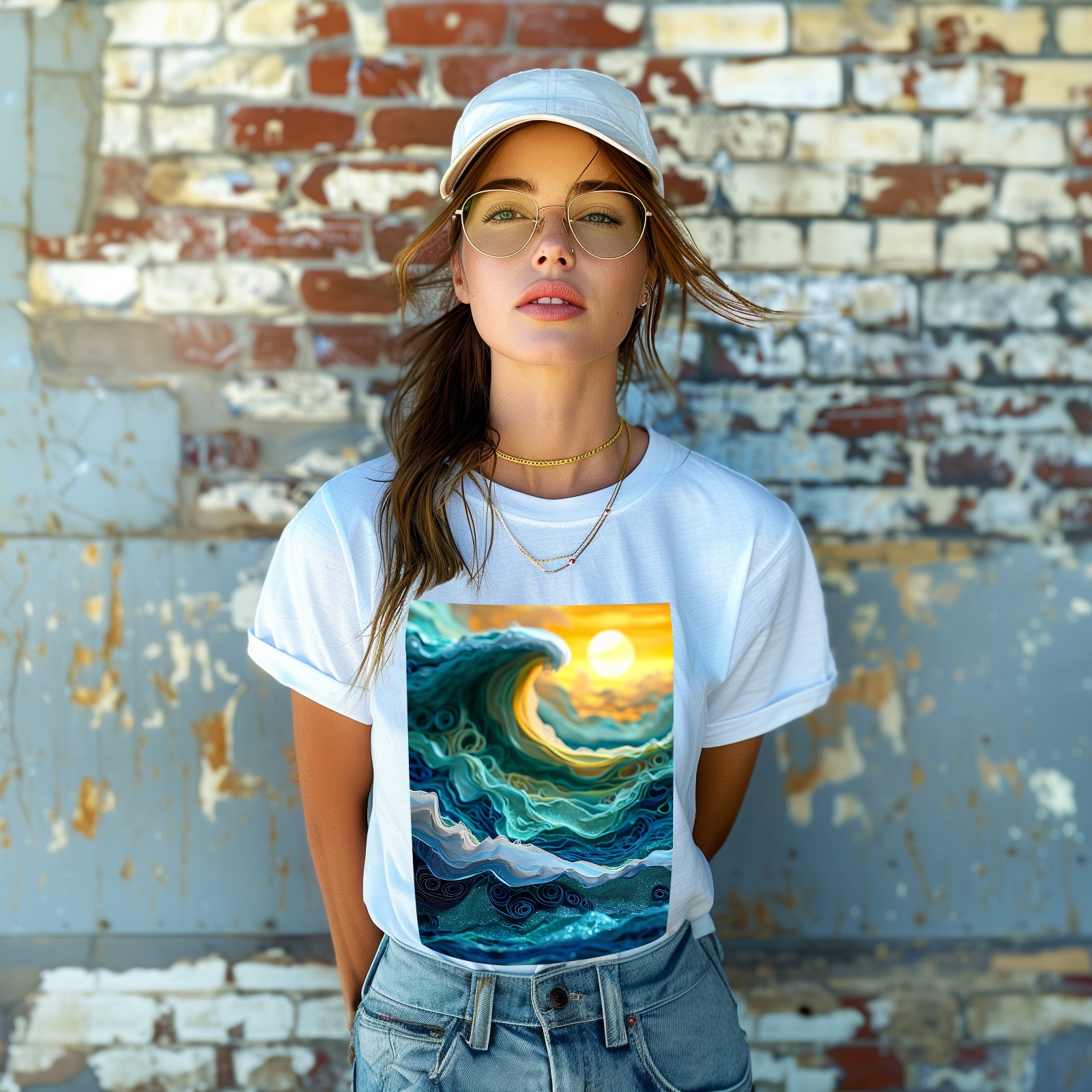 Basic Oversize Tees For WomenBlue Green Sea (4) Loose Boyfriend Shirts Casual Blouse round neck