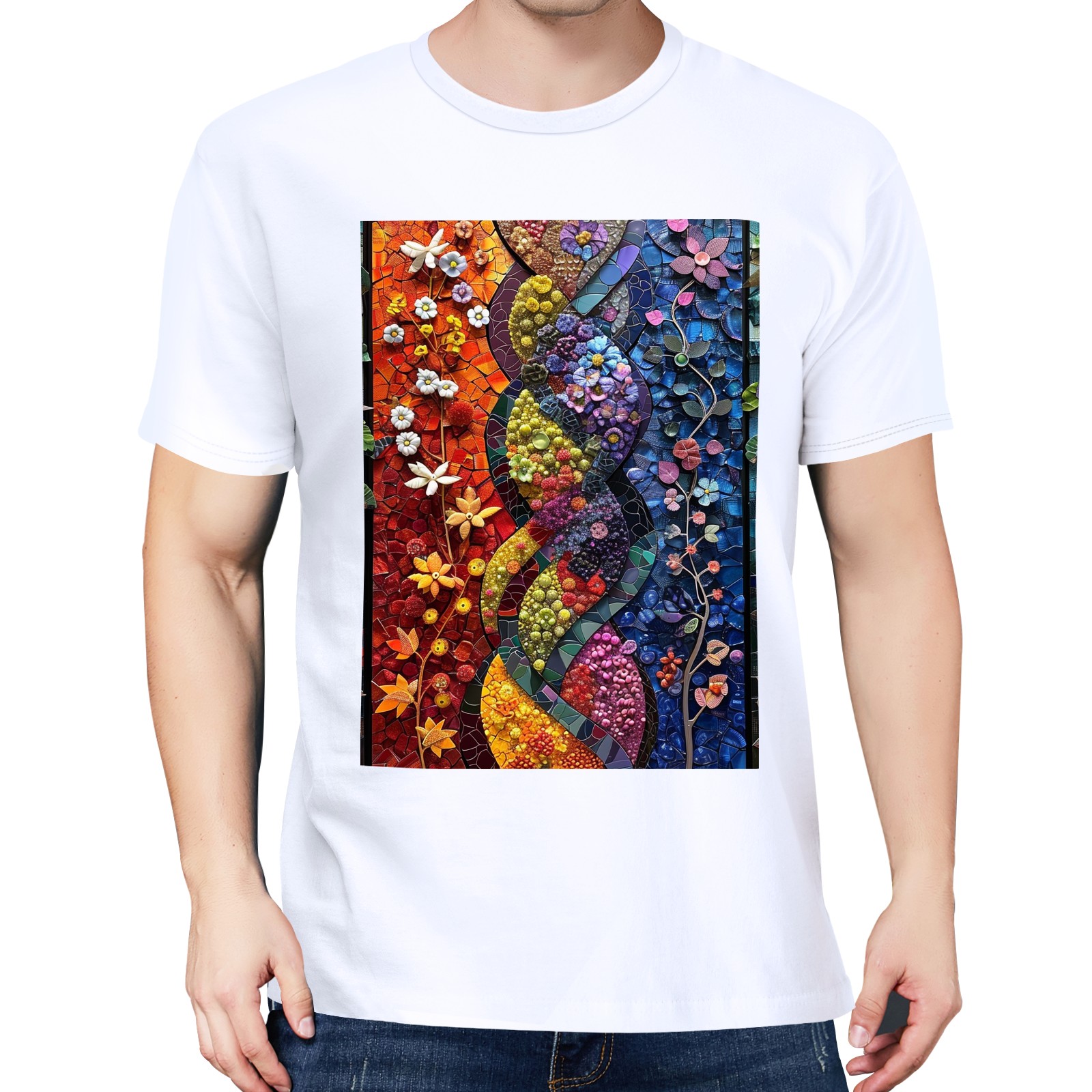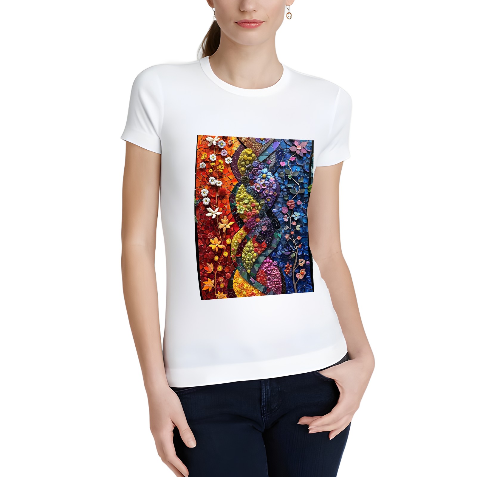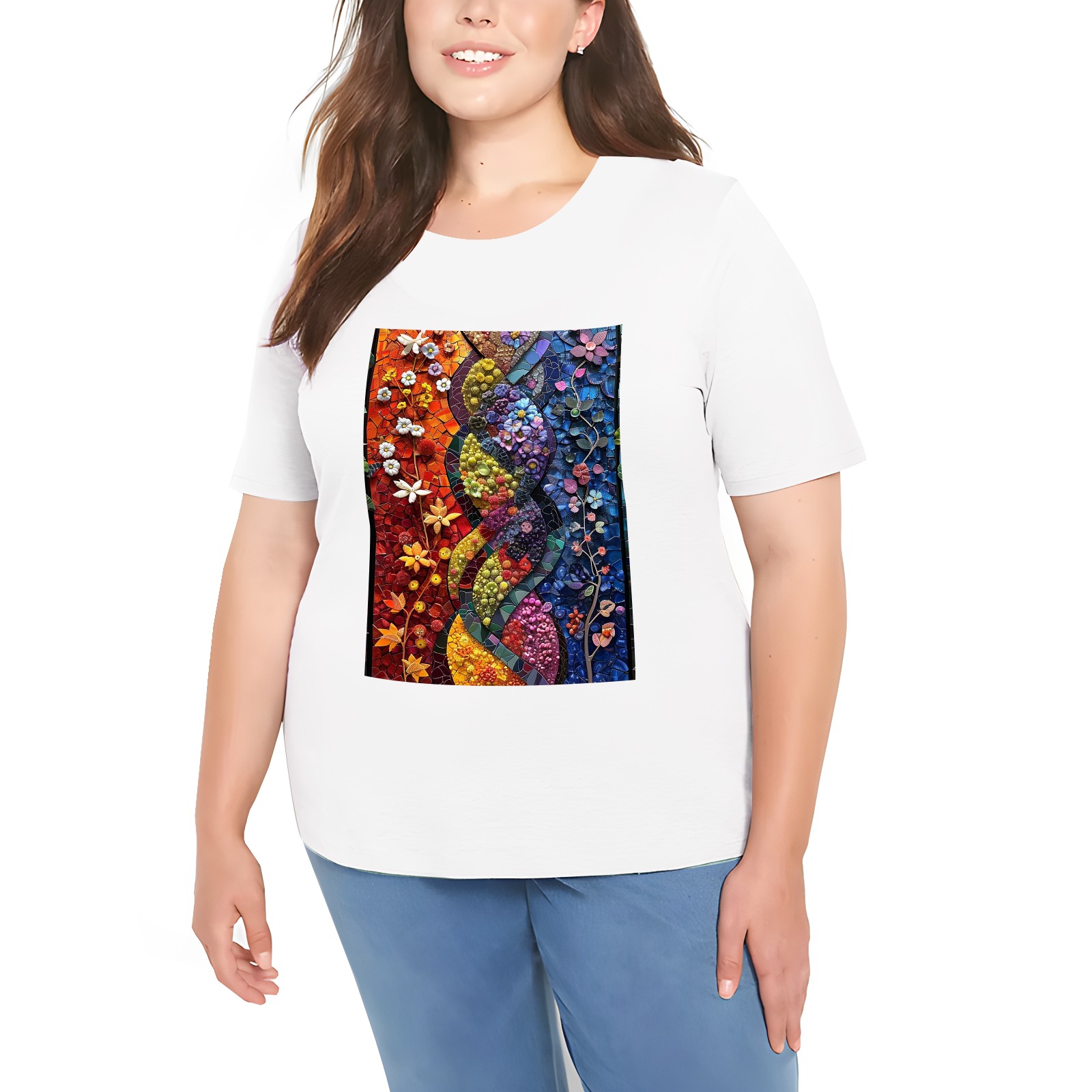 Basic Oversize Tees For WomenArtistic Floral (1) Loose Boyfriend Shirts Casual Blouse round neck