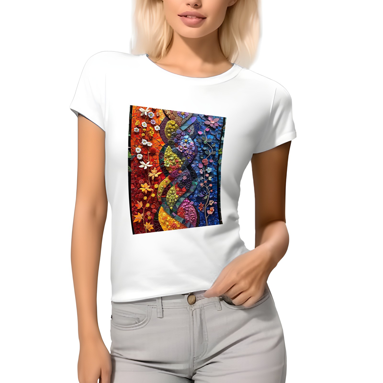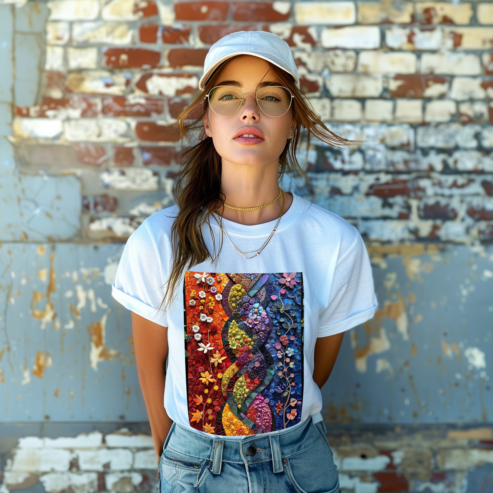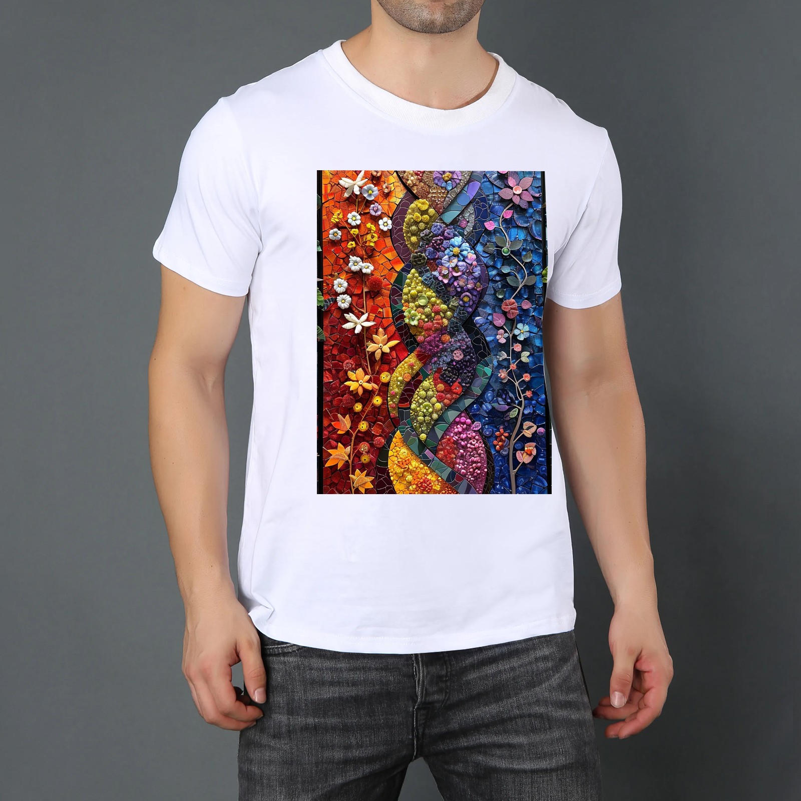 Basic Oversize Tees For WomenArtistic Floral (1) Loose Boyfriend Shirts Casual Blouse round neck