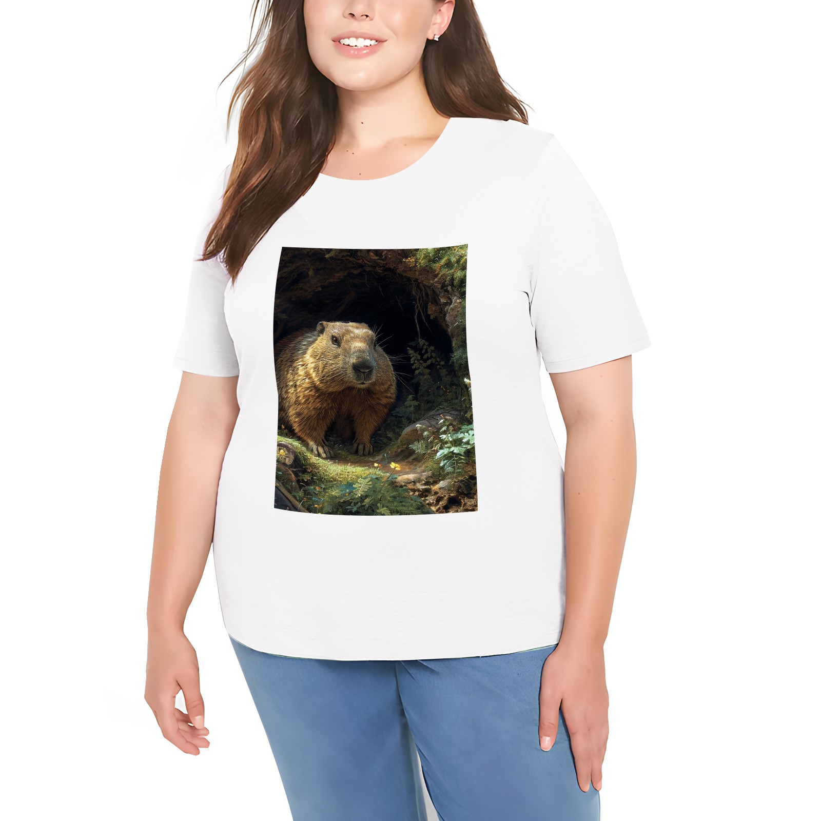 Basic Oversize Tees For WomenAnimal (6) Loose Boyfriend Shirts Casual Blouse round neck
