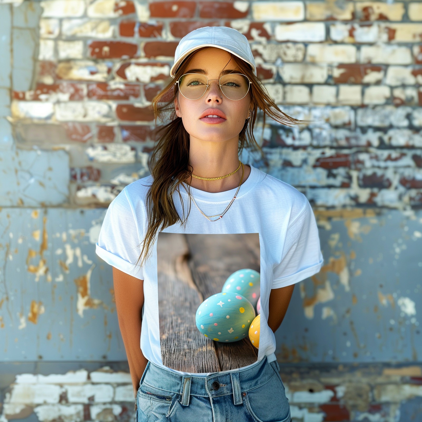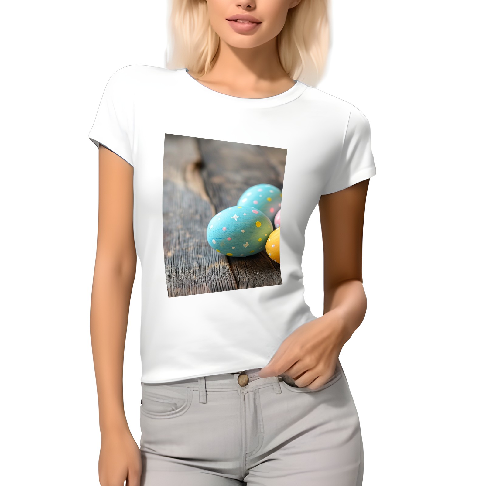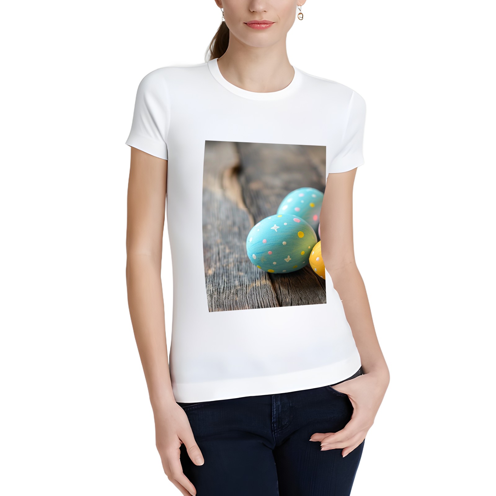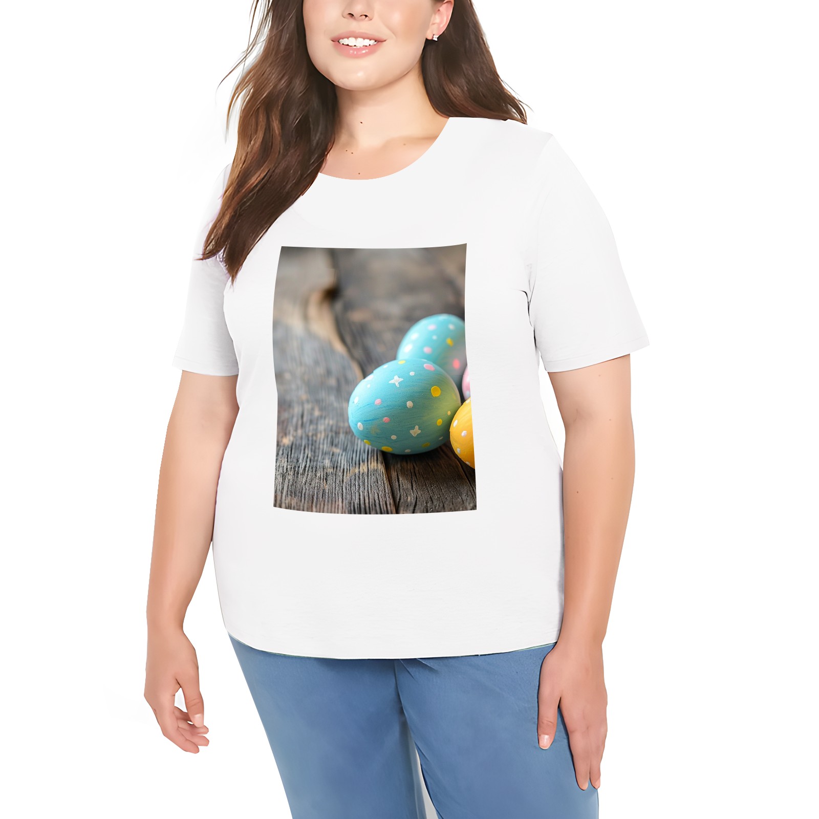 Basic Oversize Tees For WomenBjkj_Easter_eggs_on_a_wooden_background_a3445a89-a159-4fde-a52d-38d4e90d6861 Loose Boyfriend Shirts Casual Blouse round neck