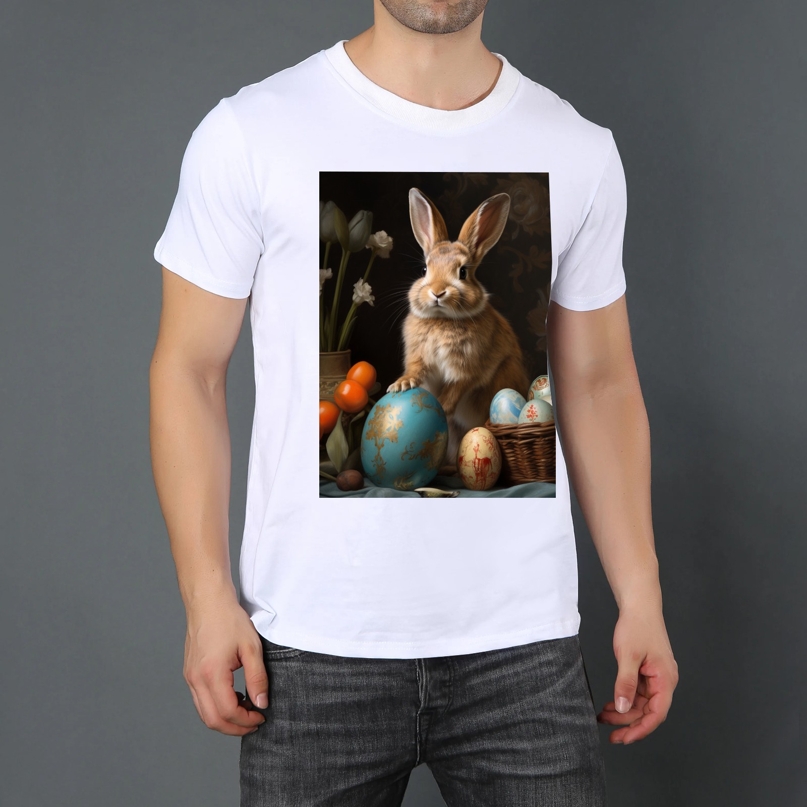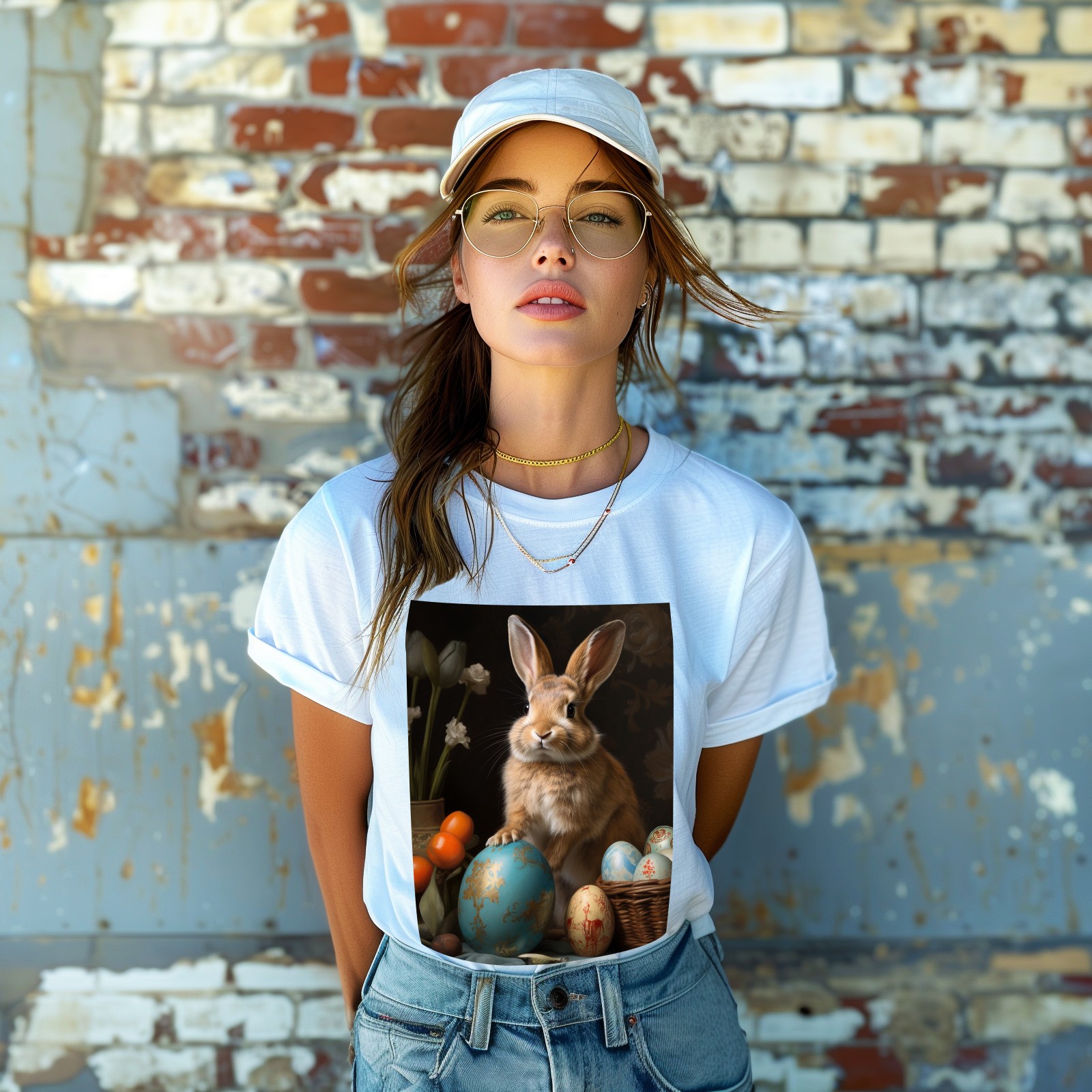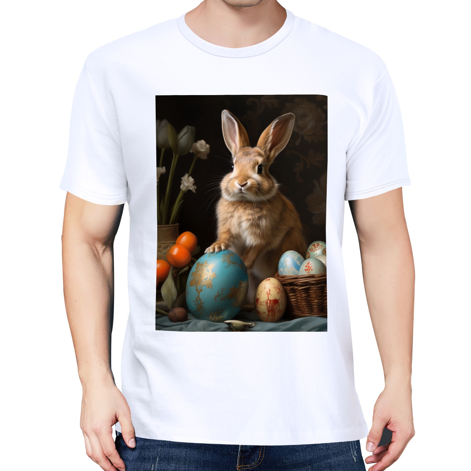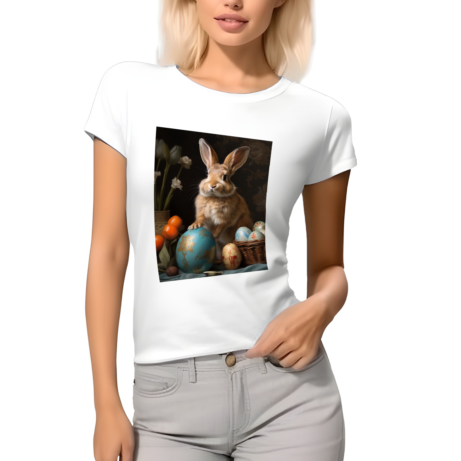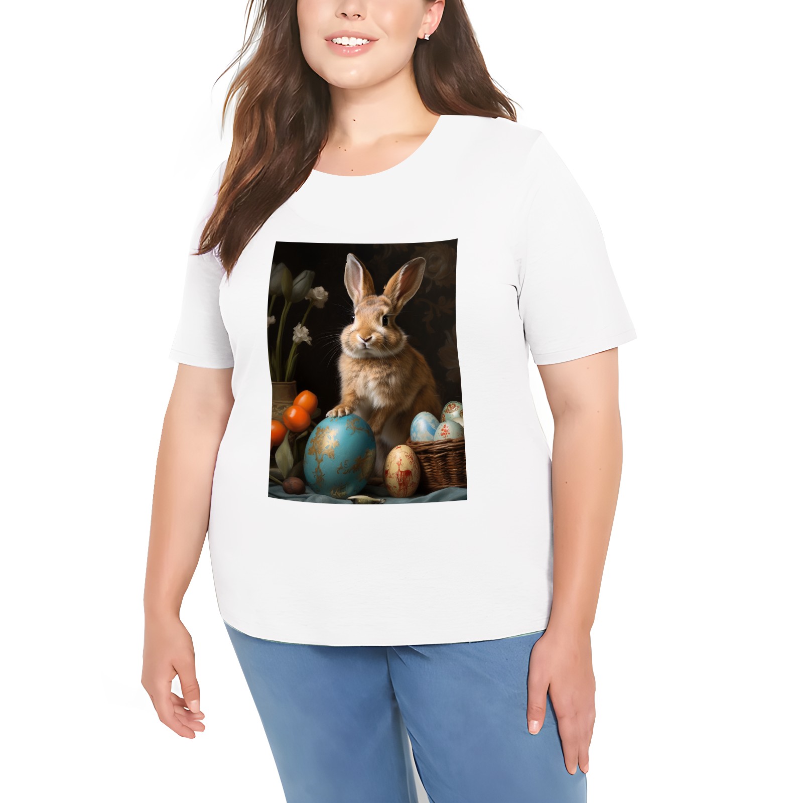 Basic Oversize Tees For WomenBjkj_Easter_bunny_with_painted_eggs_fba70646-fd6d-4adf-88e6-f0beedac1f85 Loose Boyfriend Shirts Casual Blouse round neck