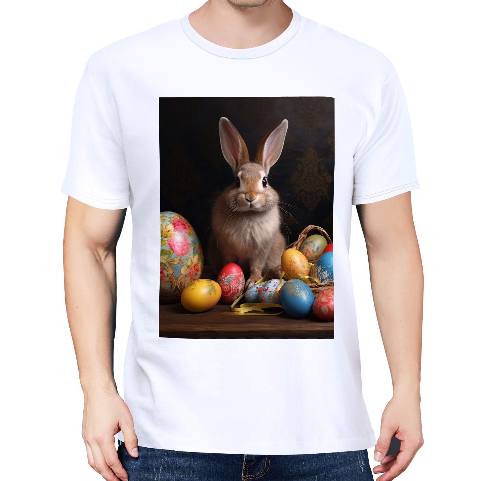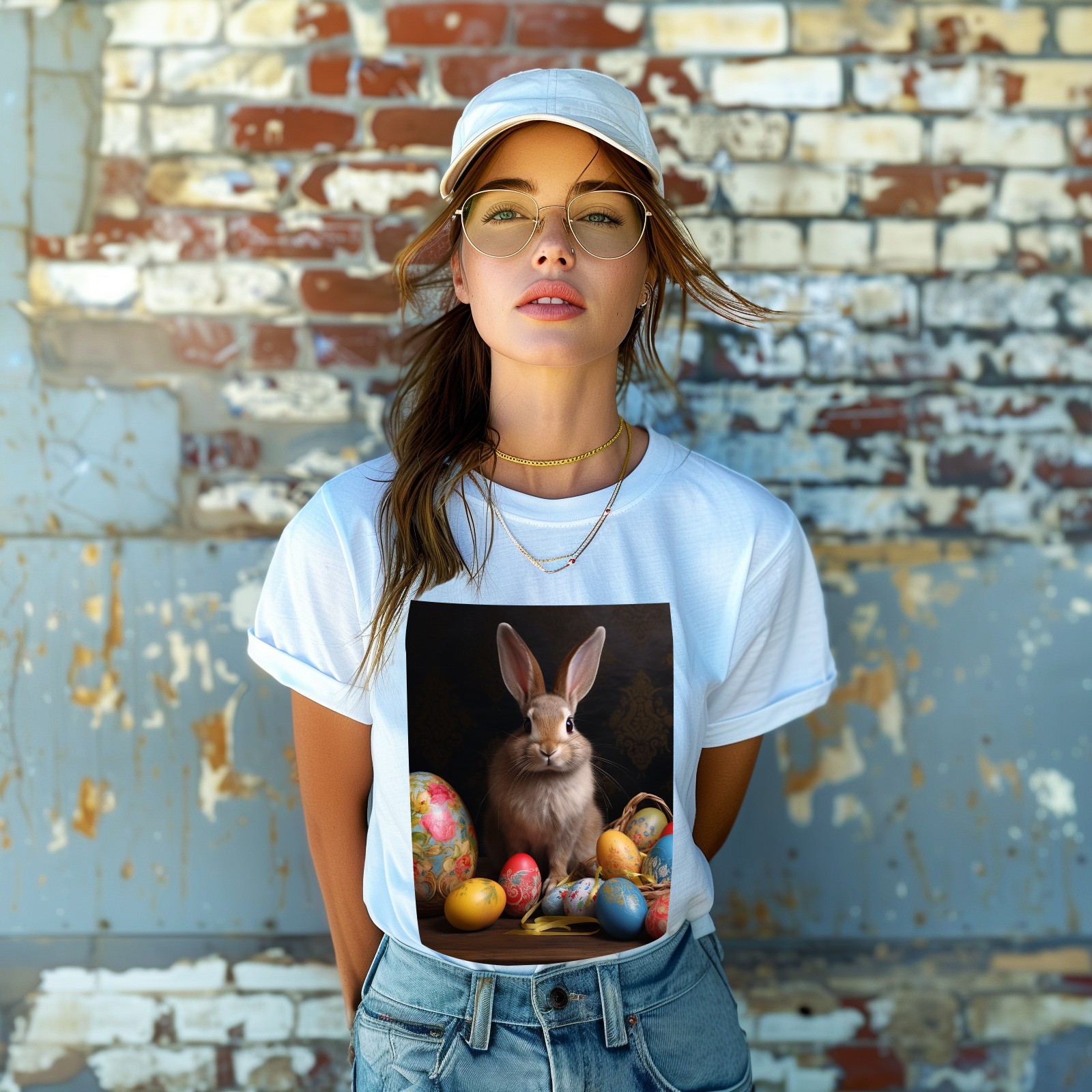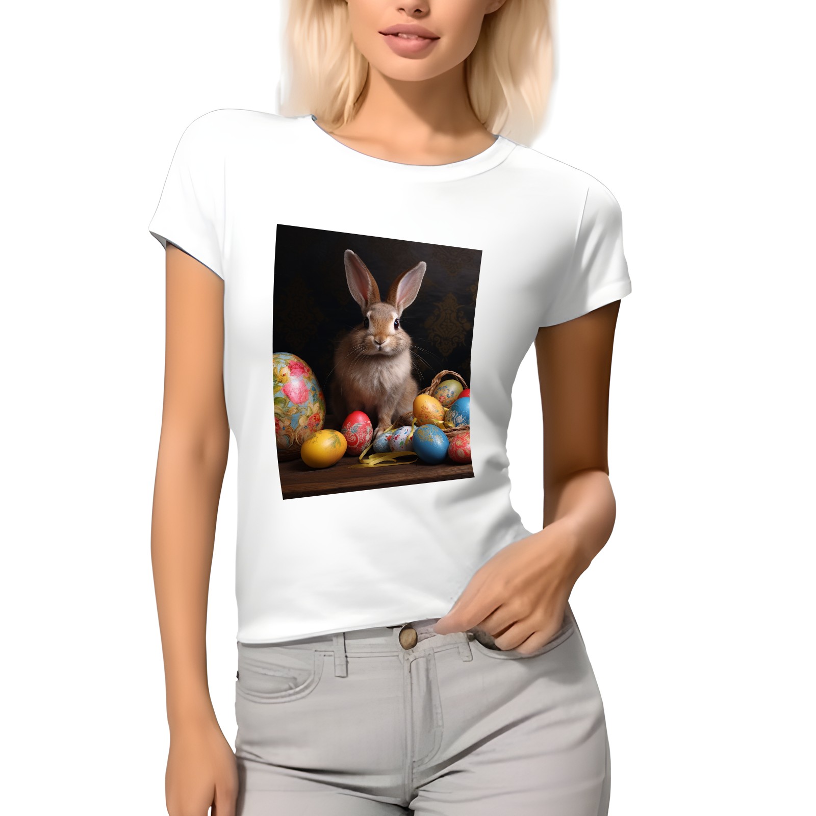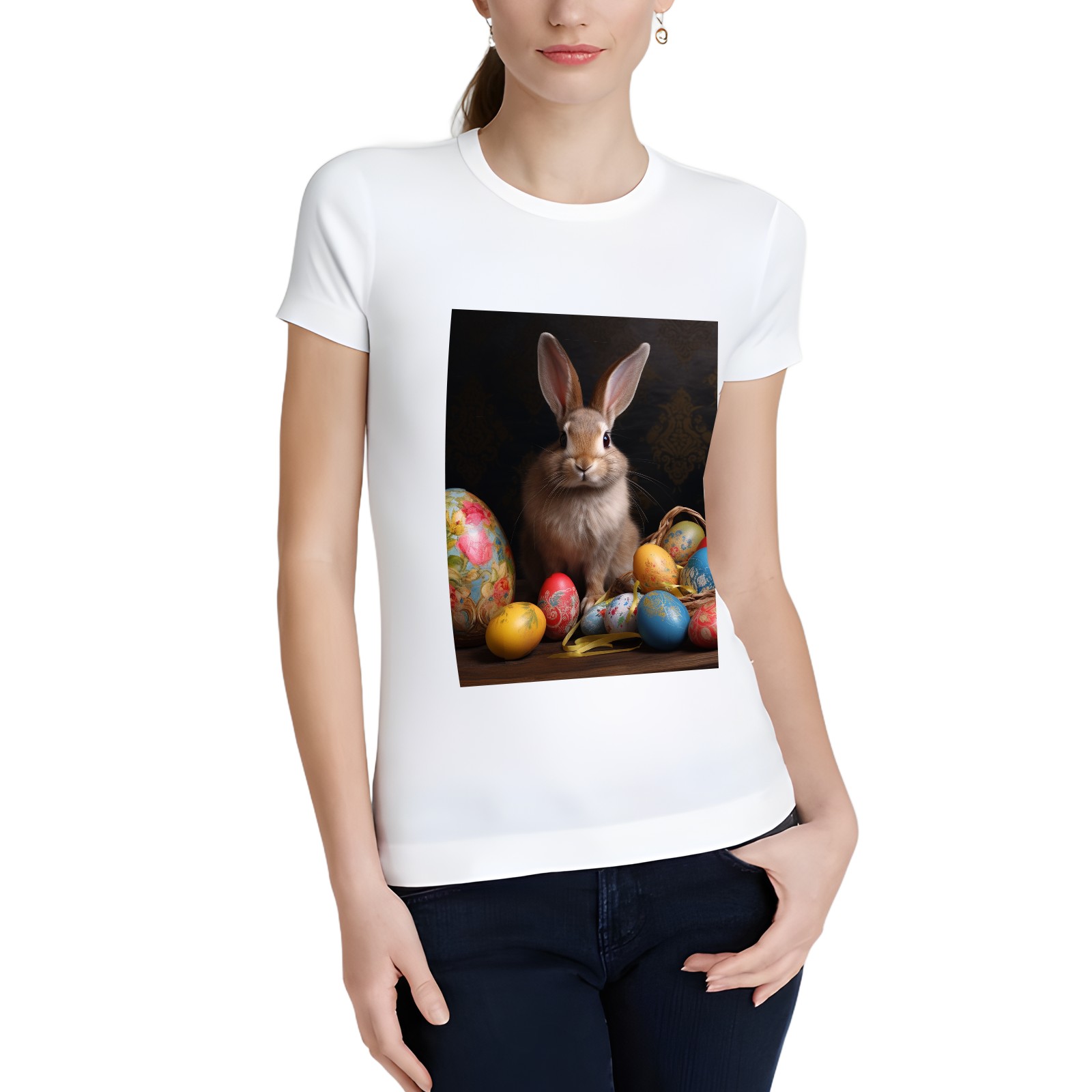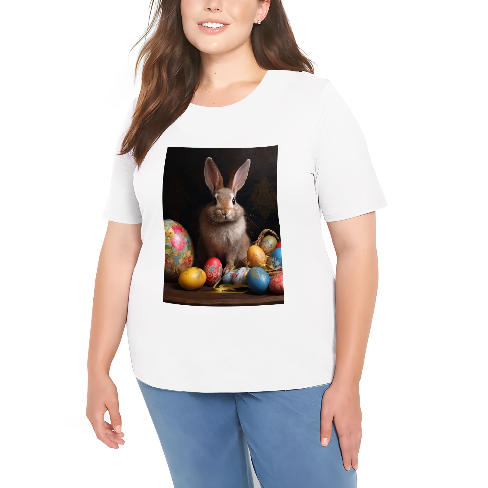 Basic Oversize Tees For WomenBjkj_Easter_bunny_with_painted_eggs_cbb9c8f9-99e1-4ca8-855d-a012dd1e9b3f Loose Boyfriend Shirts Casual Blouse round neck