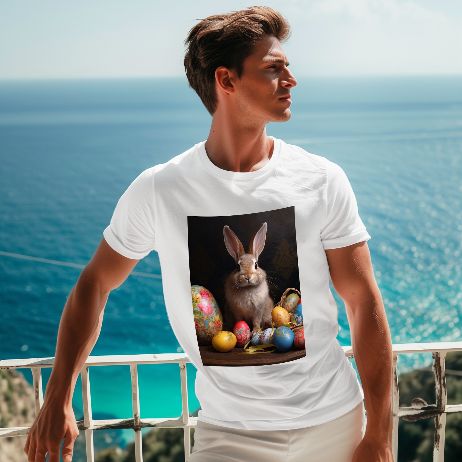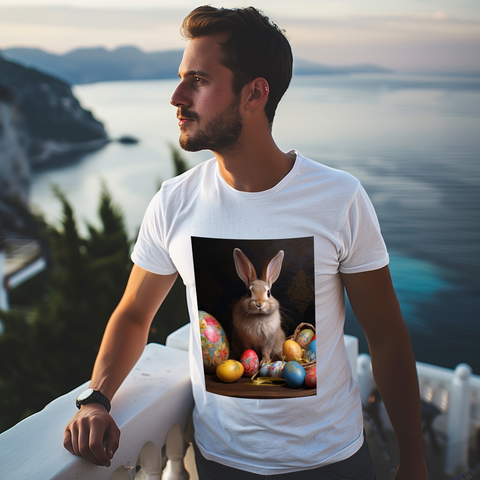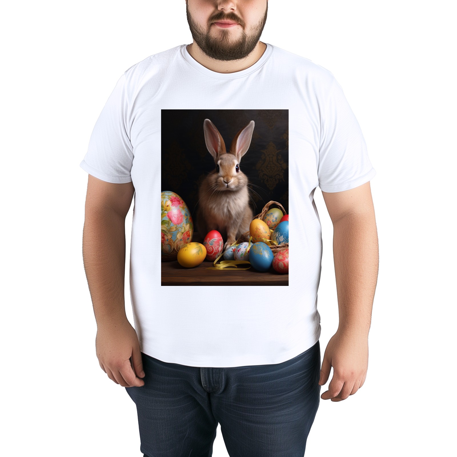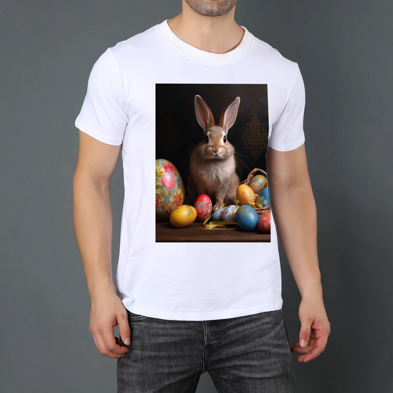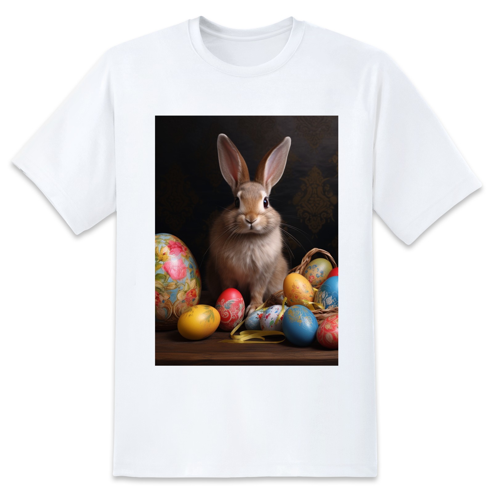 Basic Oversize Tees For WomenBjkj_Easter_bunny_with_painted_eggs_cbb9c8f9-99e1-4ca8-855d-a012dd1e9b3f Loose Boyfriend Shirts Casual Blouse round neck