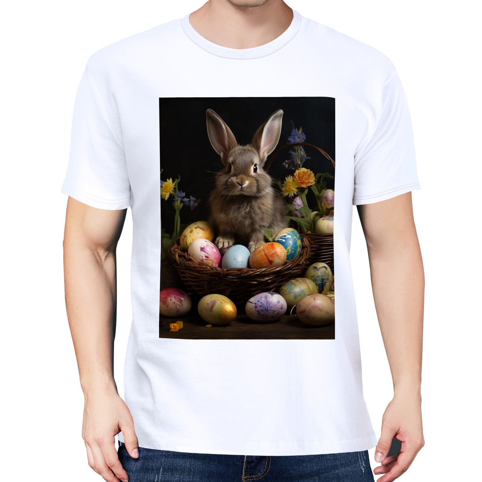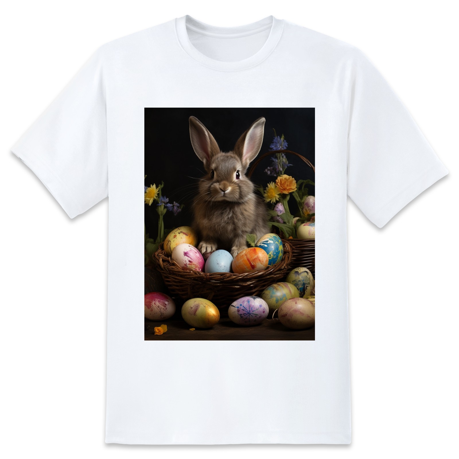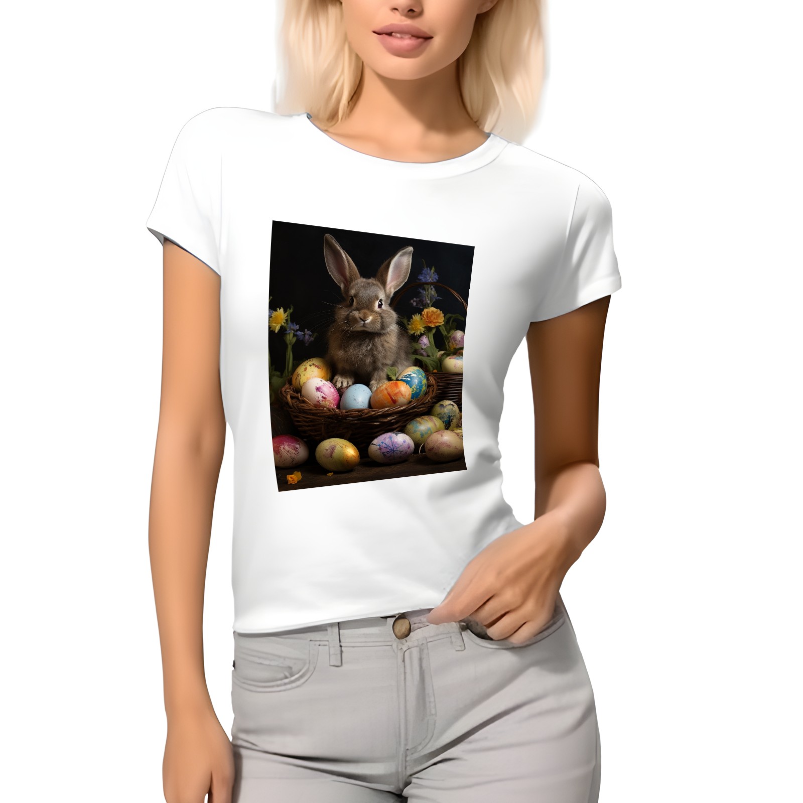 Basic Oversize Tees For WomenBjkj_Easter_bunny_with_painted_eggs_11c1a678-9a65-4379-8377-cfb3de5fc8c2 Loose Boyfriend Shirts Casual Blouse round neck