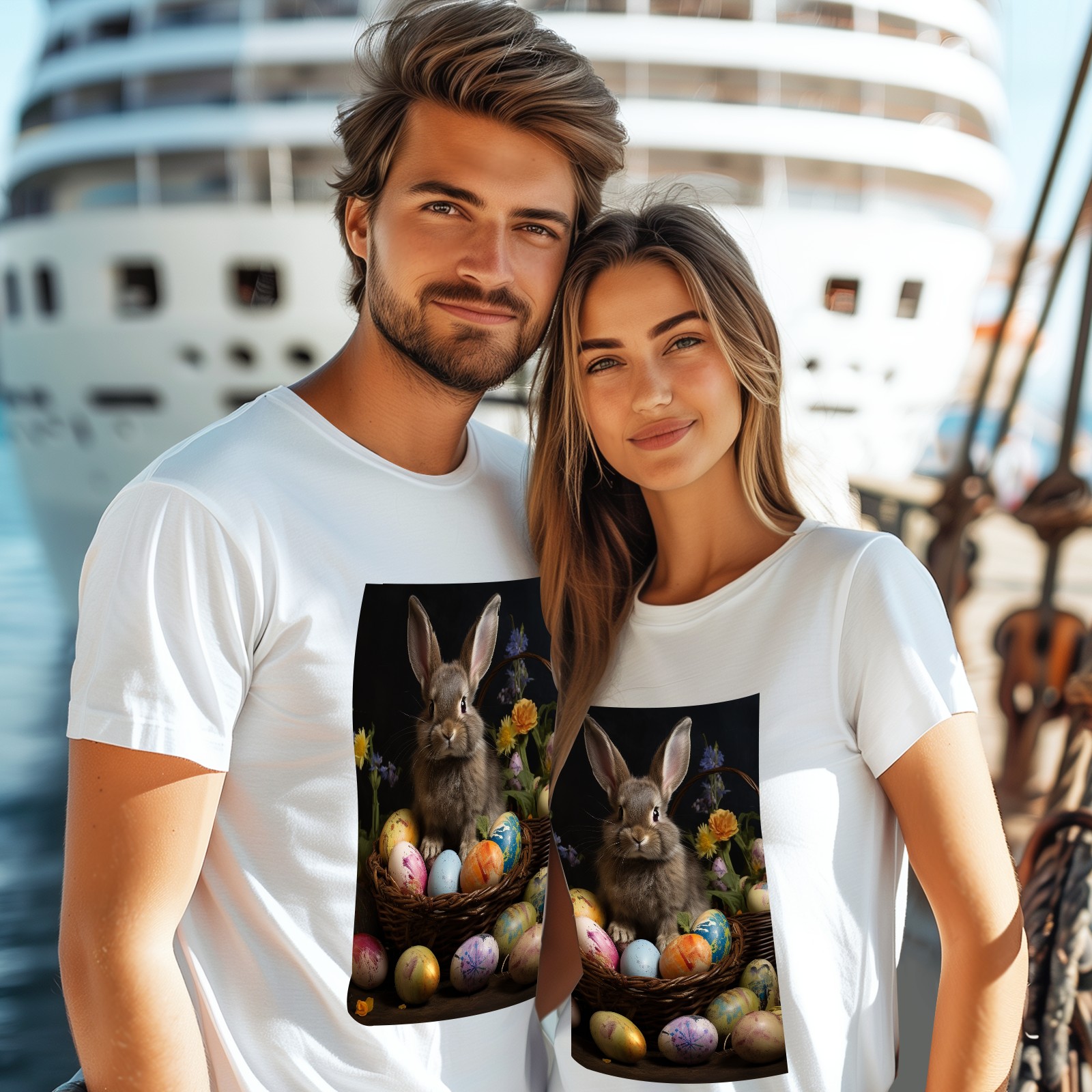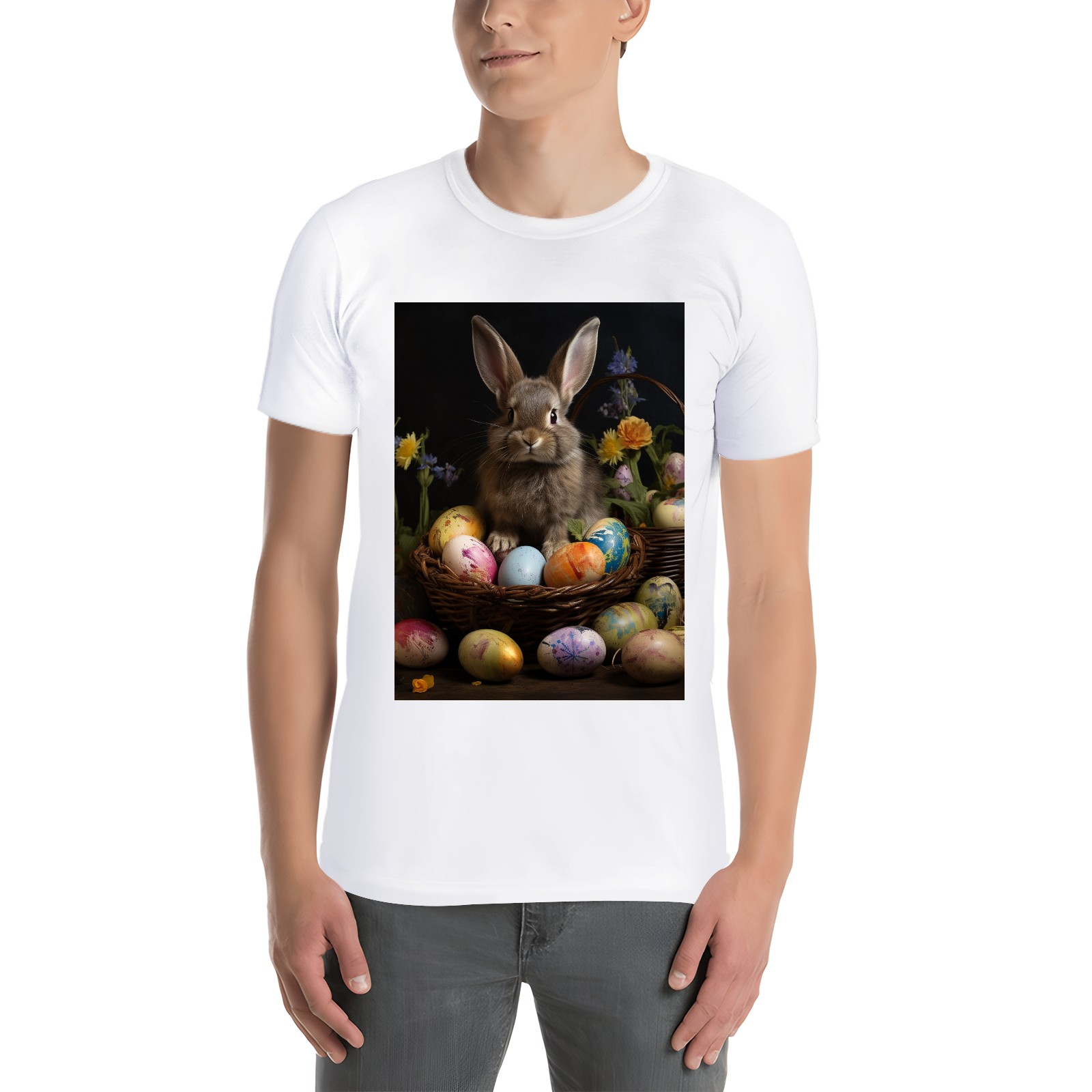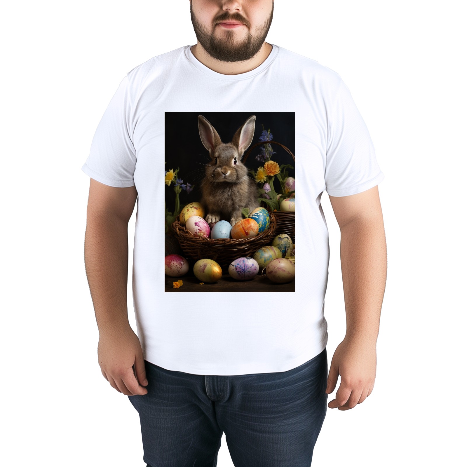 Basic Oversize Tees For WomenBjkj_Easter_bunny_with_painted_eggs_11c1a678-9a65-4379-8377-cfb3de5fc8c2 Loose Boyfriend Shirts Casual Blouse round neck