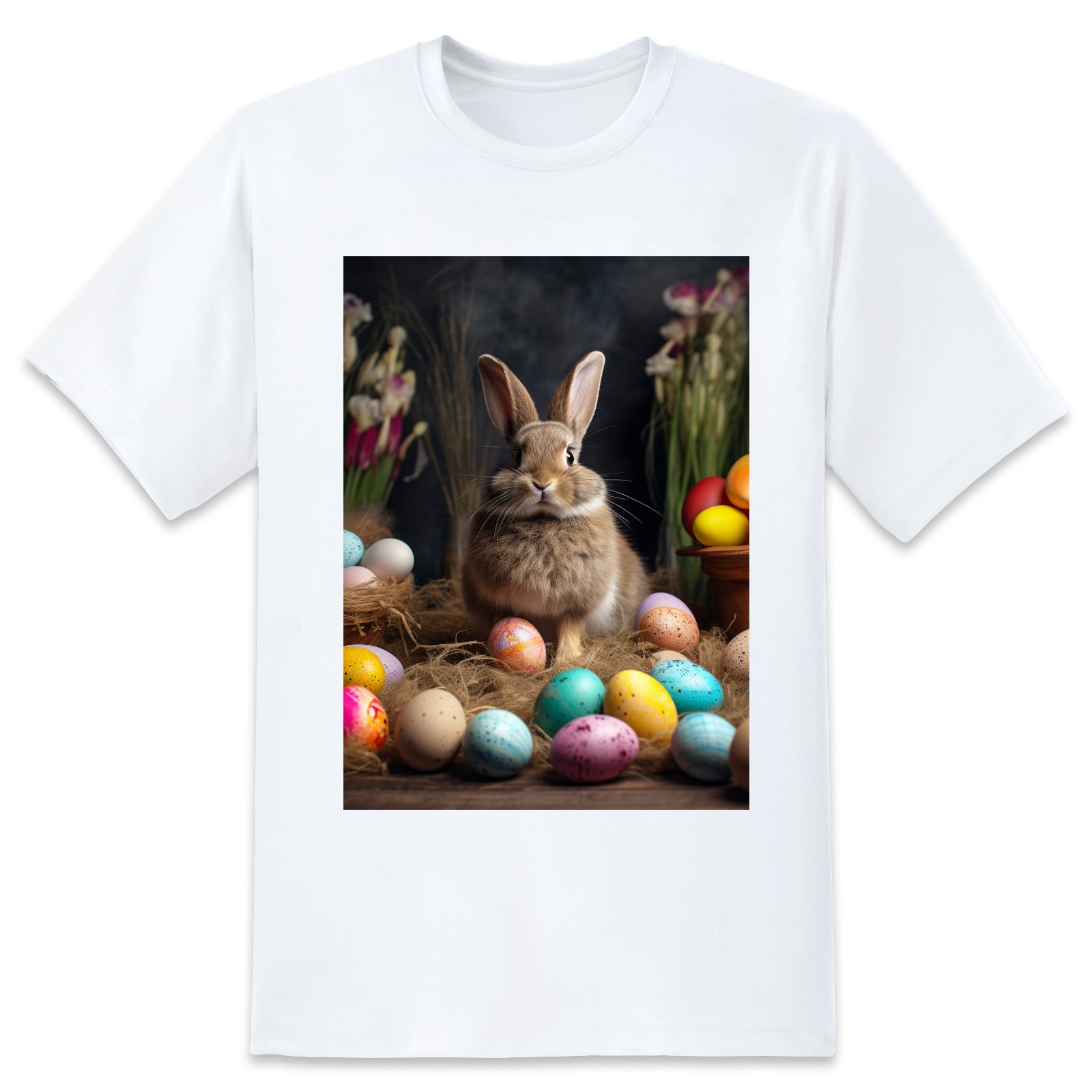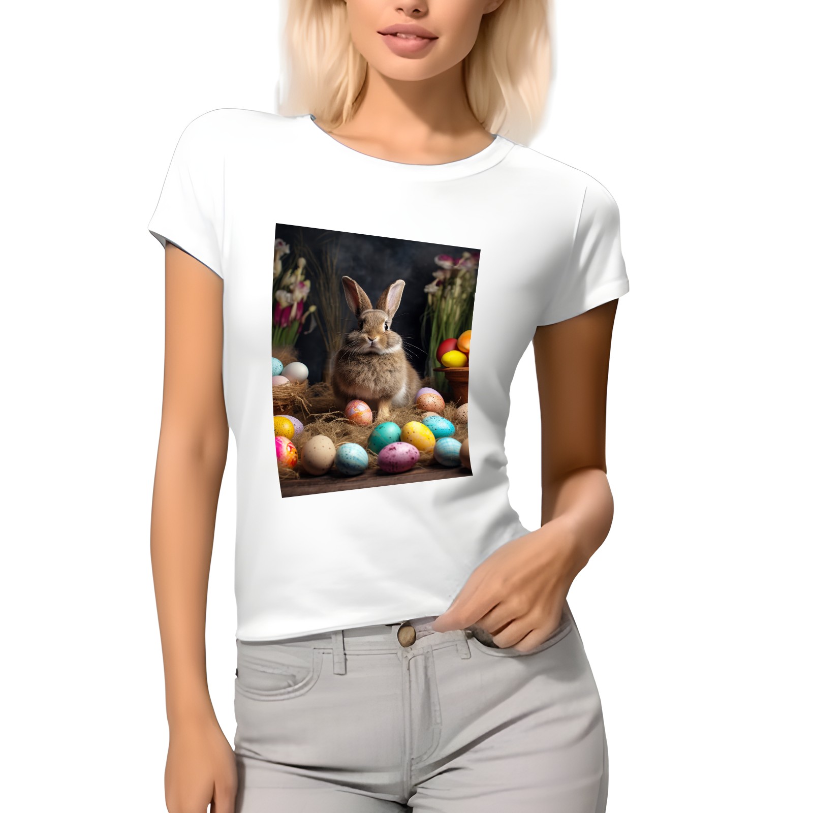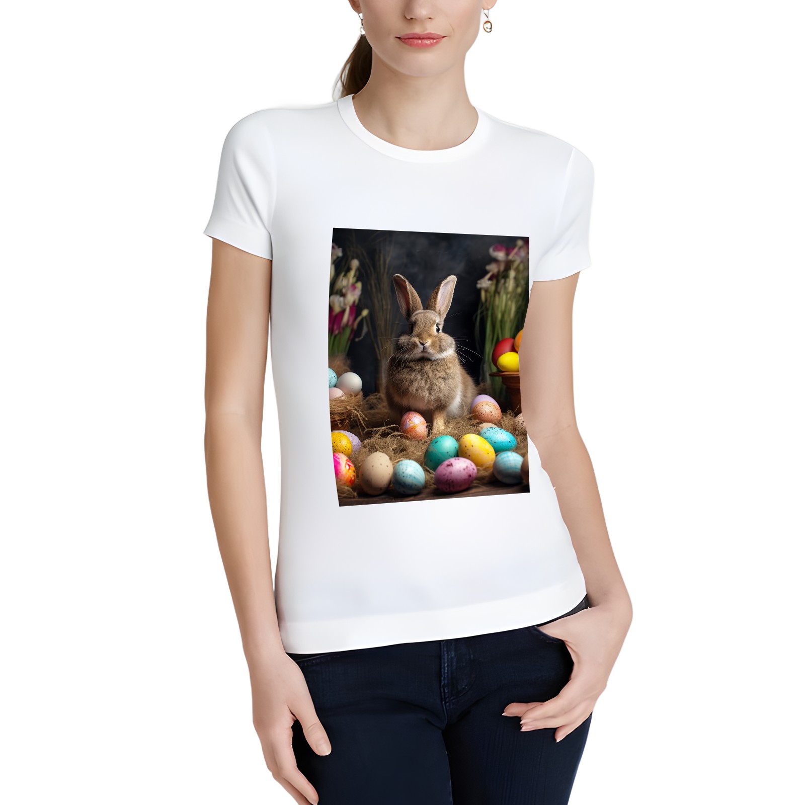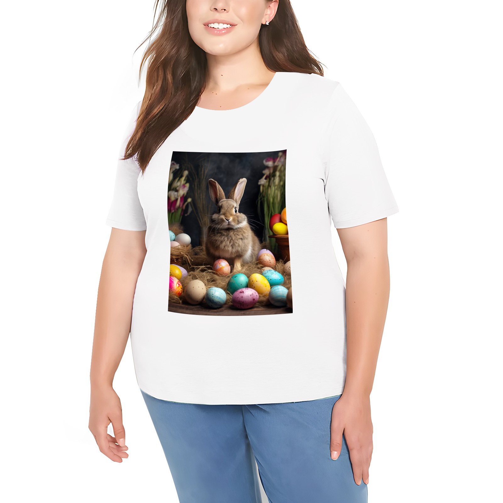 Basic Oversize Tees For WomenBjkj_Easter_bunny_with_painted_eggs_1c36e949-2db6-492c-9b0f-50c8b954777f Loose Boyfriend Shirts Casual Blouse round neck