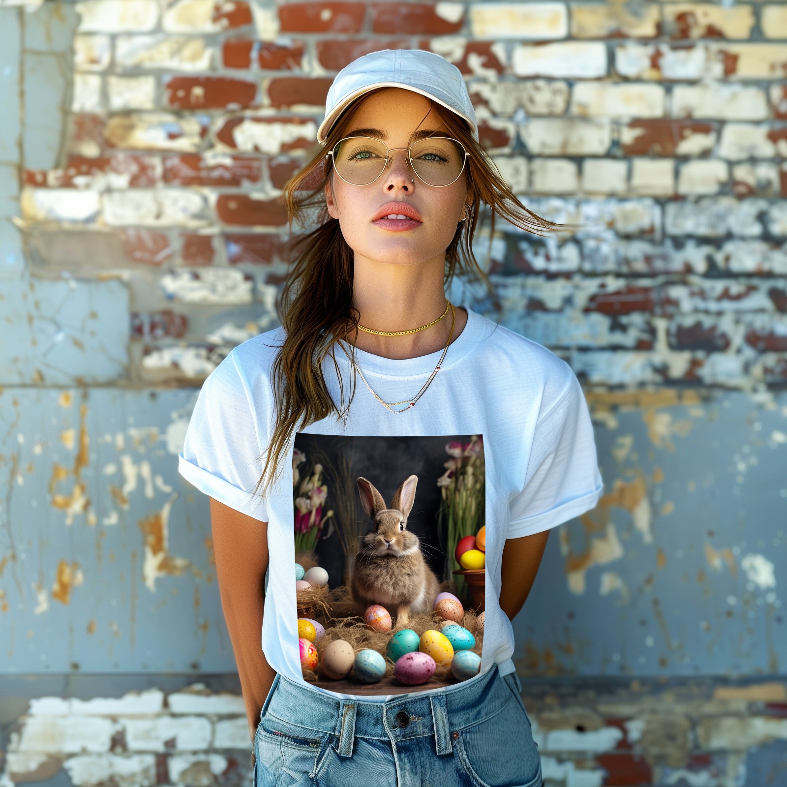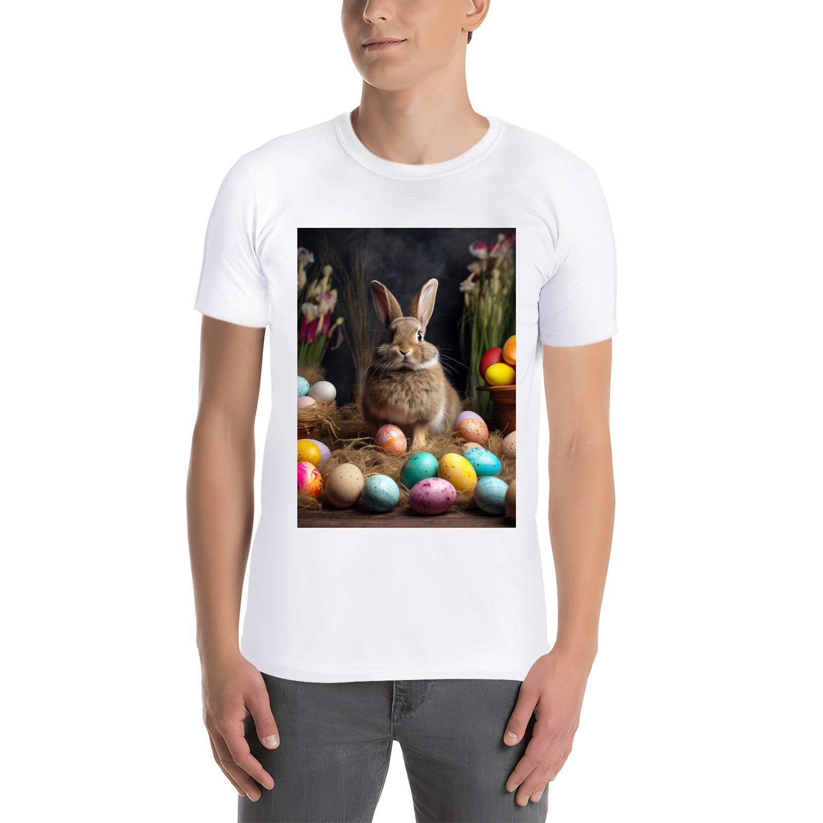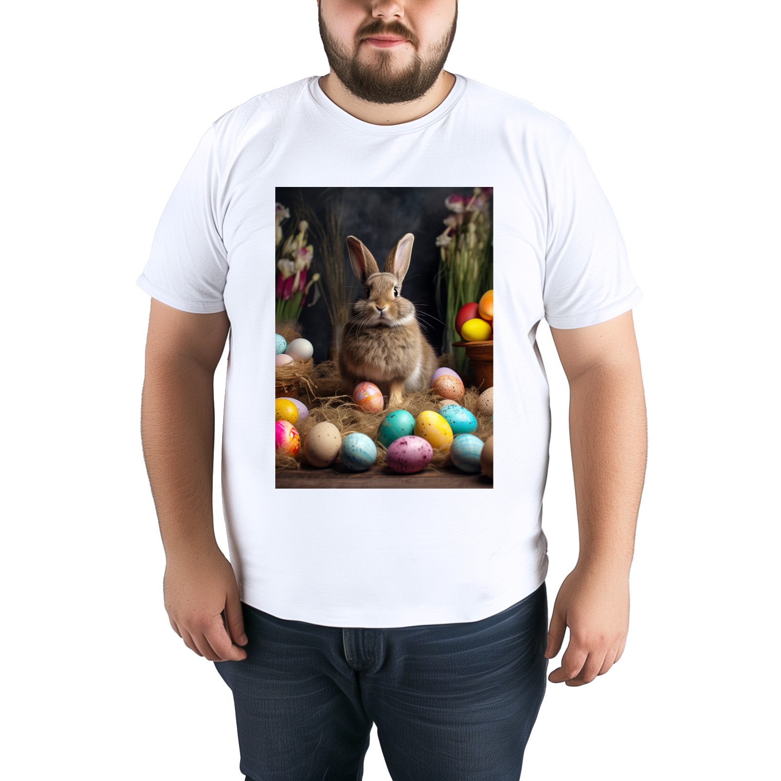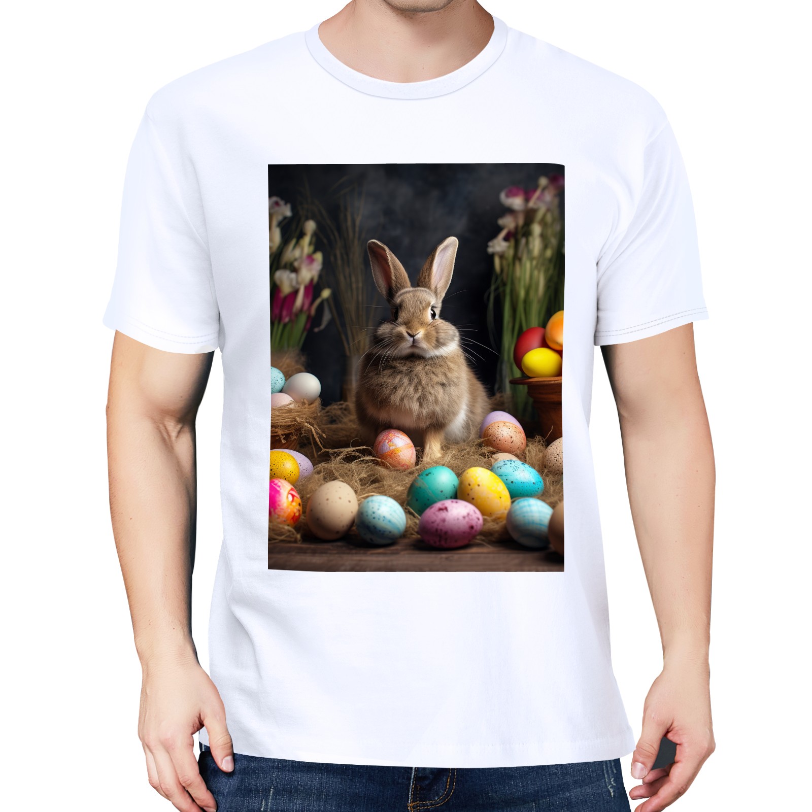 Basic Oversize Tees For WomenBjkj_Easter_bunny_with_painted_eggs_1c36e949-2db6-492c-9b0f-50c8b954777f Loose Boyfriend Shirts Casual Blouse round neck
