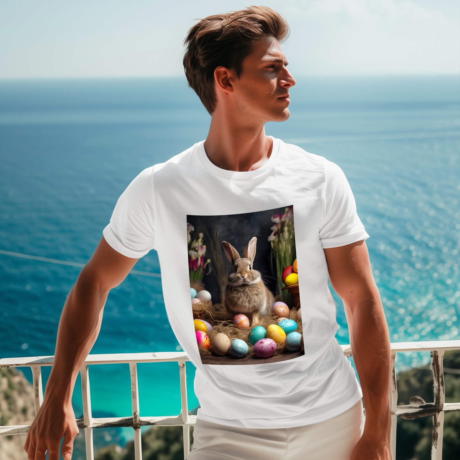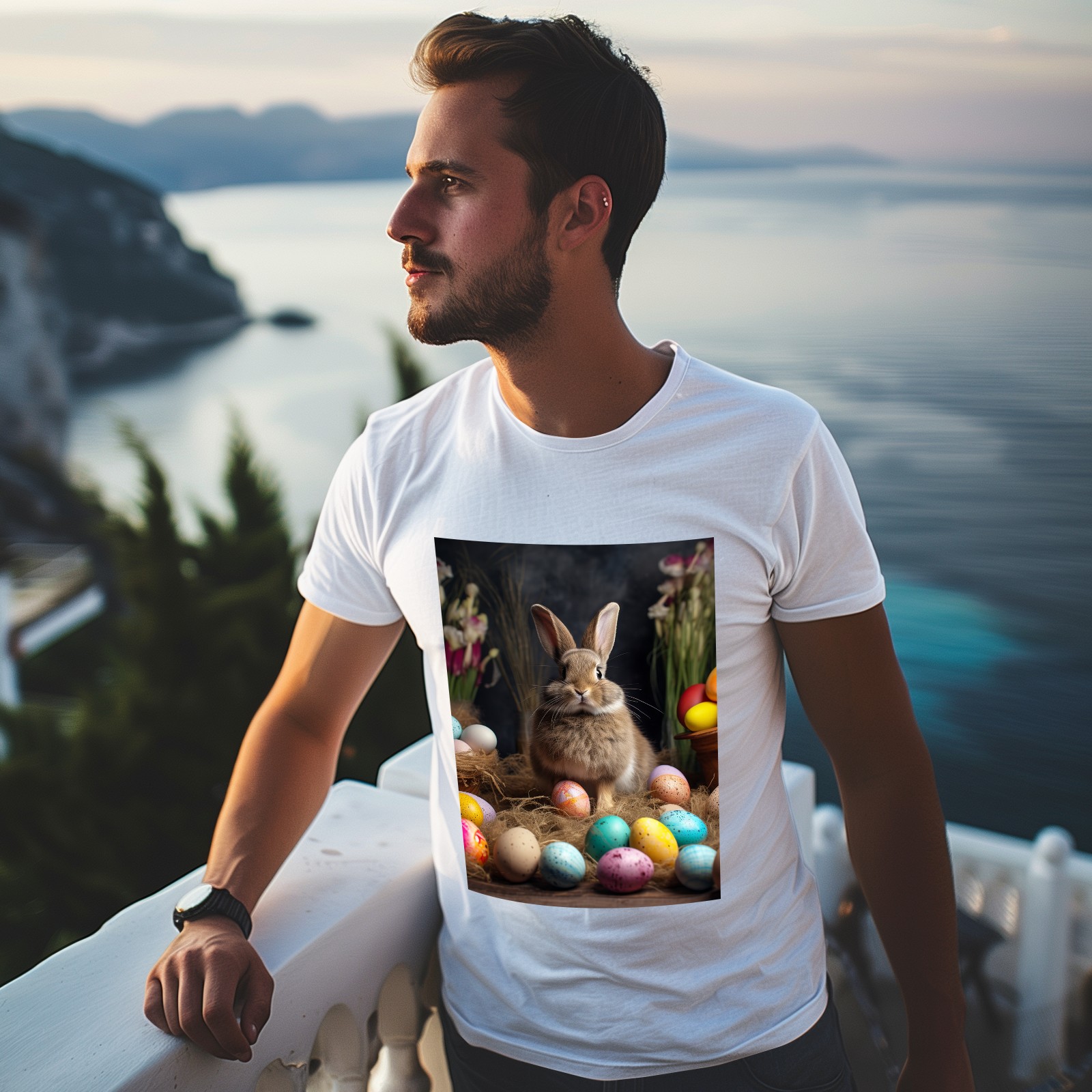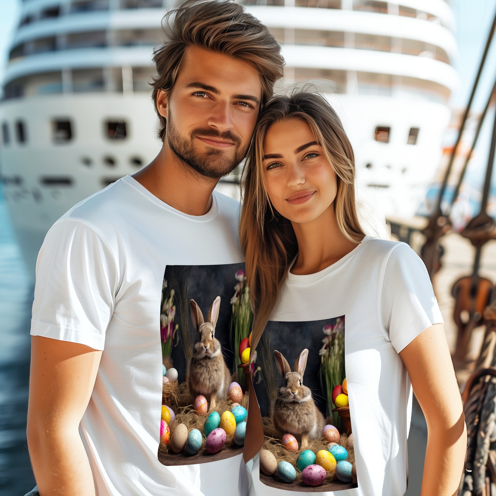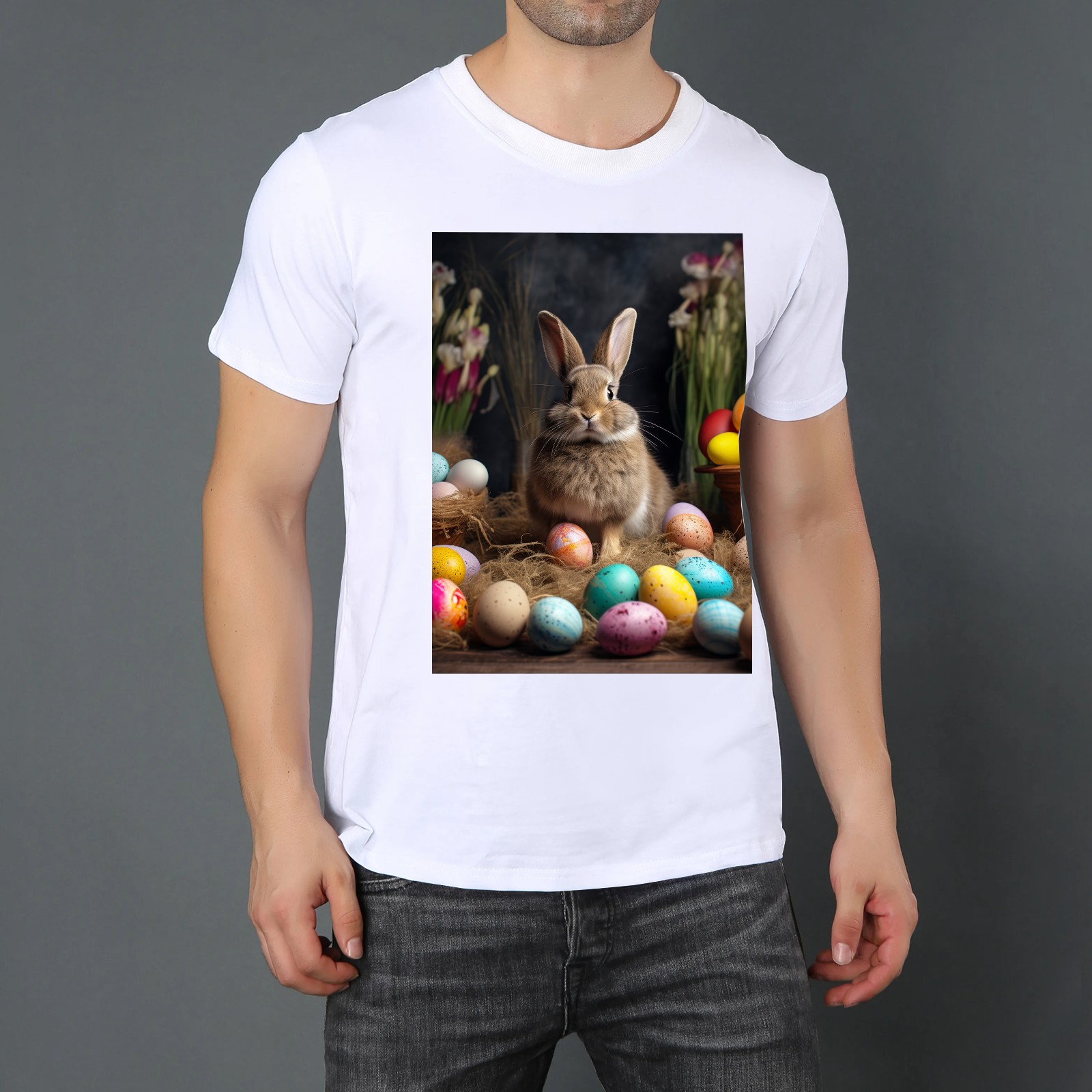 Basic Oversize Tees For WomenBjkj_Easter_bunny_with_painted_eggs_1c36e949-2db6-492c-9b0f-50c8b954777f Loose Boyfriend Shirts Casual Blouse round neck