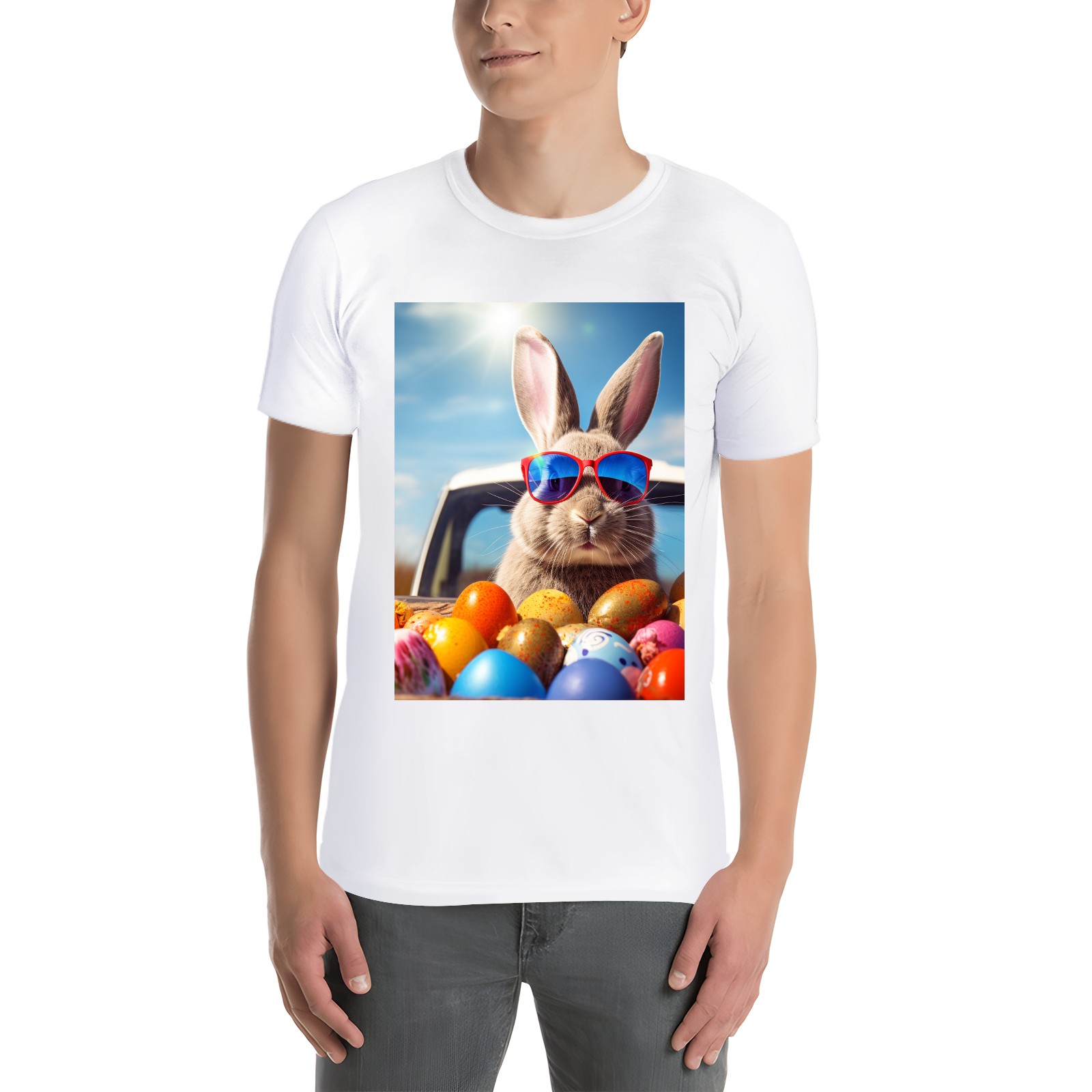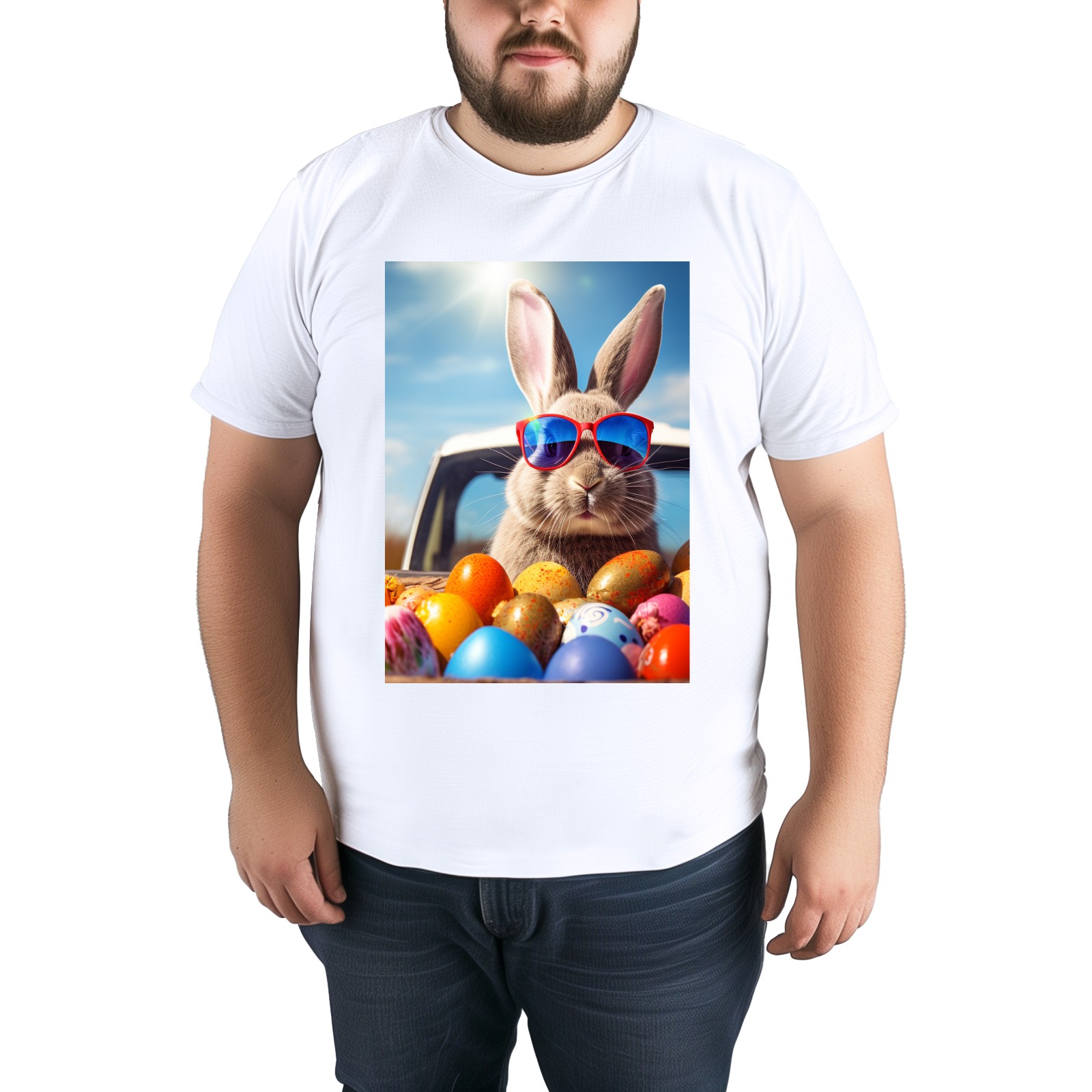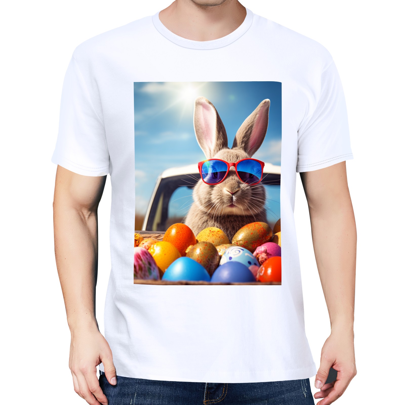 Basic Oversize Tees For WomenBjkj_Cute_Easter_Bunny_with_sunglasses_looking_out_of_a_car_fi_1205dd27-da95-4c79-8b99-f47482d645f8 Loose Boyfriend Shirts Casual Blouse round neck