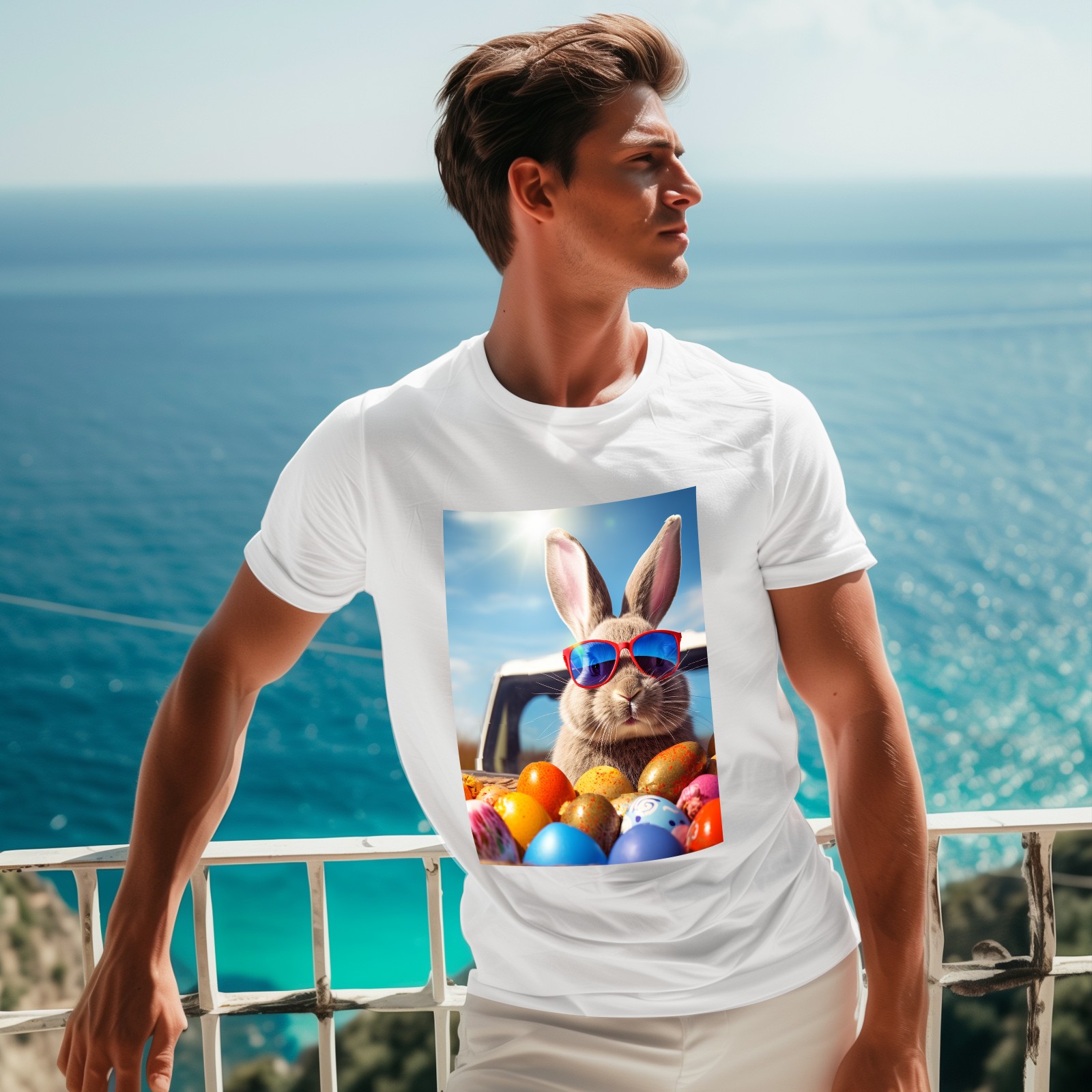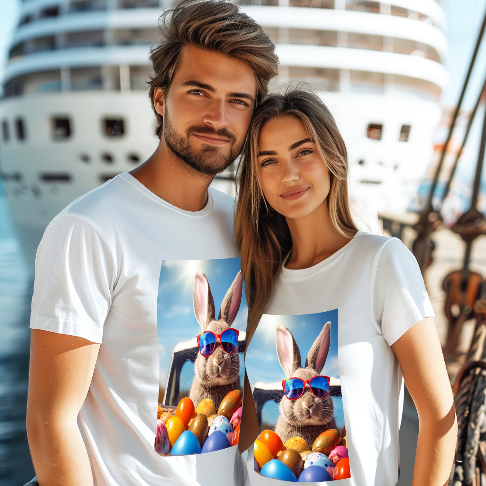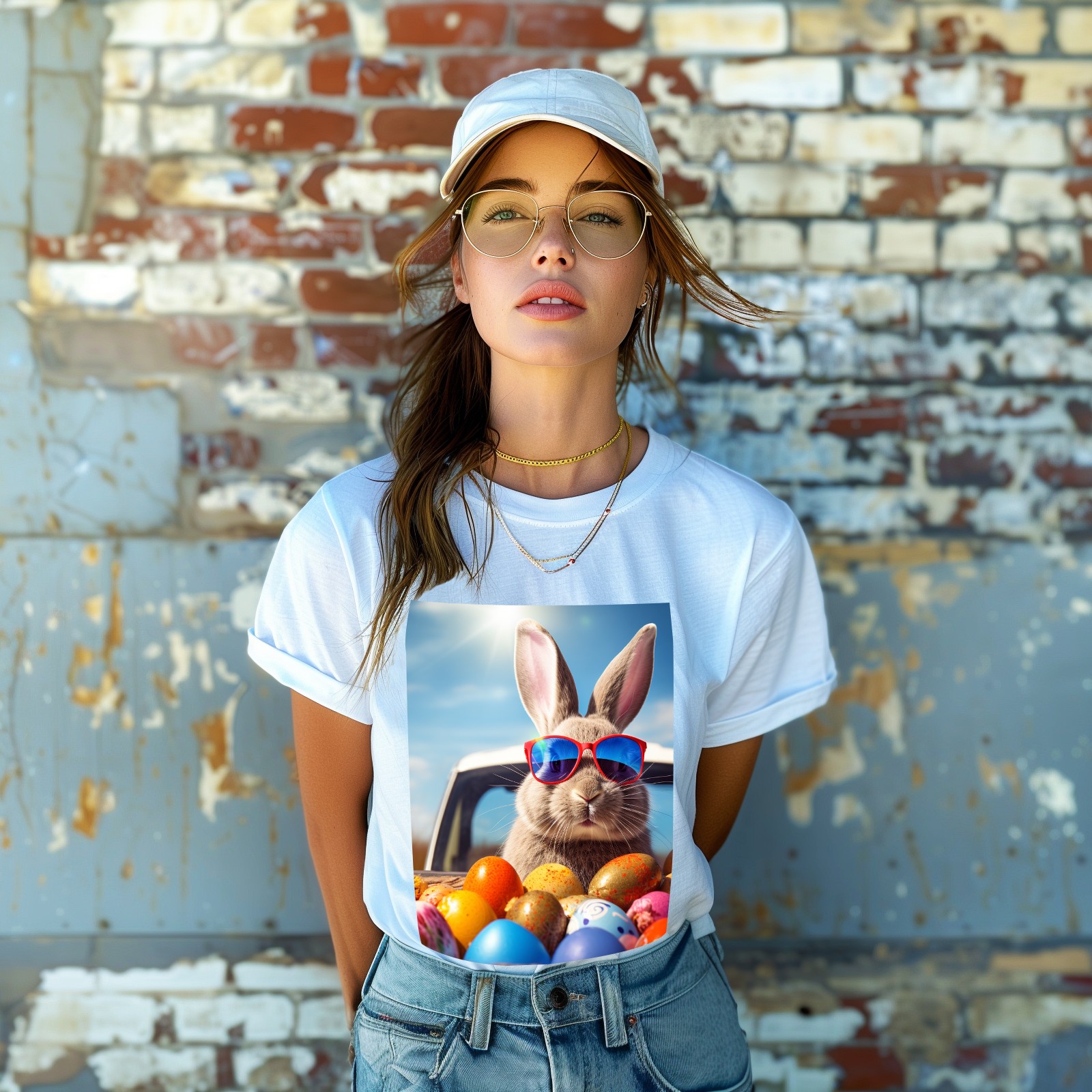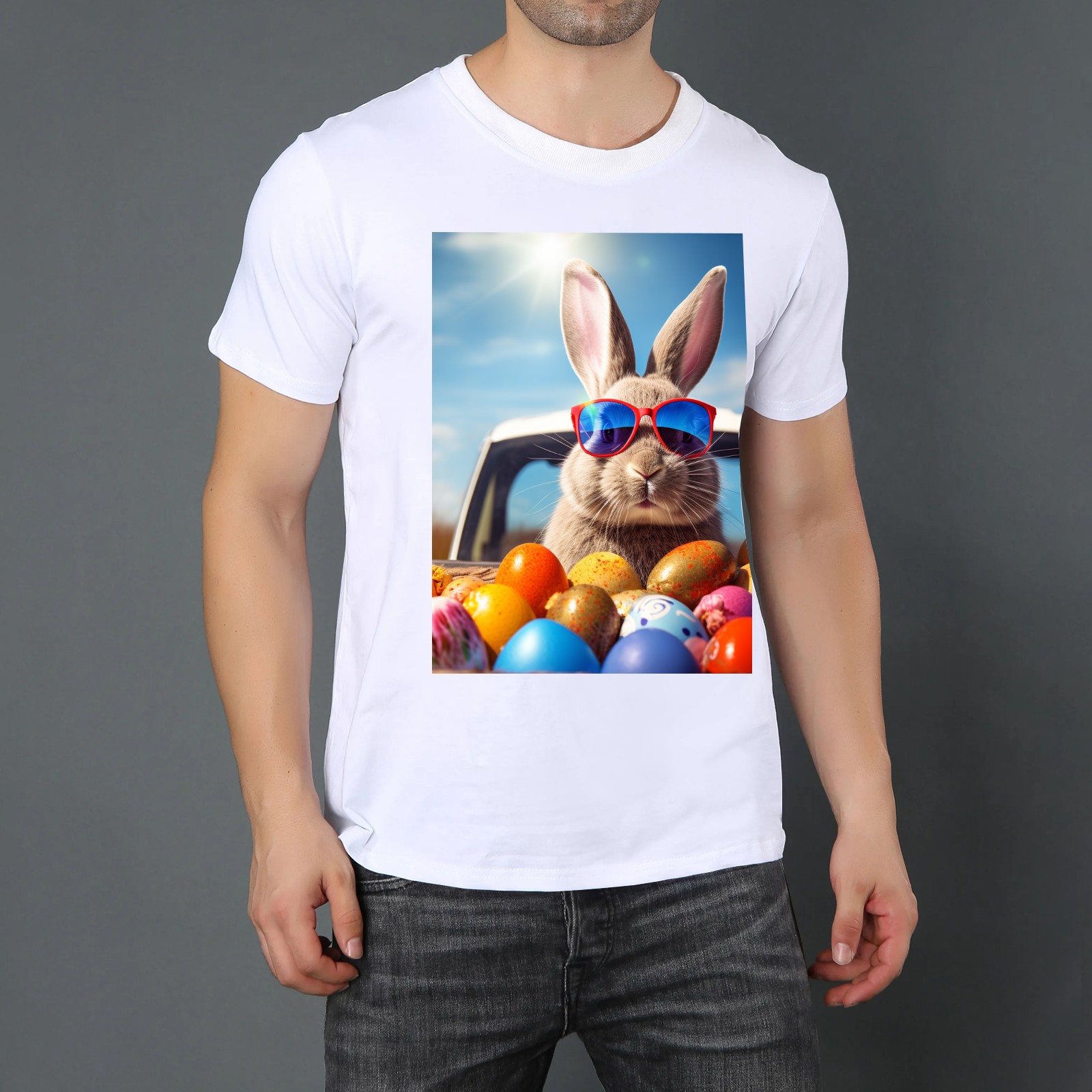 Basic Oversize Tees For WomenBjkj_Cute_Easter_Bunny_with_sunglasses_looking_out_of_a_car_fi_1205dd27-da95-4c79-8b99-f47482d645f8 Loose Boyfriend Shirts Casual Blouse round neck