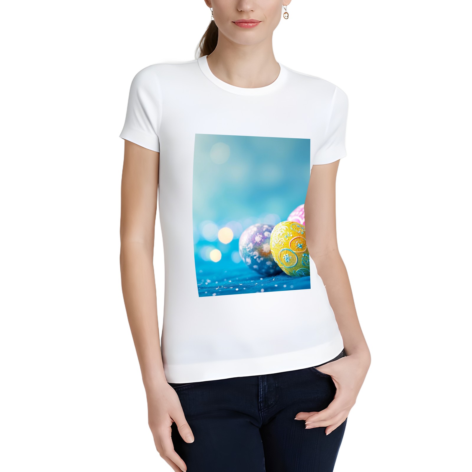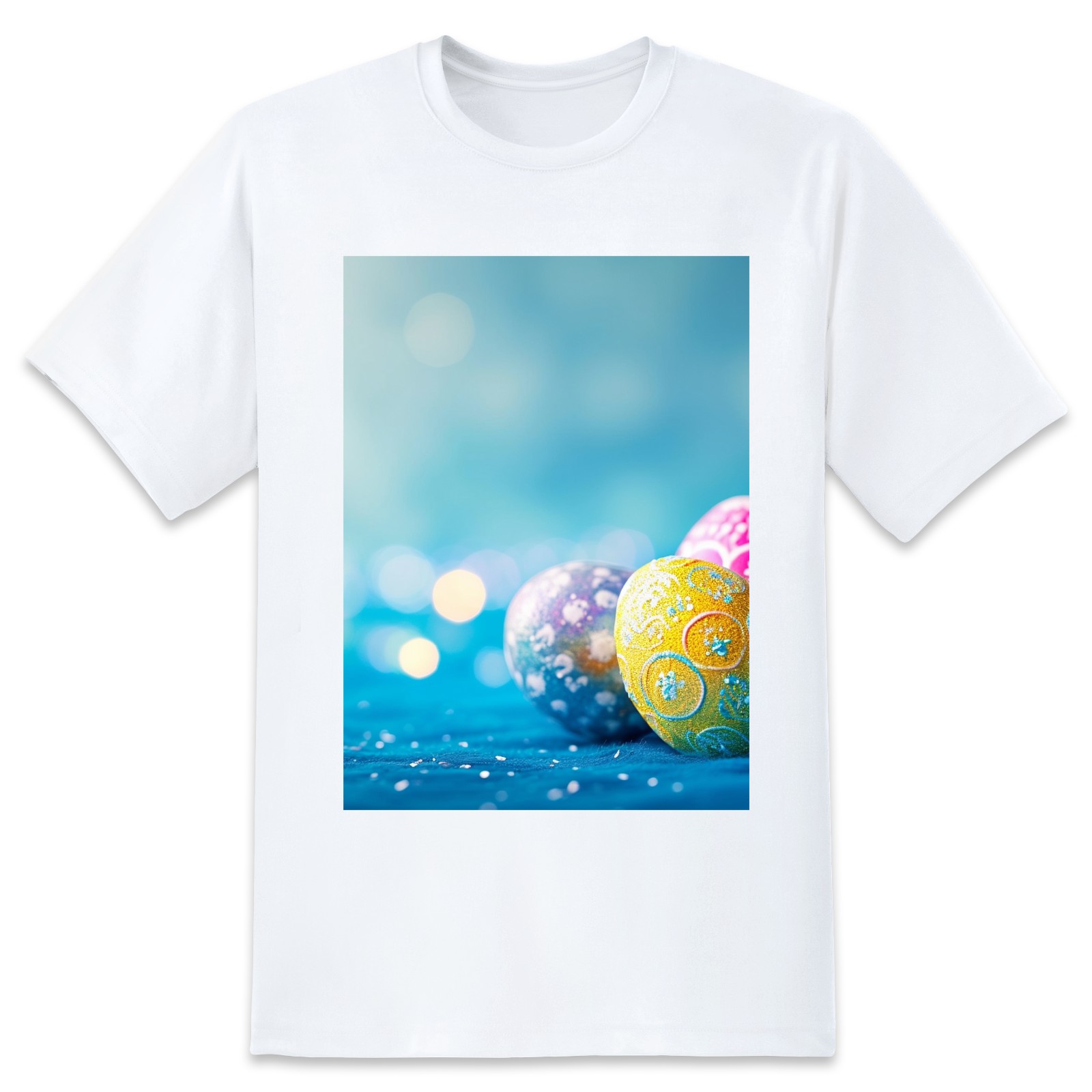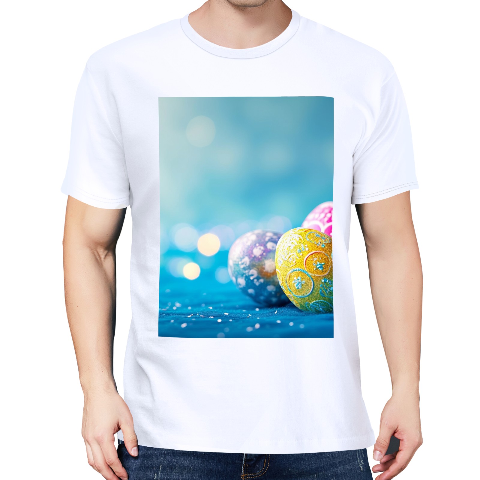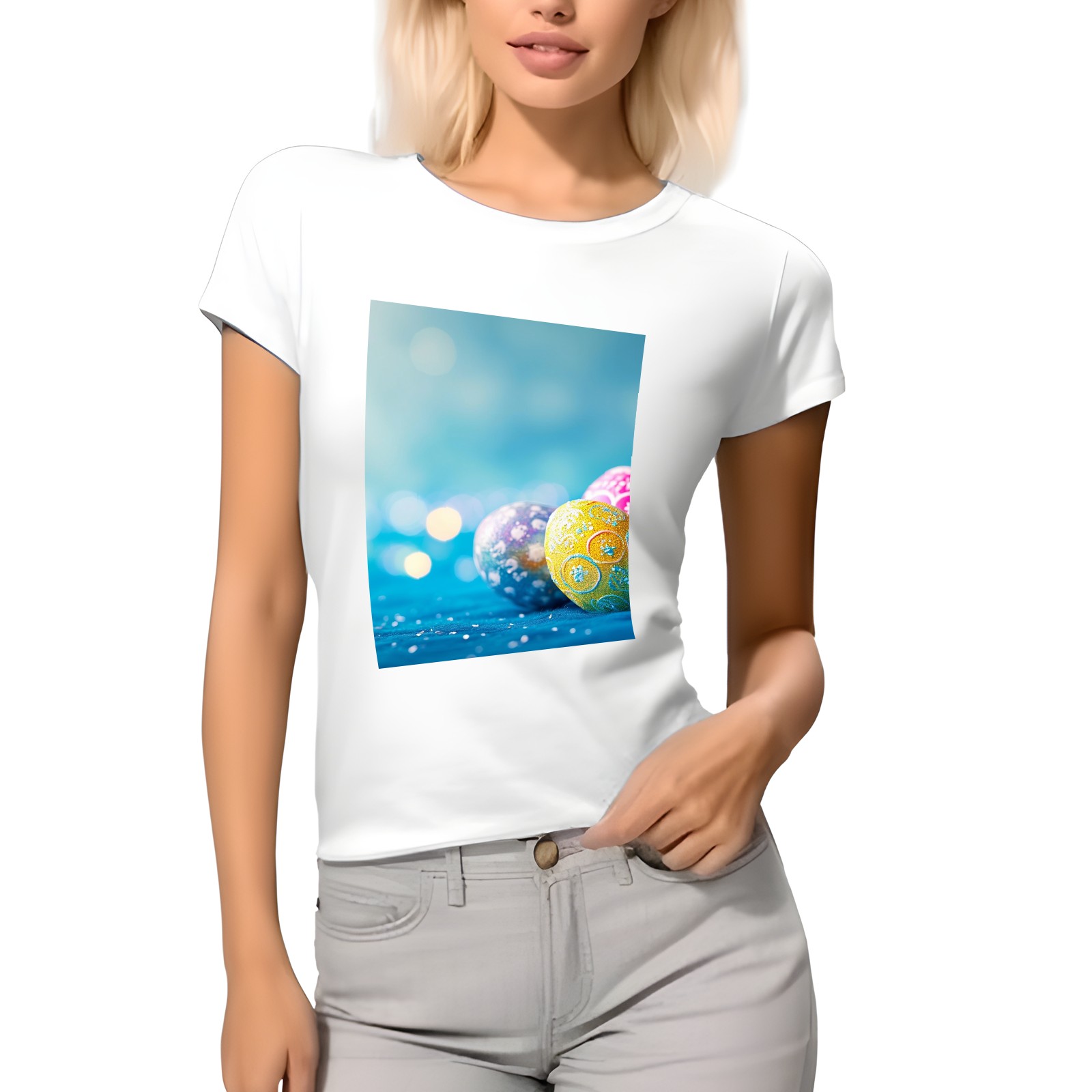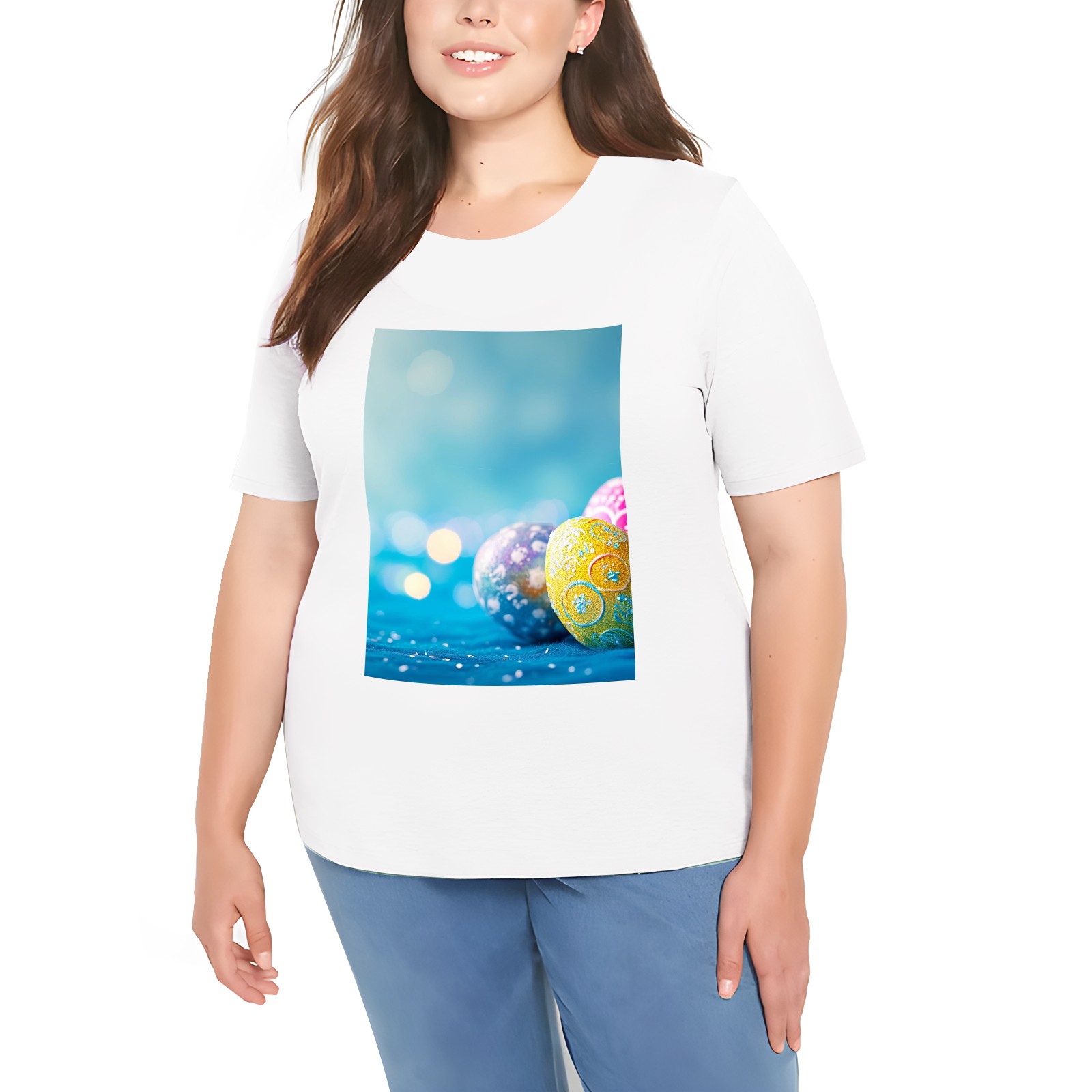 Basic Oversize Tees For WomenBjkj_Colorful_Easter_eggs_on_blue_background_c507caf0-1426-4c08-ad9b-2fa1c1d4a69f Loose Boyfriend Shirts Casual Blouse round neck