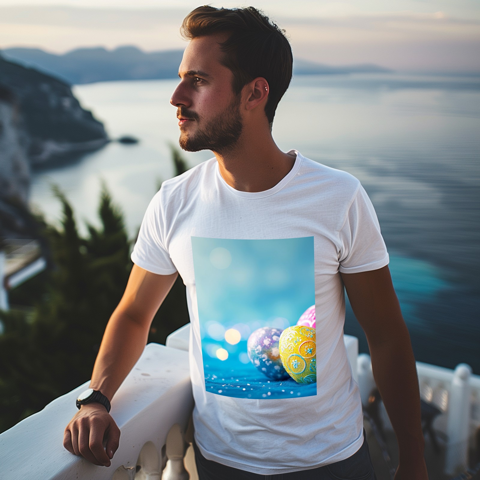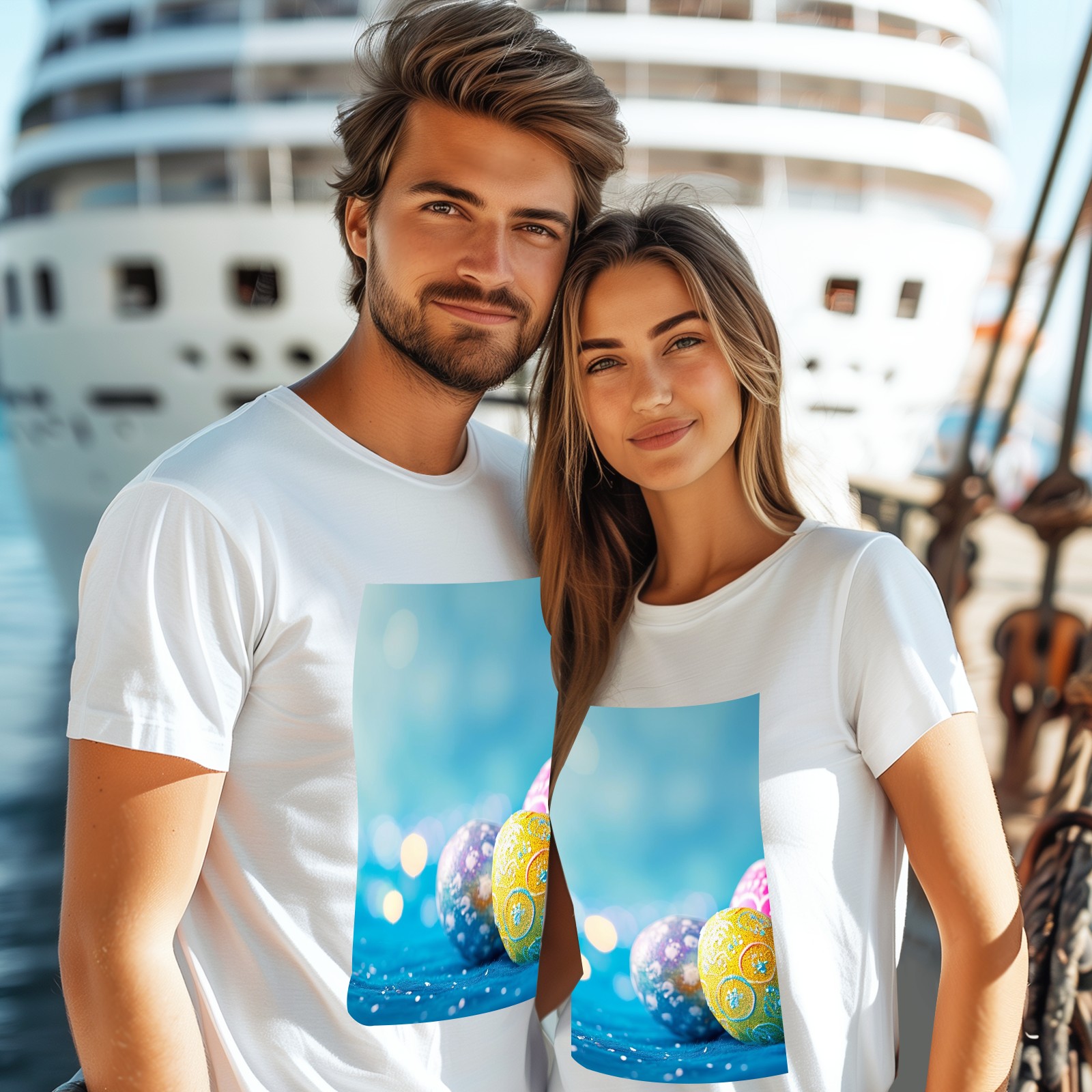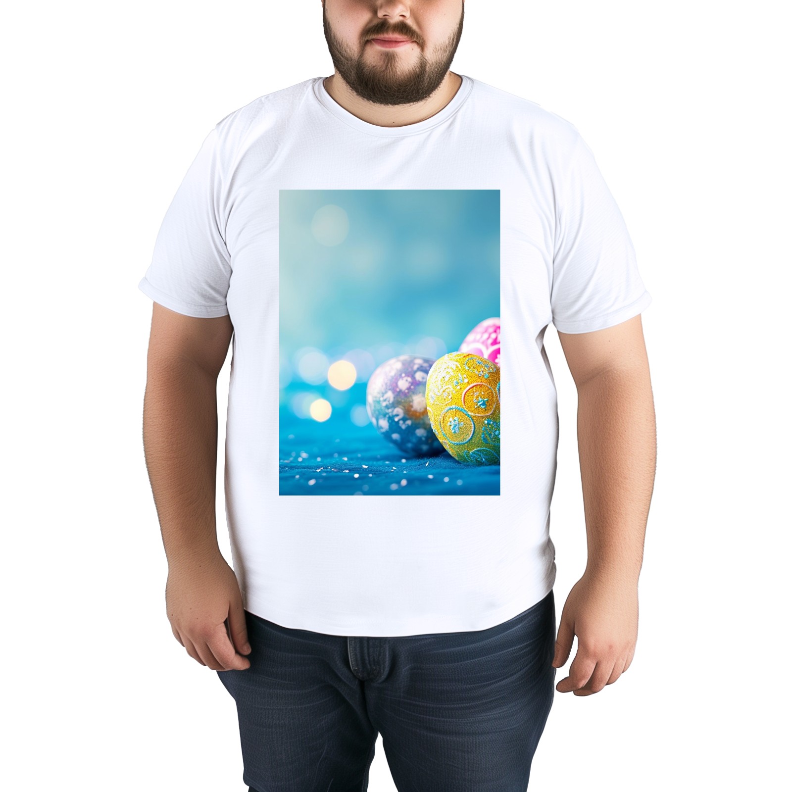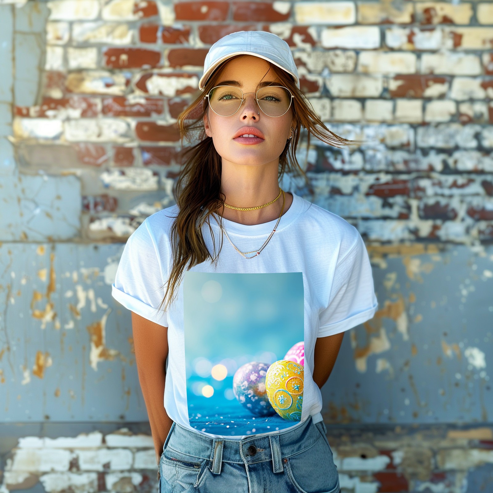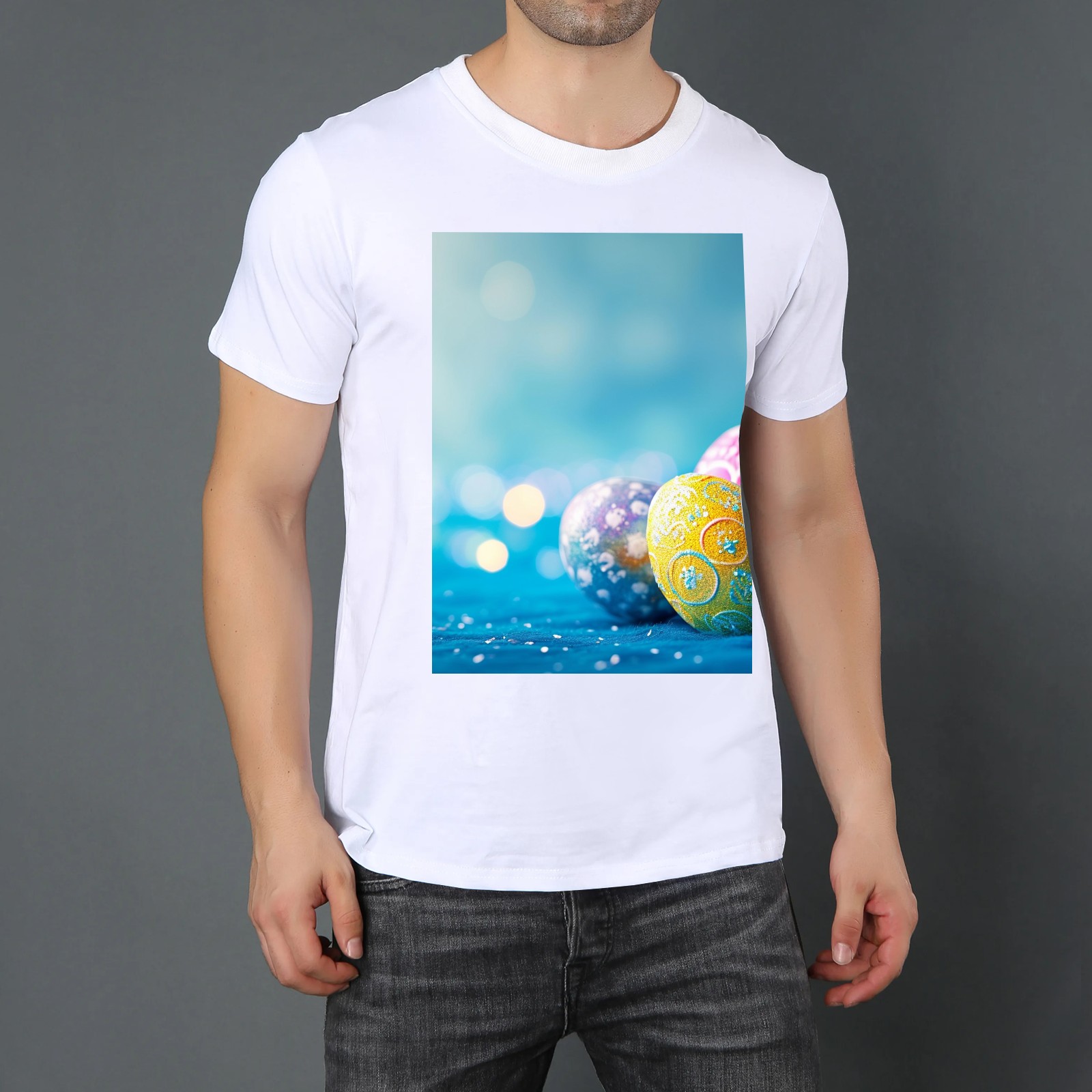 Basic Oversize Tees For WomenBjkj_Colorful_Easter_eggs_on_blue_background_c507caf0-1426-4c08-ad9b-2fa1c1d4a69f Loose Boyfriend Shirts Casual Blouse round neck