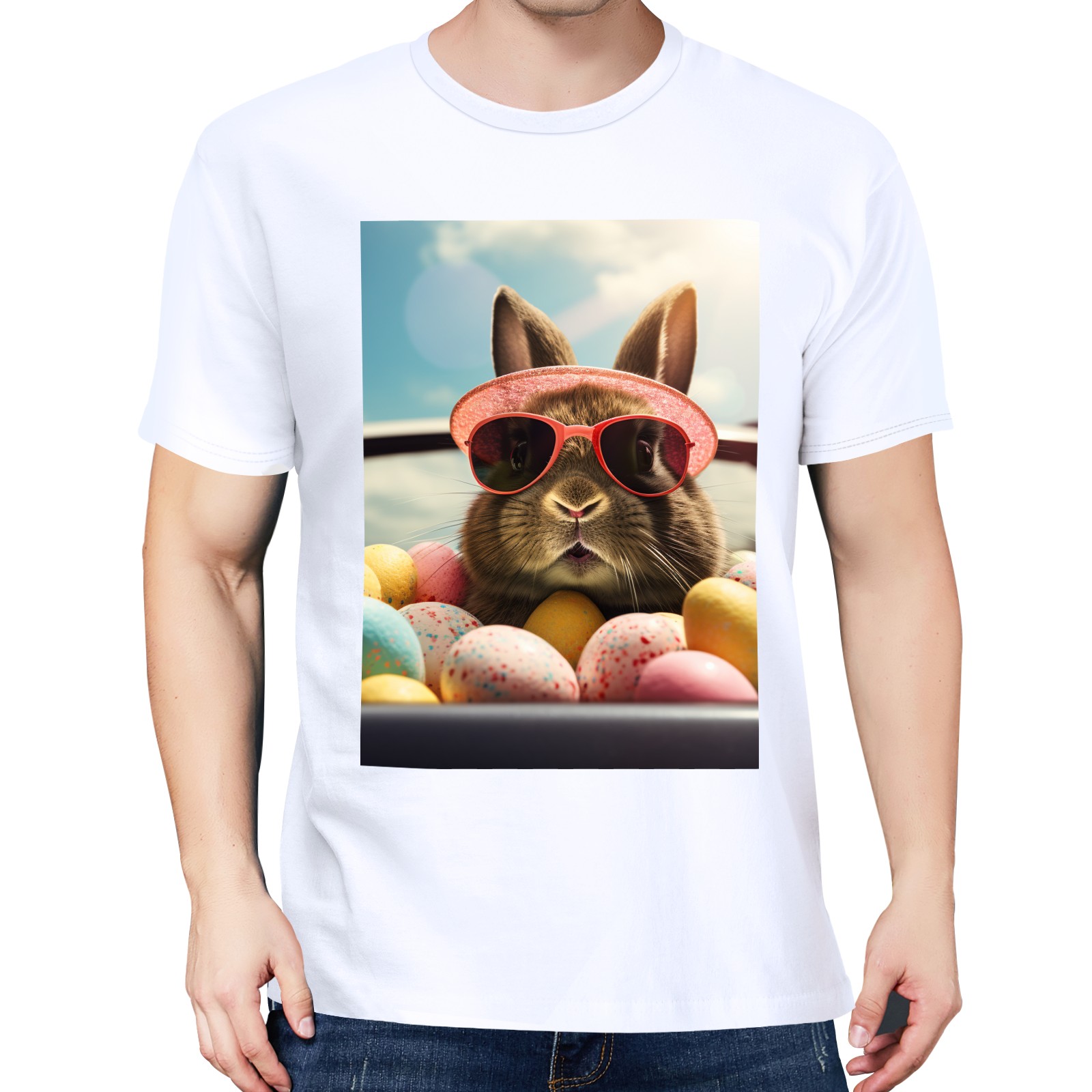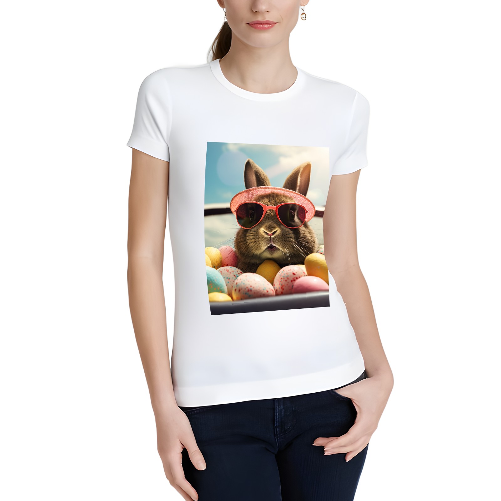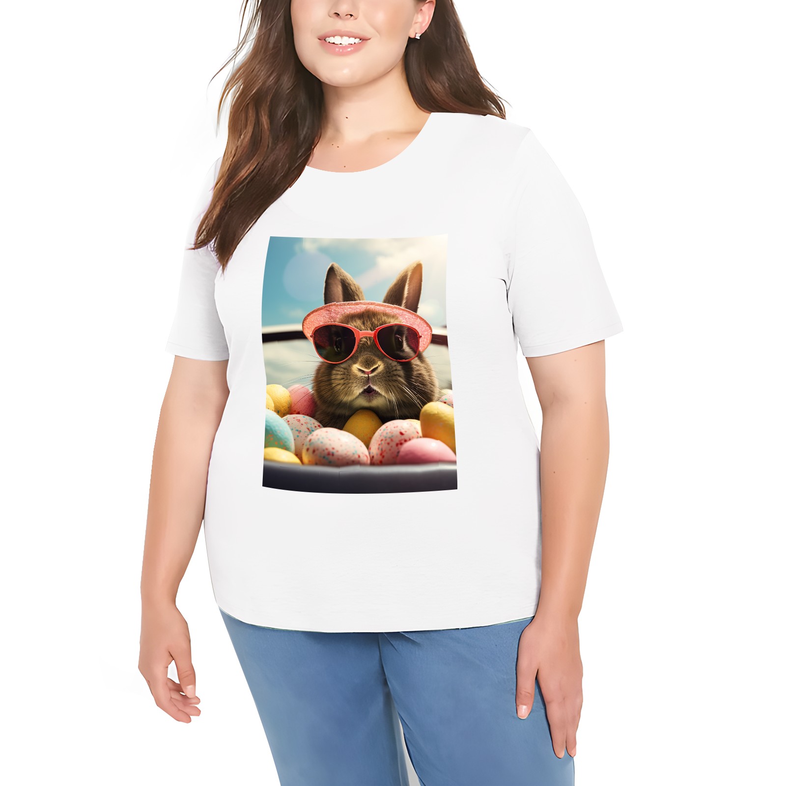 Basic Oversize Tees For WomenBjkj_Cute_Easter_Bunny_with_sunglasses_looking_out_of_a_car_fi_1dfd8406-6f54-4bc4-877c-d53555d50459 Loose Boyfriend Shirts Casual Blouse round neck