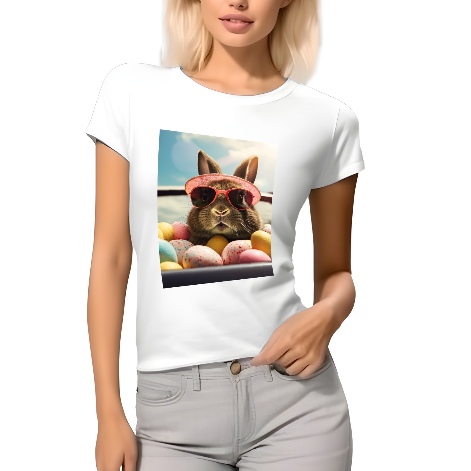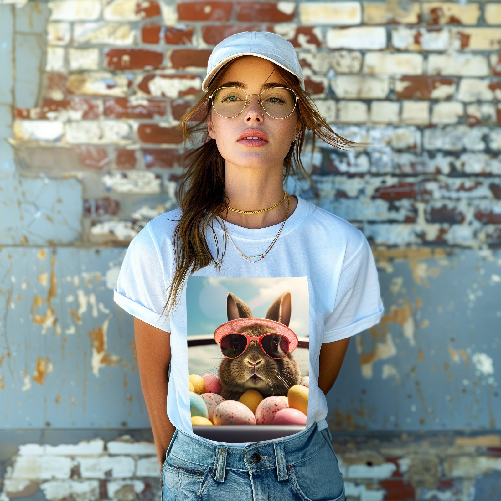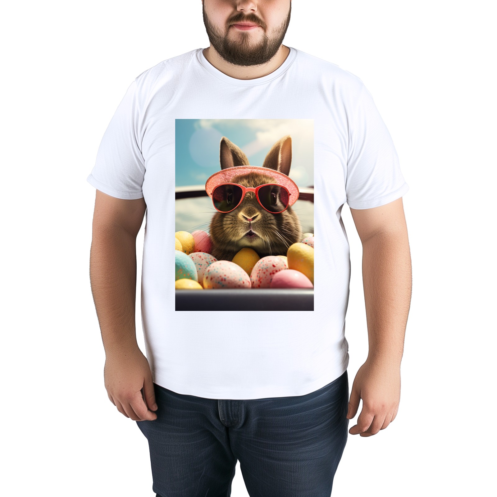 Basic Oversize Tees For WomenBjkj_Cute_Easter_Bunny_with_sunglasses_looking_out_of_a_car_fi_1dfd8406-6f54-4bc4-877c-d53555d50459 Loose Boyfriend Shirts Casual Blouse round neck