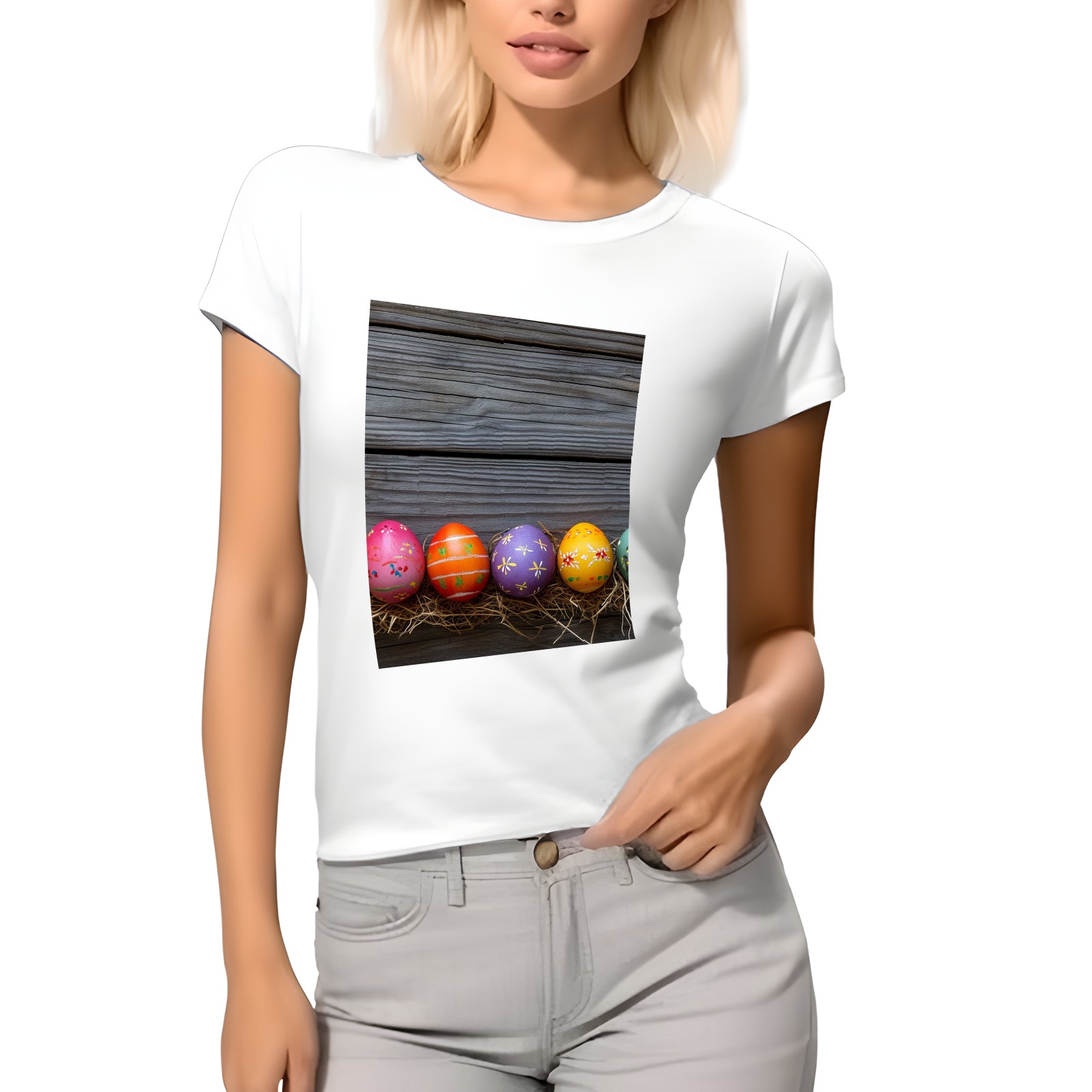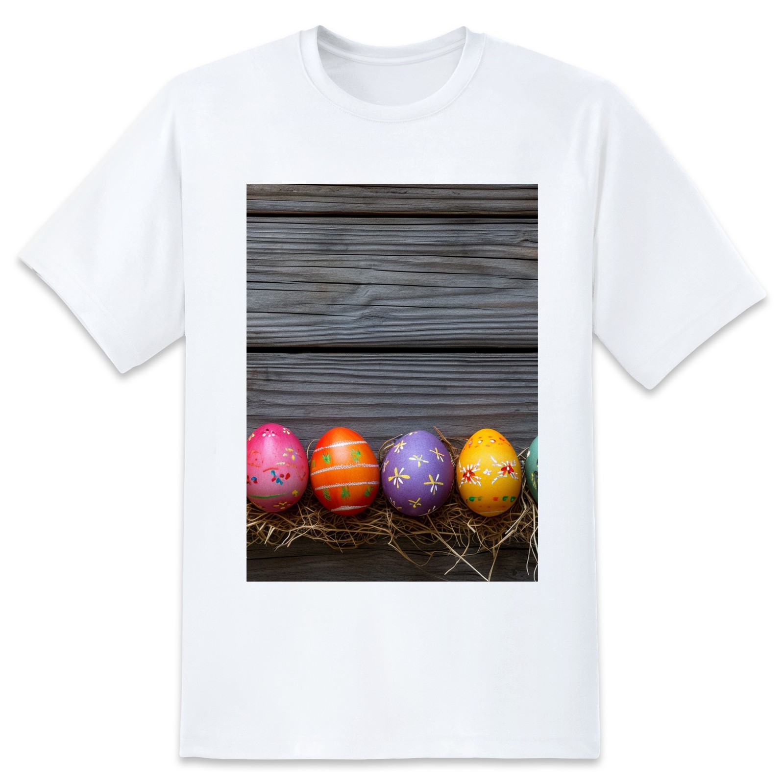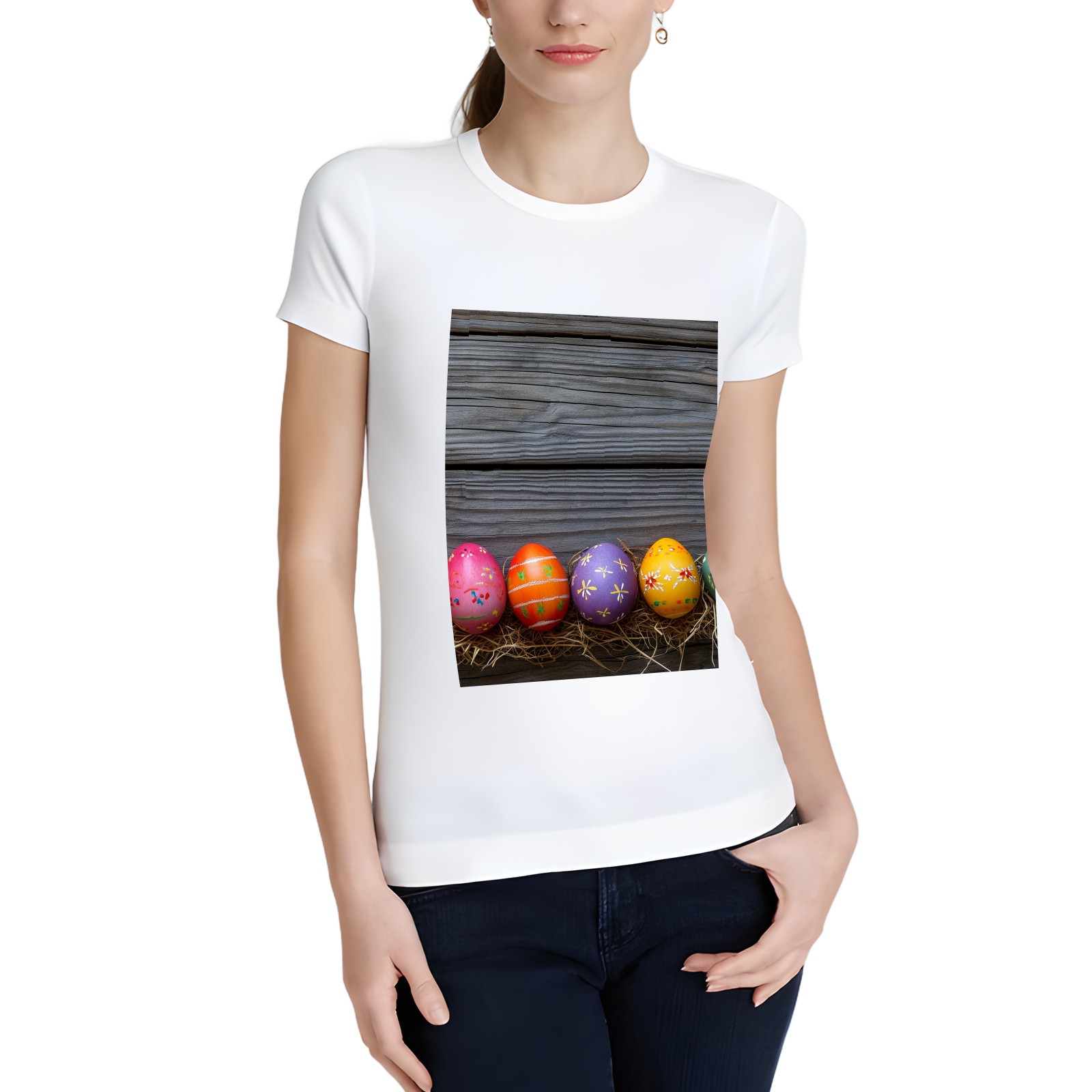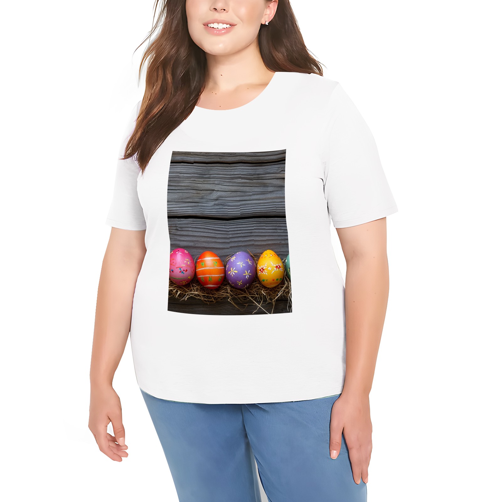 Basic Oversize Tees For WomenBjkj_Colorful_Easter_egg_side_borders_with_rustic_wooden_backg_b32c743e-2903-4314-8065-4e3cea0dccde Loose Boyfriend Shirts Casual Blouse round neck