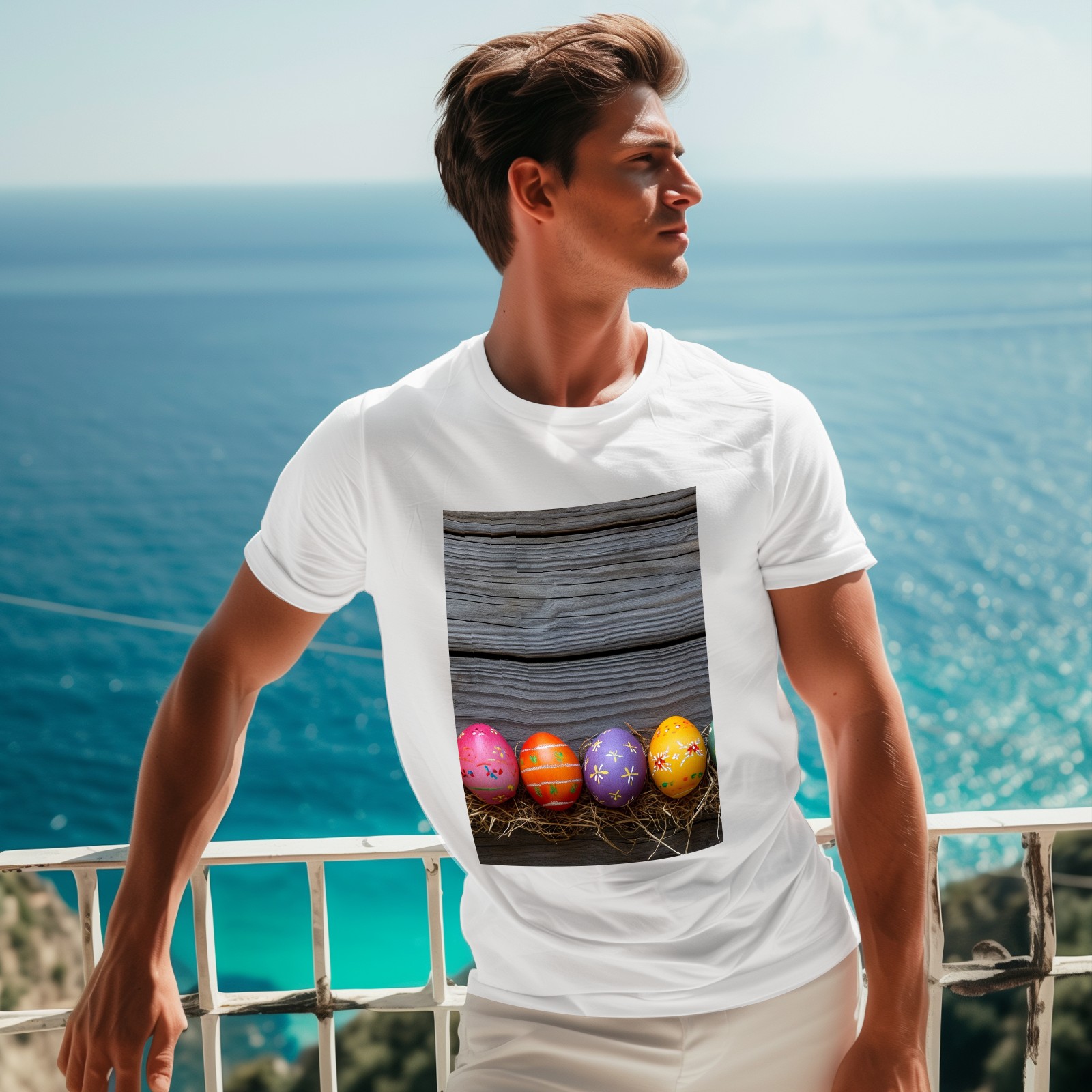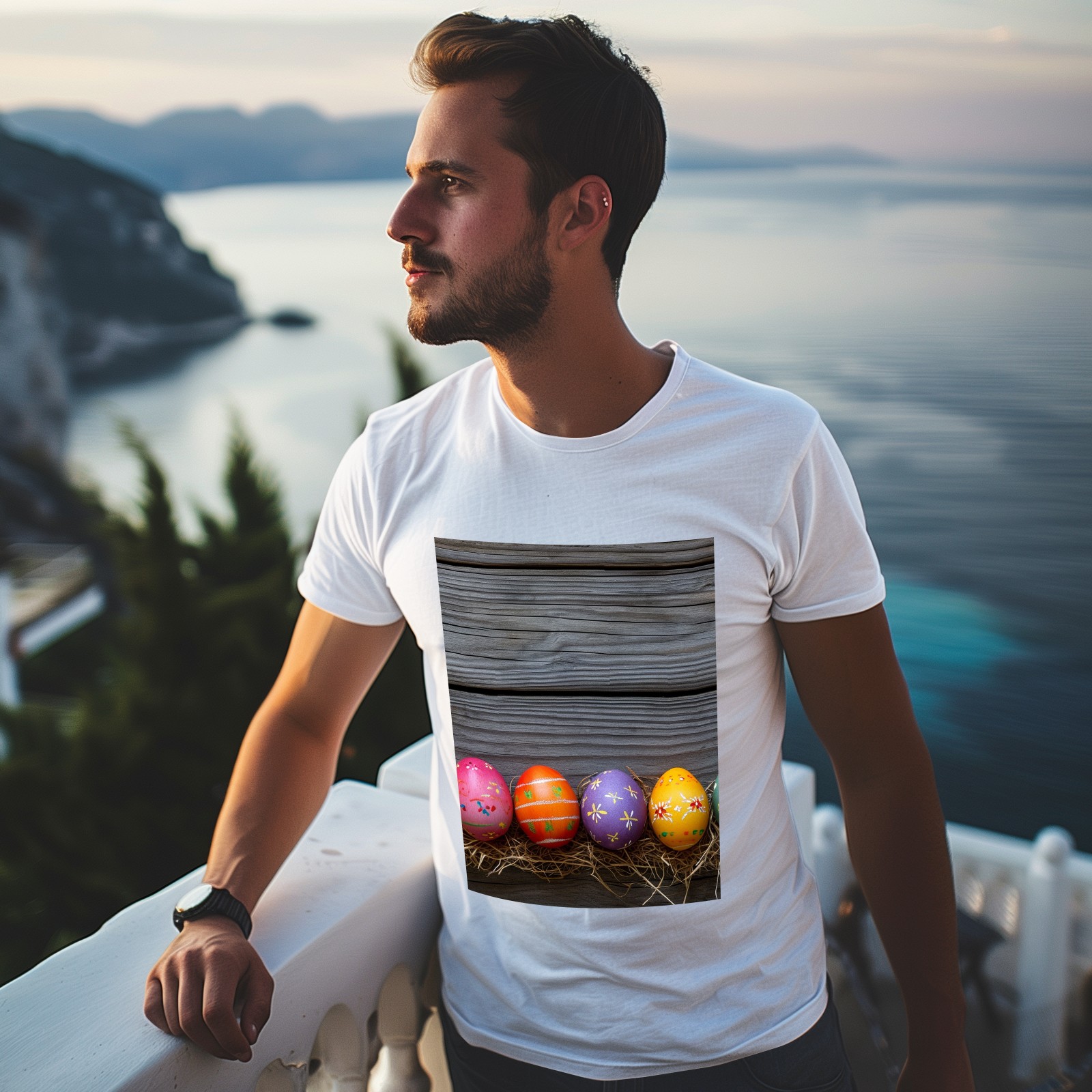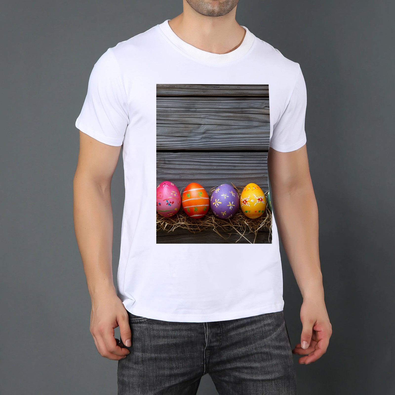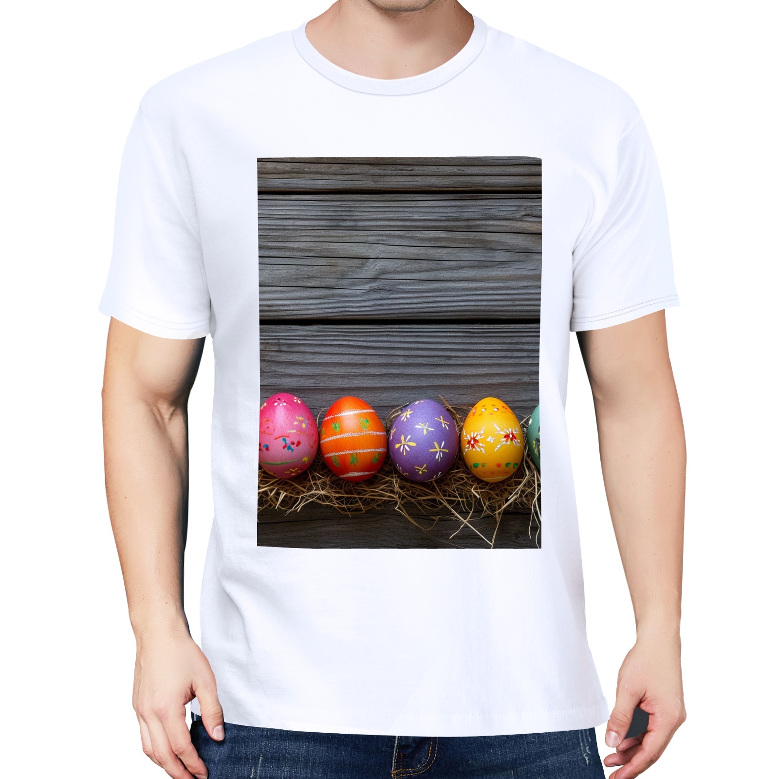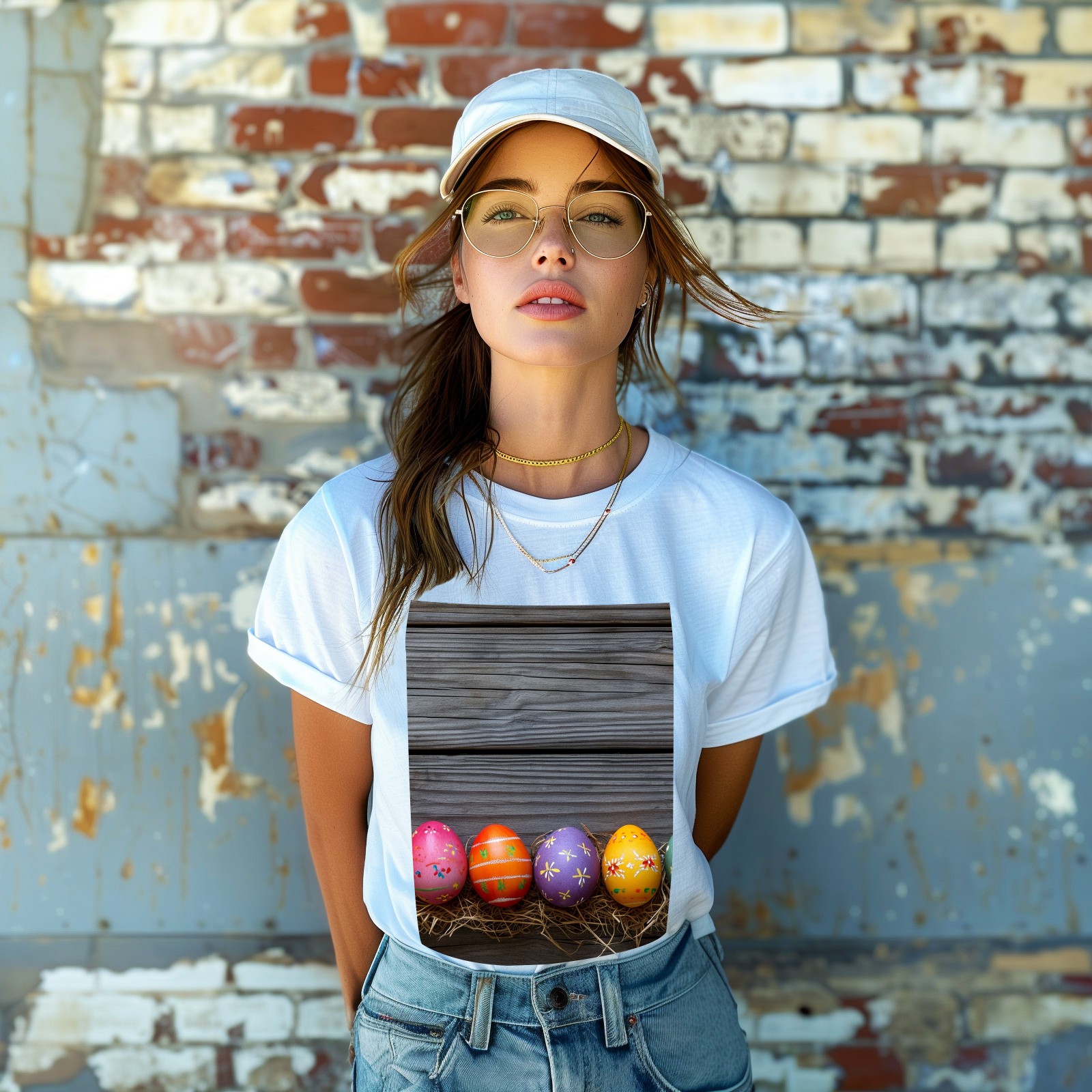 Basic Oversize Tees For WomenBjkj_Colorful_Easter_egg_side_borders_with_rustic_wooden_backg_b32c743e-2903-4314-8065-4e3cea0dccde Loose Boyfriend Shirts Casual Blouse round neck