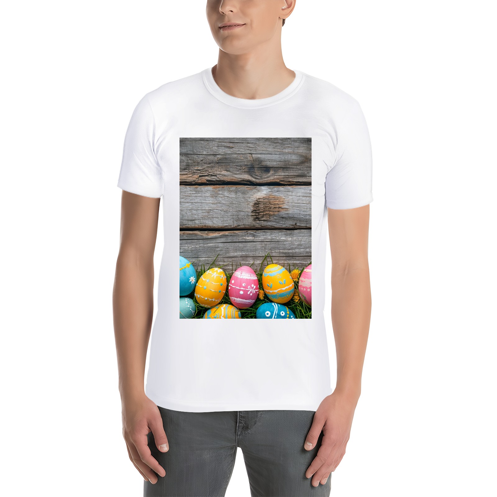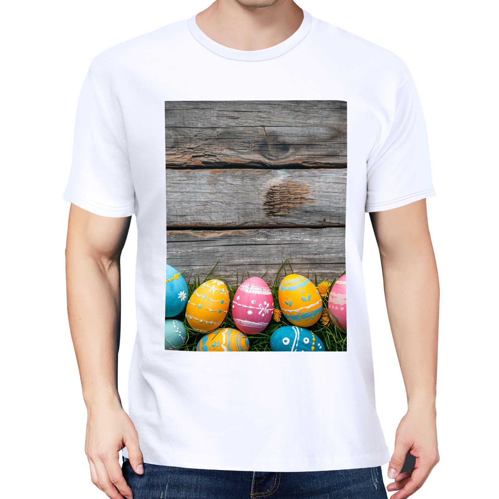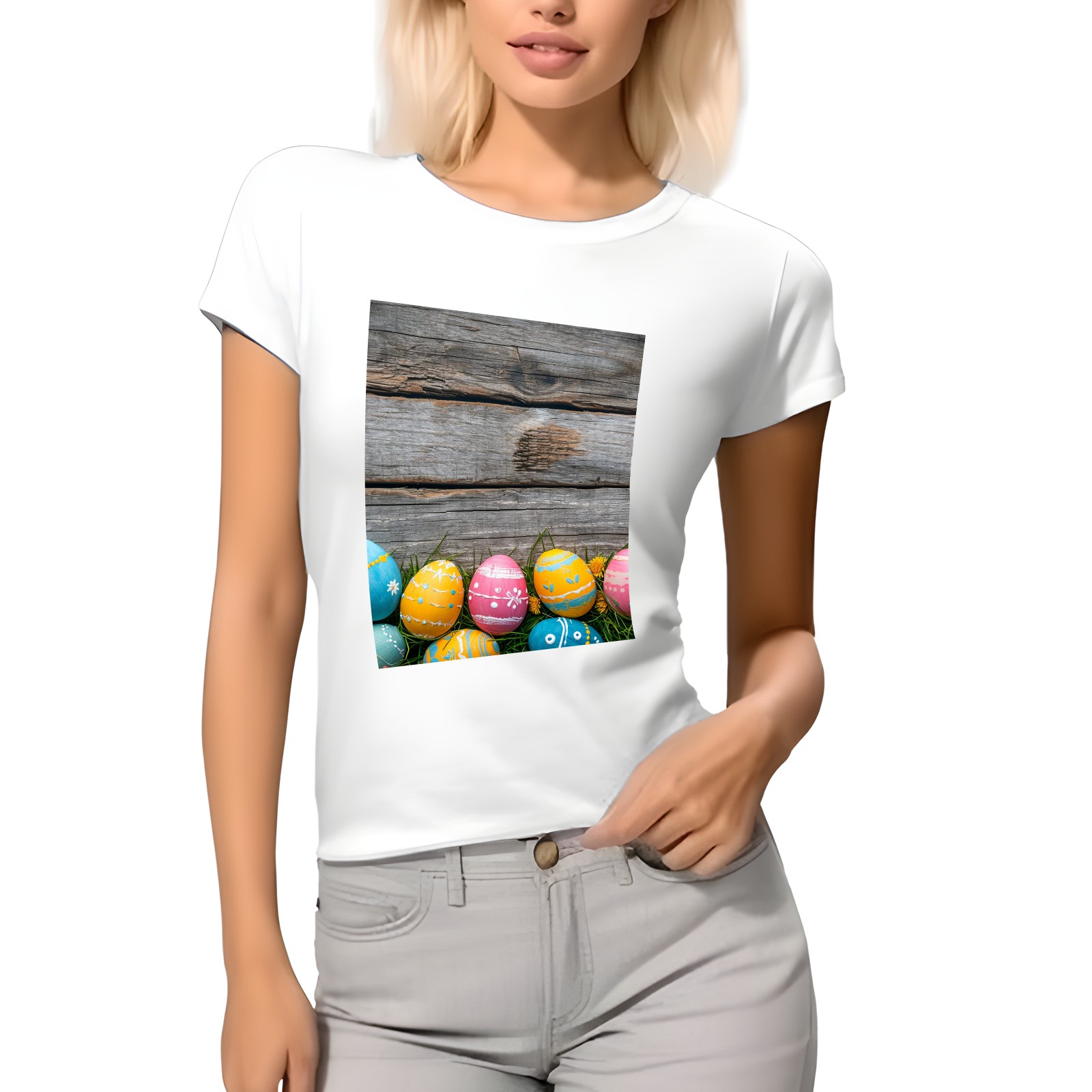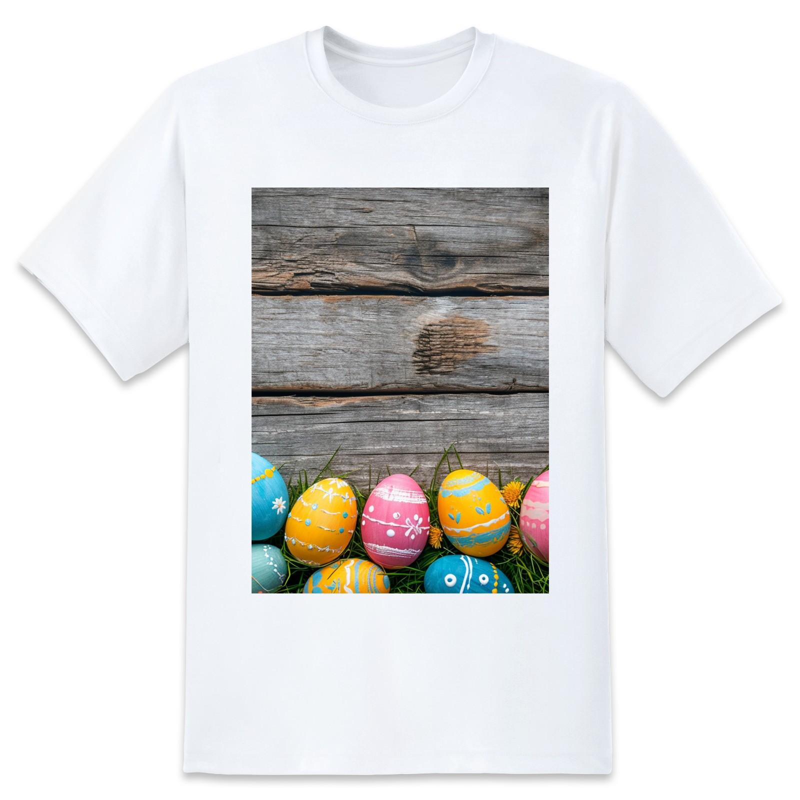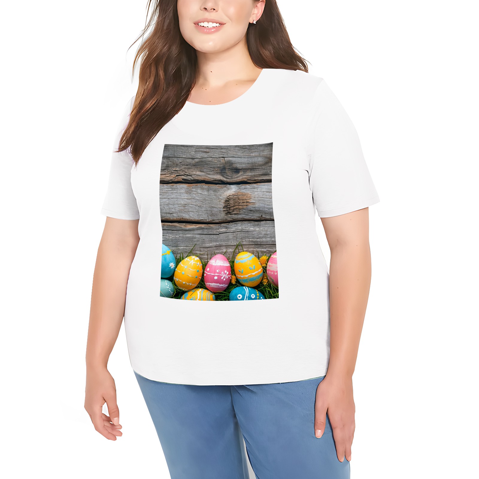 Basic Oversize Tees For WomenBjkj_Colorful_Easter_egg_side_borders_with_rustic_wooden_backg_45e3d121-f5c4-4781-8d95-4a6aada4bb3b Loose Boyfriend Shirts Casual Blouse round neck
