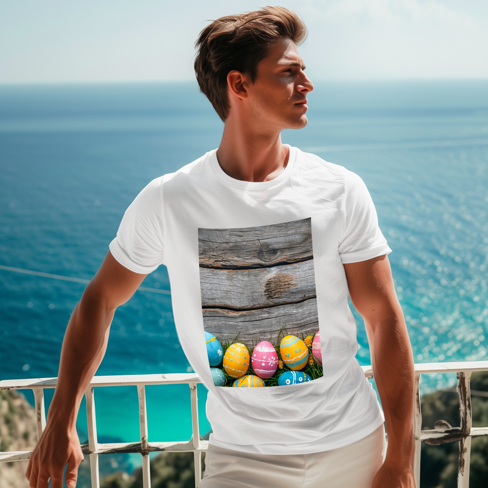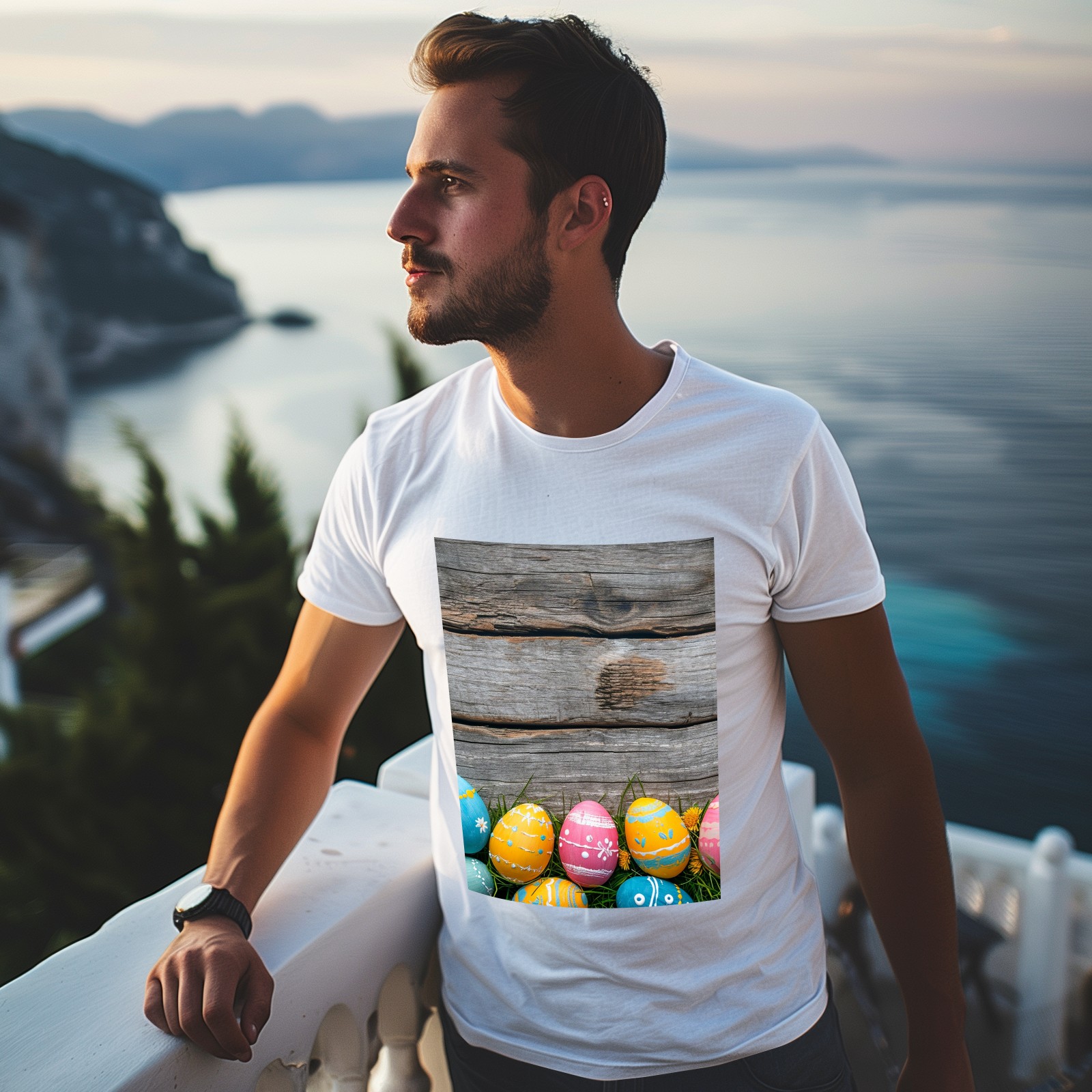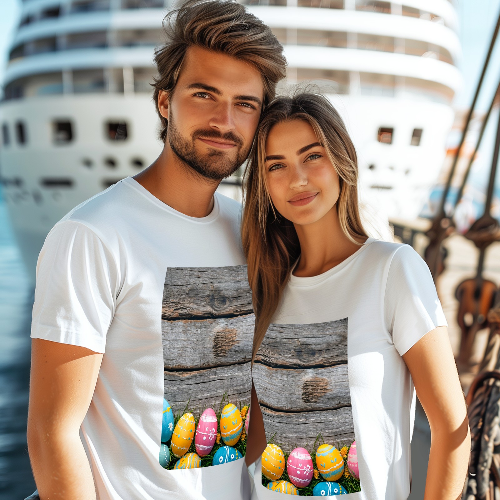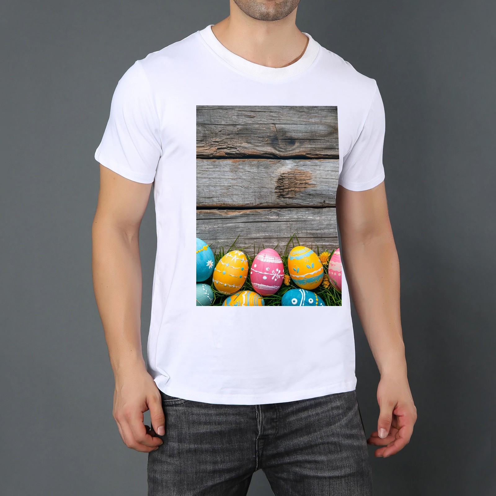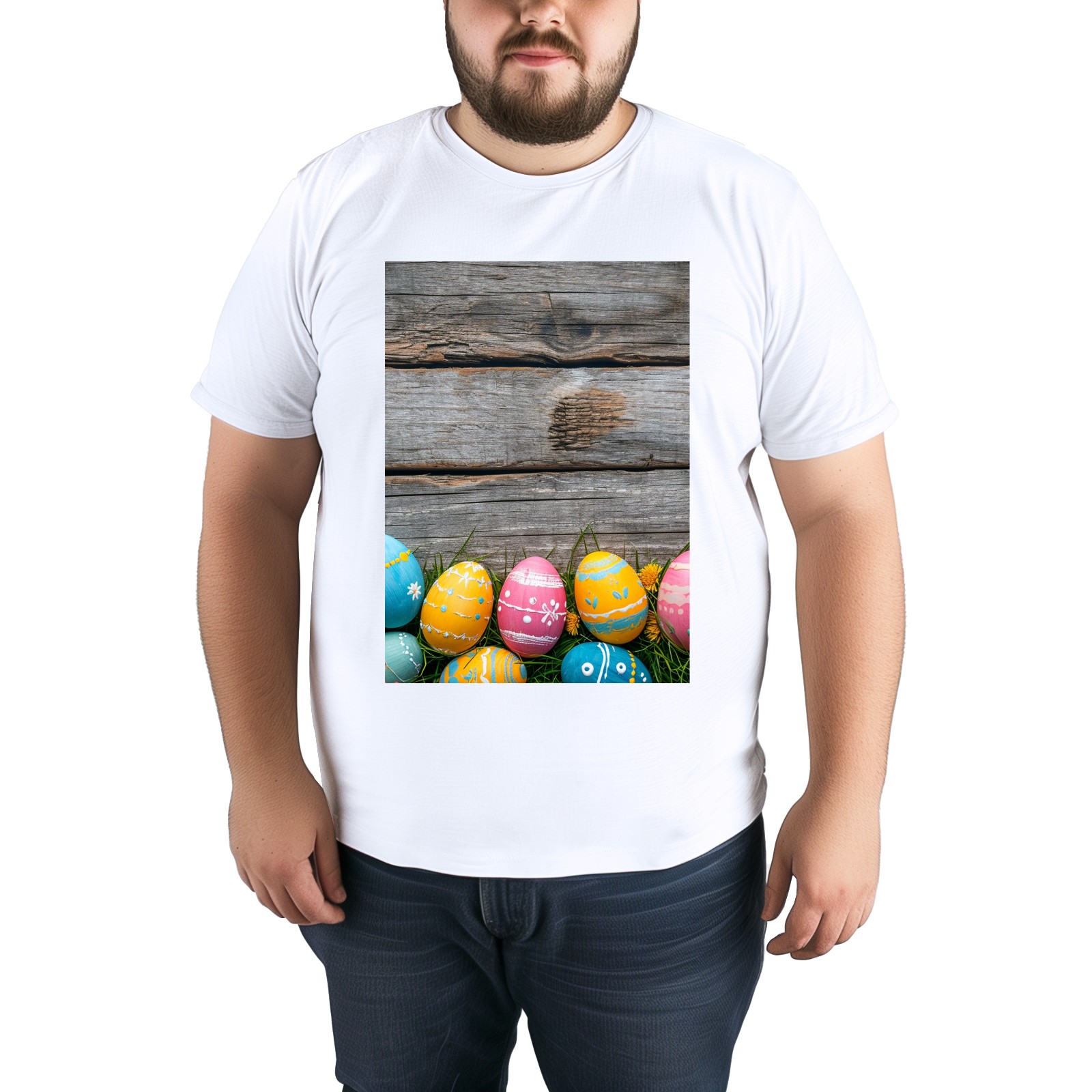 Basic Oversize Tees For WomenBjkj_Colorful_Easter_egg_side_borders_with_rustic_wooden_backg_45e3d121-f5c4-4781-8d95-4a6aada4bb3b Loose Boyfriend Shirts Casual Blouse round neck