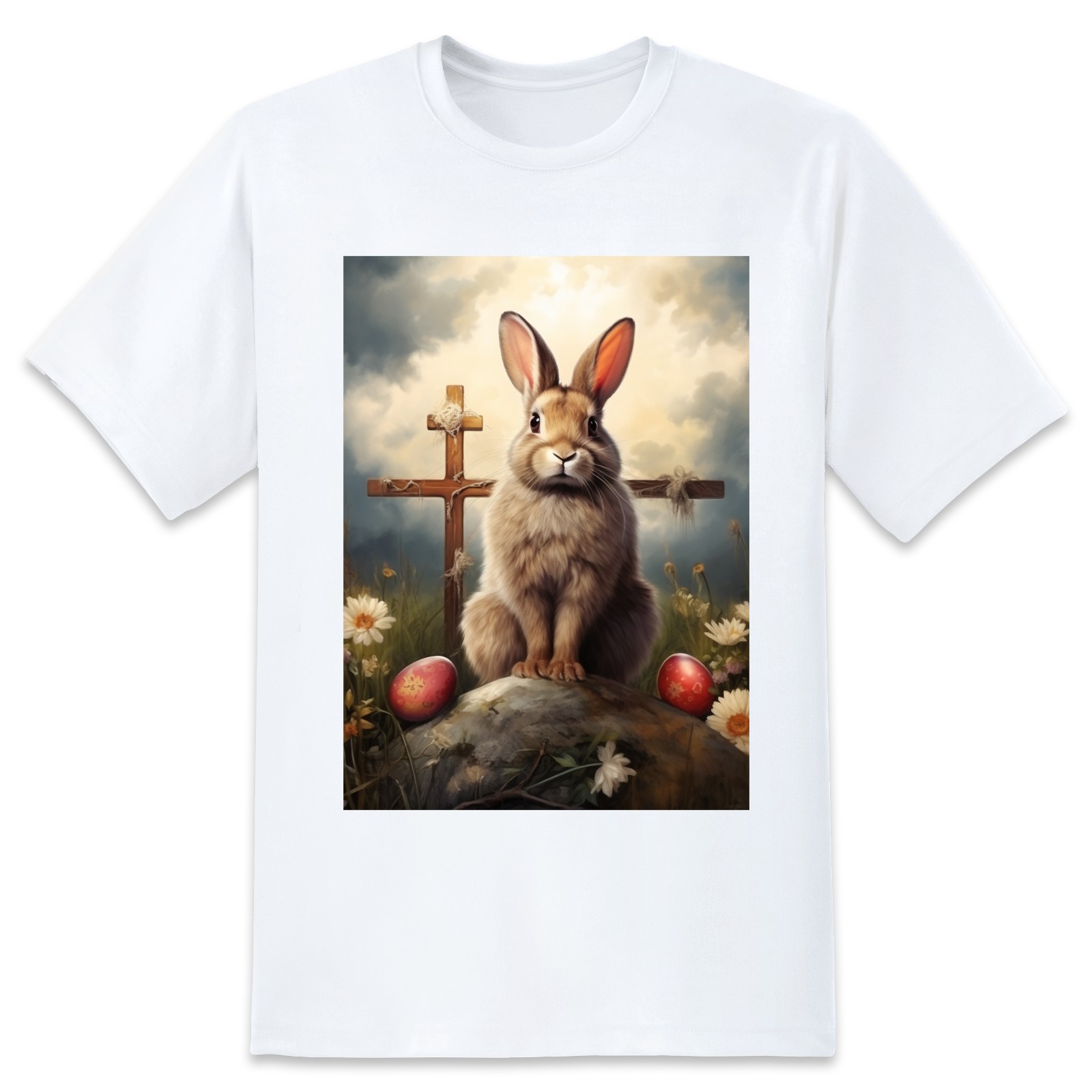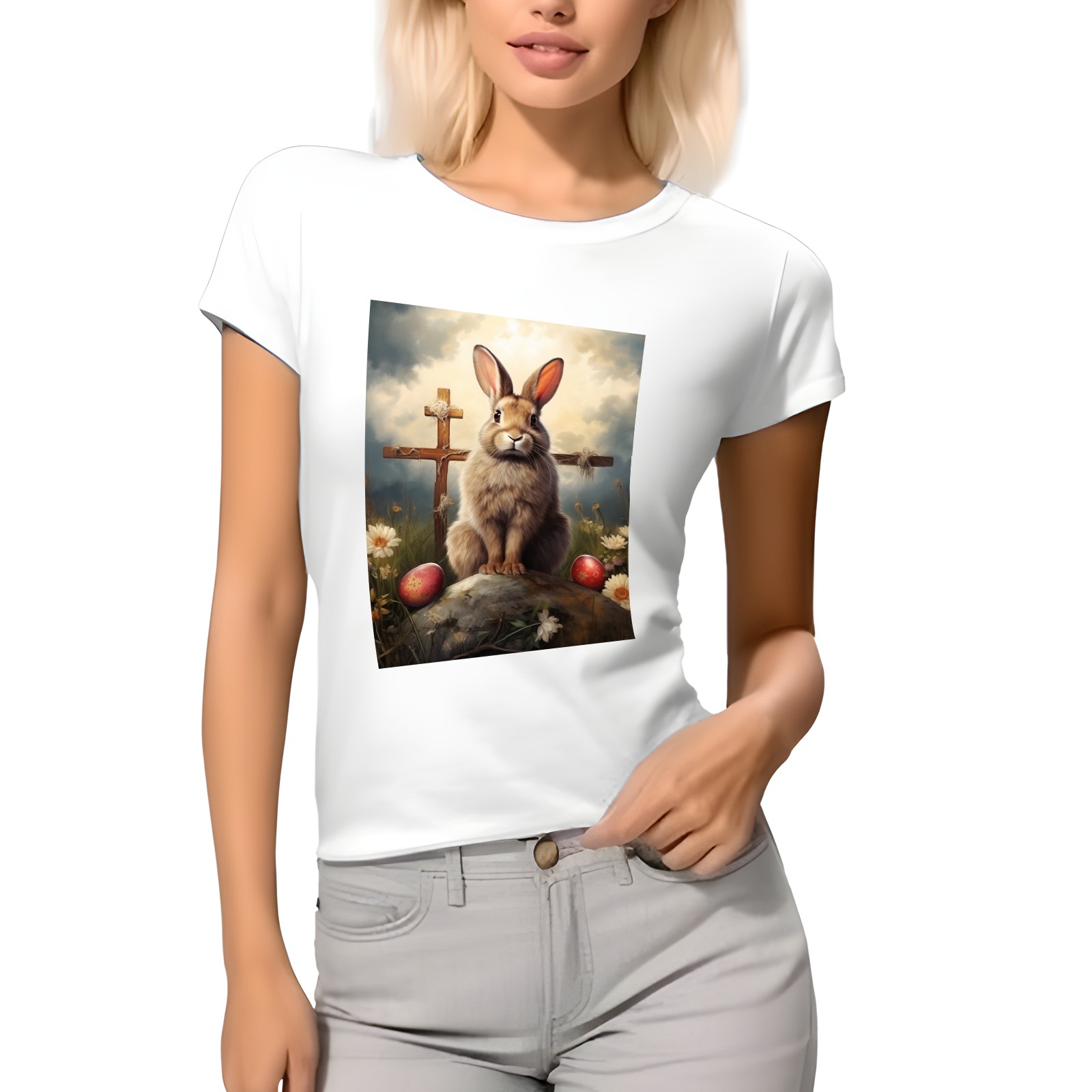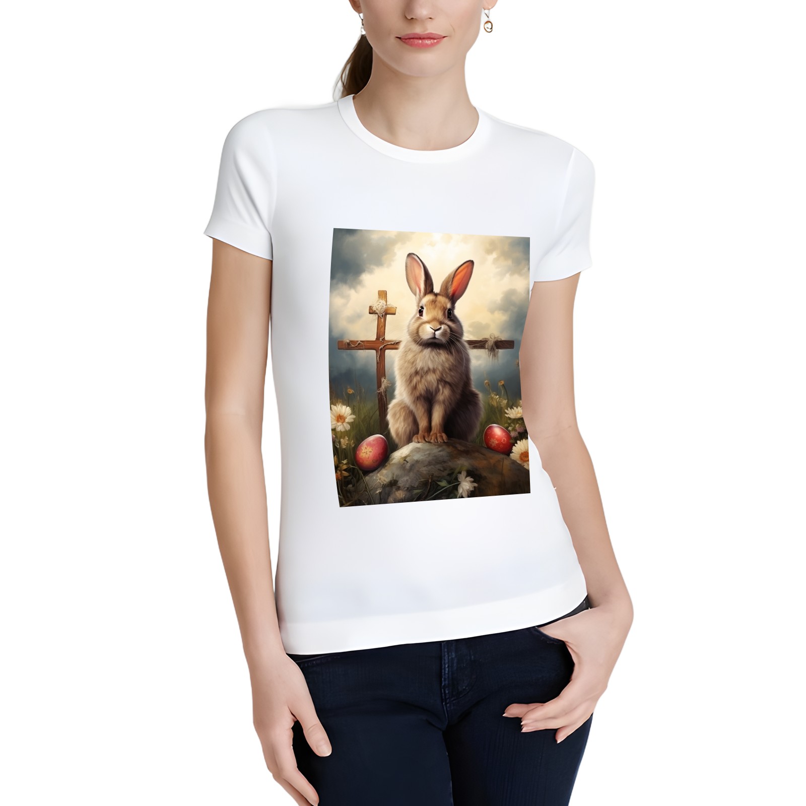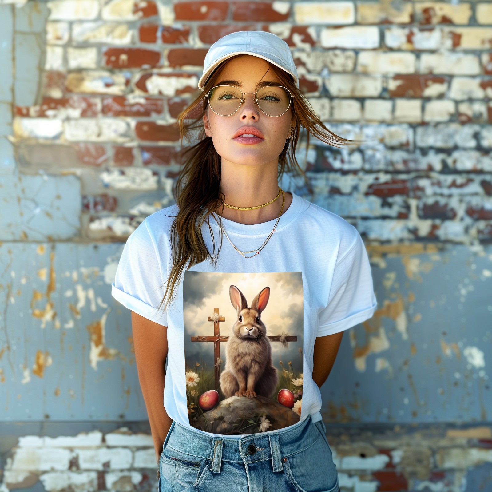 Basic Oversize Tees For WomenBjkj_Bunny_on_easter_cross_with_eggs_and_bunnies_in_the_style__4af49bce-276a-4d76-a946-314c15161949 Loose Boyfriend Shirts Casual Blouse round neck