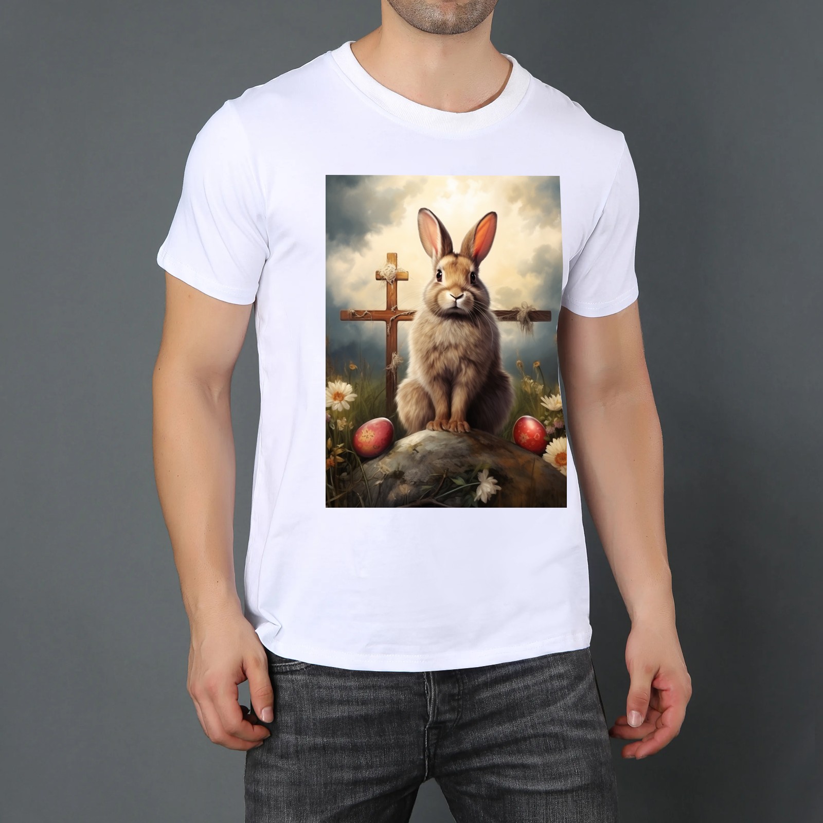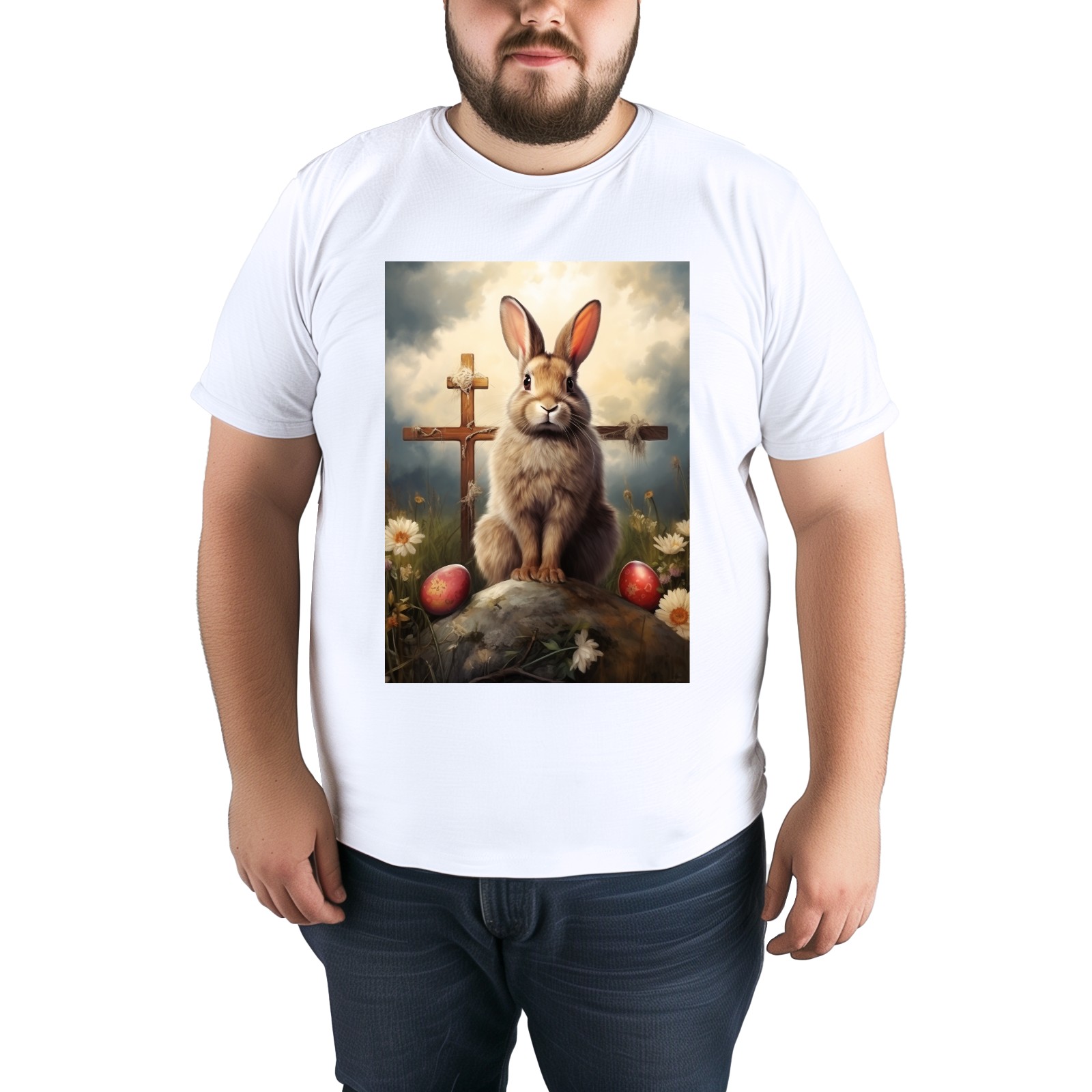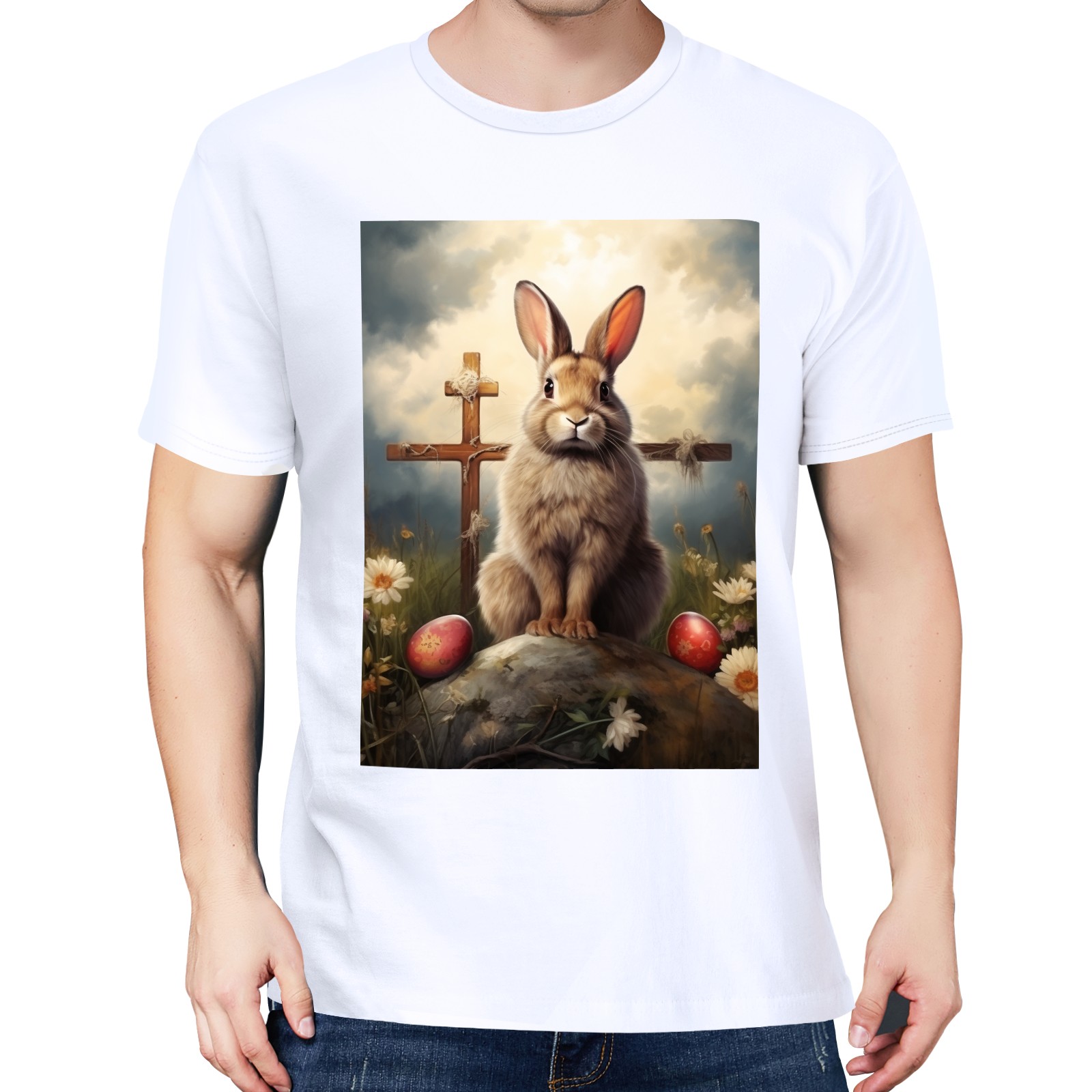 Basic Oversize Tees For WomenBjkj_Bunny_on_easter_cross_with_eggs_and_bunnies_in_the_style__4af49bce-276a-4d76-a946-314c15161949 Loose Boyfriend Shirts Casual Blouse round neck