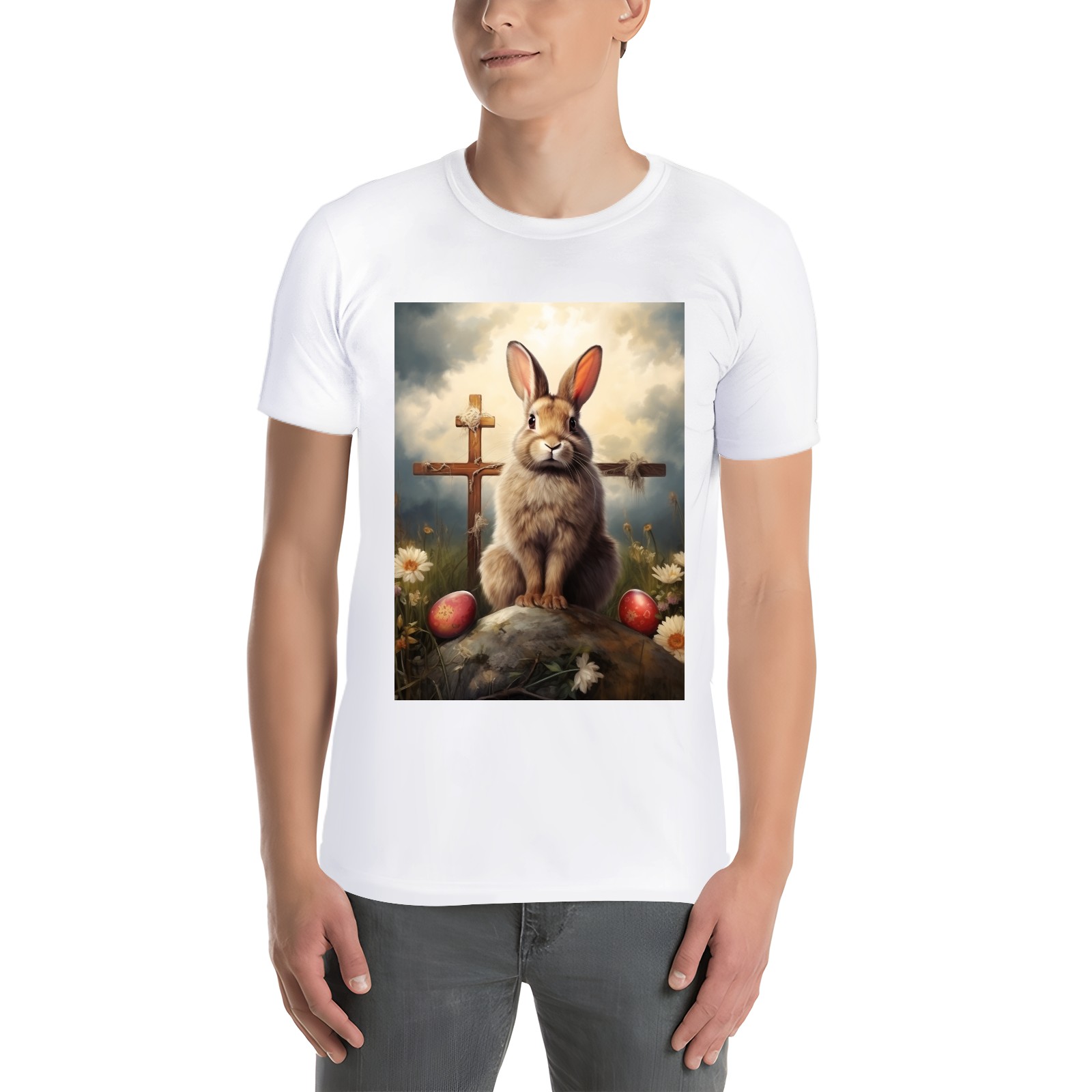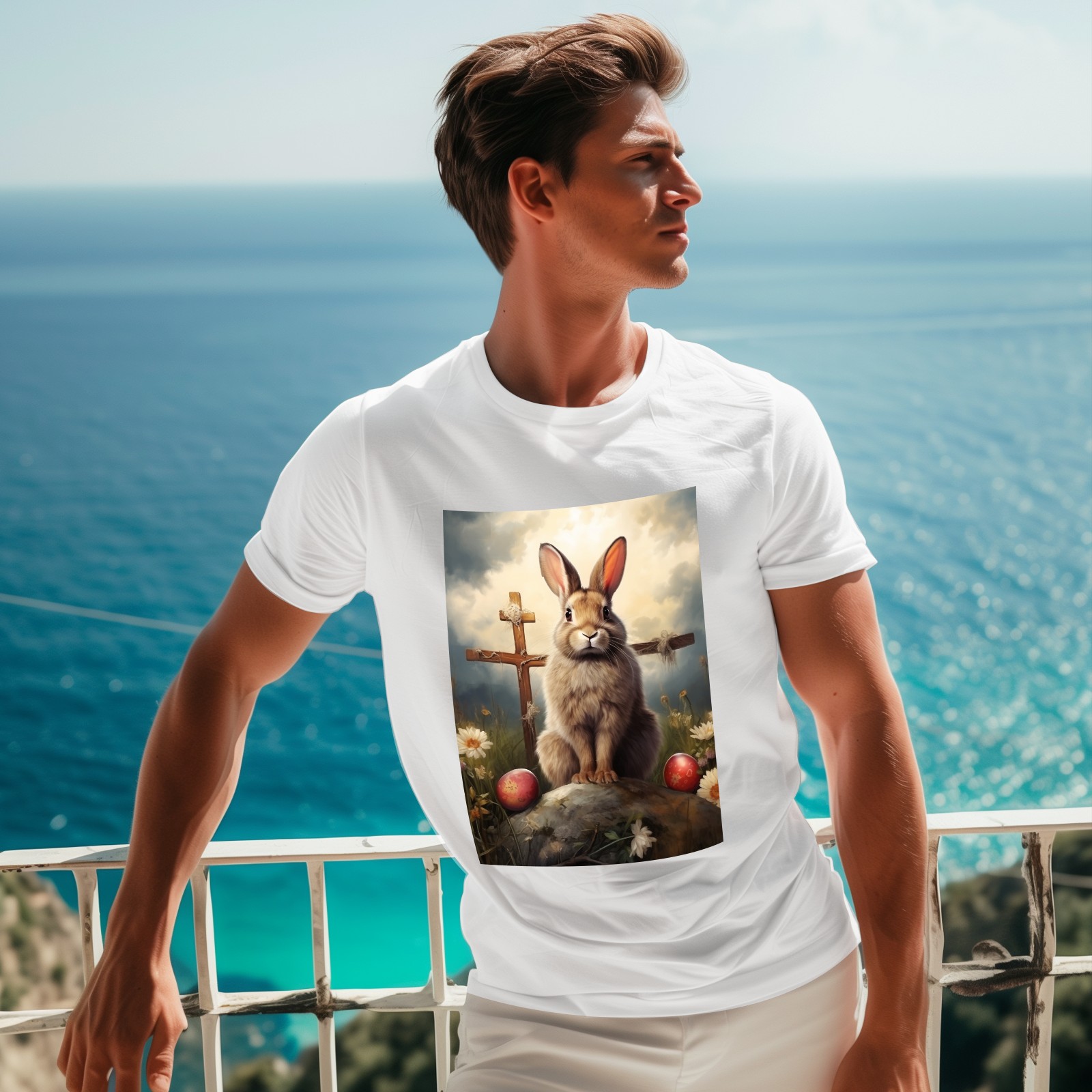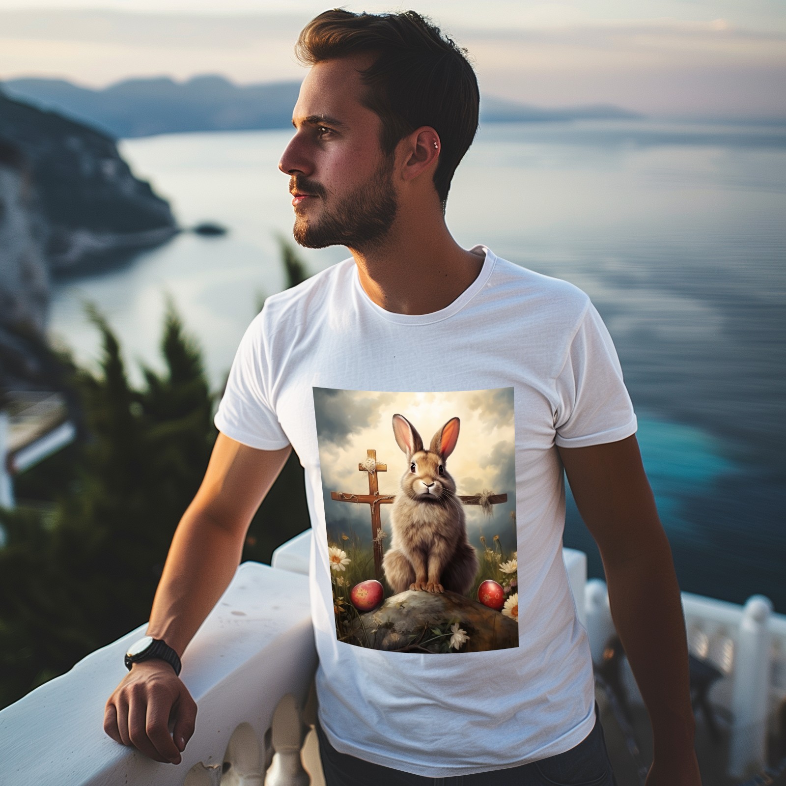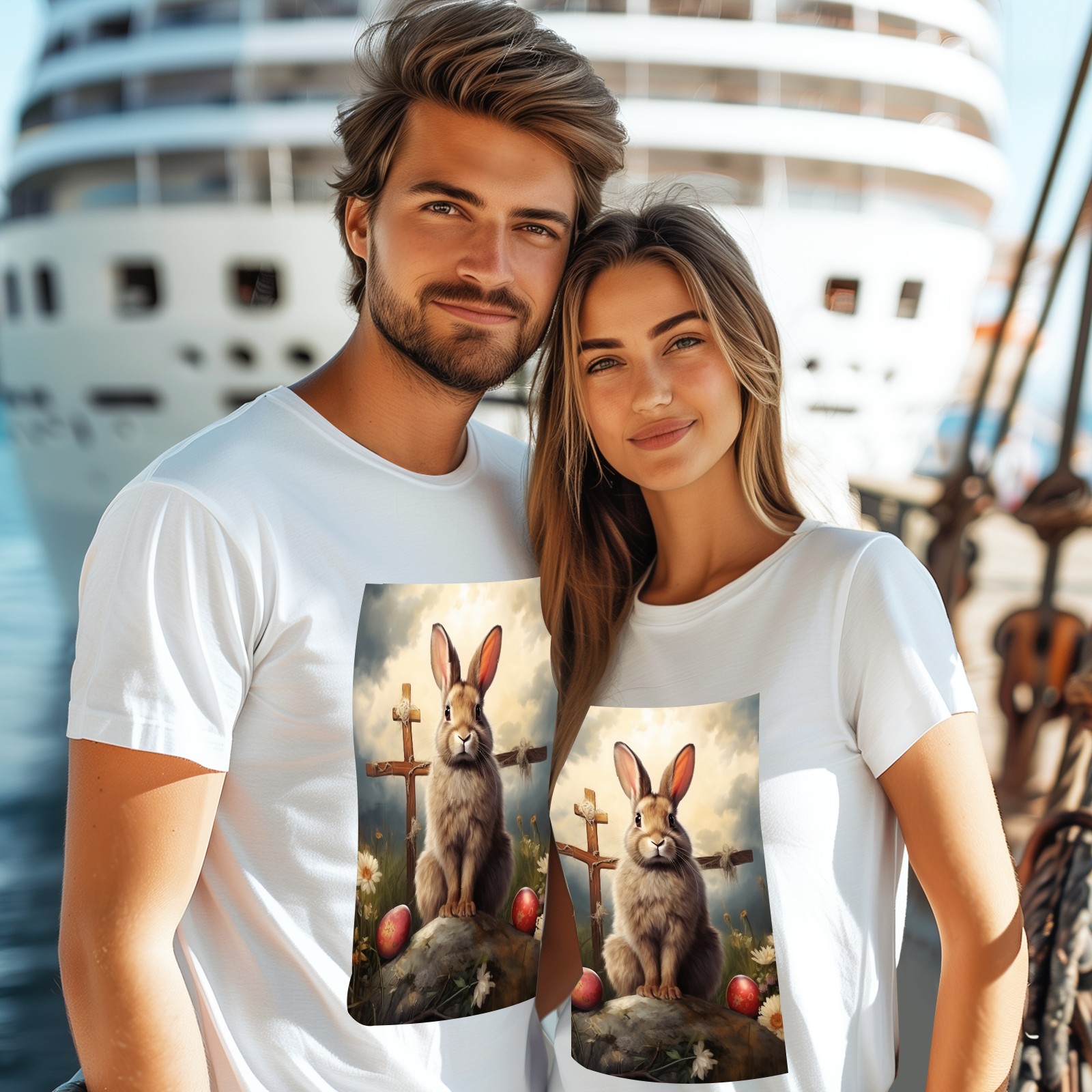 Basic Oversize Tees For WomenBjkj_Bunny_on_easter_cross_with_eggs_and_bunnies_in_the_style__4af49bce-276a-4d76-a946-314c15161949 Loose Boyfriend Shirts Casual Blouse round neck