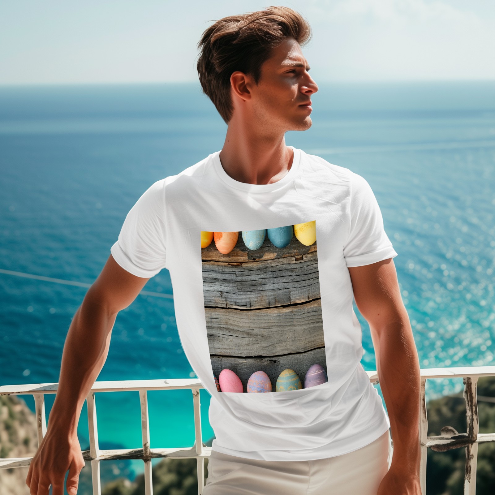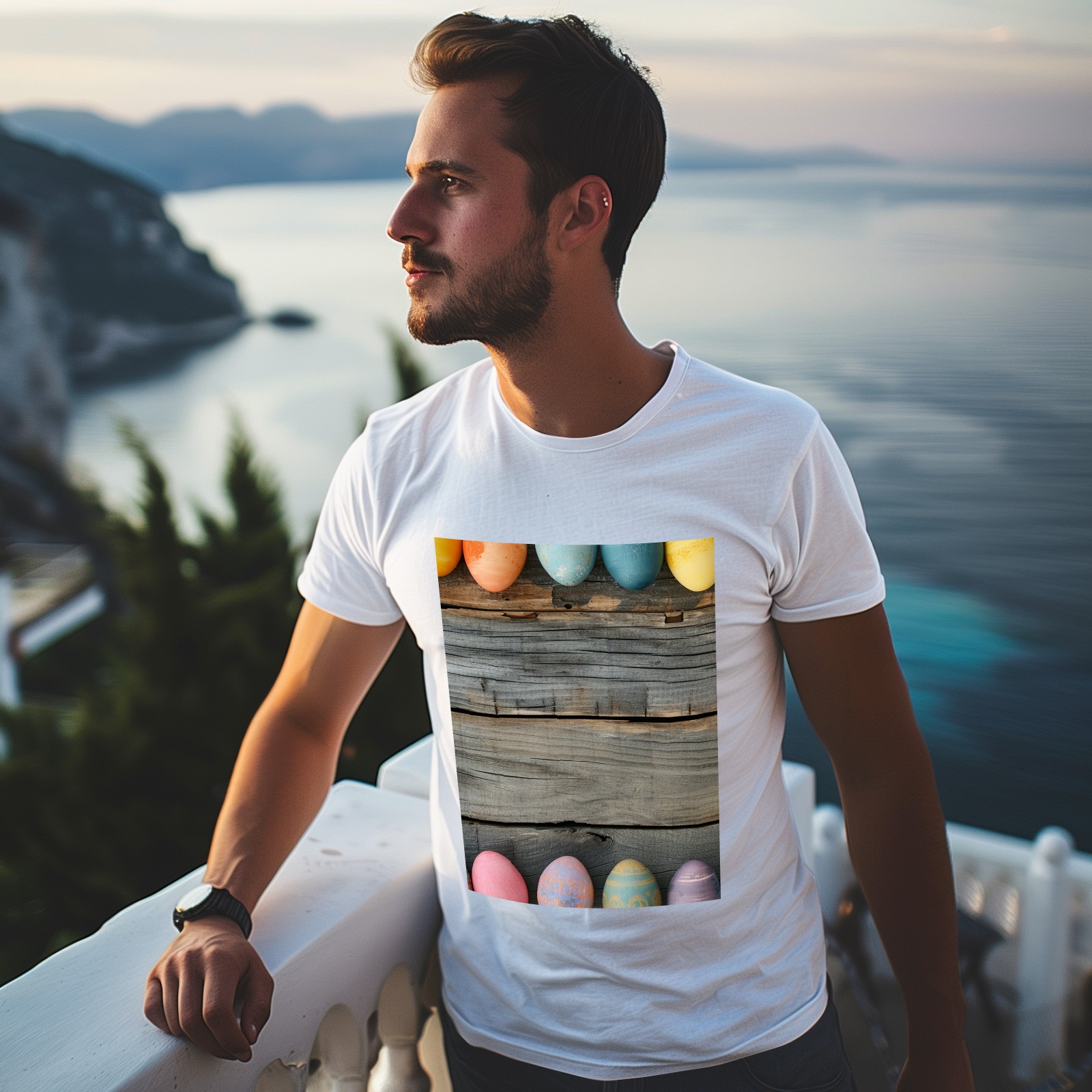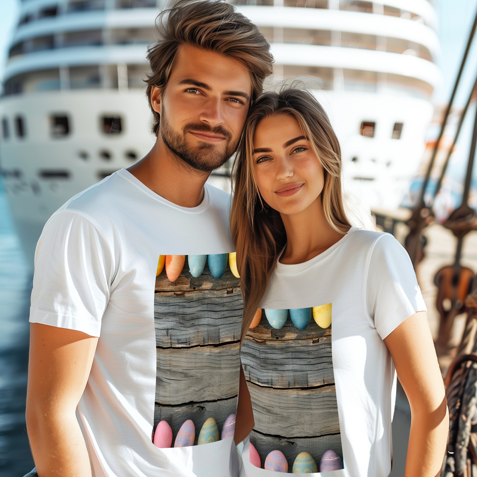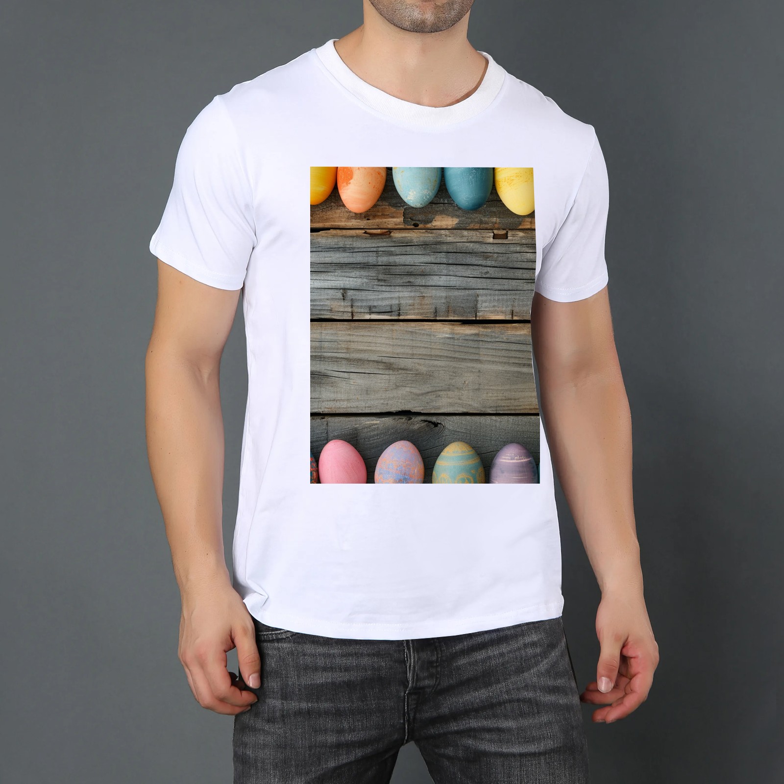 Basic Oversize Tees For WomenBjkj_Colorful_Easter_egg_side_borders_with_rustic_wooden_backg_7a464ebe-bb9d-4017-9994-566da7c39b2d Loose Boyfriend Shirts Casual Blouse round neck