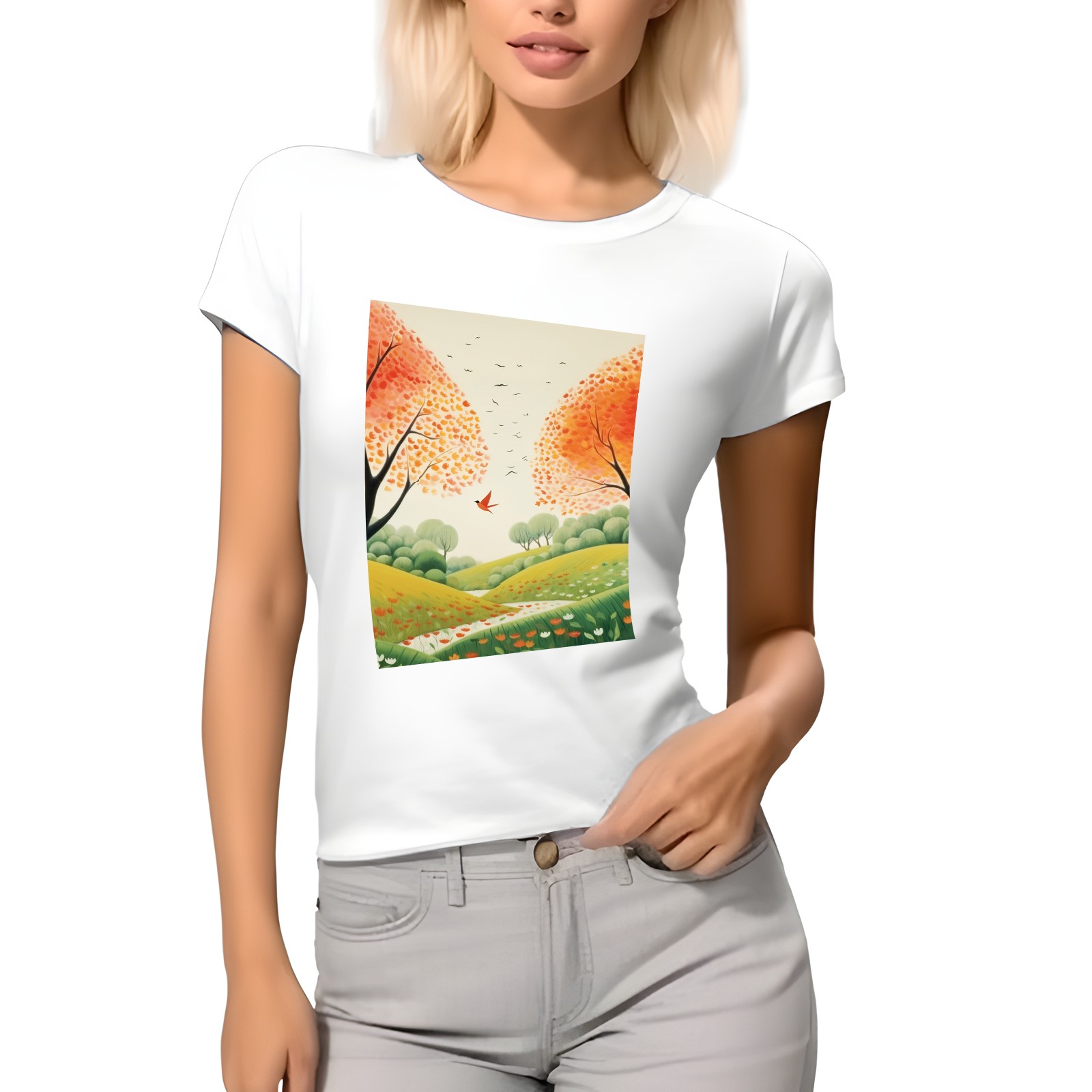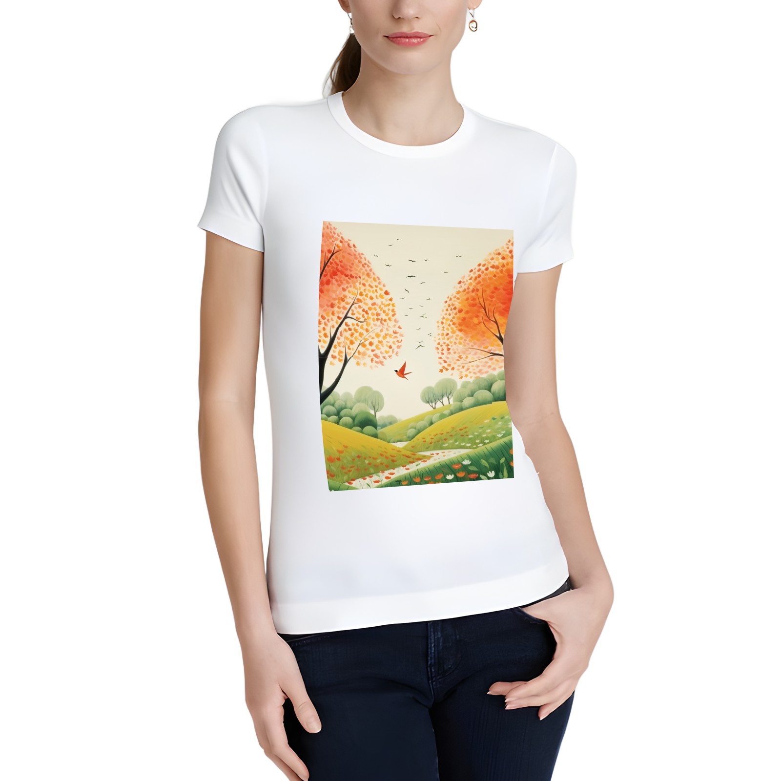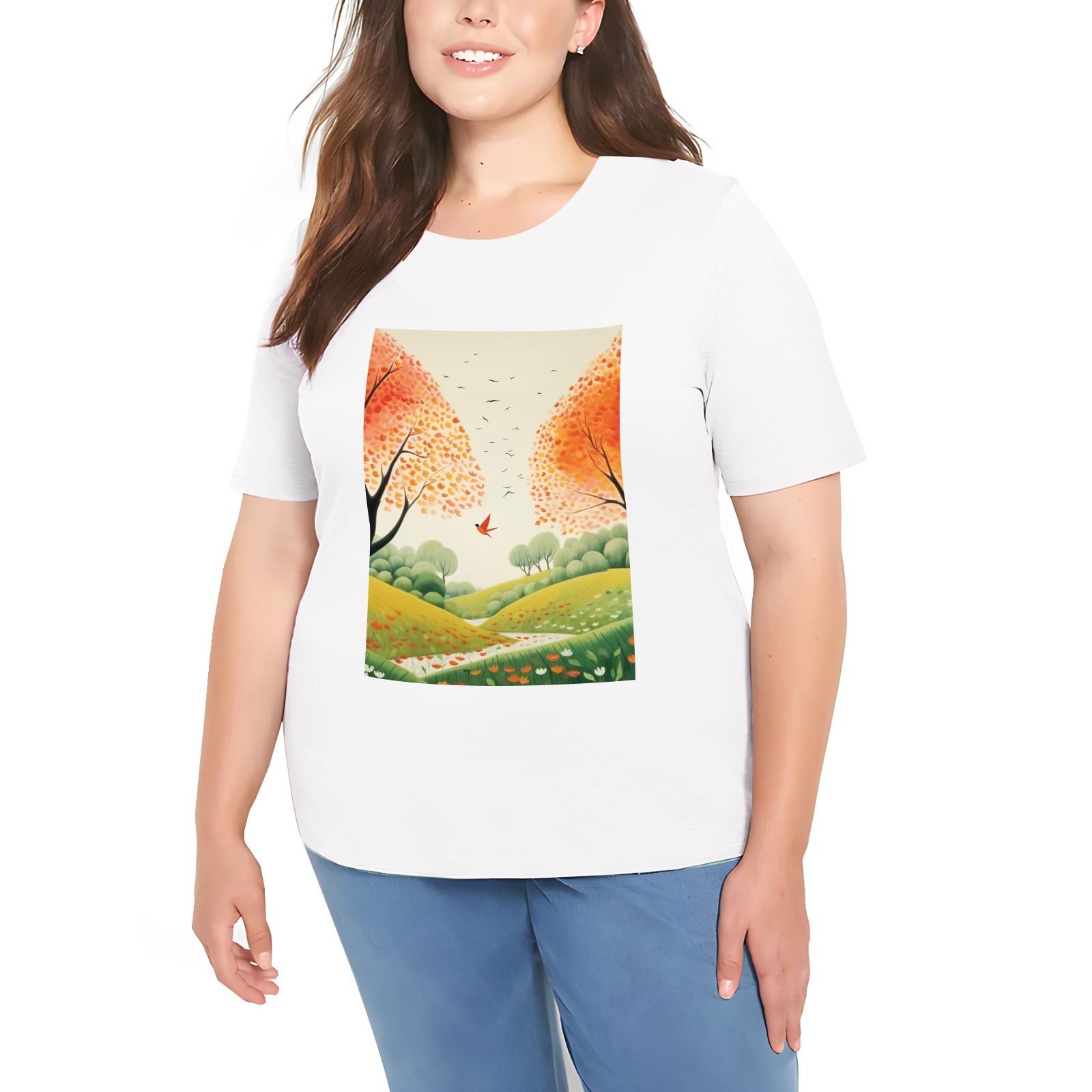 Basic Oversize Tees For WomenSpring Landscape (11) Loose Boyfriend Shirts Casual Blouse round neck