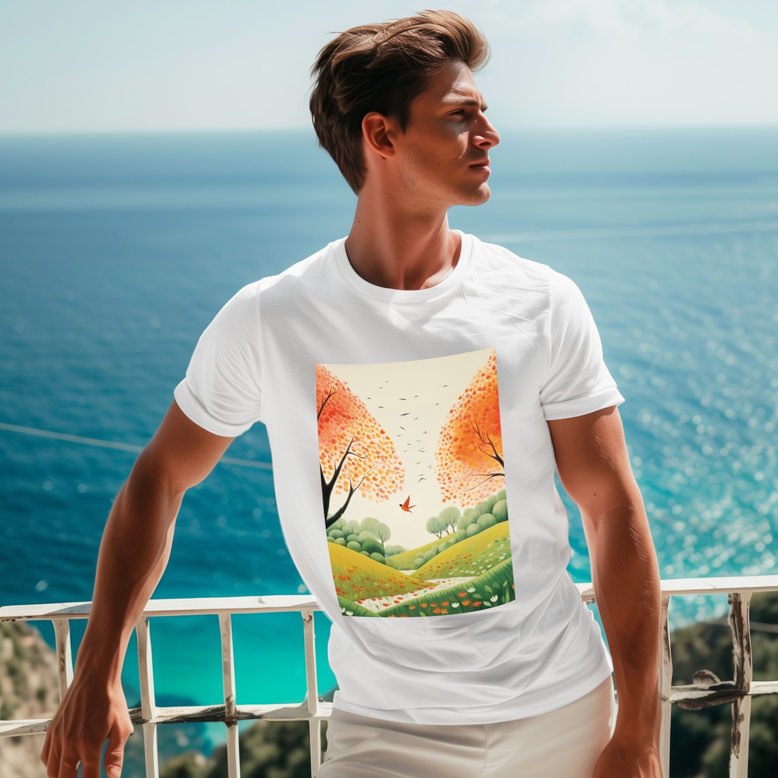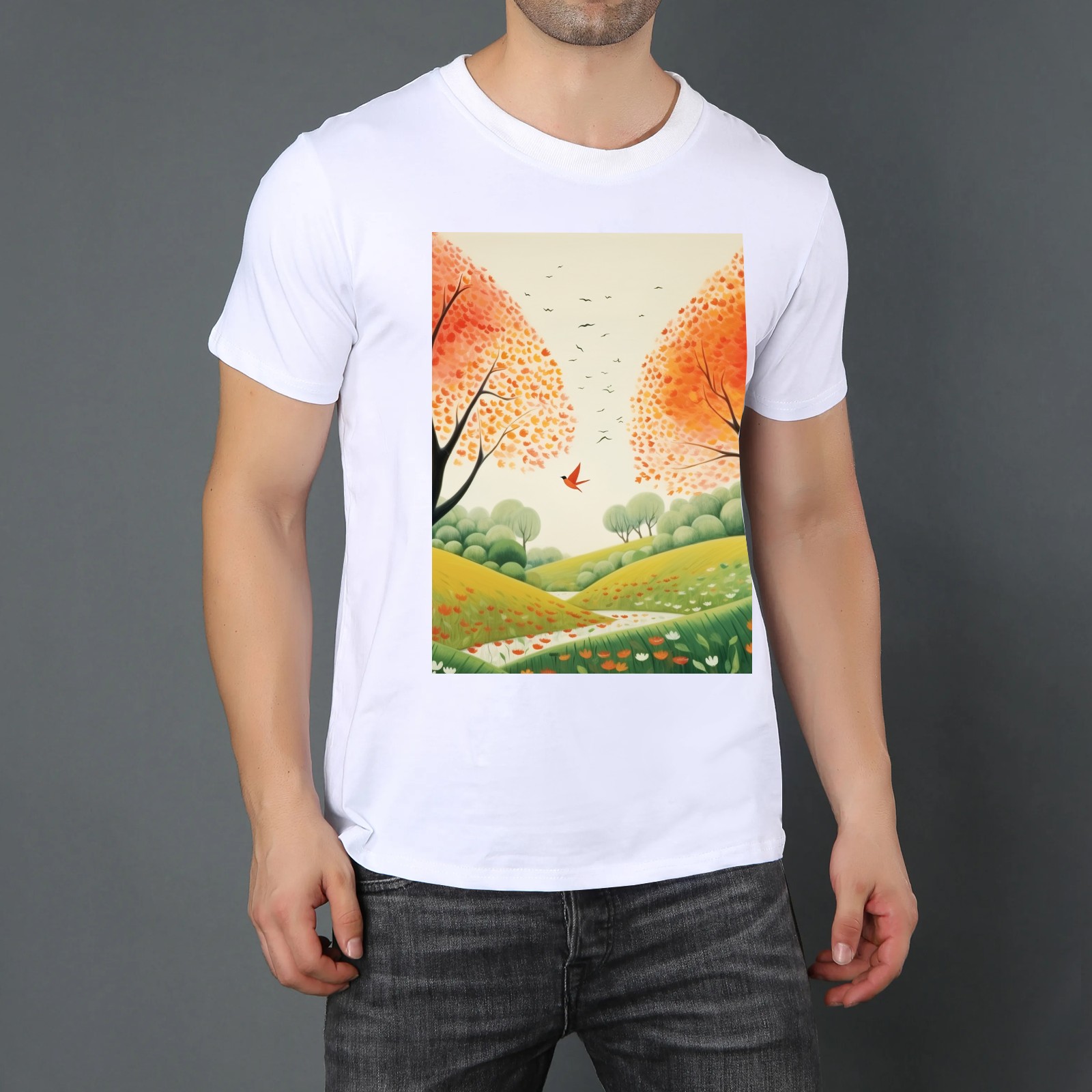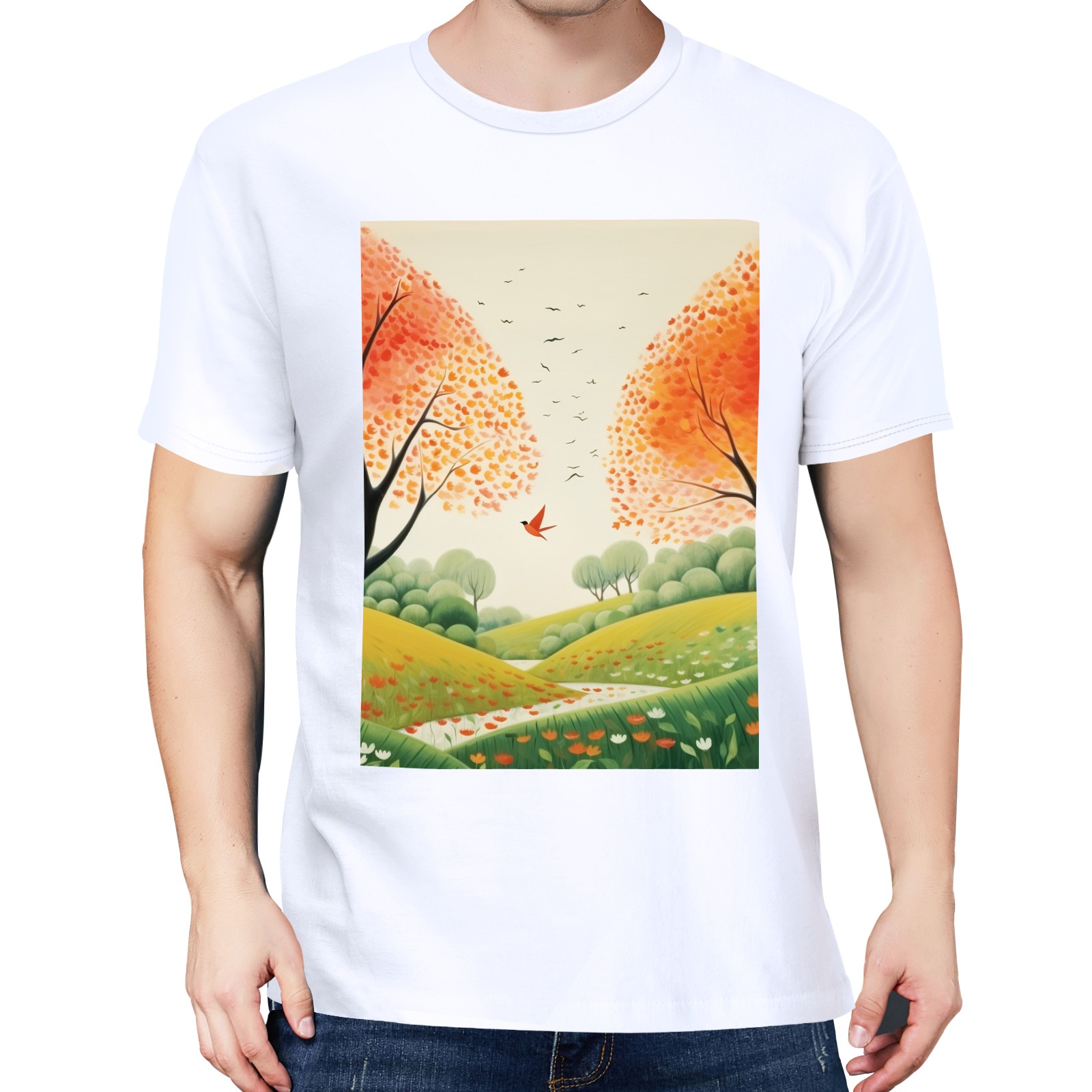 Basic Oversize Tees For WomenSpring Landscape (11) Loose Boyfriend Shirts Casual Blouse round neck