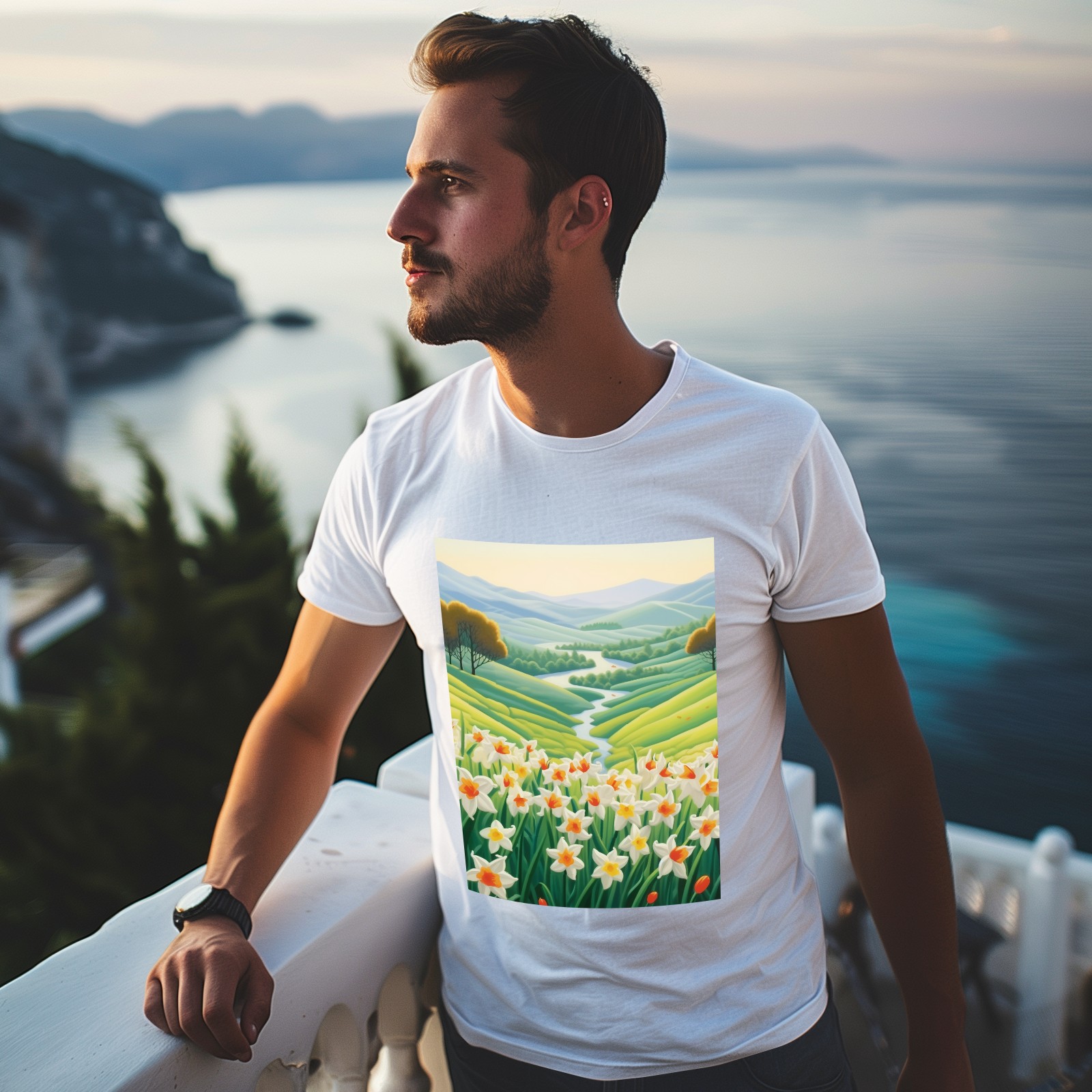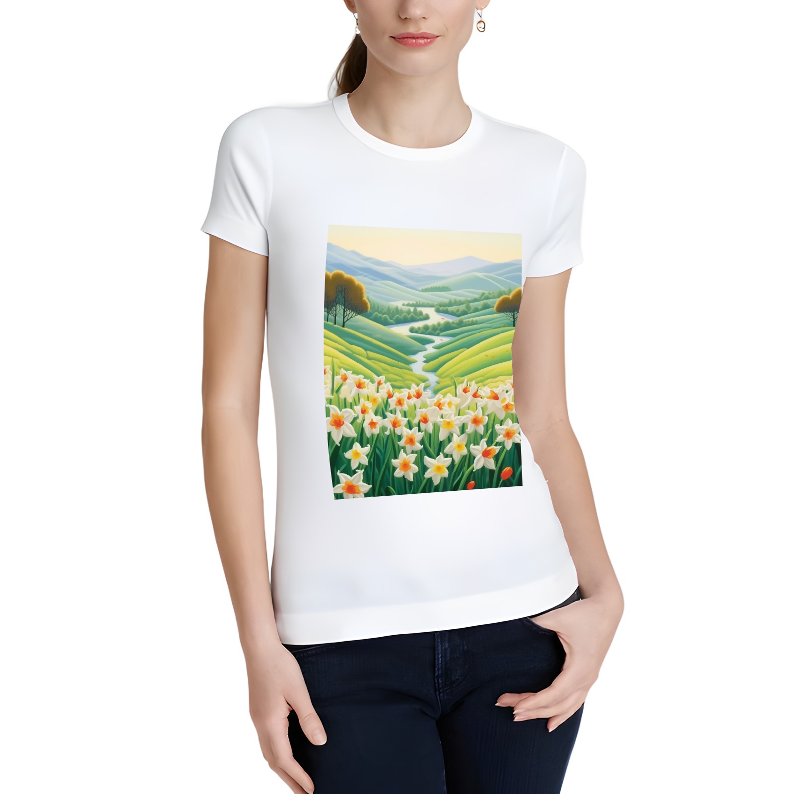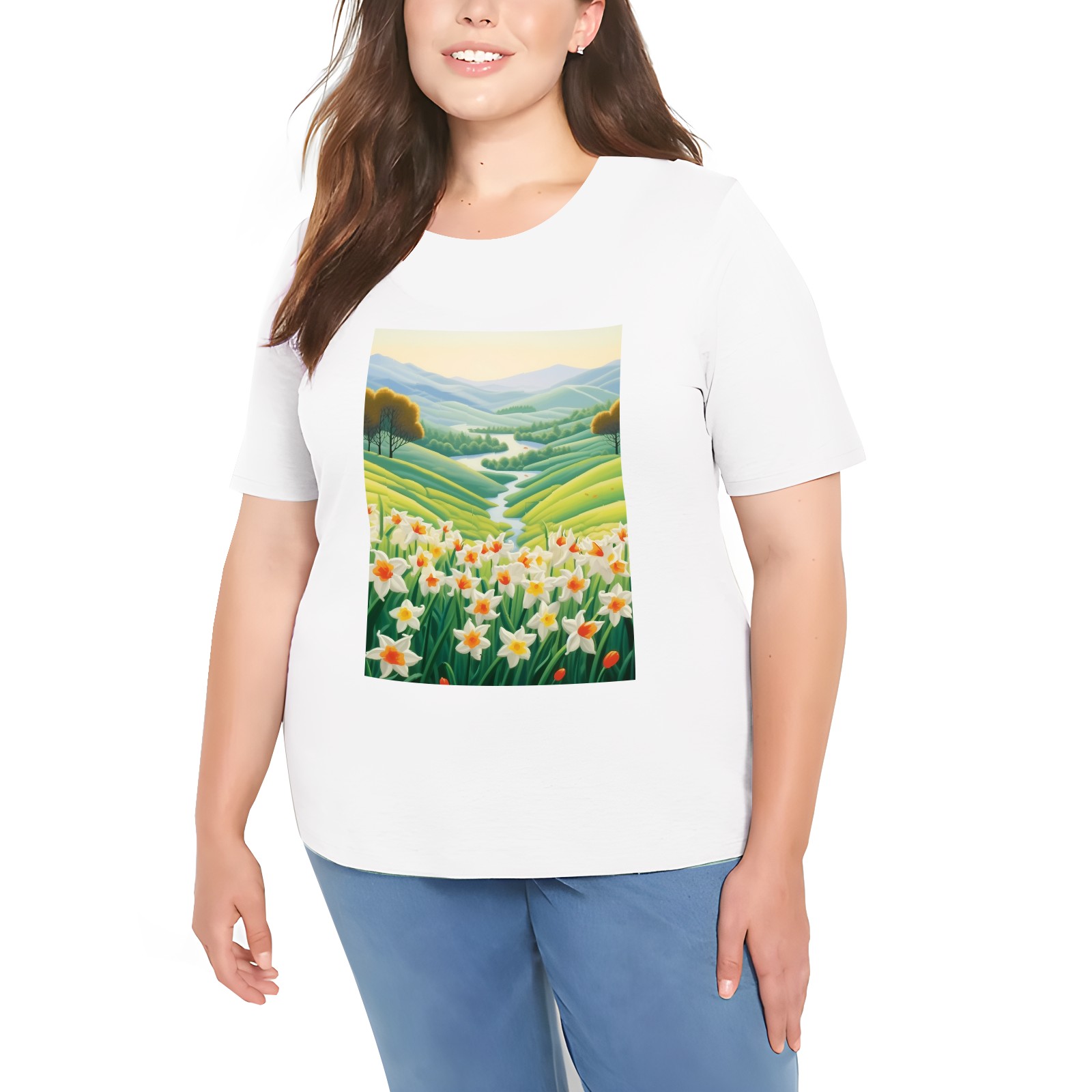 Basic Oversize Tees For WomenSpring Landscape (5) Loose Boyfriend Shirts Casual Blouse round neck