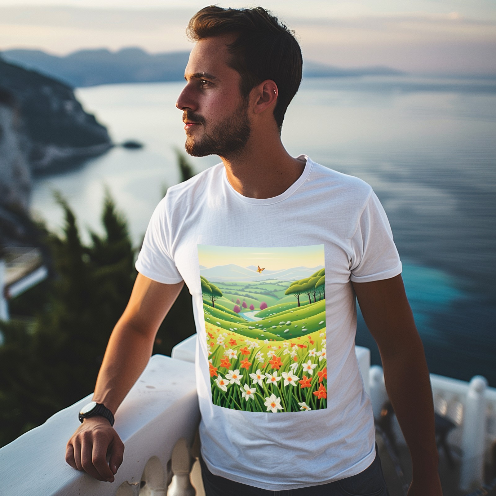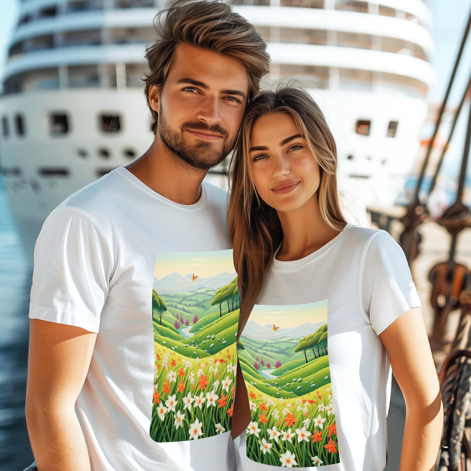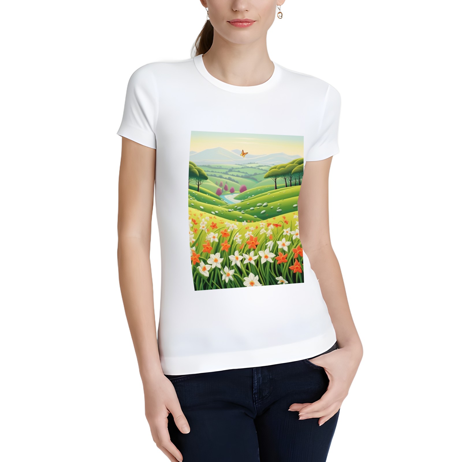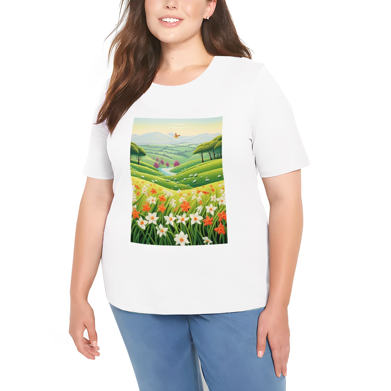 Basic Oversize Tees For WomenSpring Landscape (4) Loose Boyfriend Shirts Casual Blouse round neck