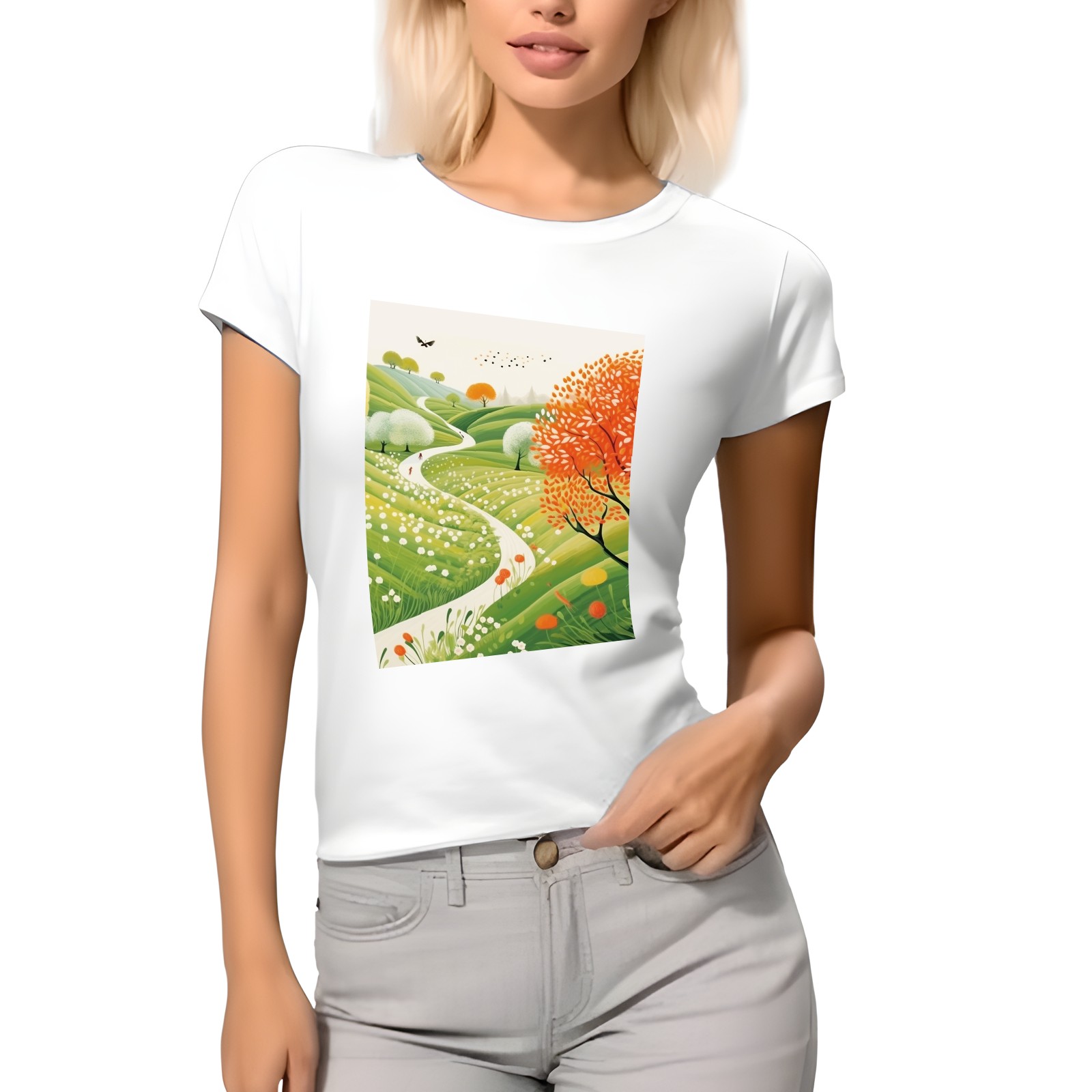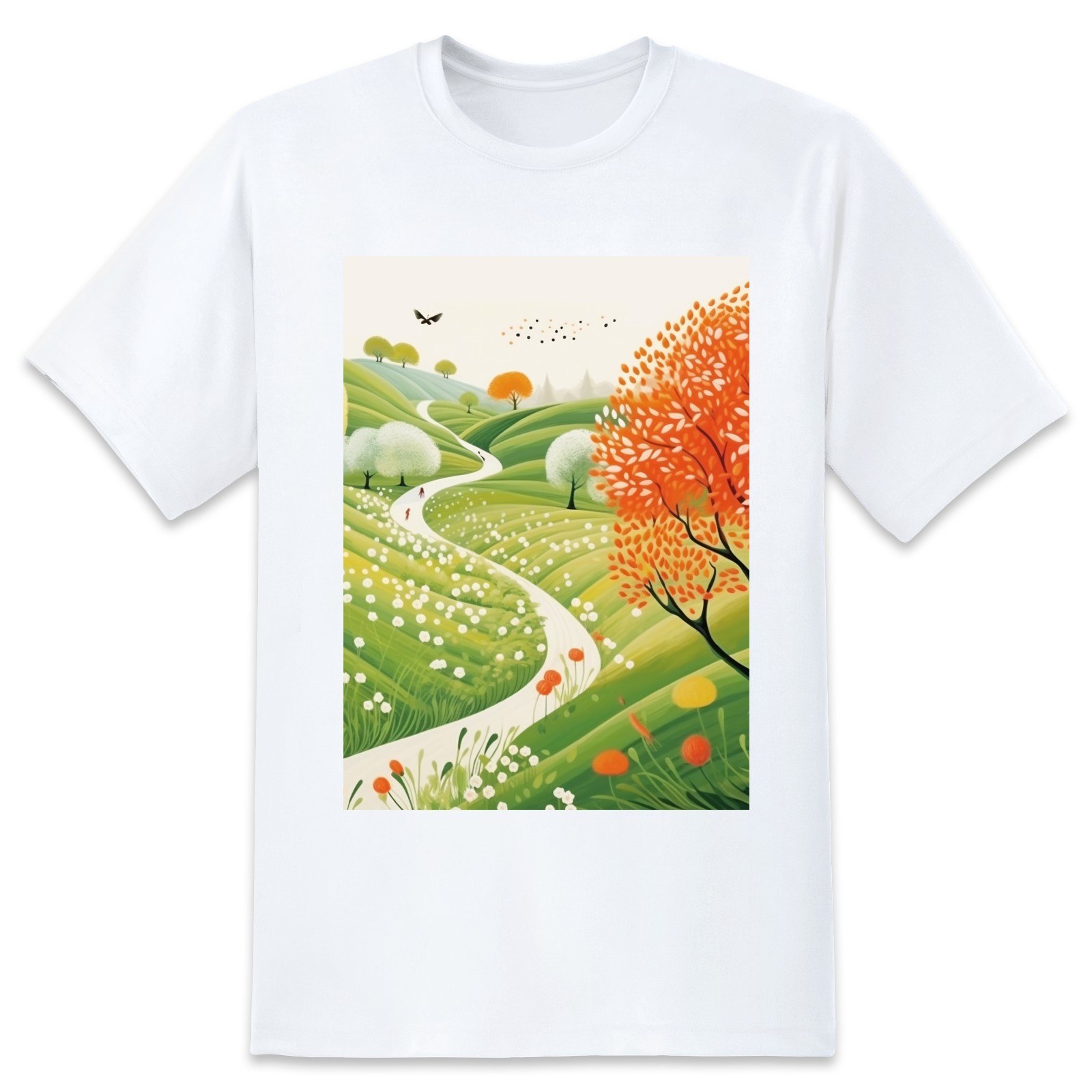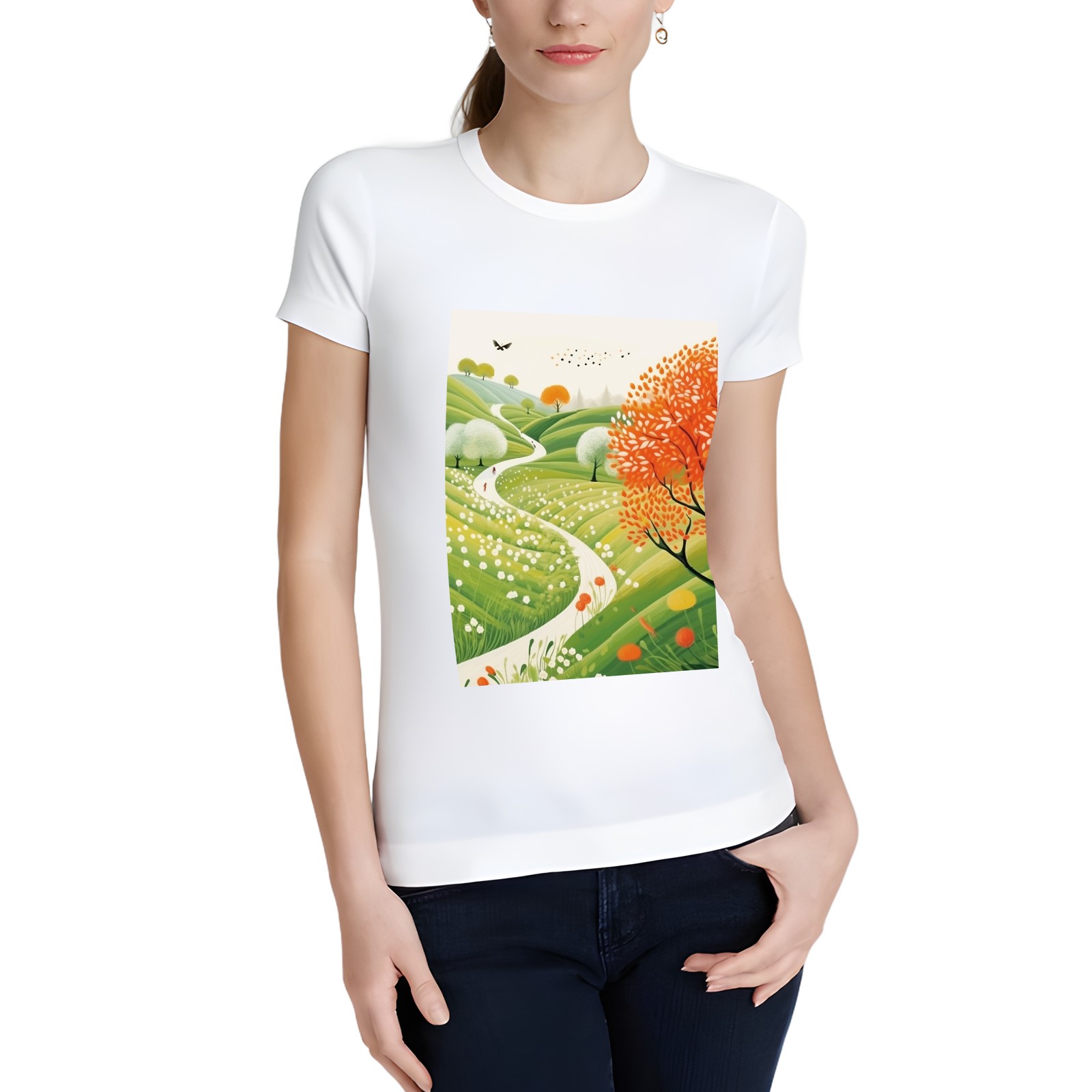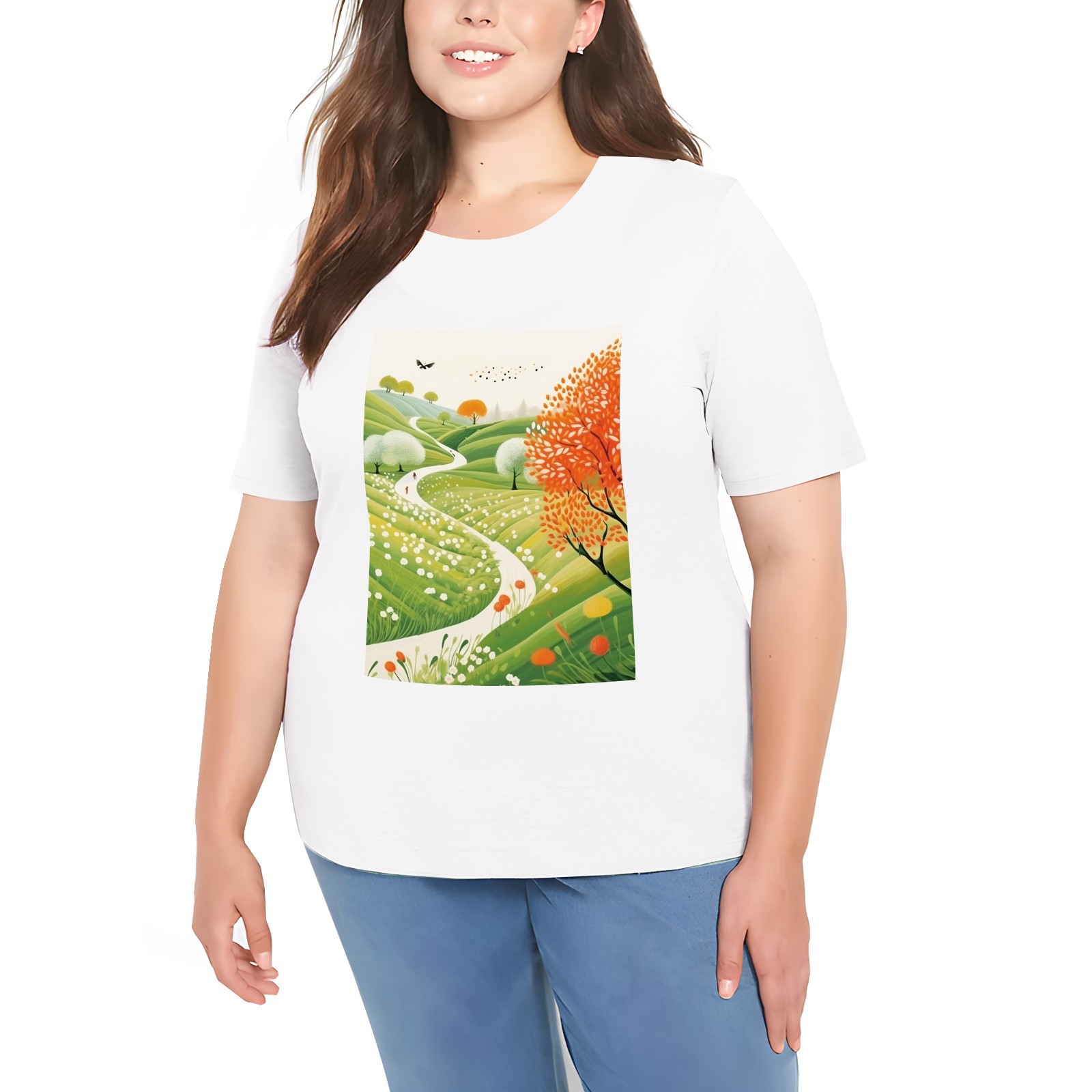 Basic Oversize Tees For WomenSpring Landscape (3) Loose Boyfriend Shirts Casual Blouse round neck