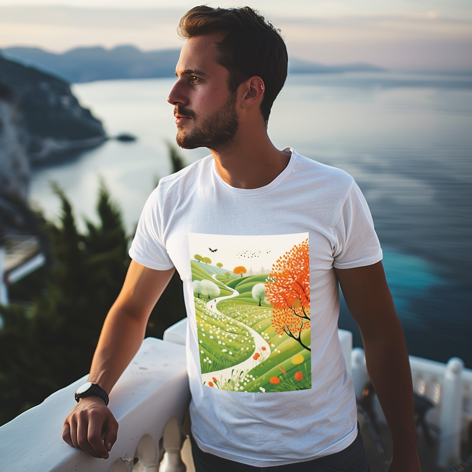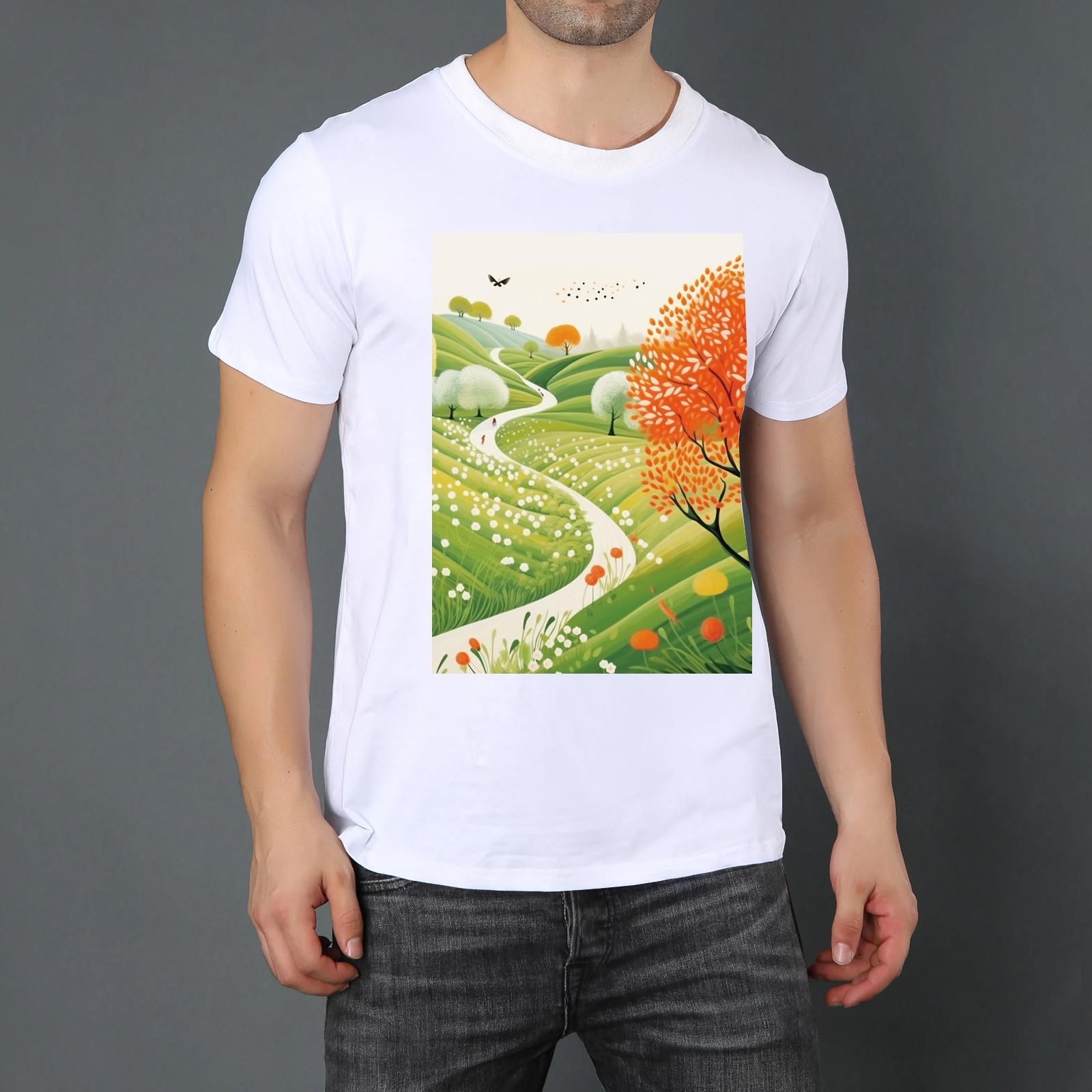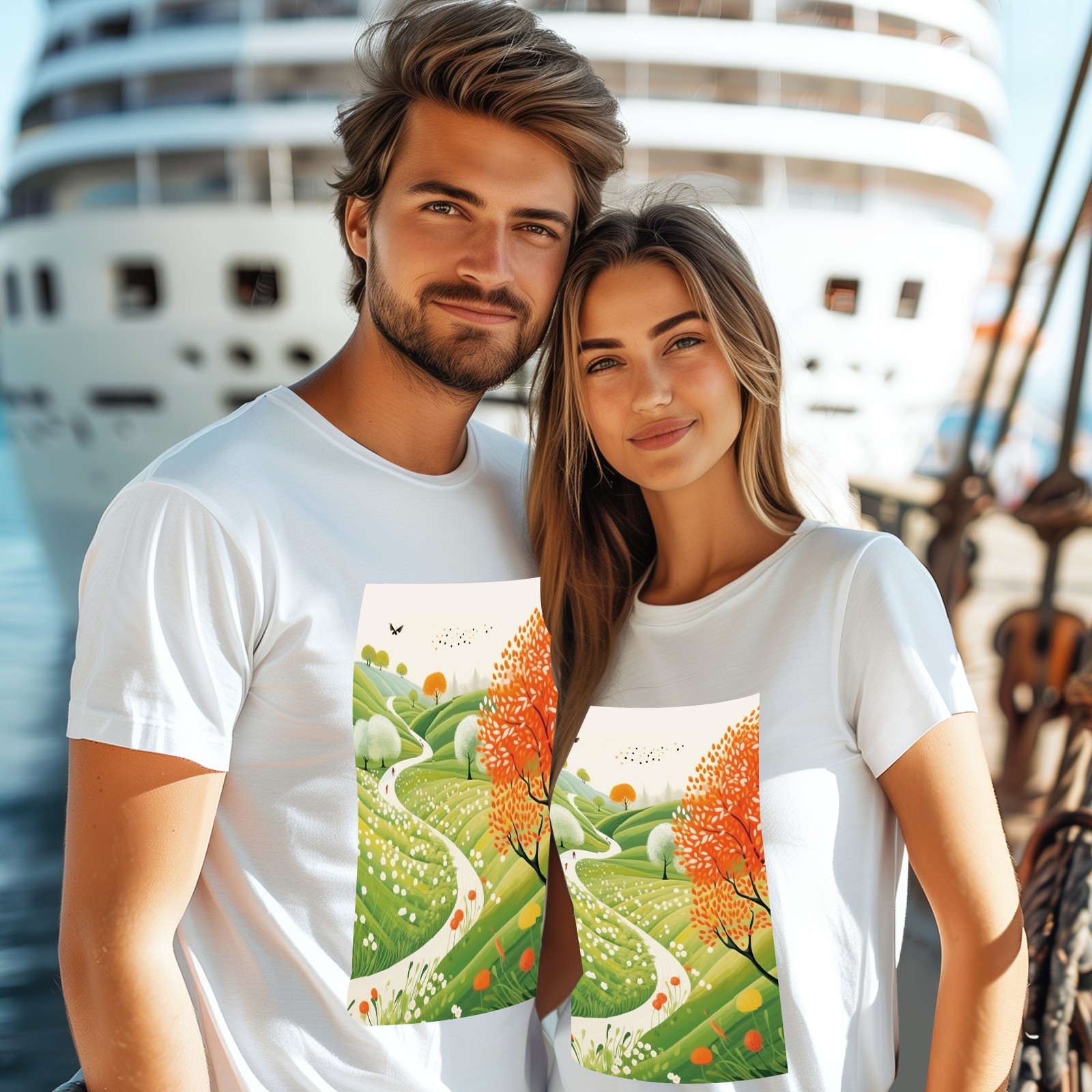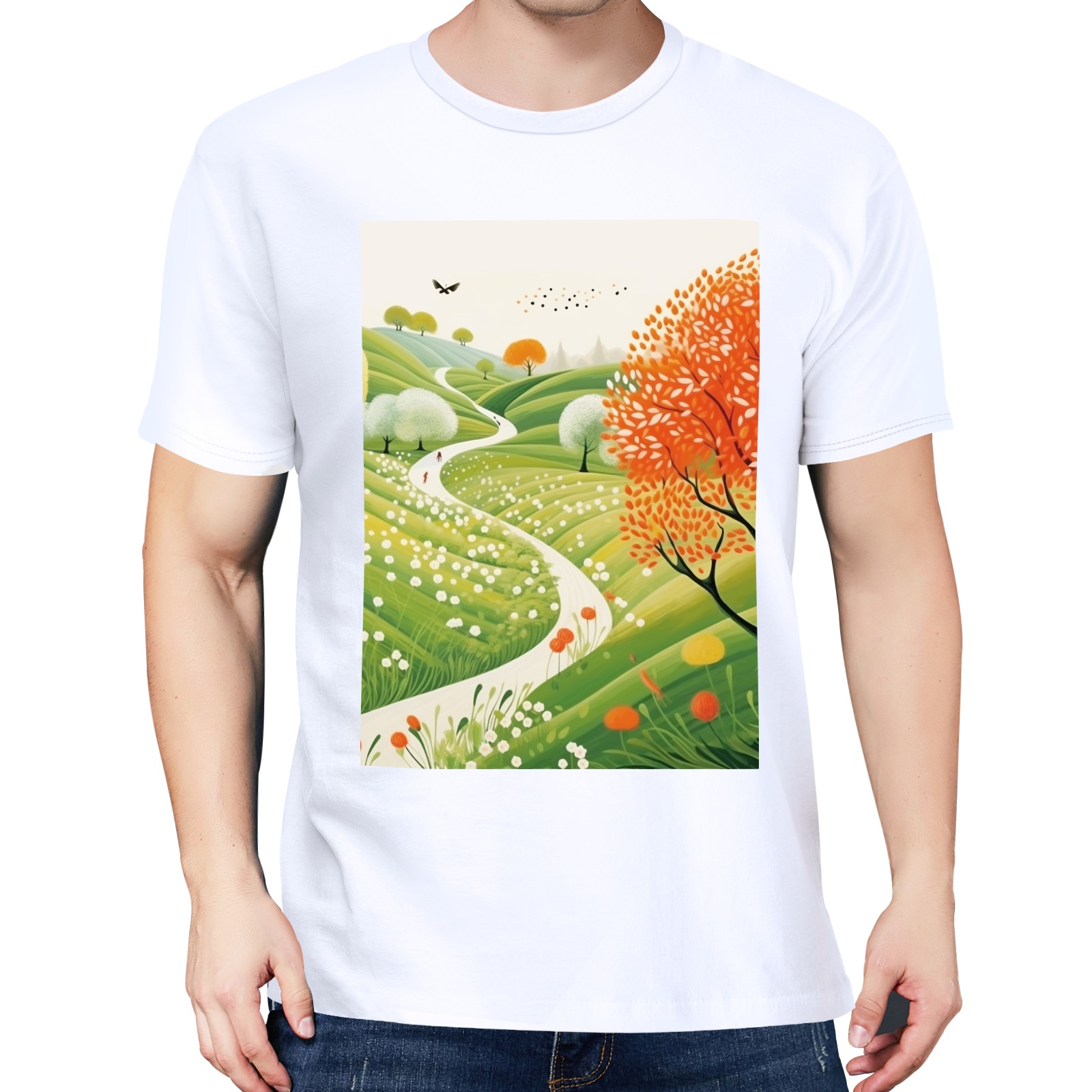 Basic Oversize Tees For WomenSpring Landscape (3) Loose Boyfriend Shirts Casual Blouse round neck