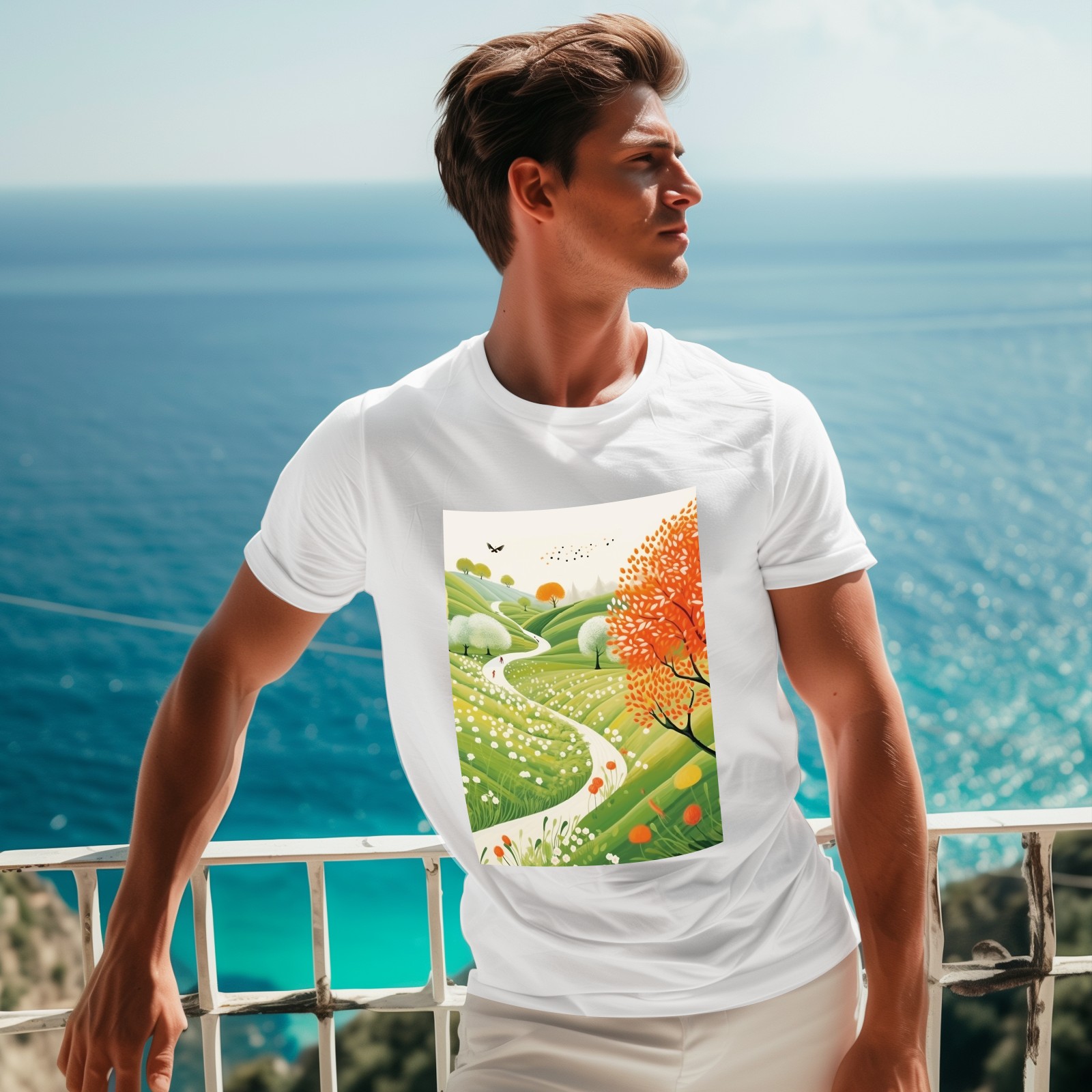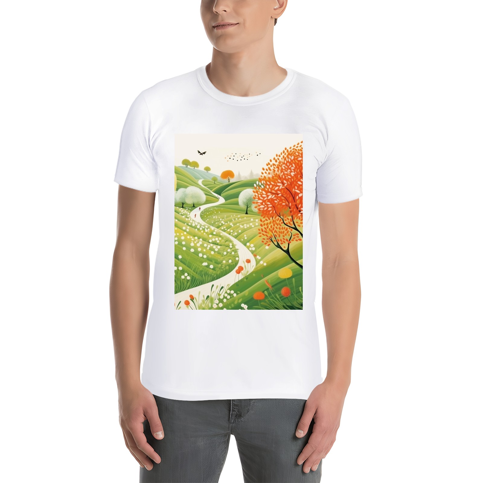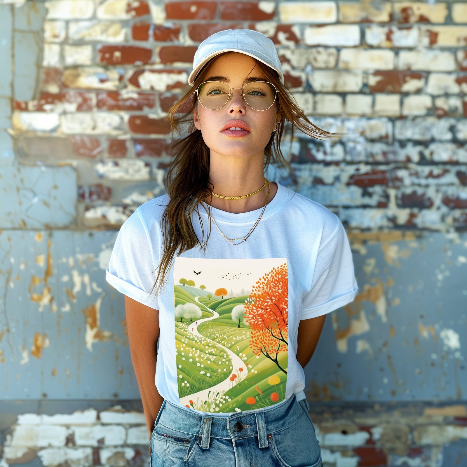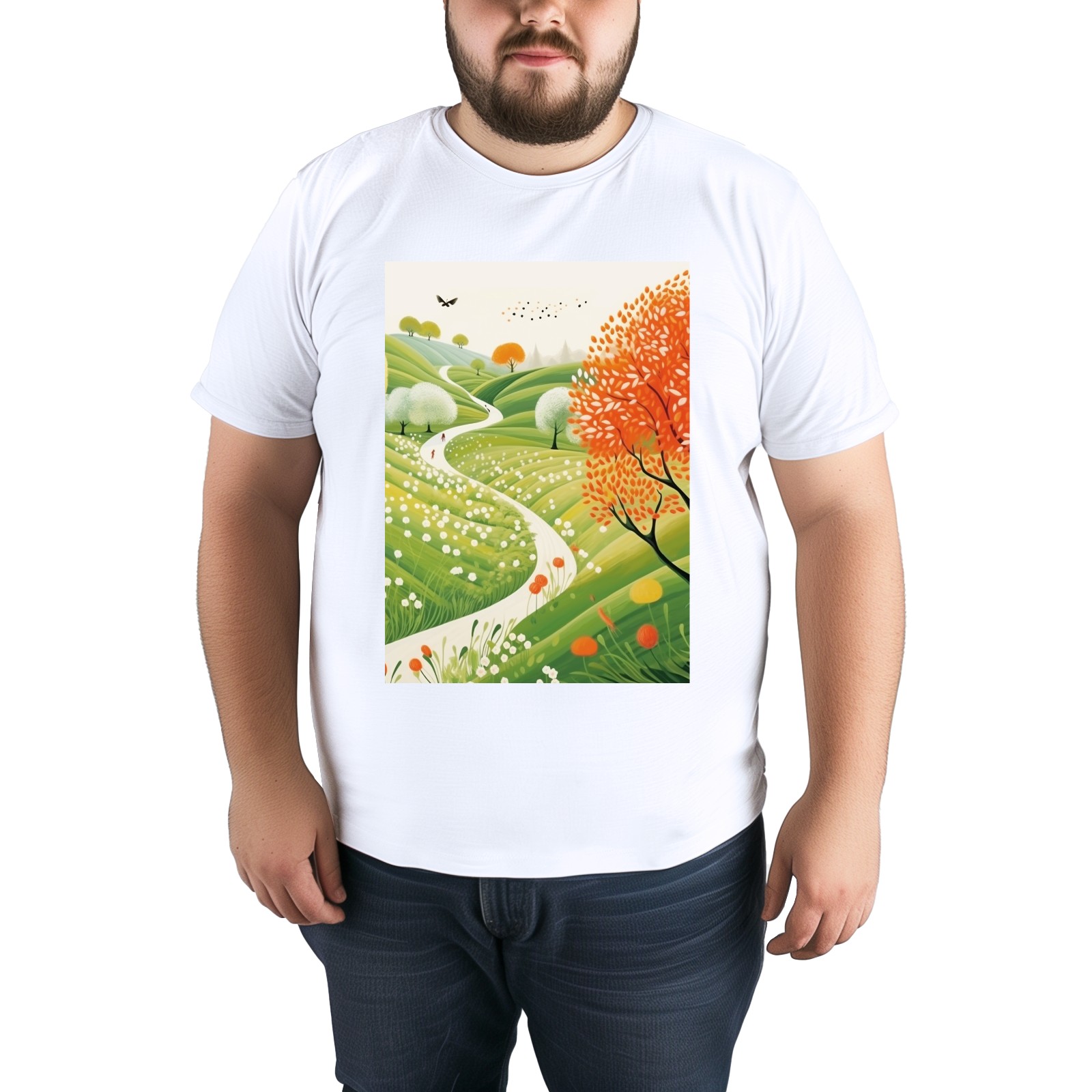 Basic Oversize Tees For WomenSpring Landscape (3) Loose Boyfriend Shirts Casual Blouse round neck