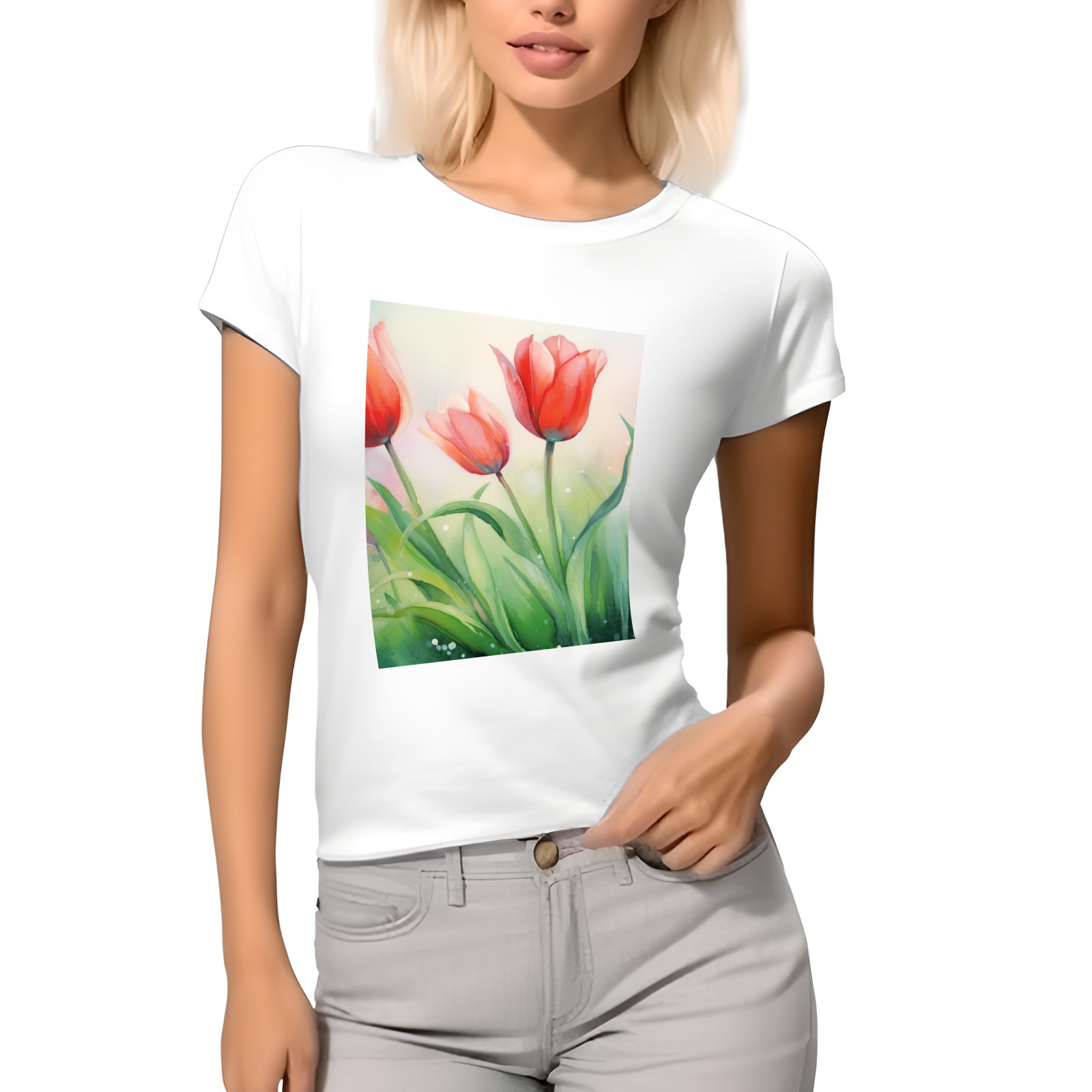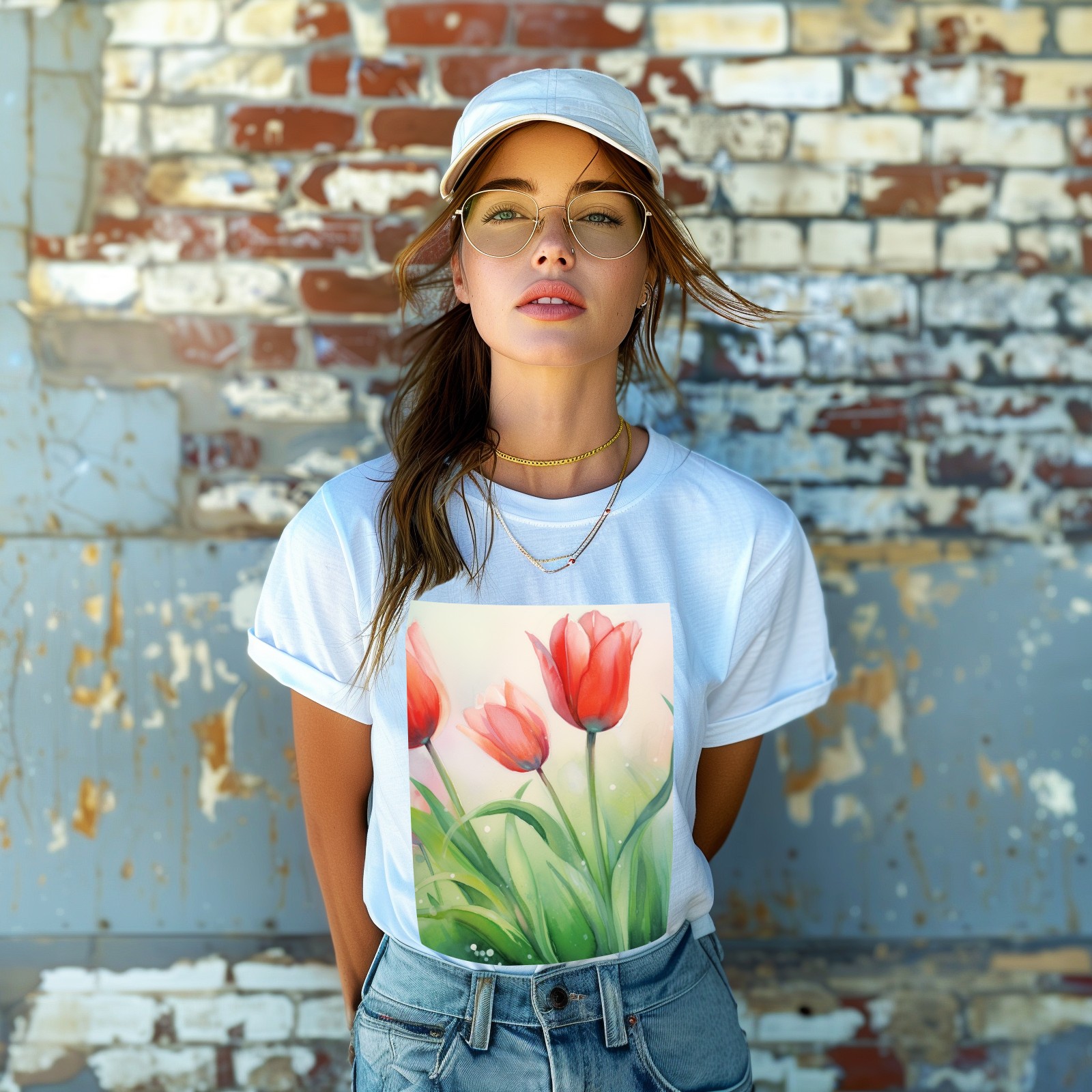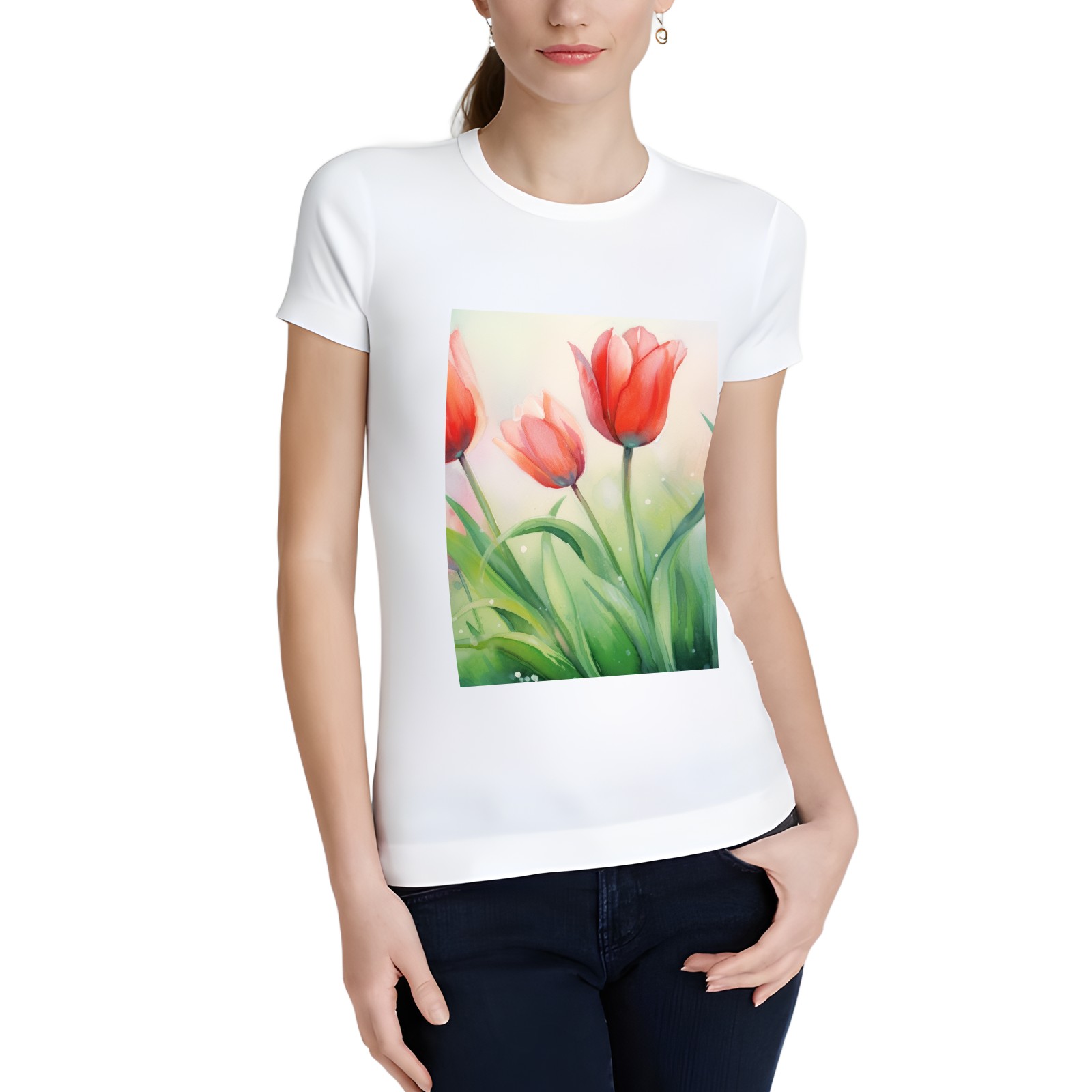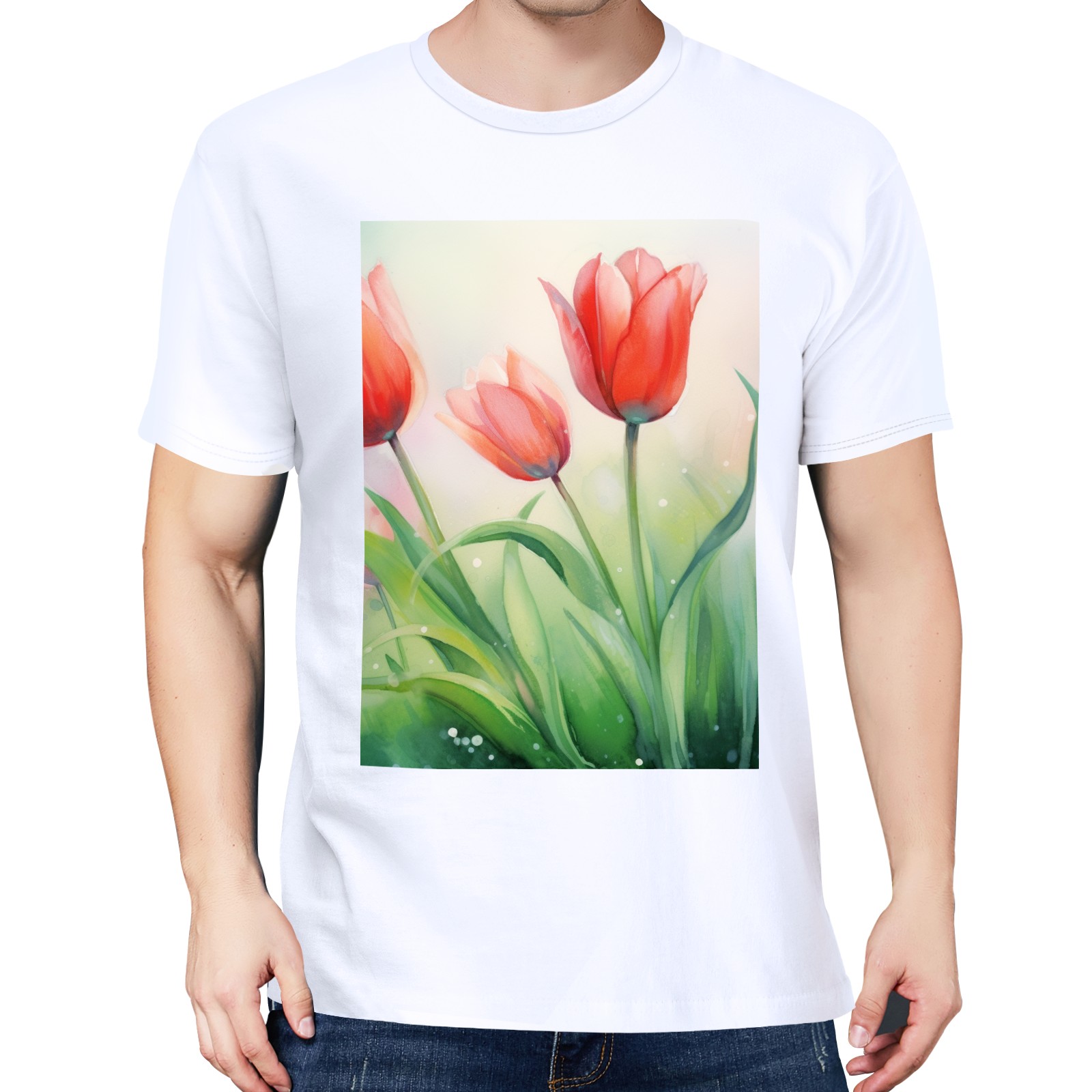 Basic Oversize Tees For WomenSpring Flowers (5) Loose Boyfriend Shirts Casual Blouse round neck