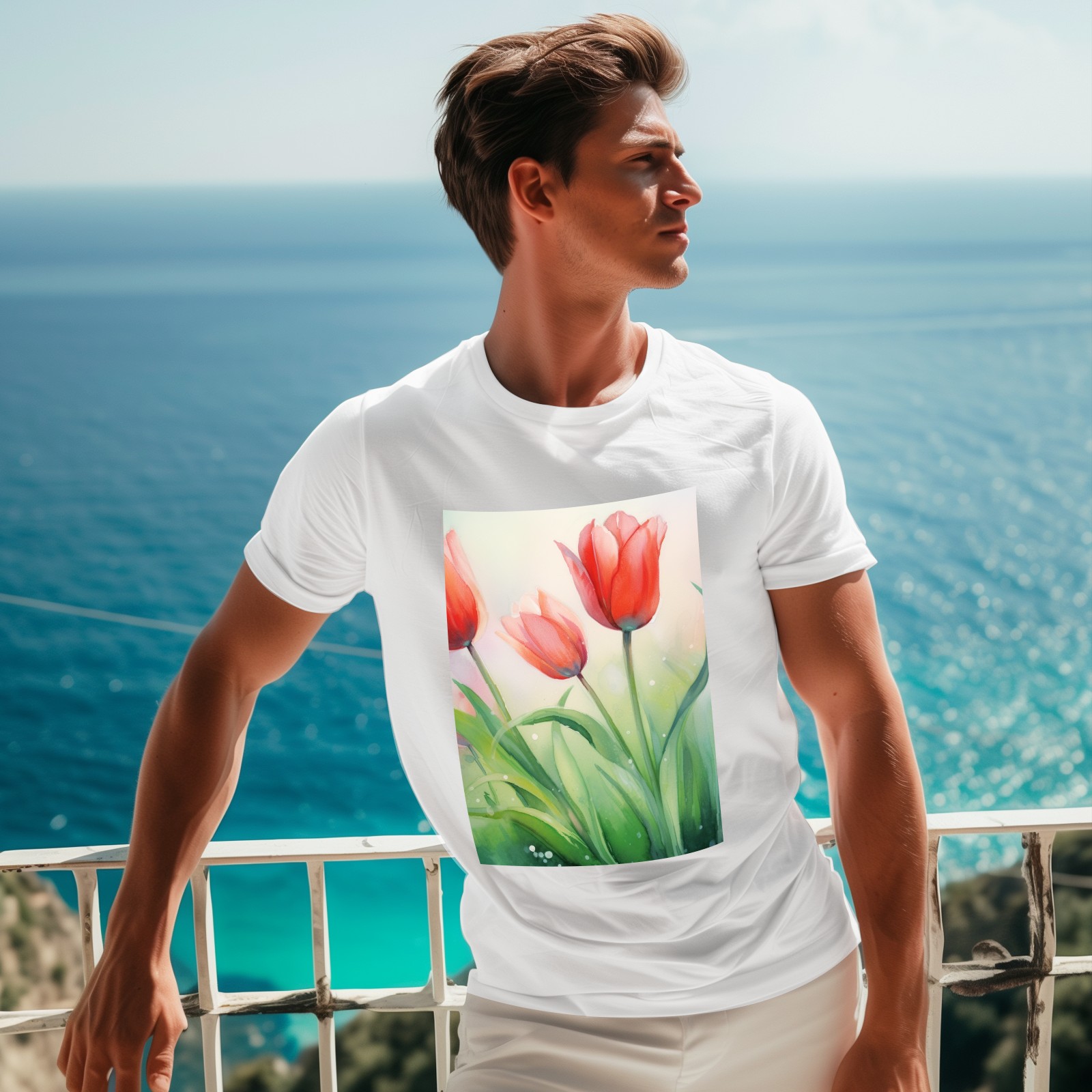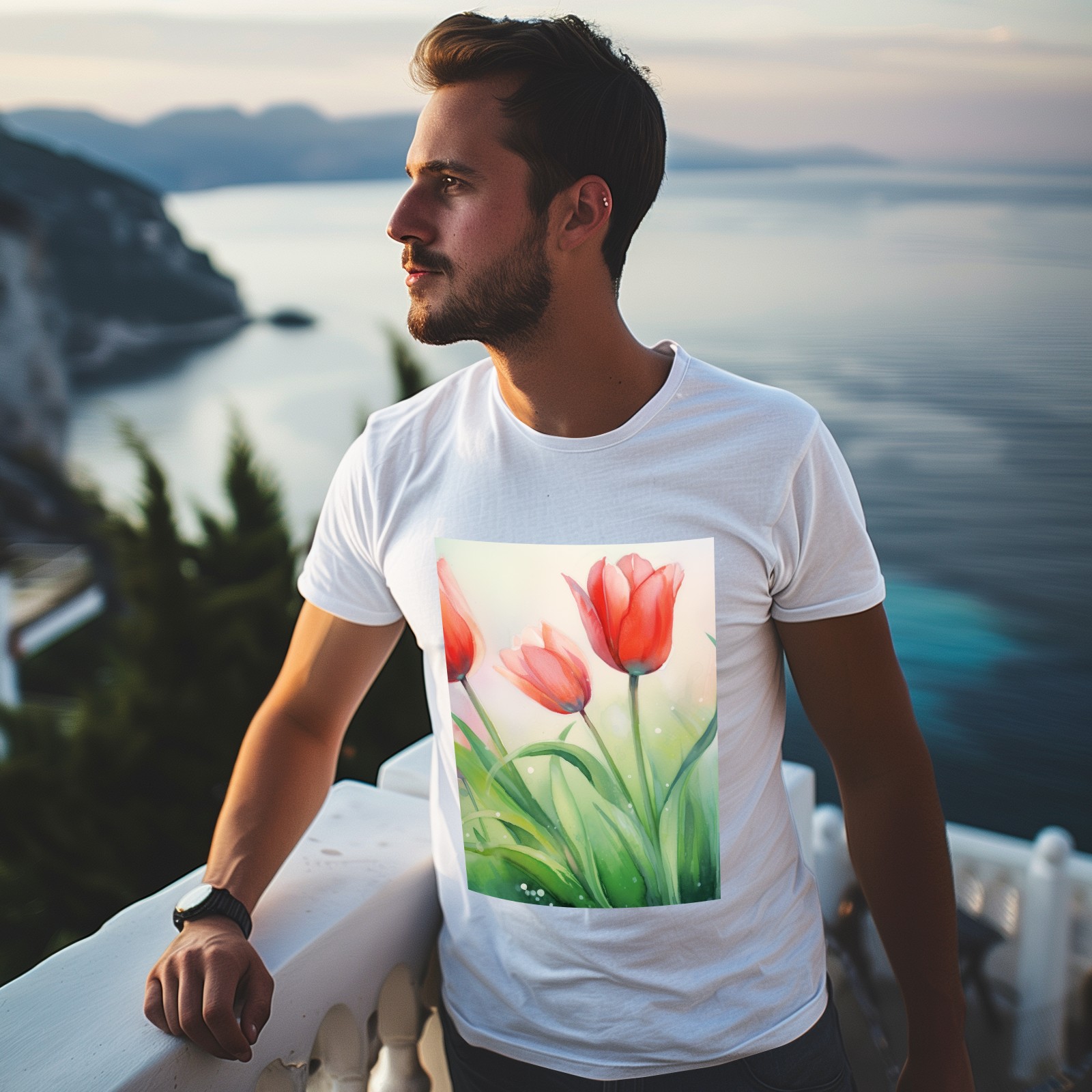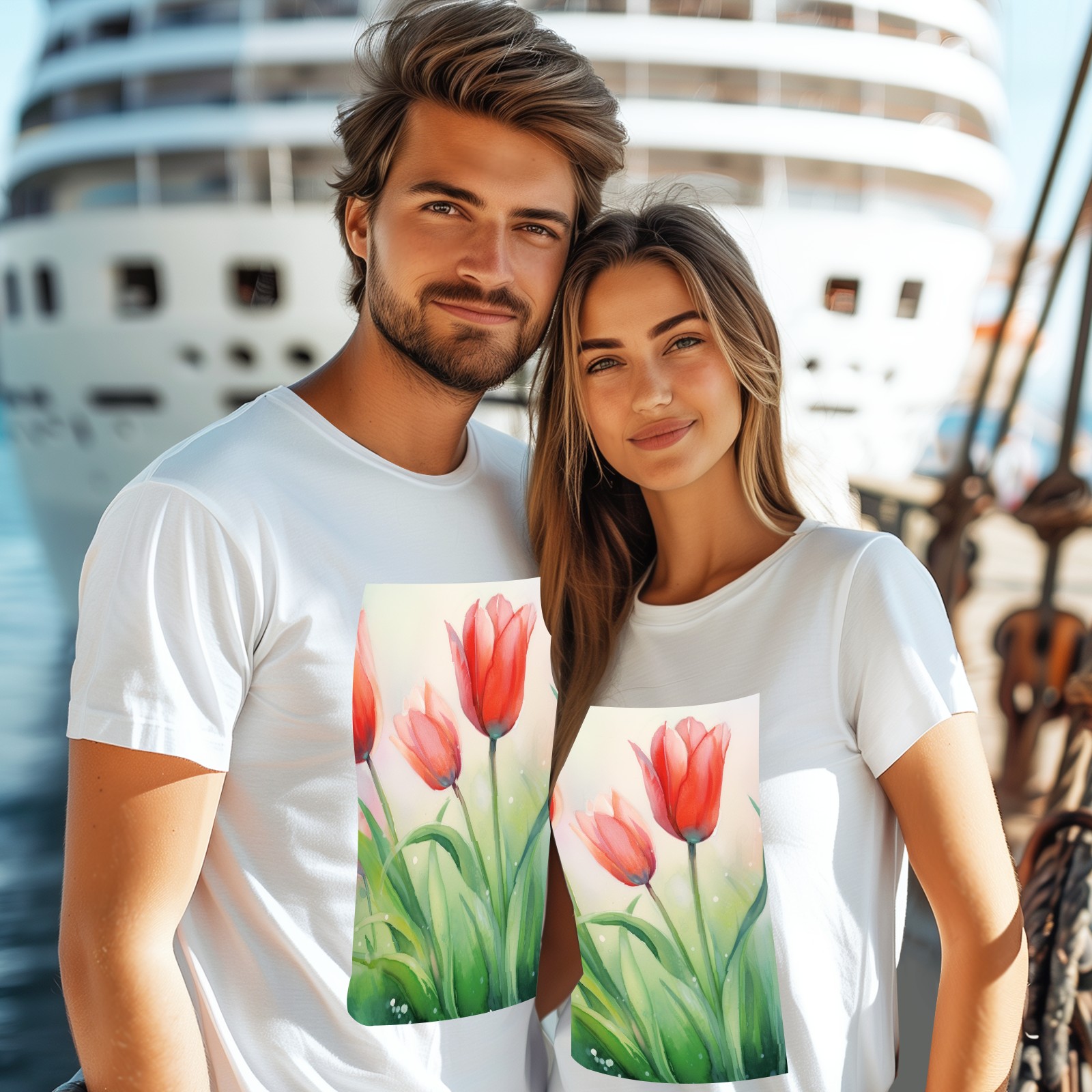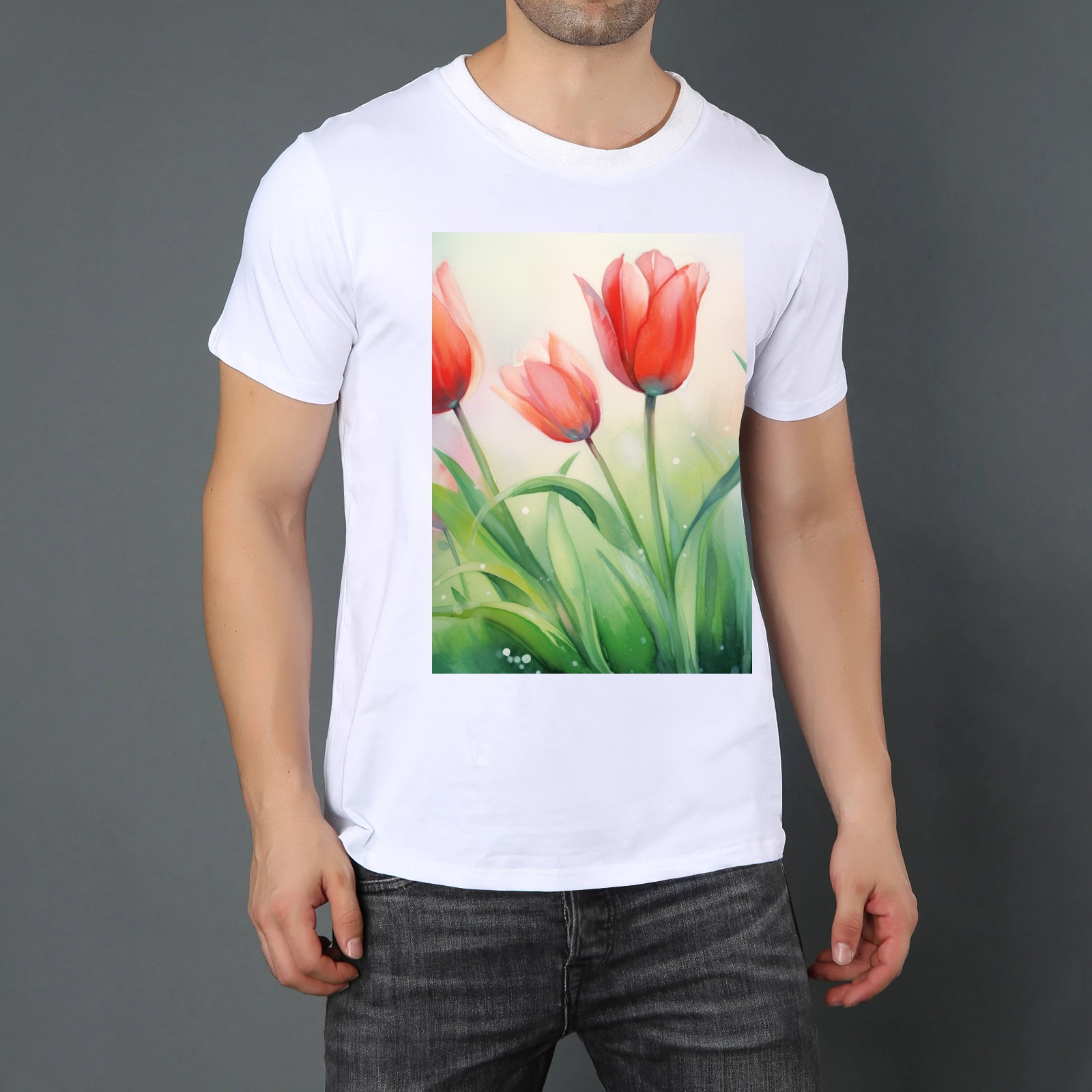 Basic Oversize Tees For WomenSpring Flowers (5) Loose Boyfriend Shirts Casual Blouse round neck